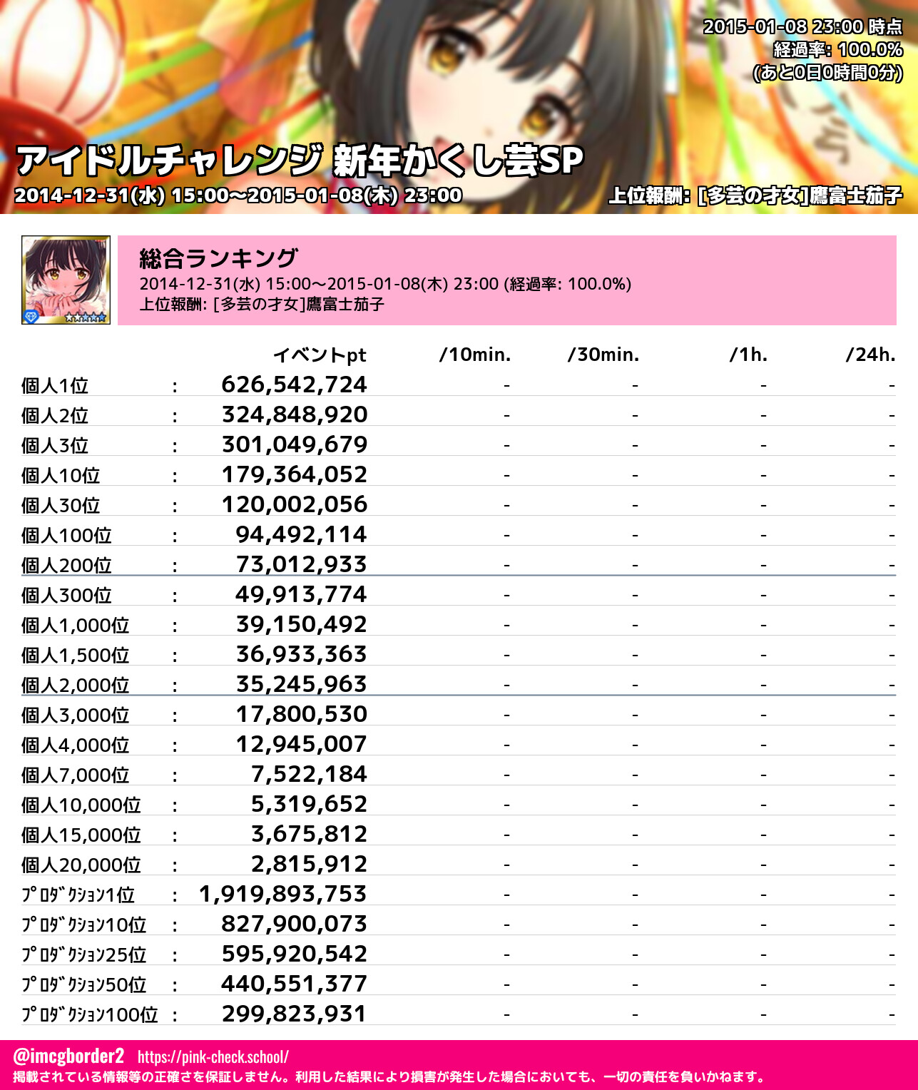 アイドルチャレンジ 新年かくし芸SP 結果集計完了