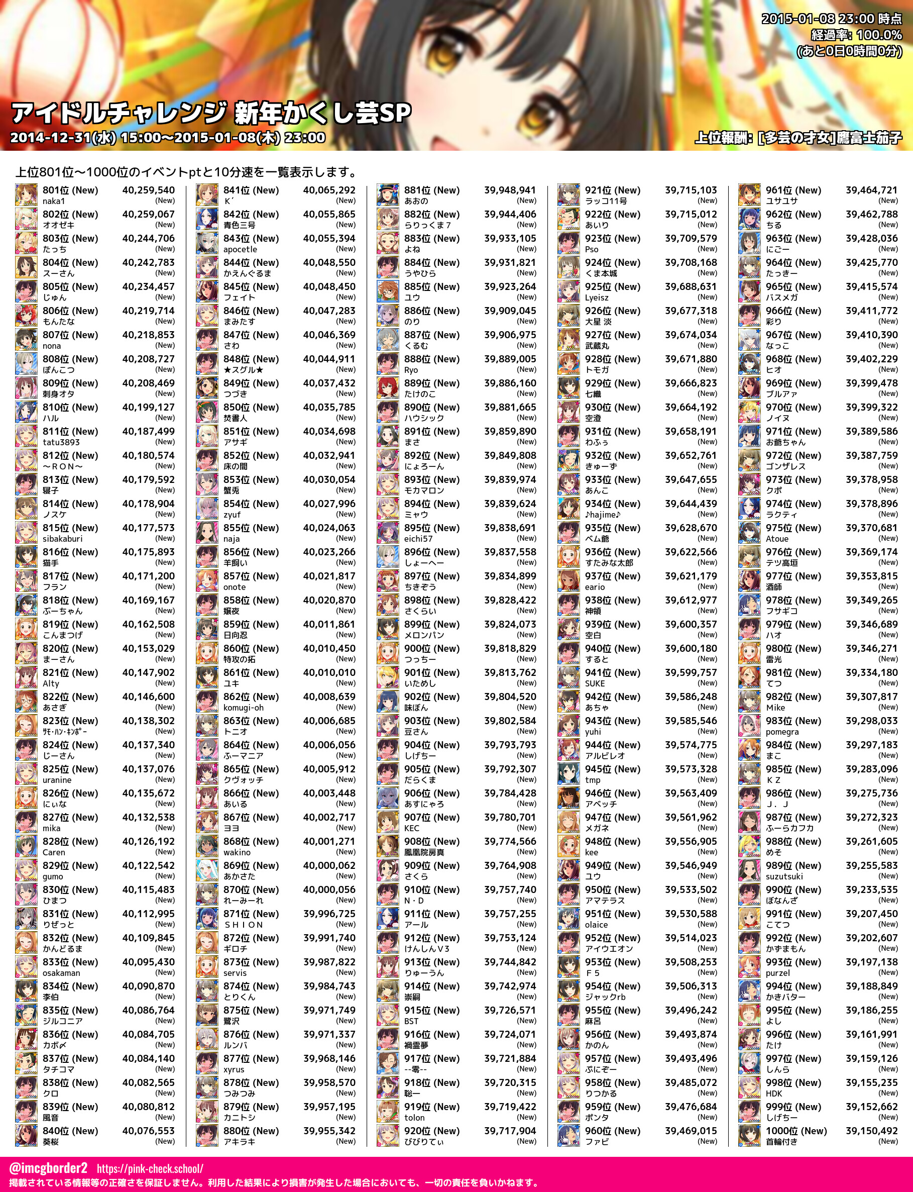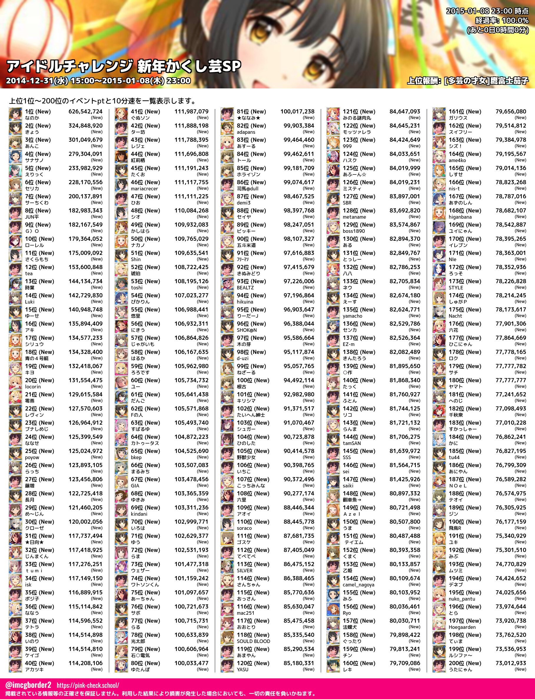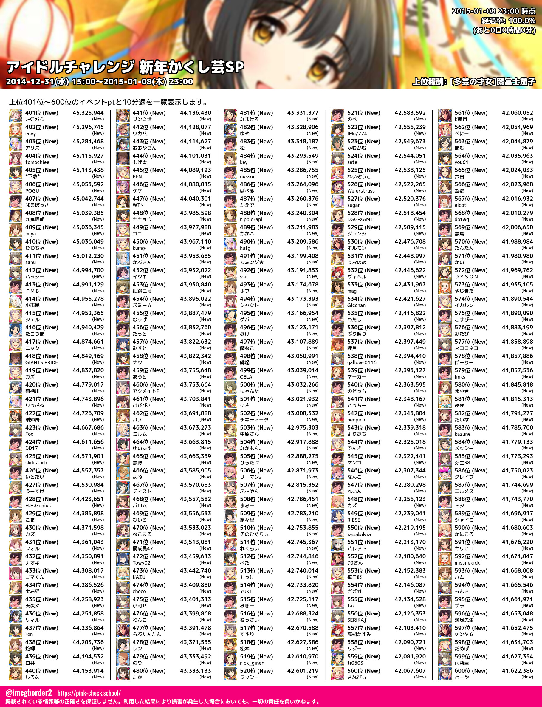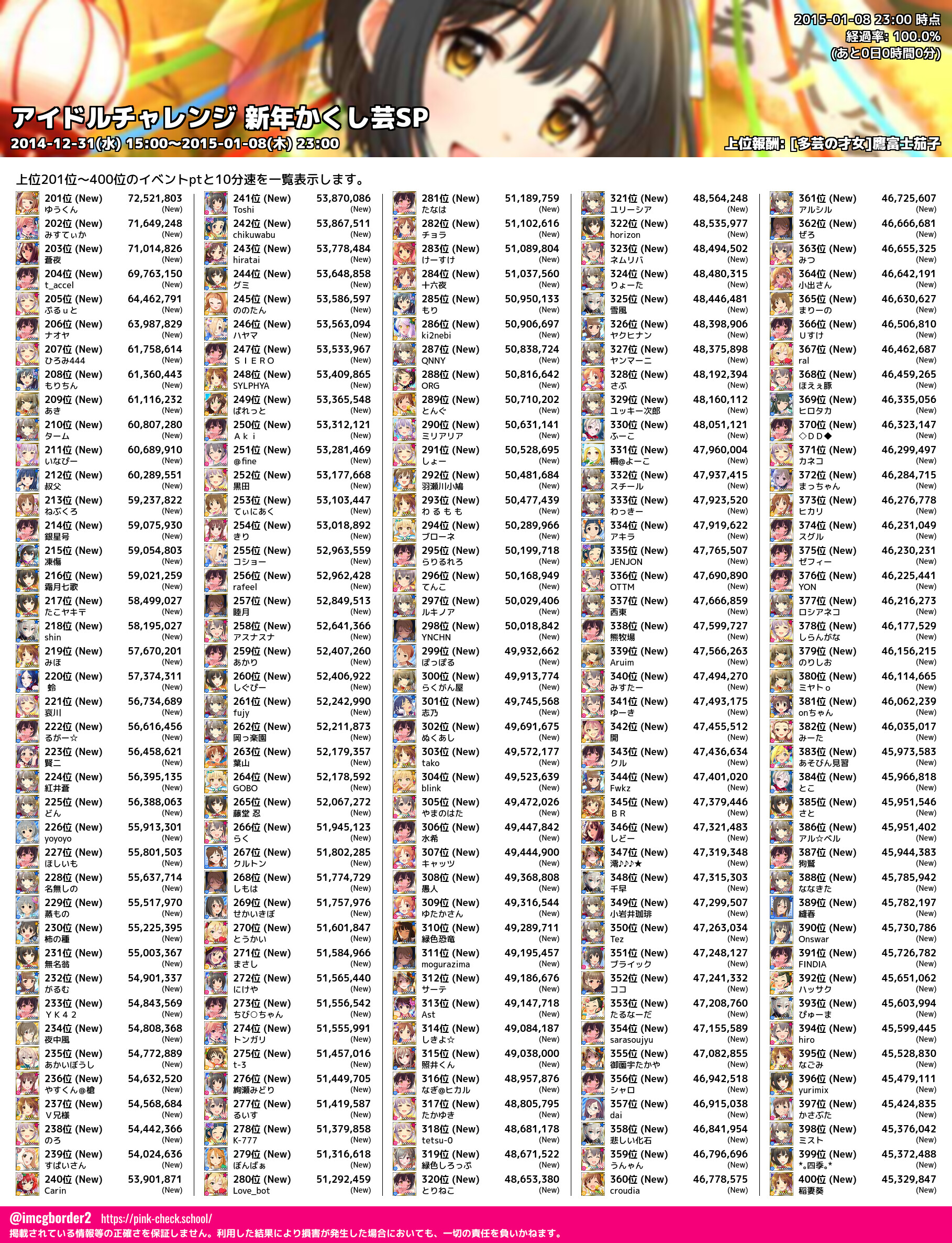 上位プロデューサースコア (2015-01-08 23:00 時点)