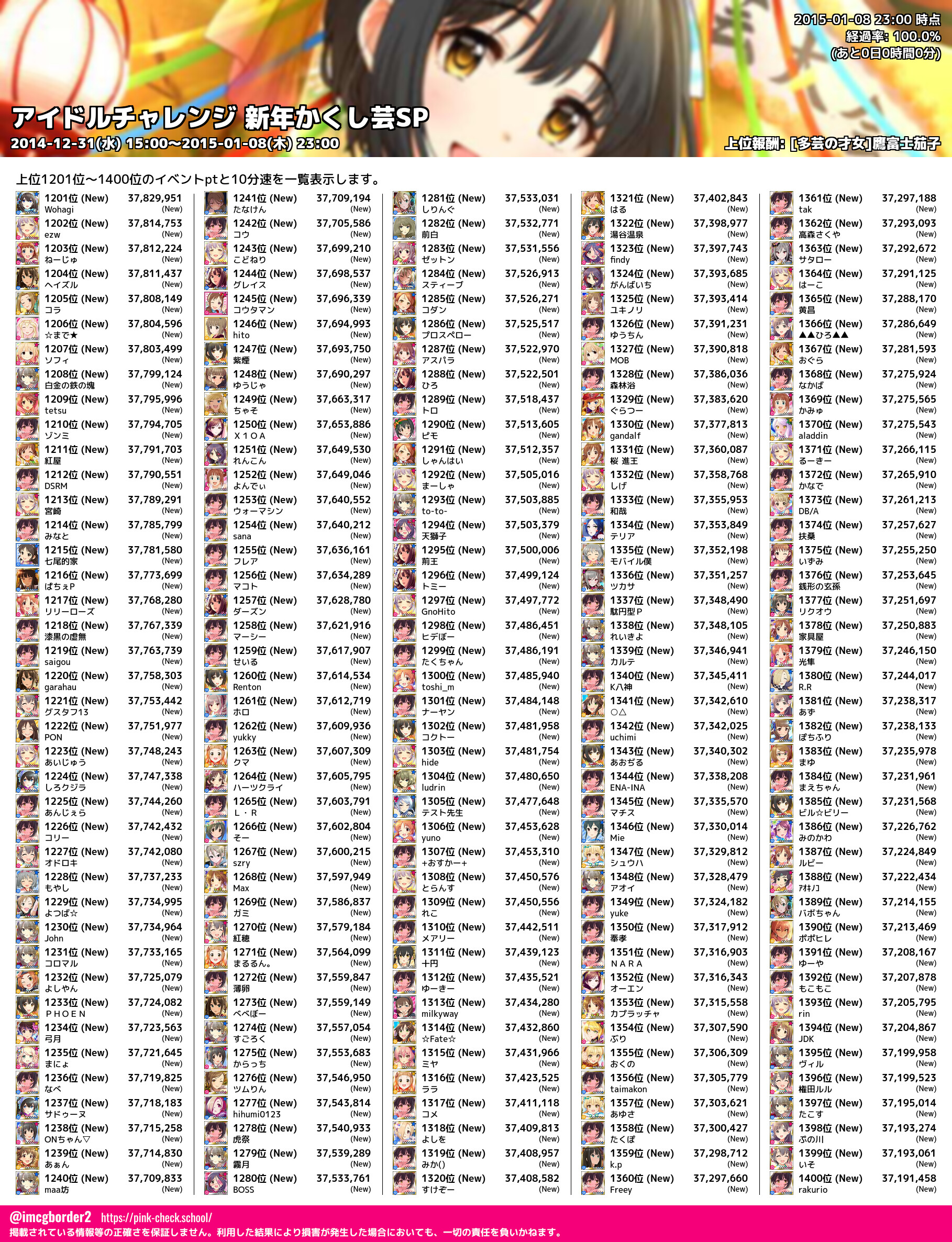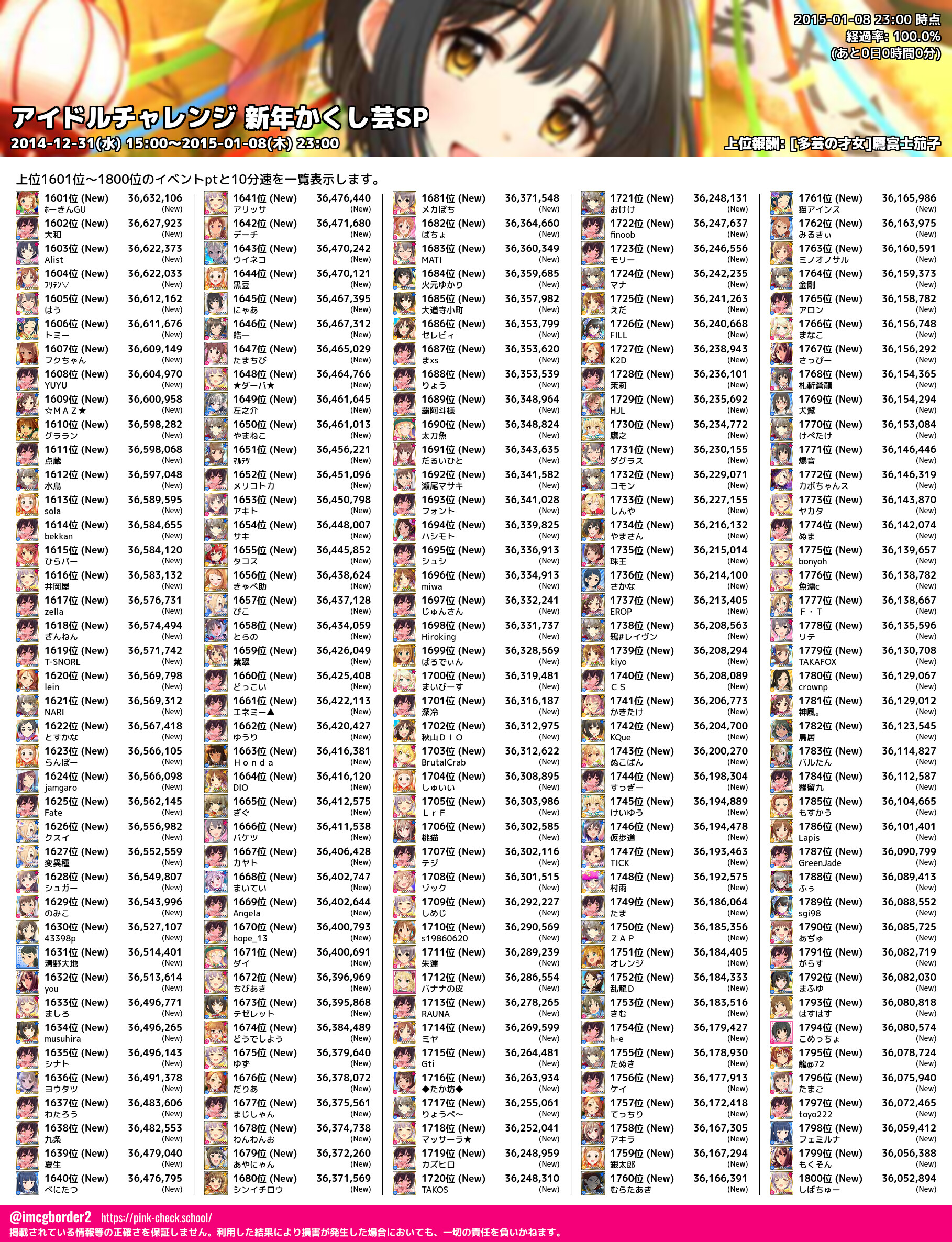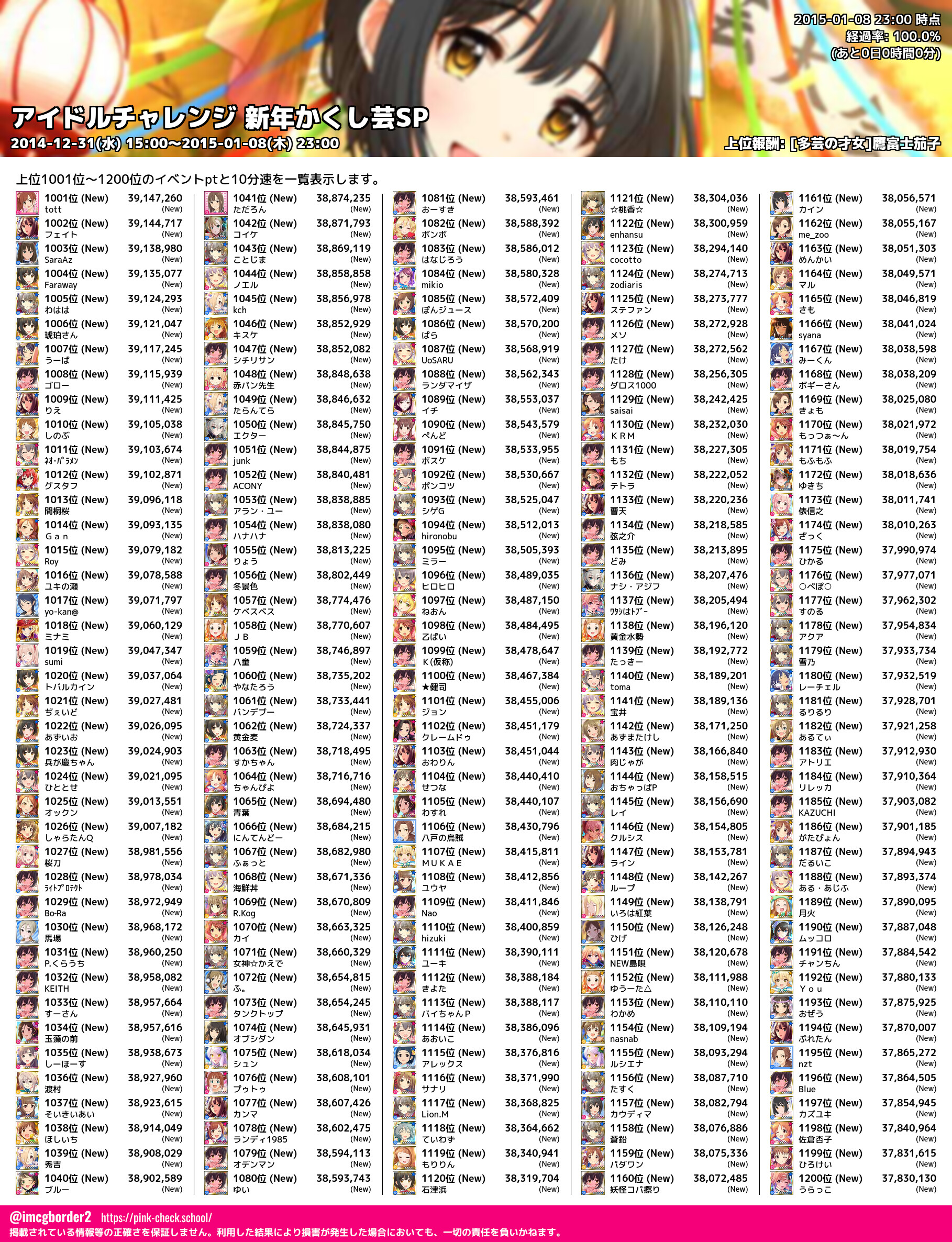 上位プロデューサースコア (2015-01-08 23:00 時点)