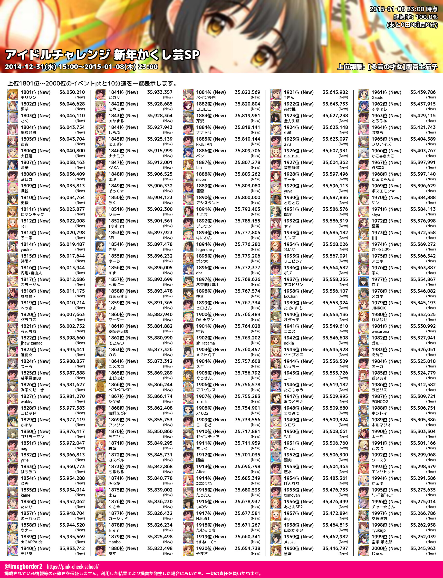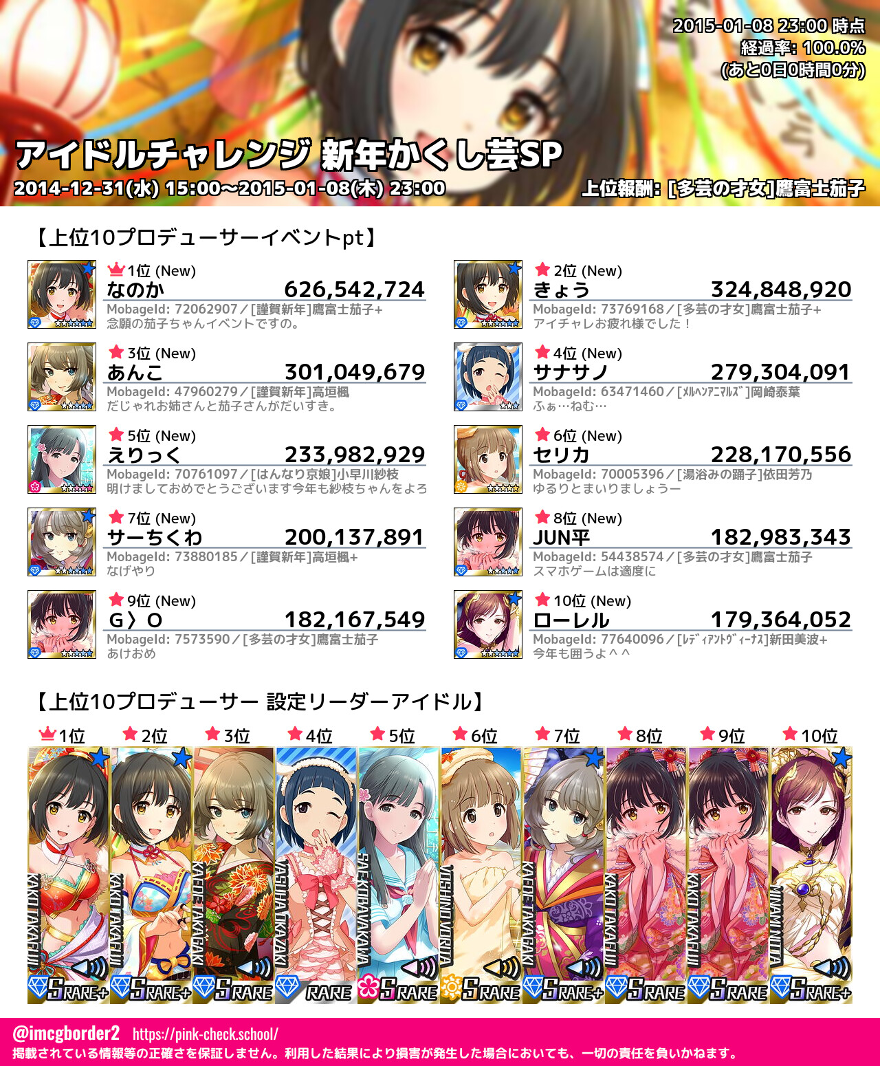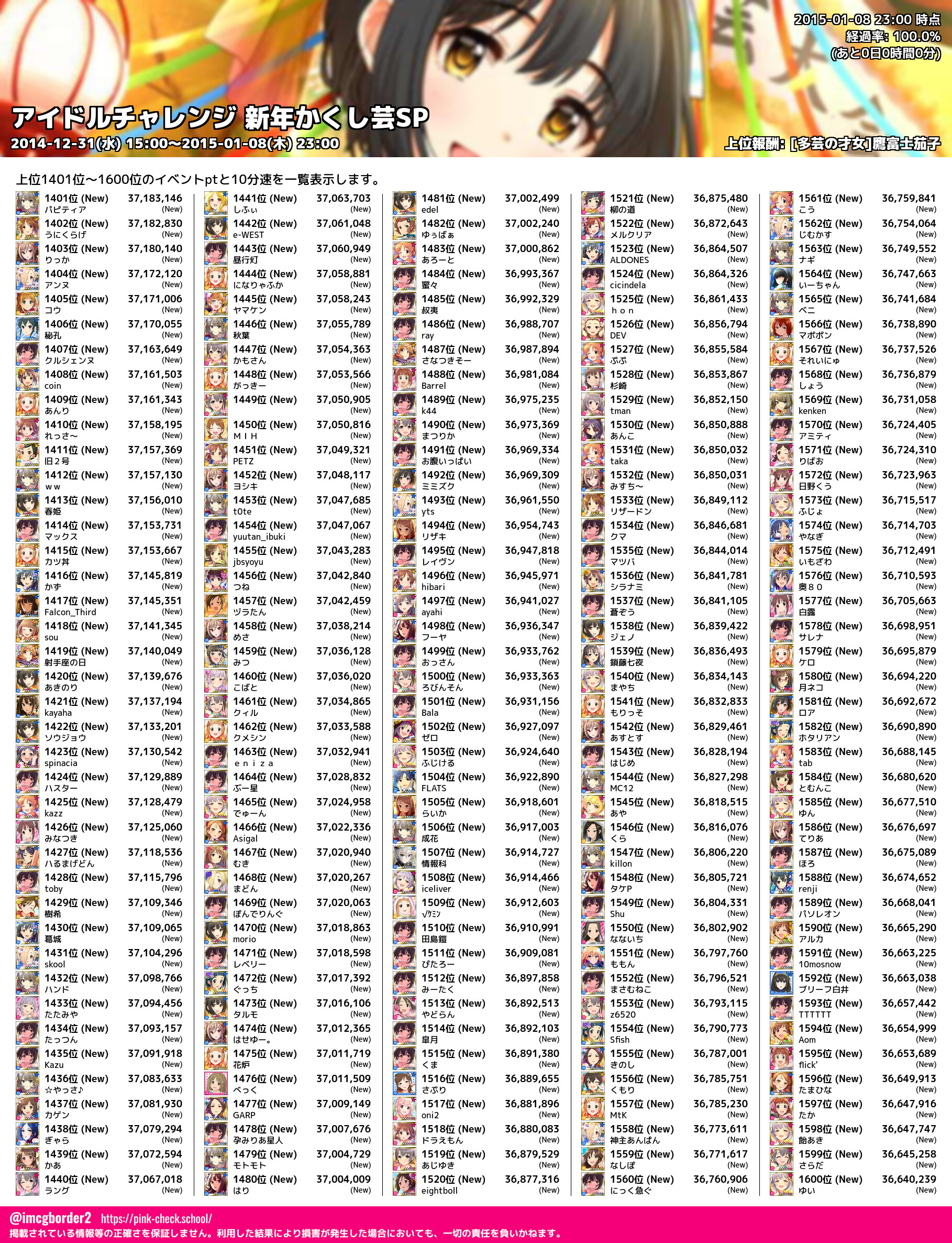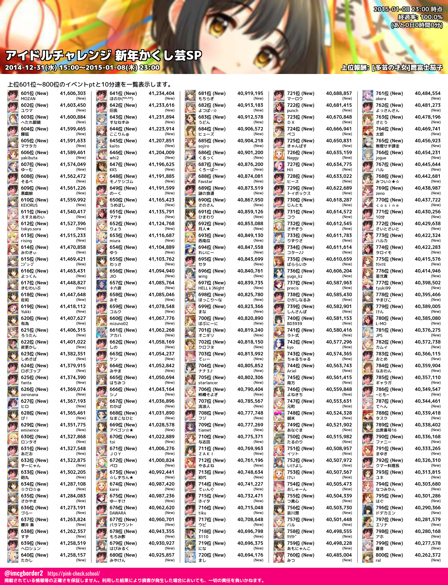 上位プロデューサースコア (2015-01-08 23:00 時点)