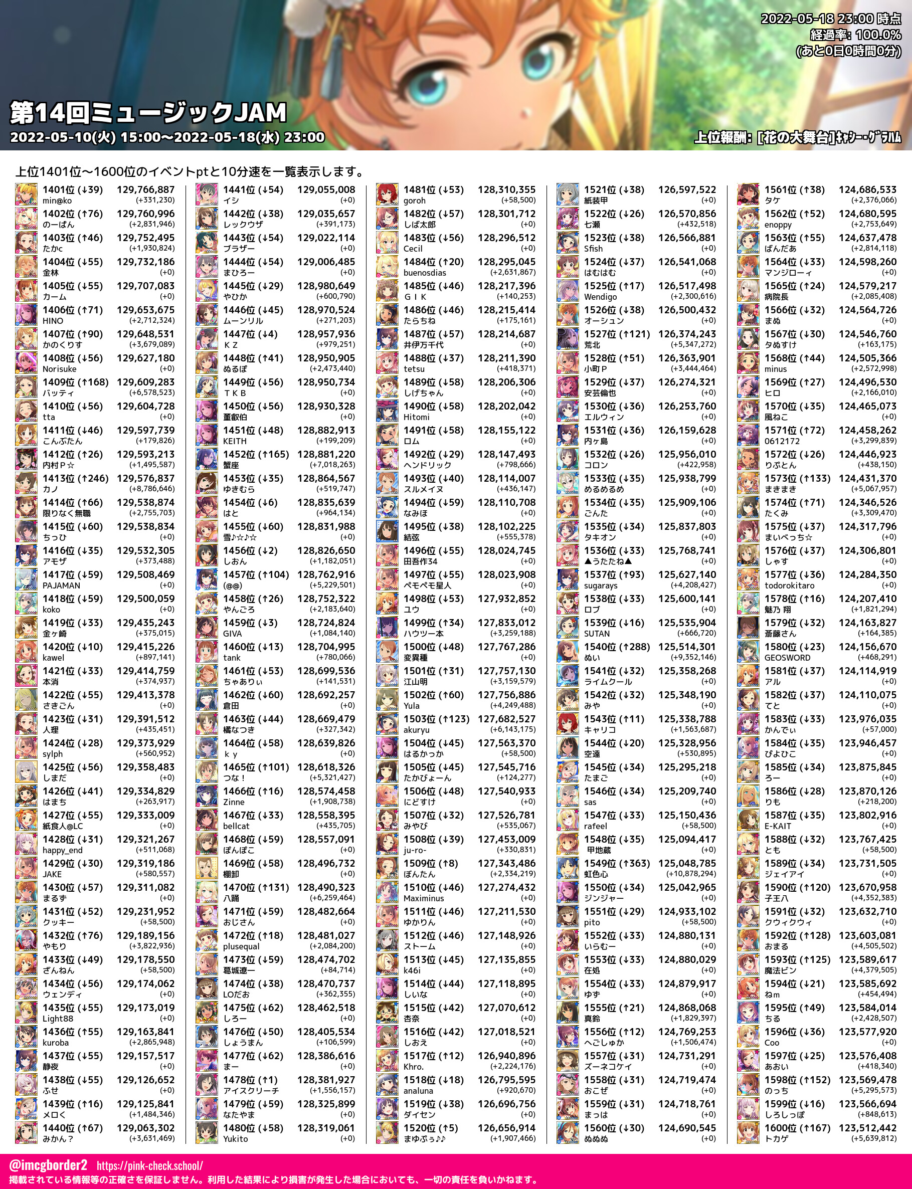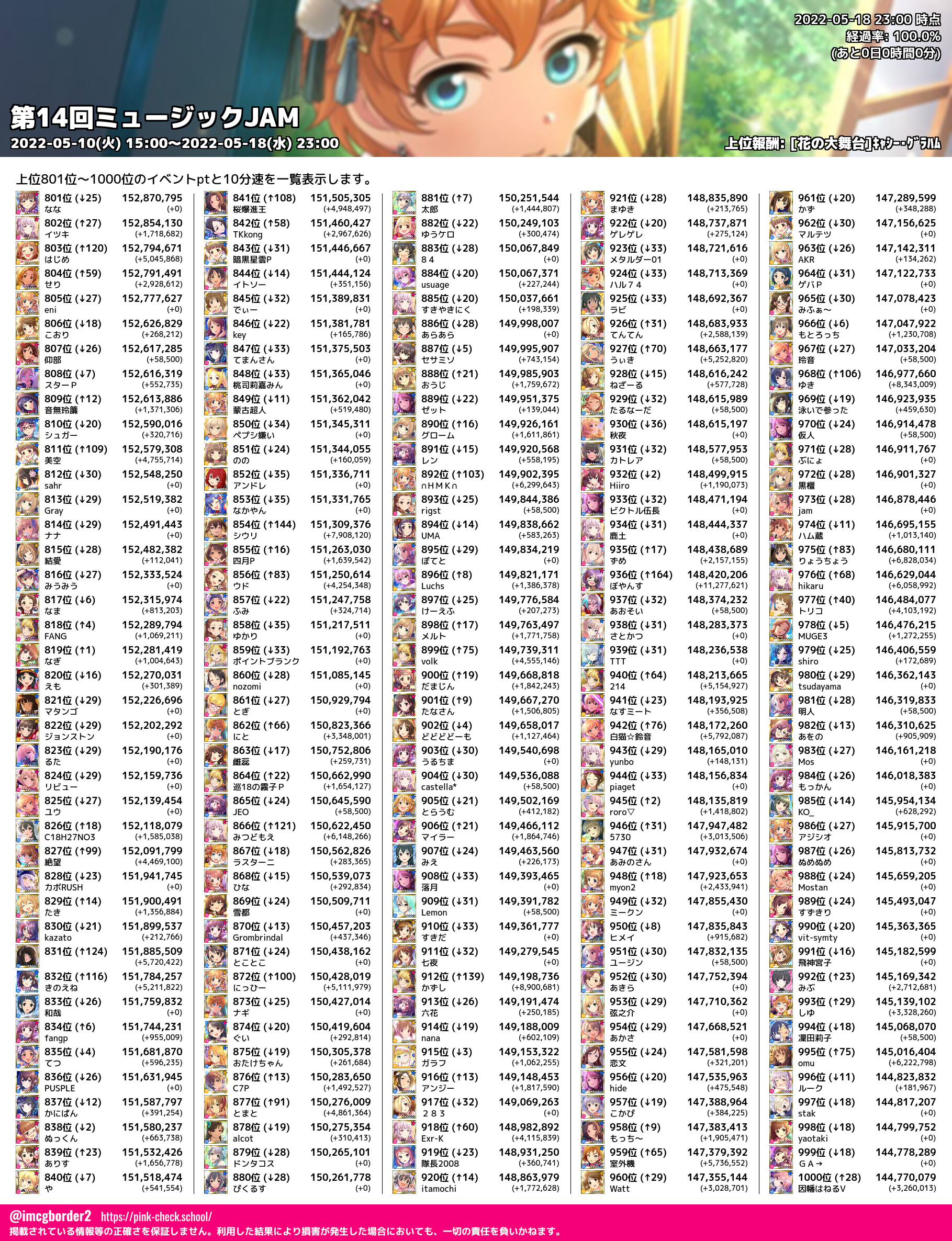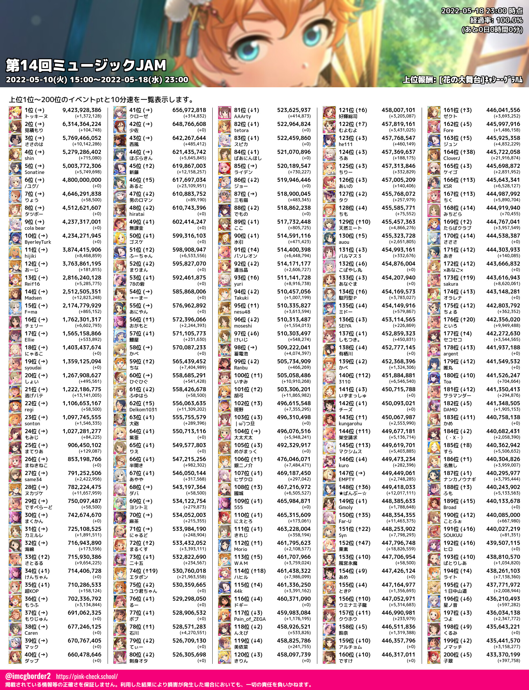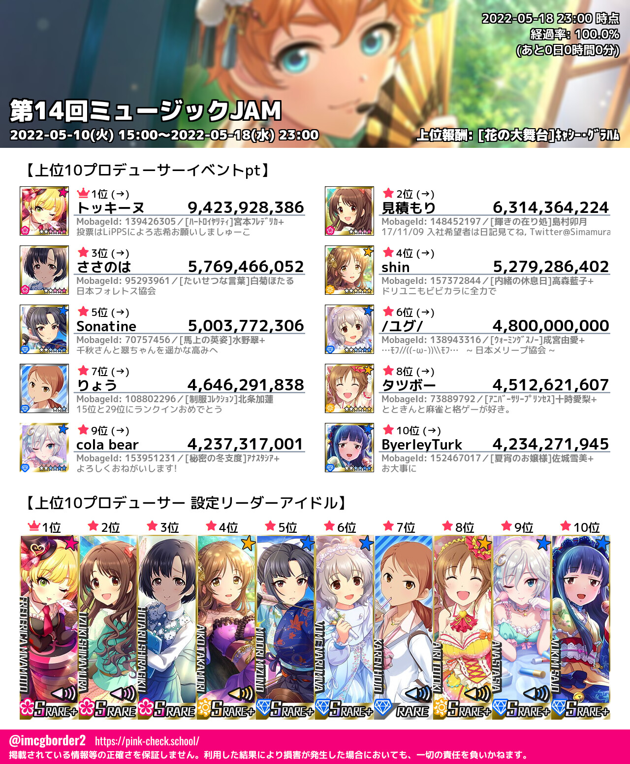 上位プロデューサースコア (2022-05-18 23:00 時点)