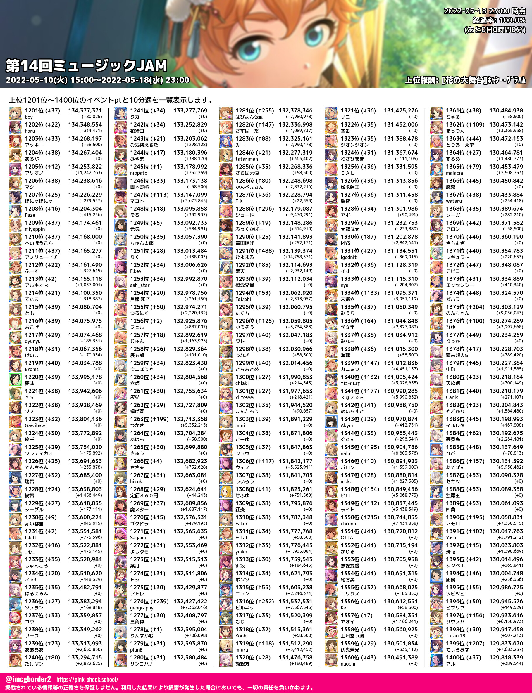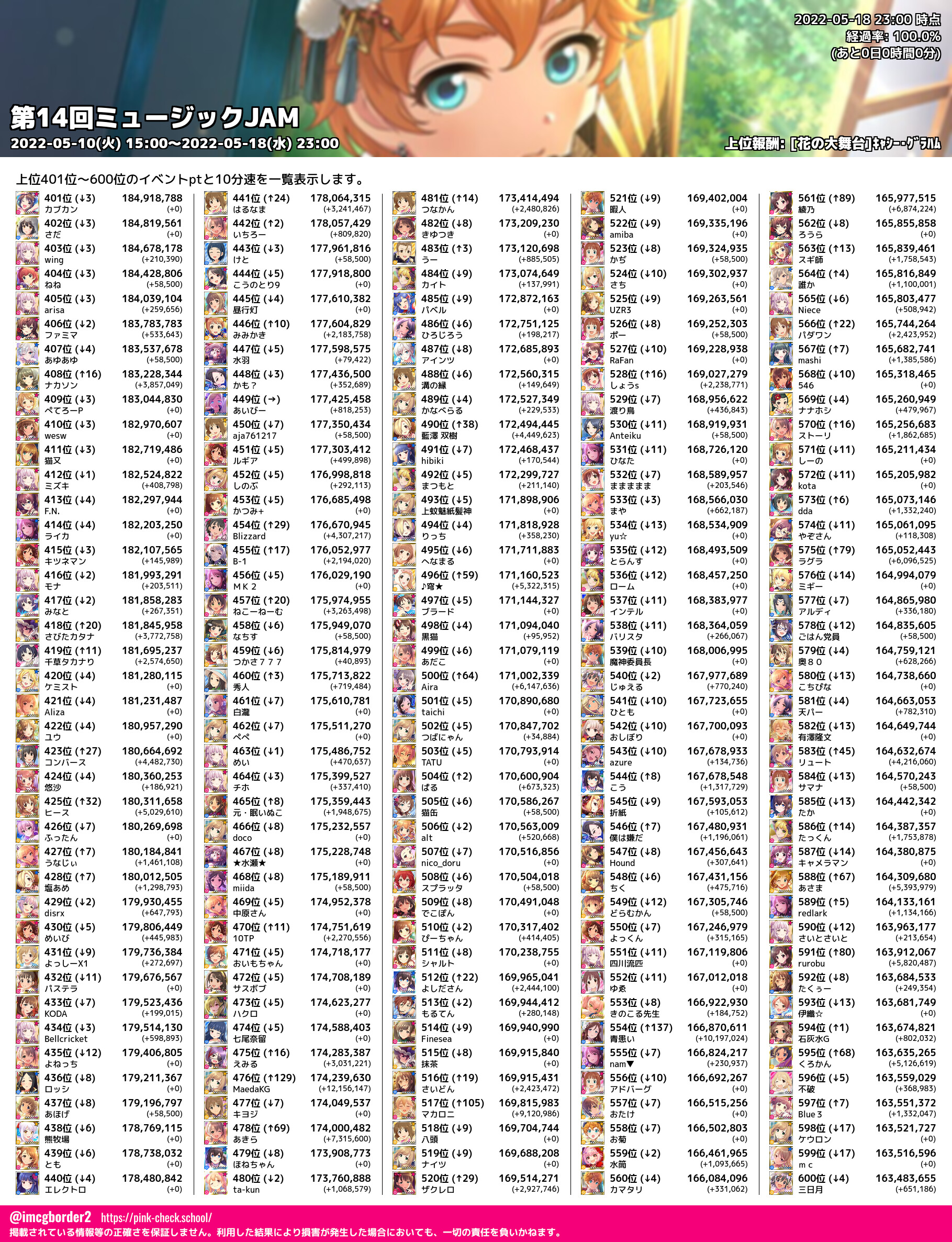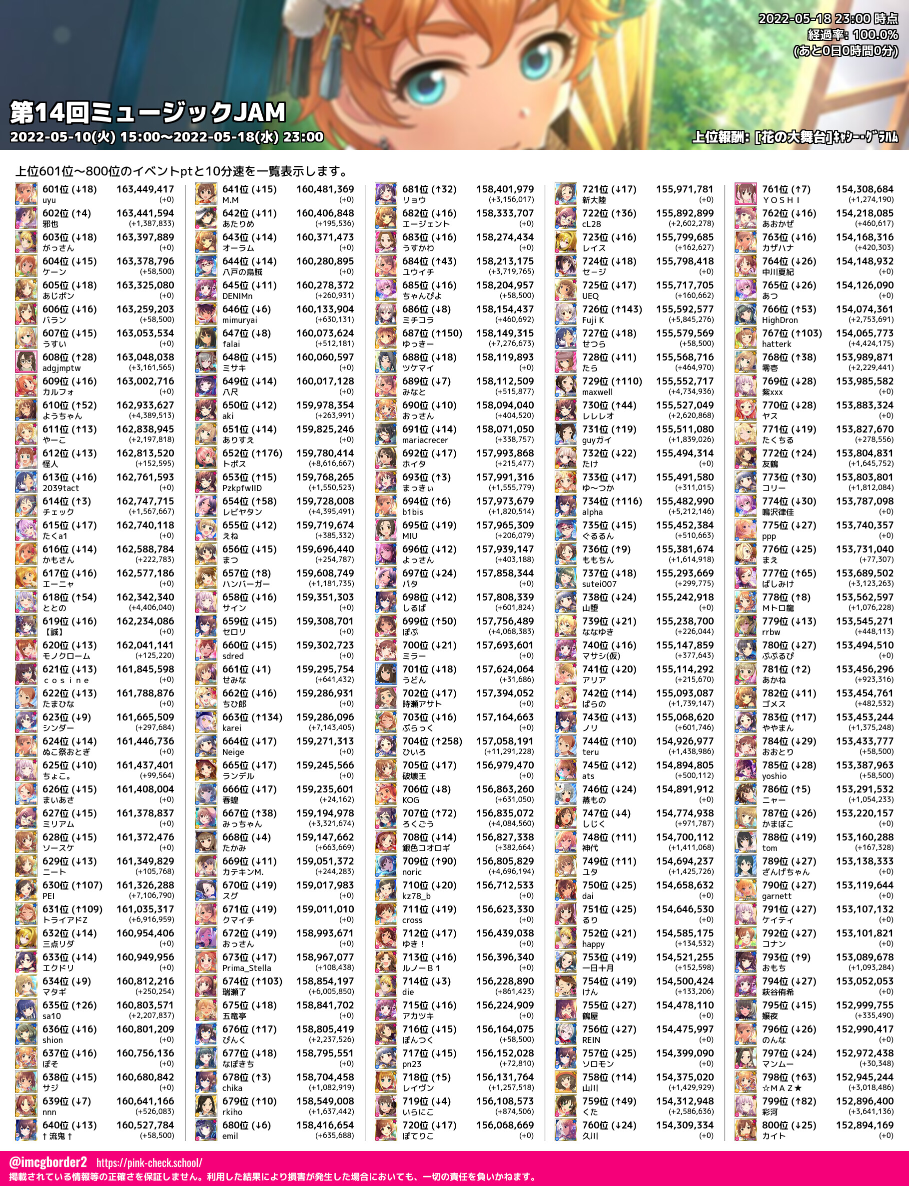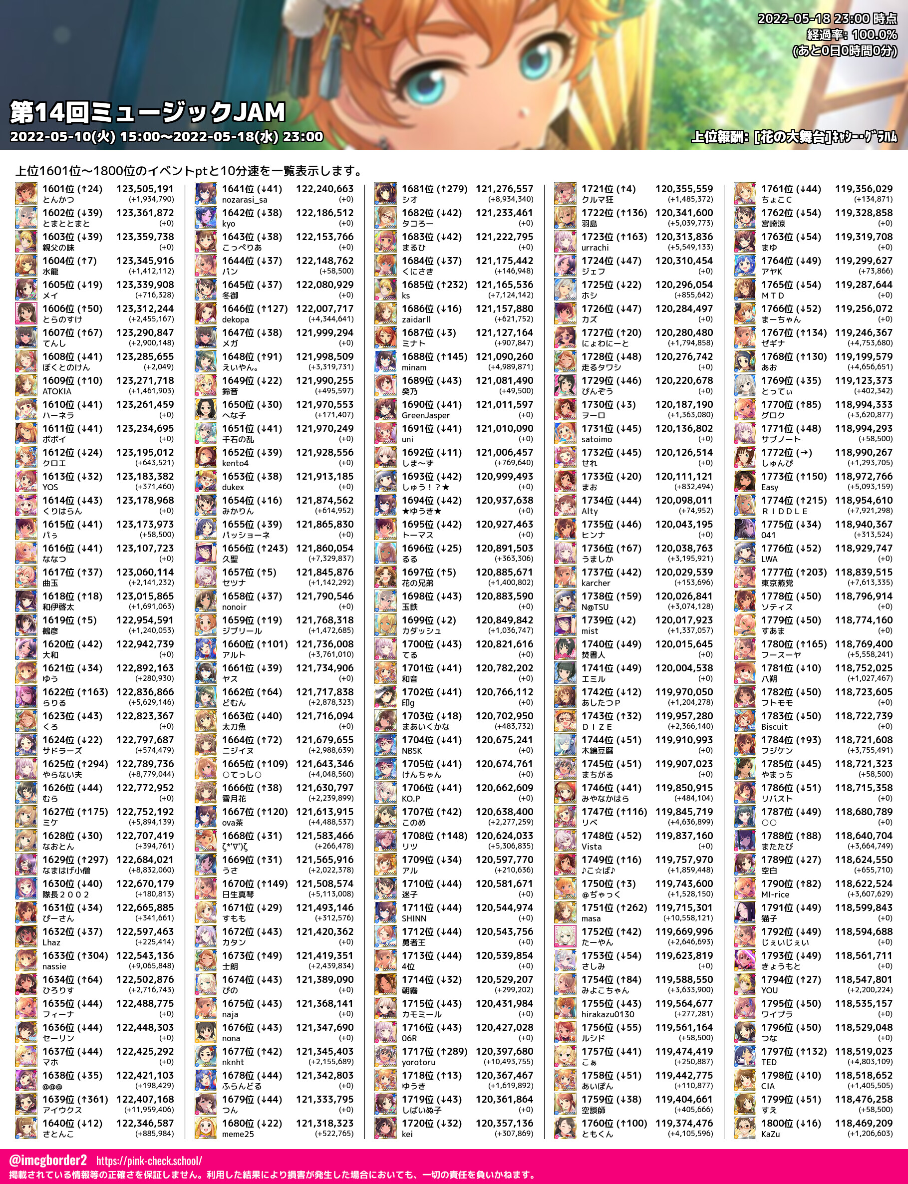 上位プロデューサースコア (2022-05-18 23:00 時点)