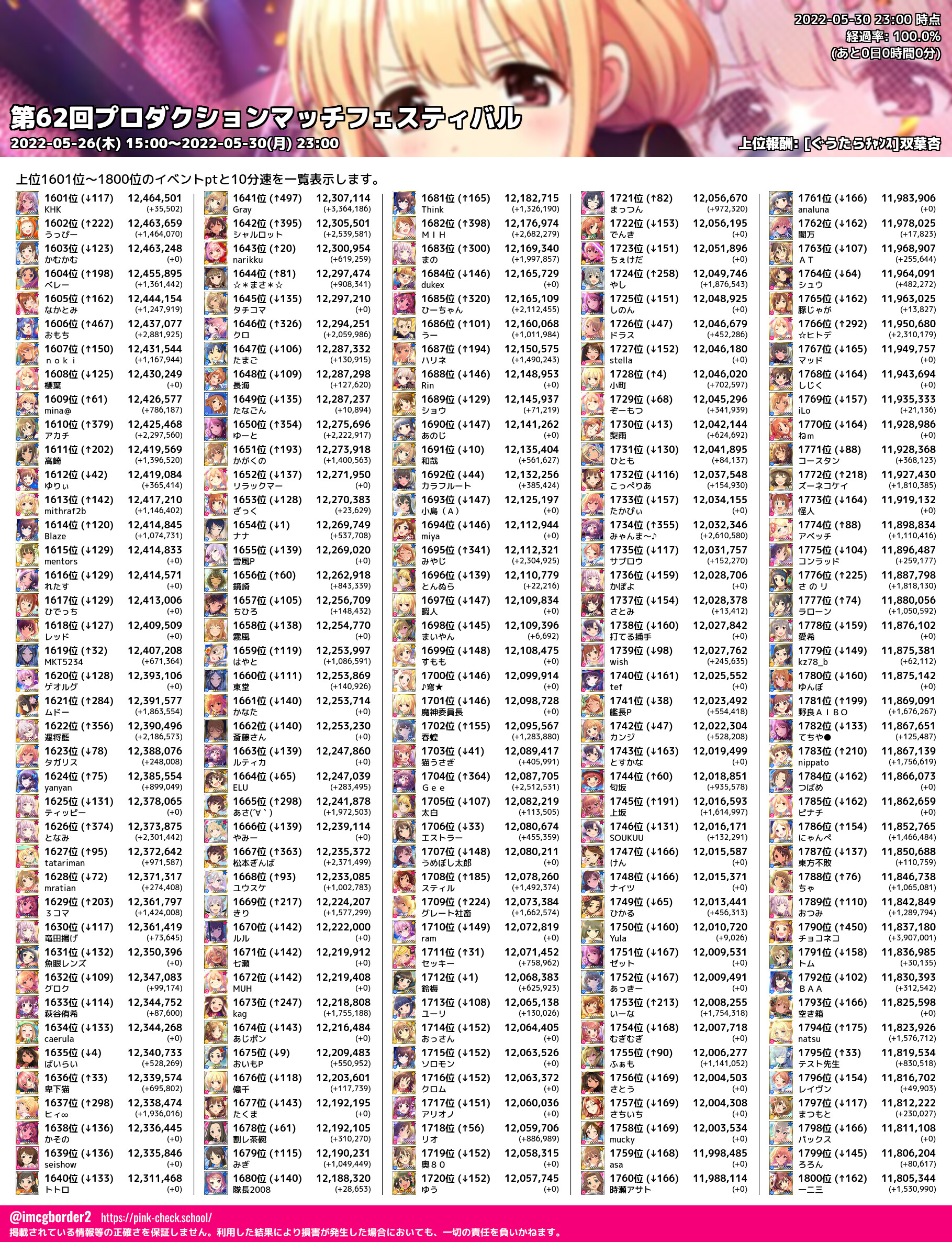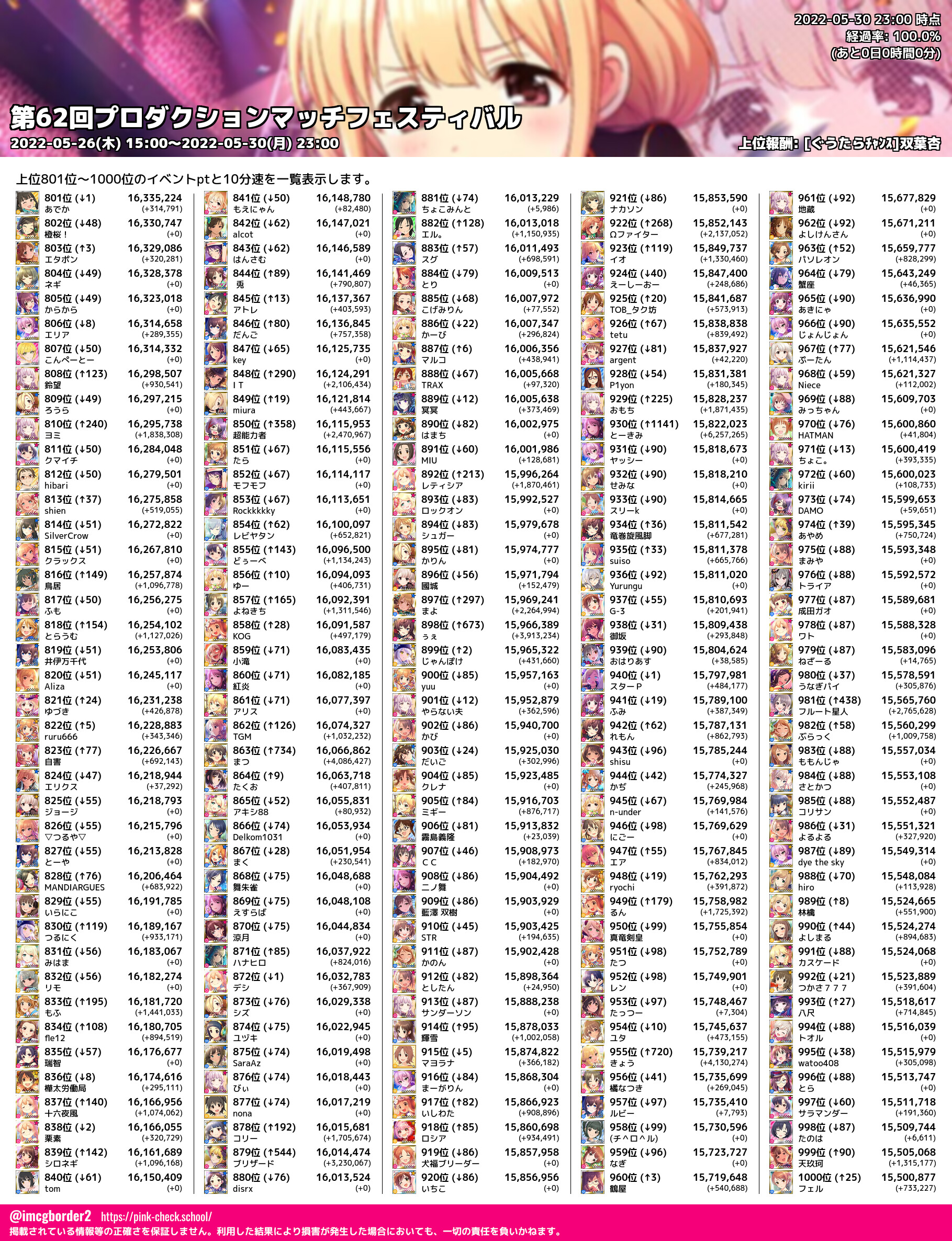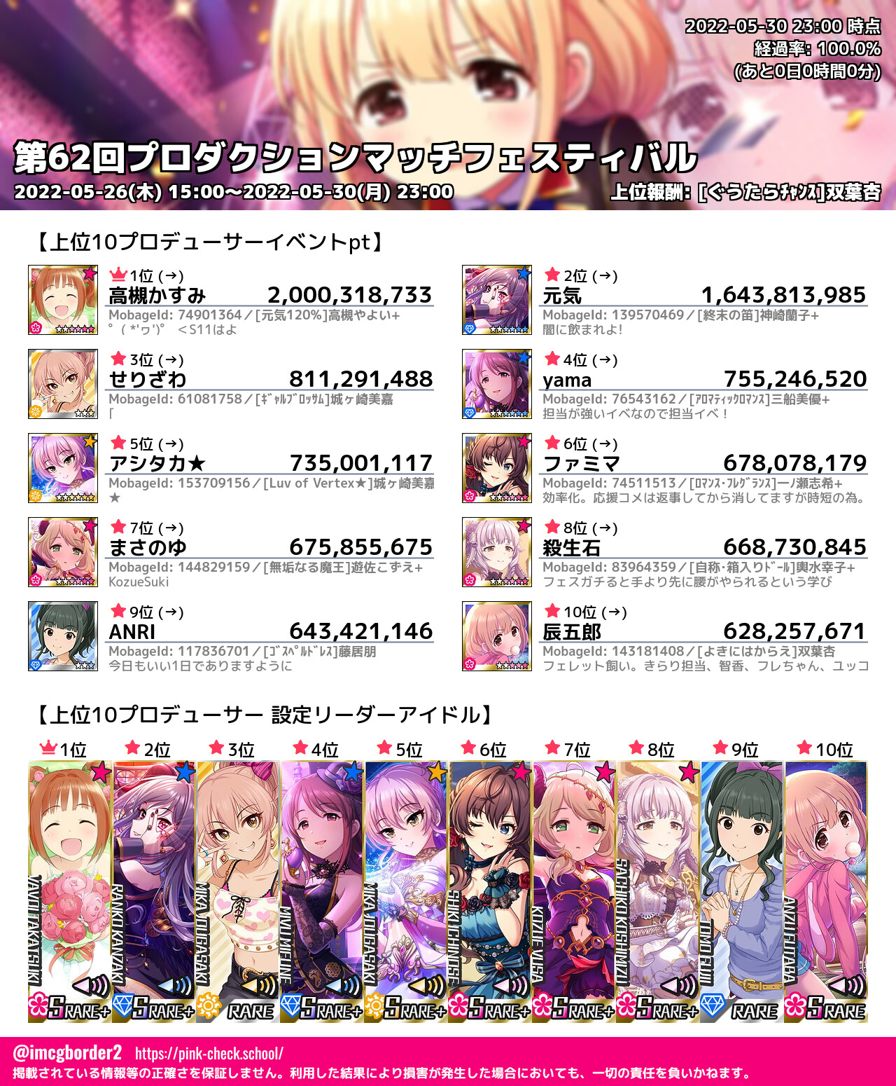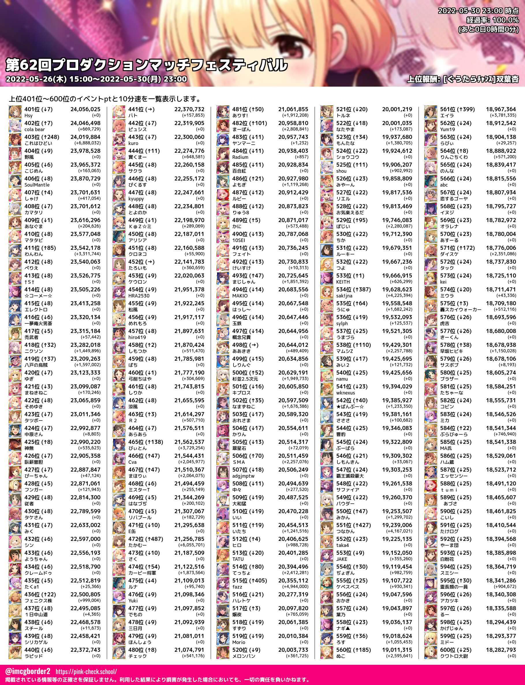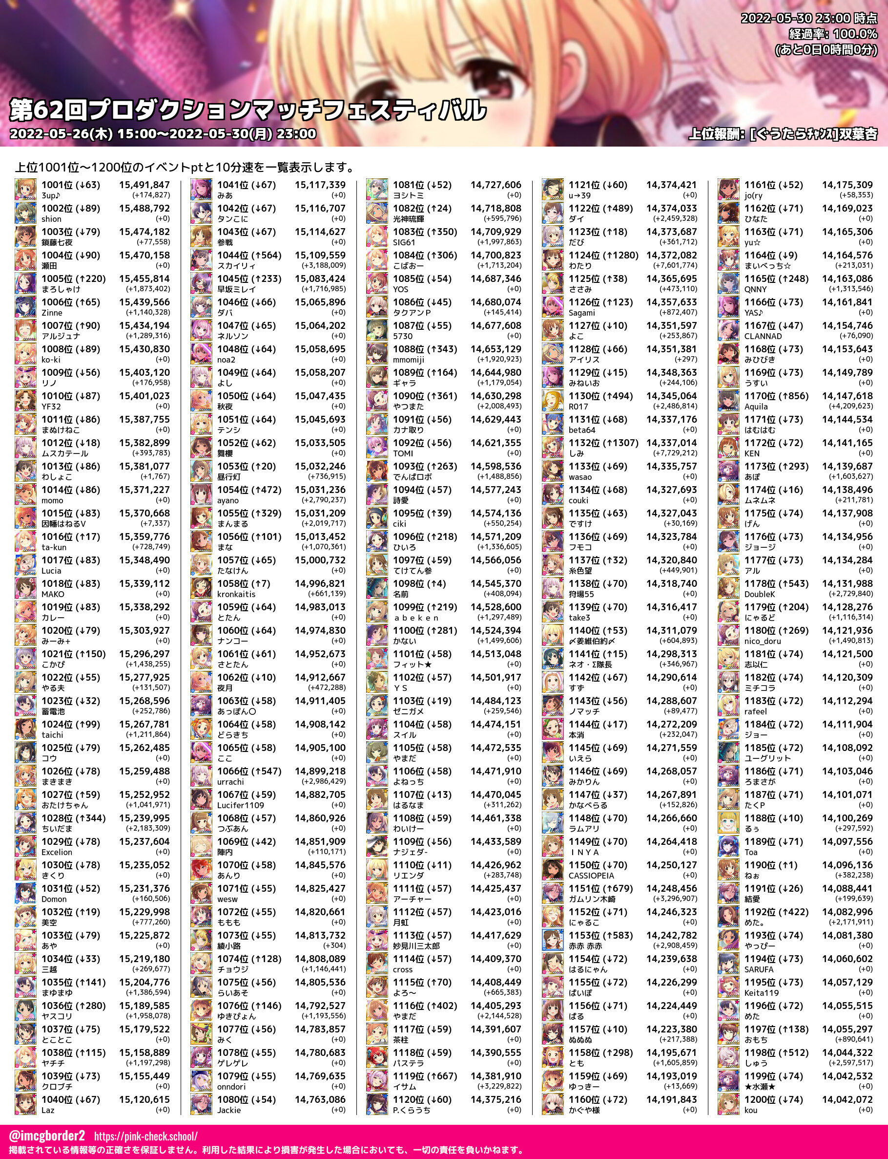 上位プロデューサースコア (2022-05-30 23:00 時点)