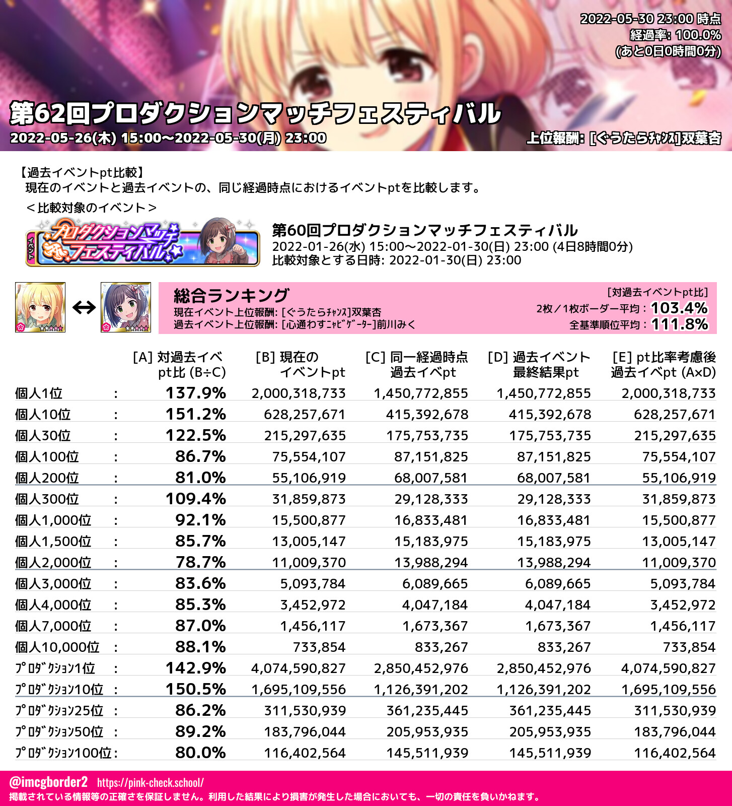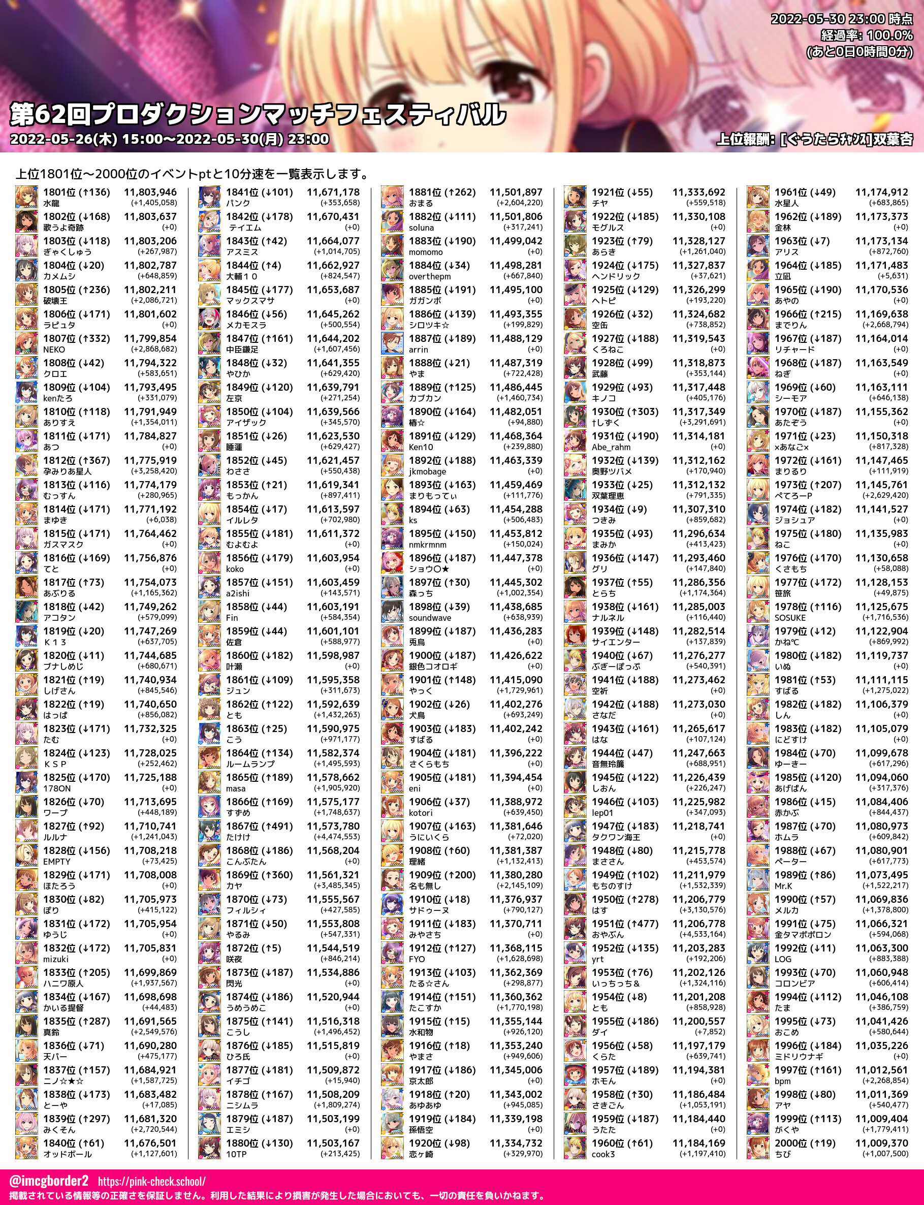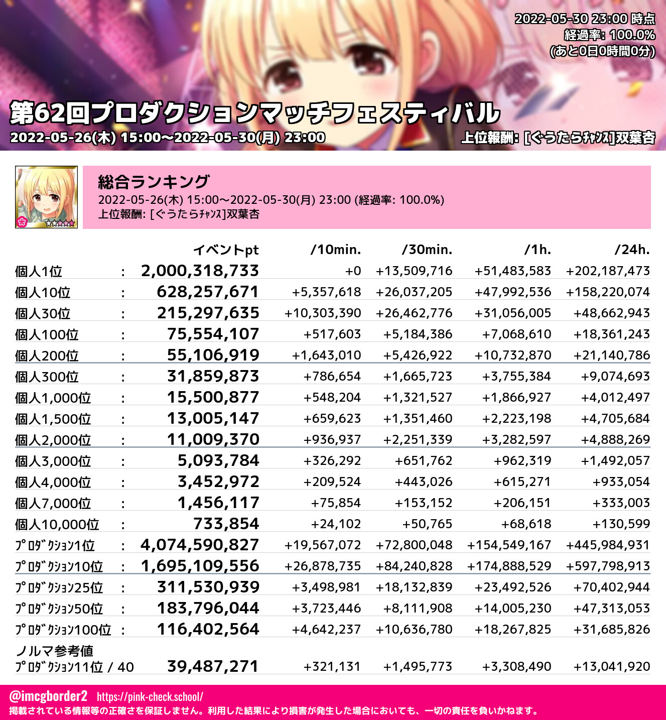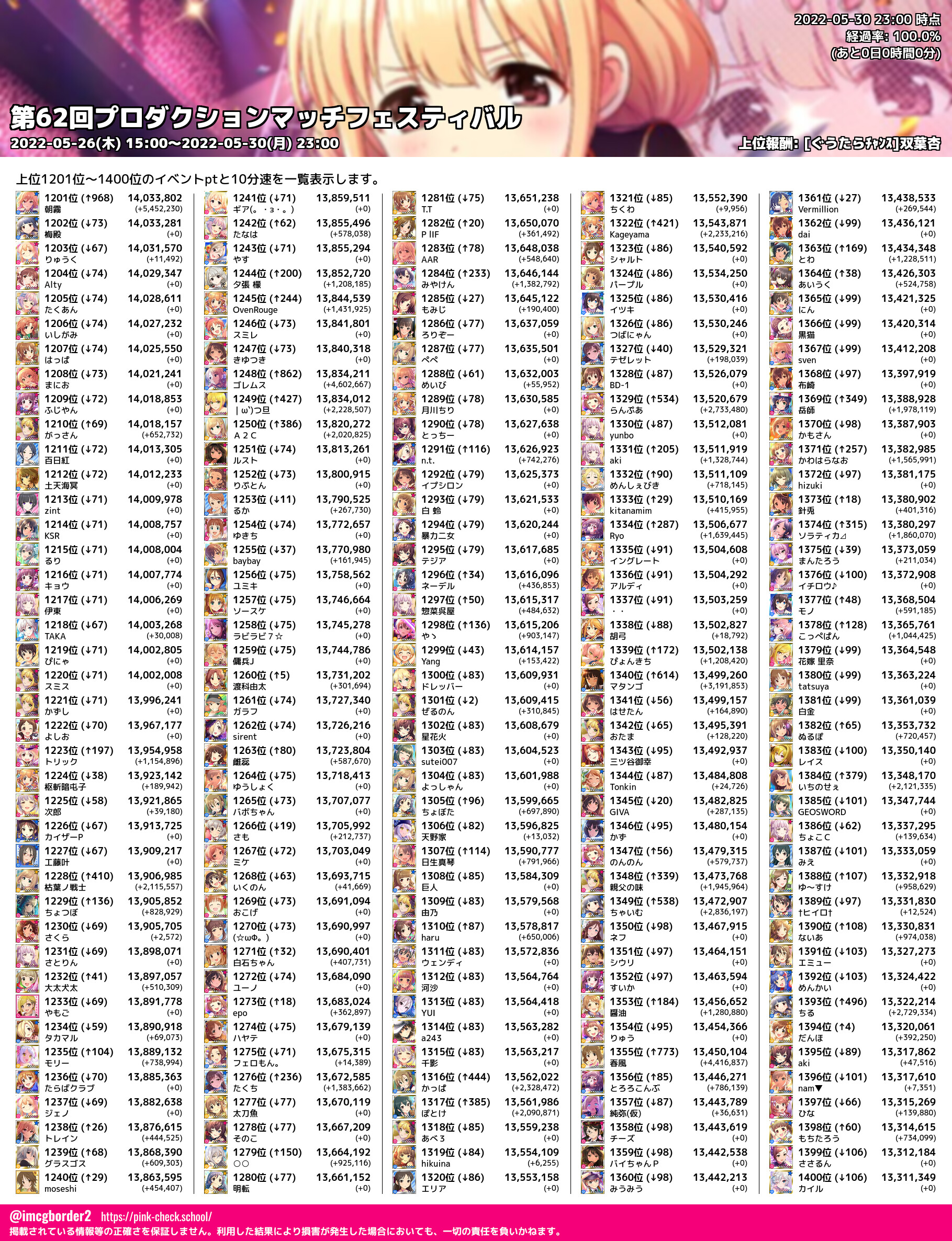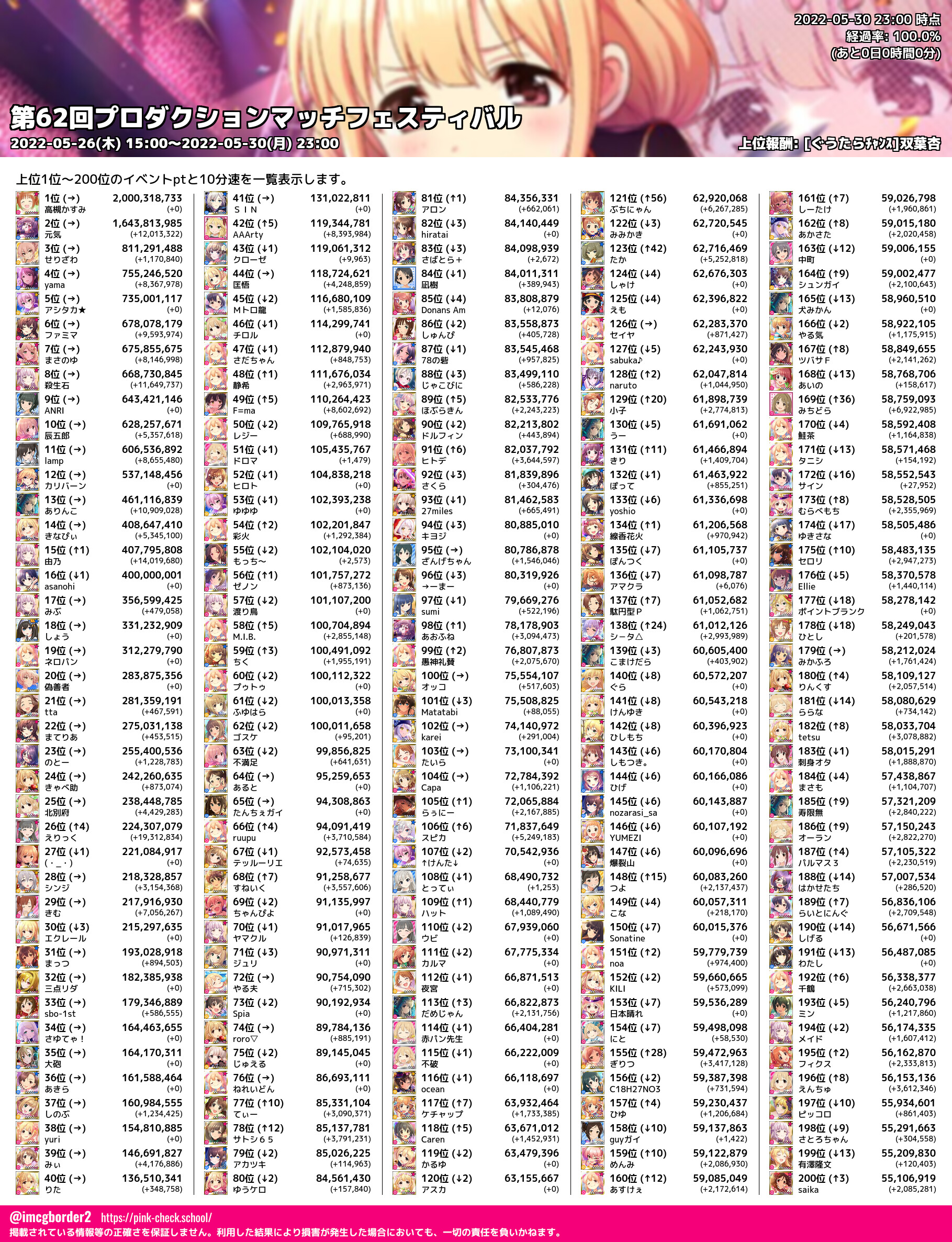 上位プロデューサースコア (2022-05-30 23:00 時点)