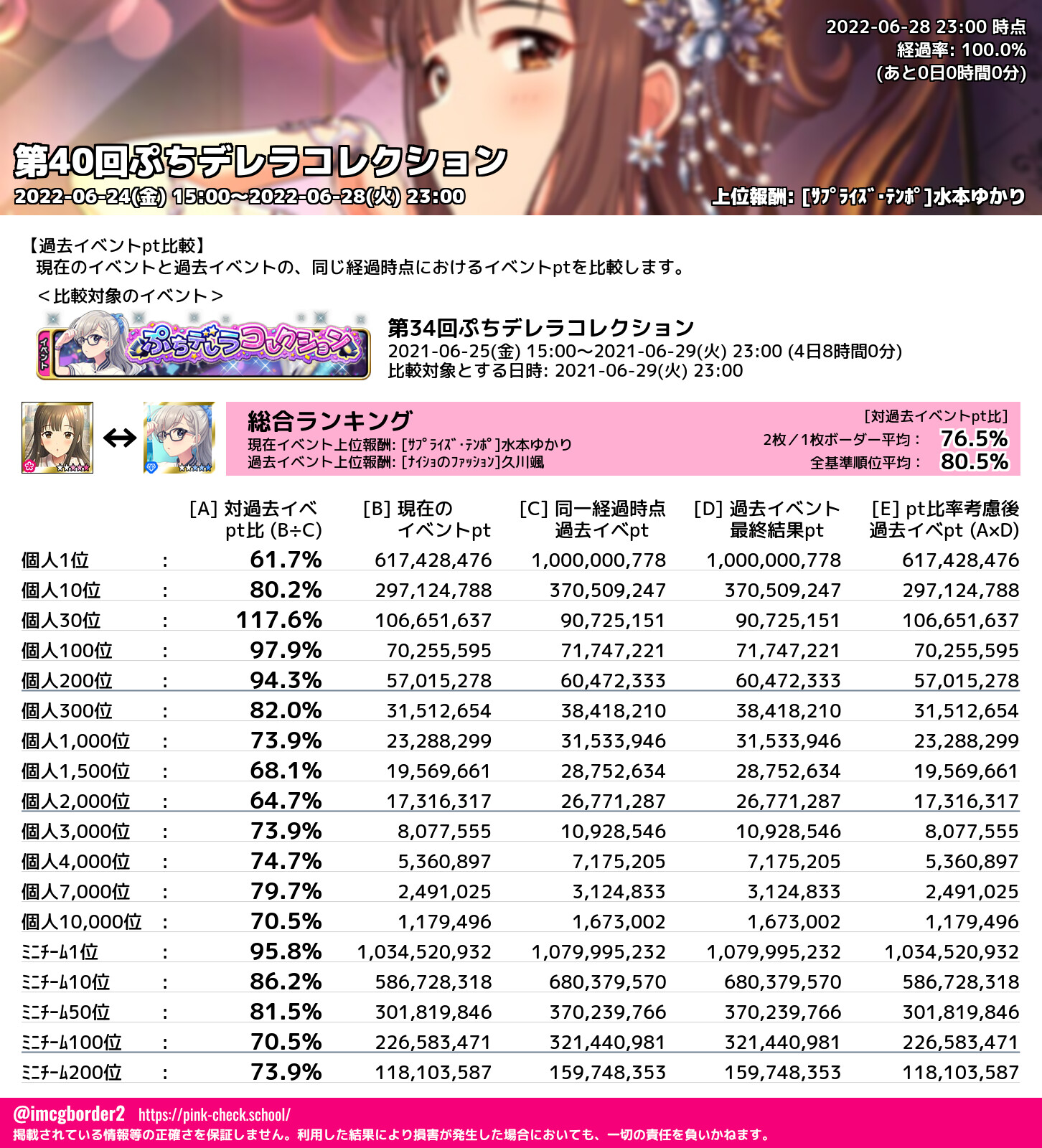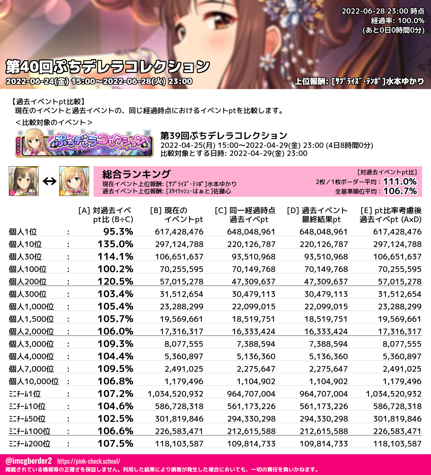 第40回ぷちデレラコレクション 結果集計完了