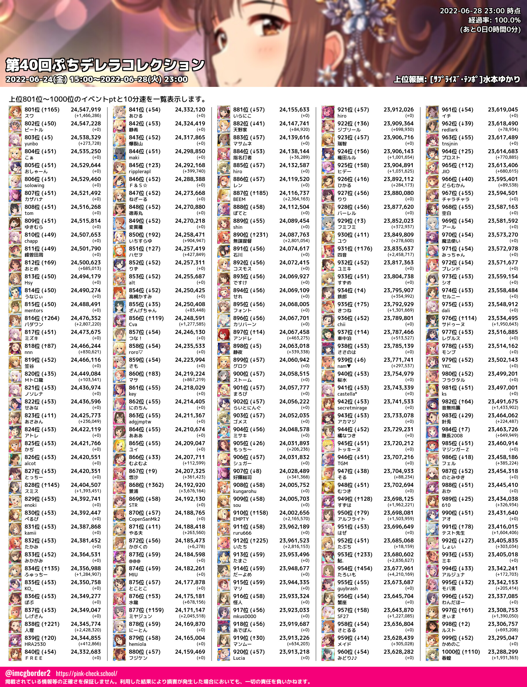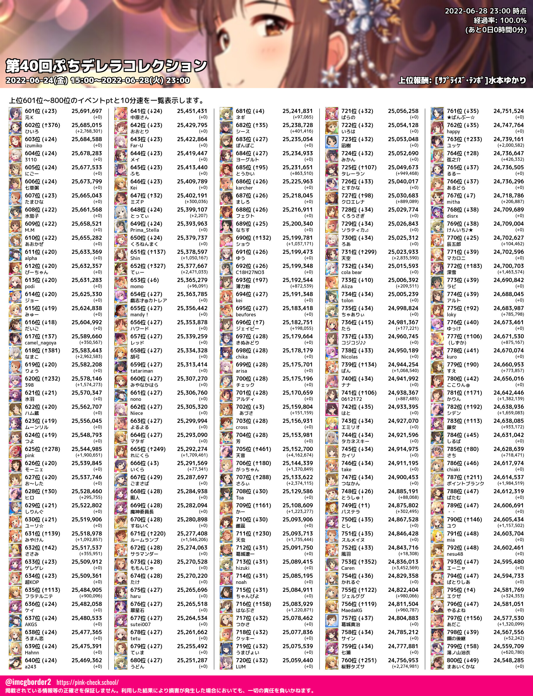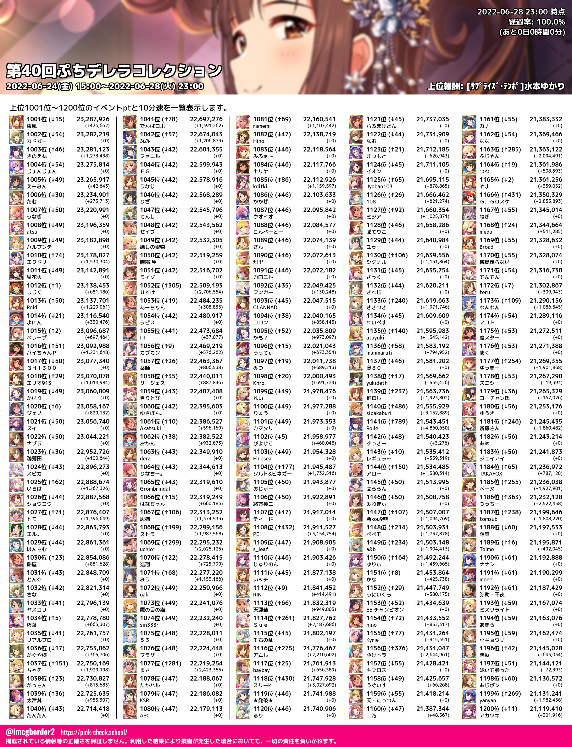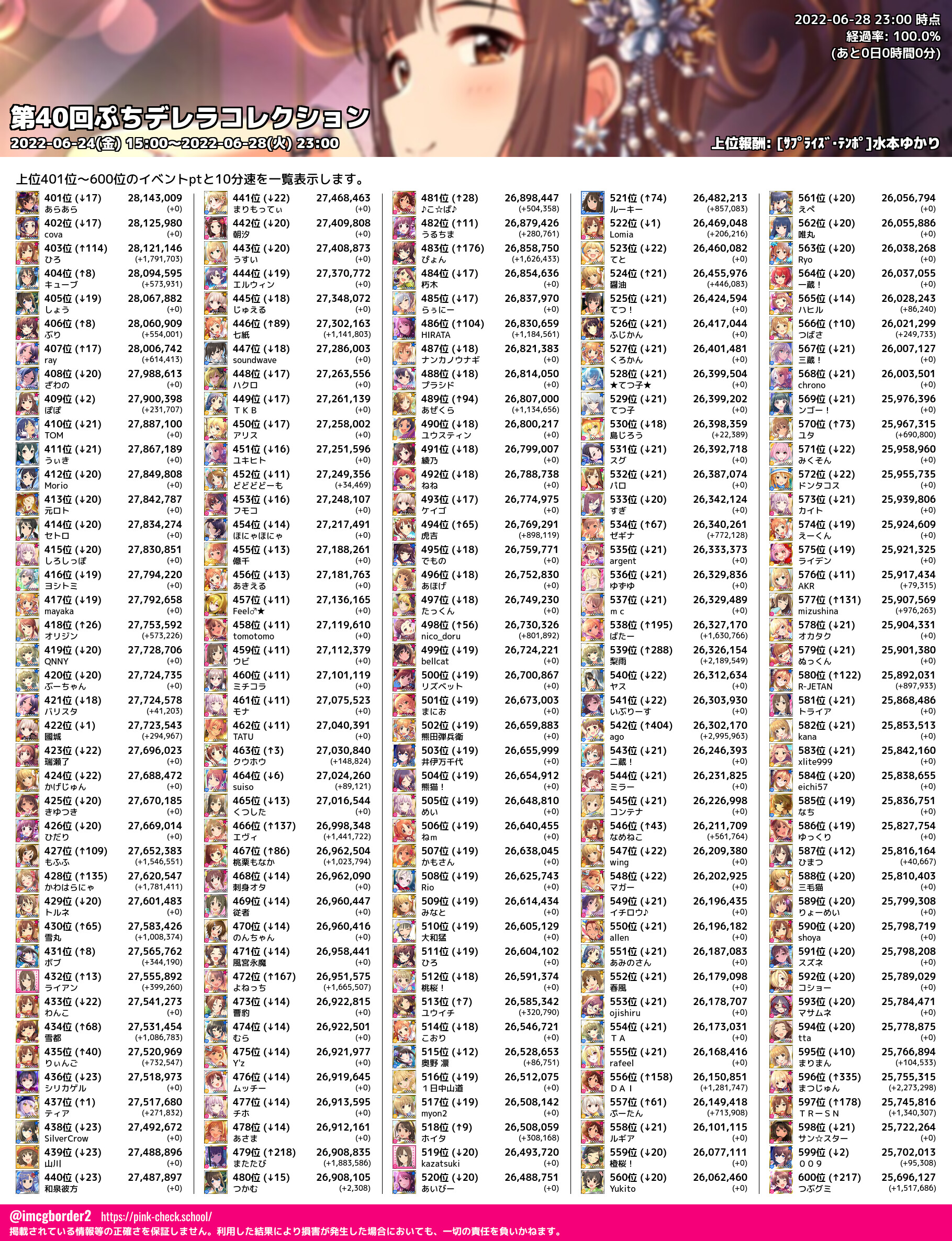 上位プロデューサースコア (2022-06-28 23:00 時点)
