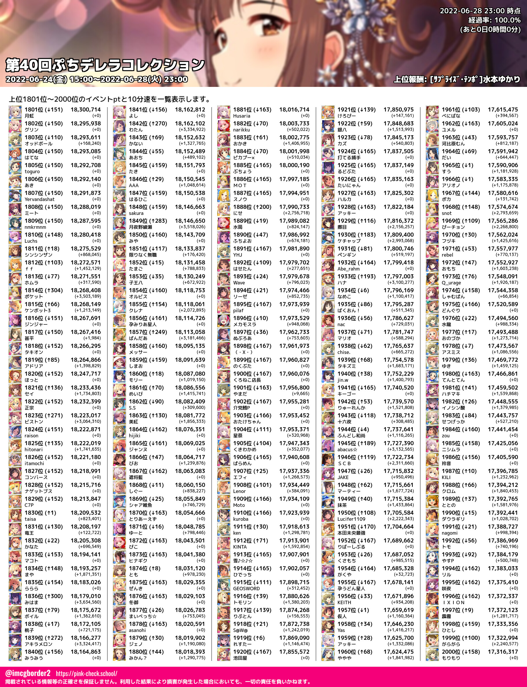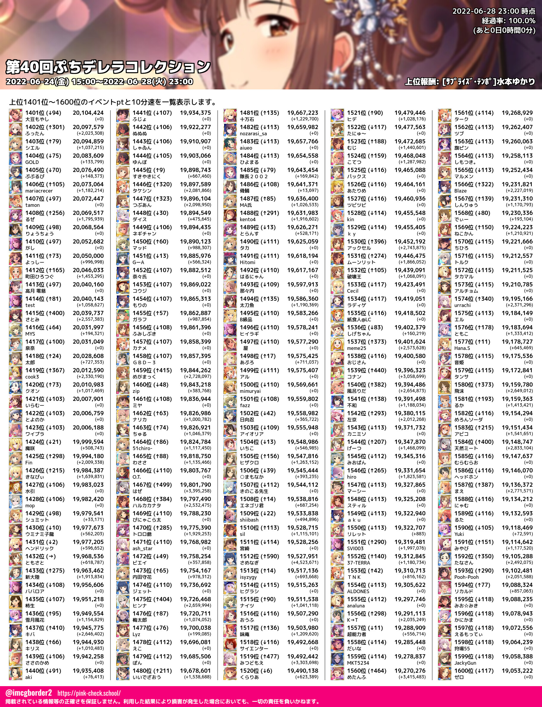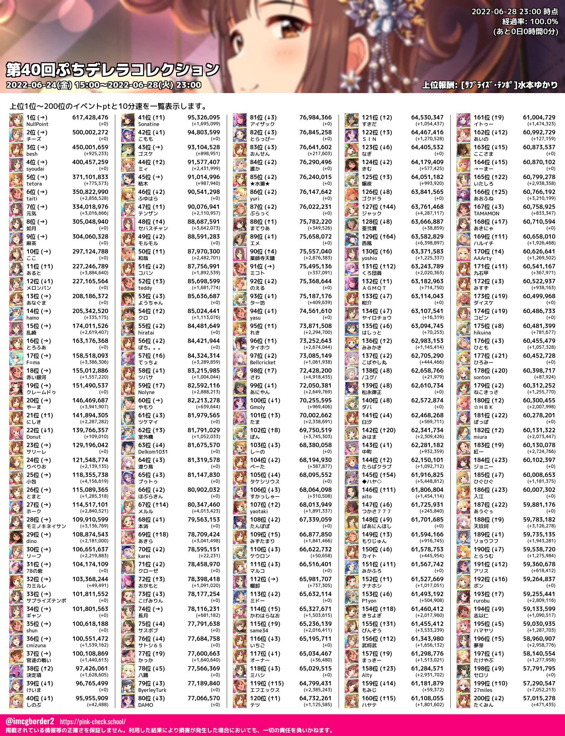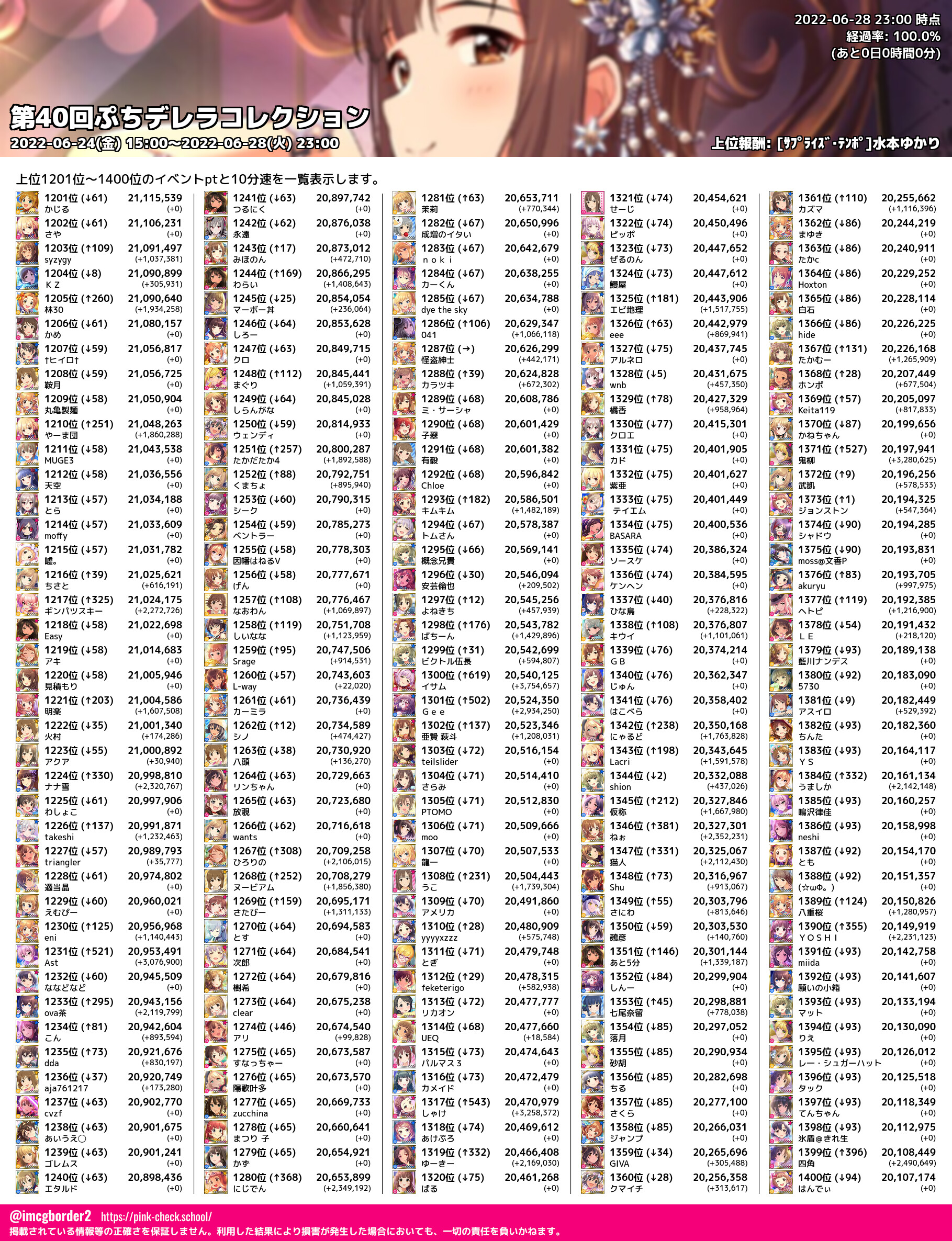 上位プロデューサースコア (2022-06-28 23:00 時点)