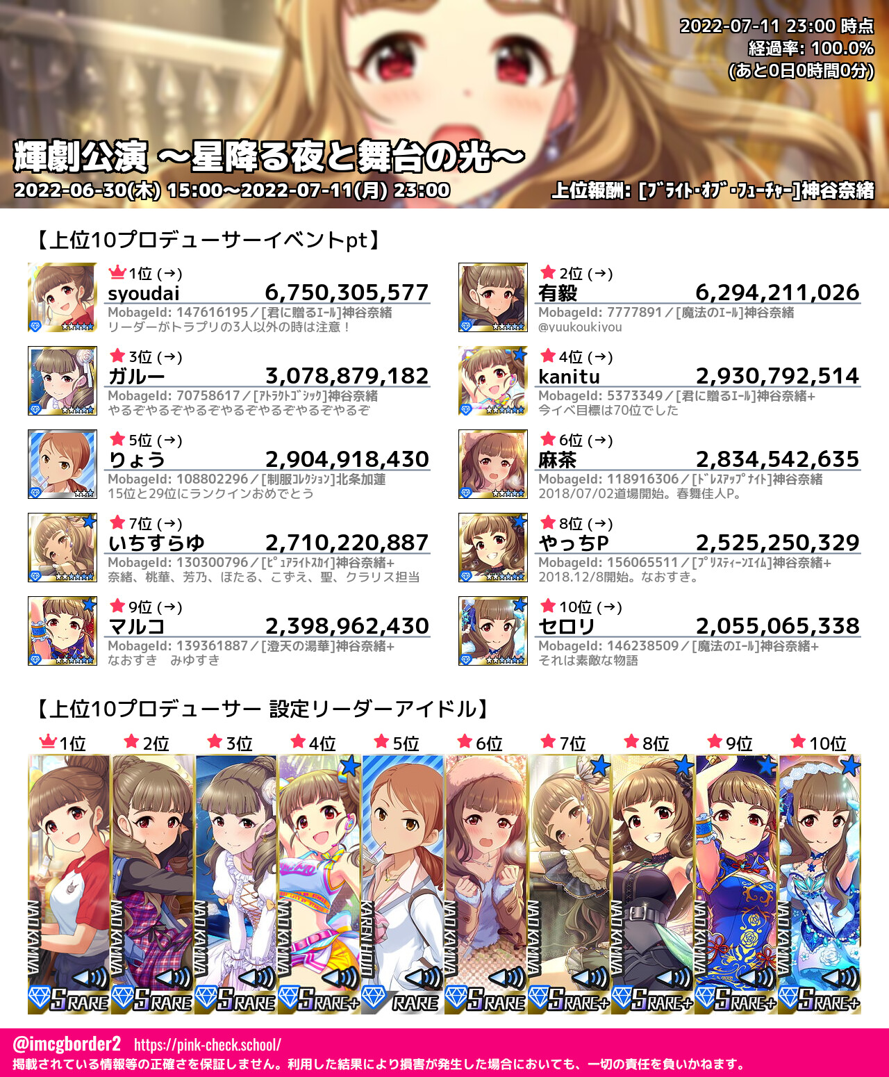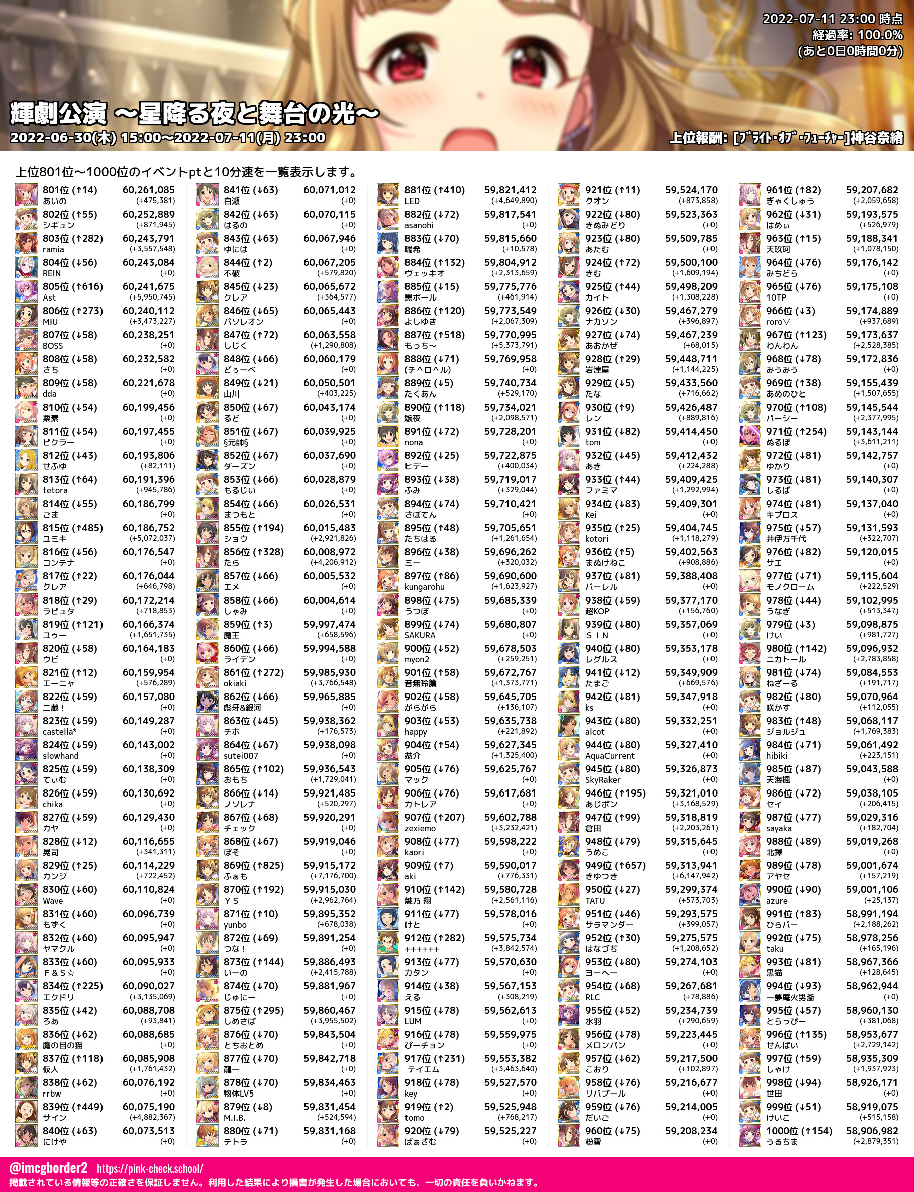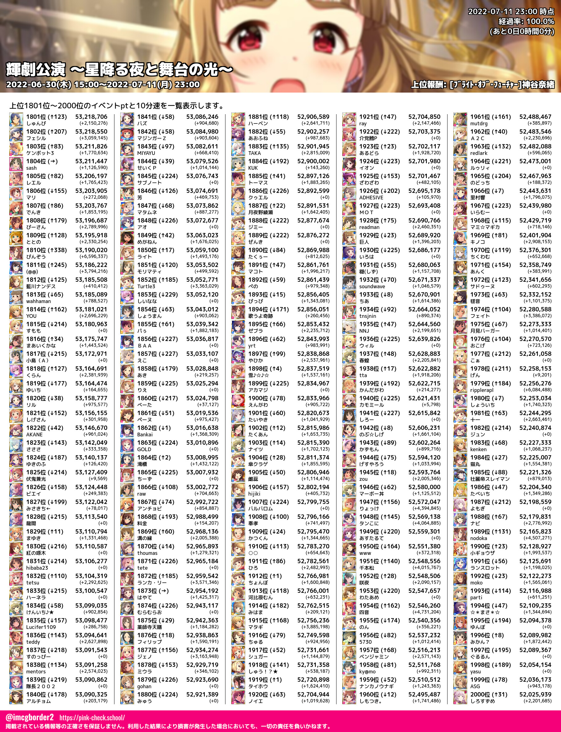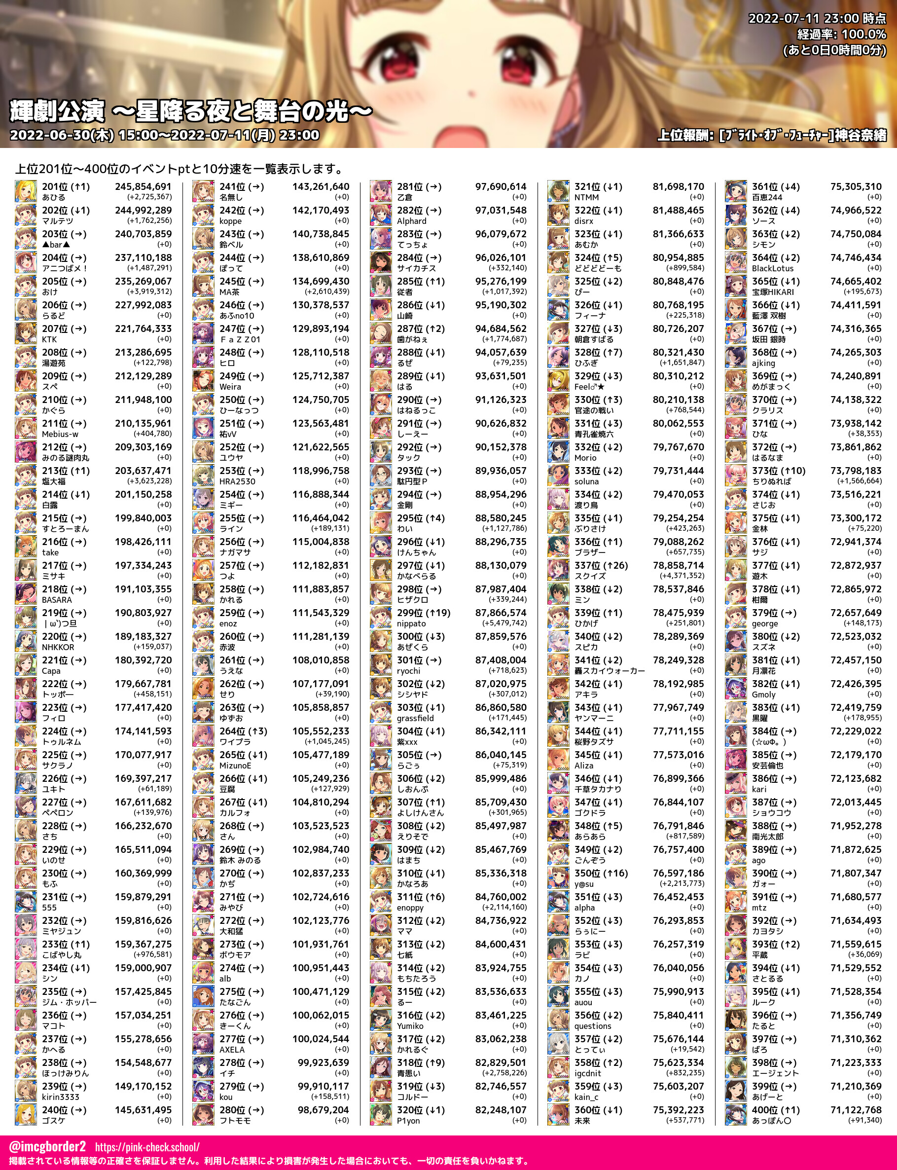 上位プロデューサースコア (2022-07-11 23:00 時点)