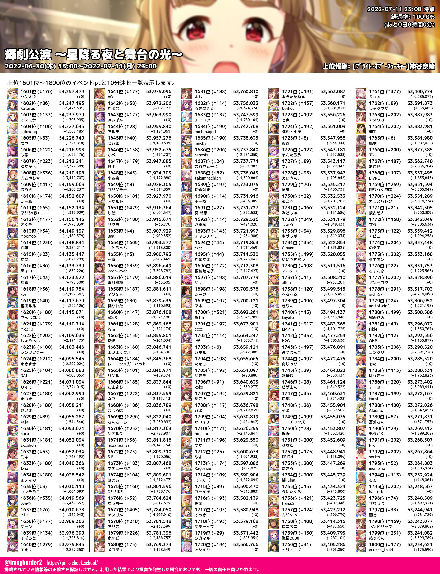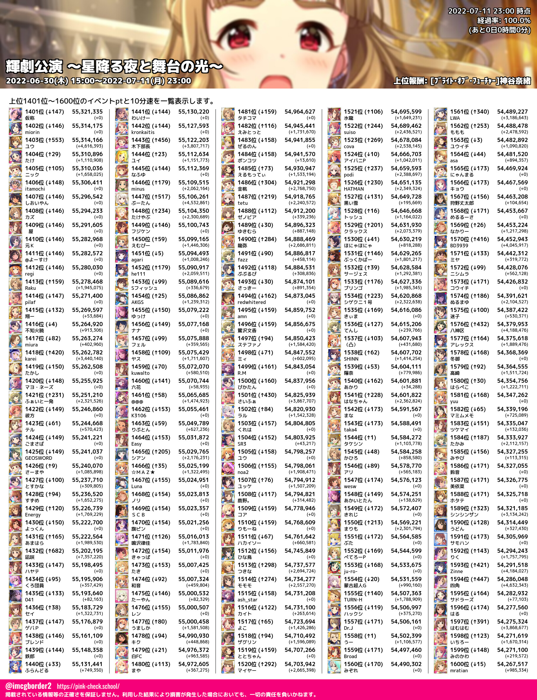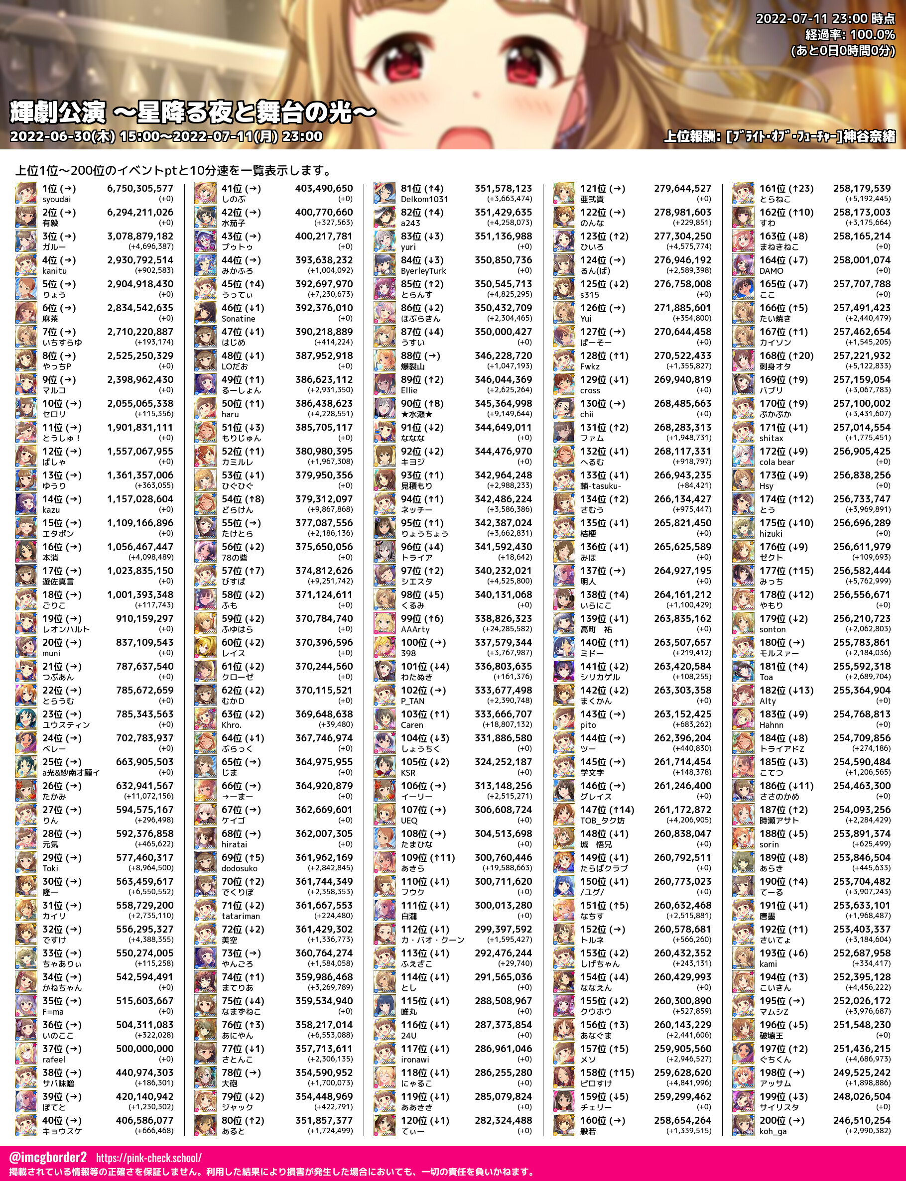 上位プロデューサースコア (2022-07-11 23:00 時点)