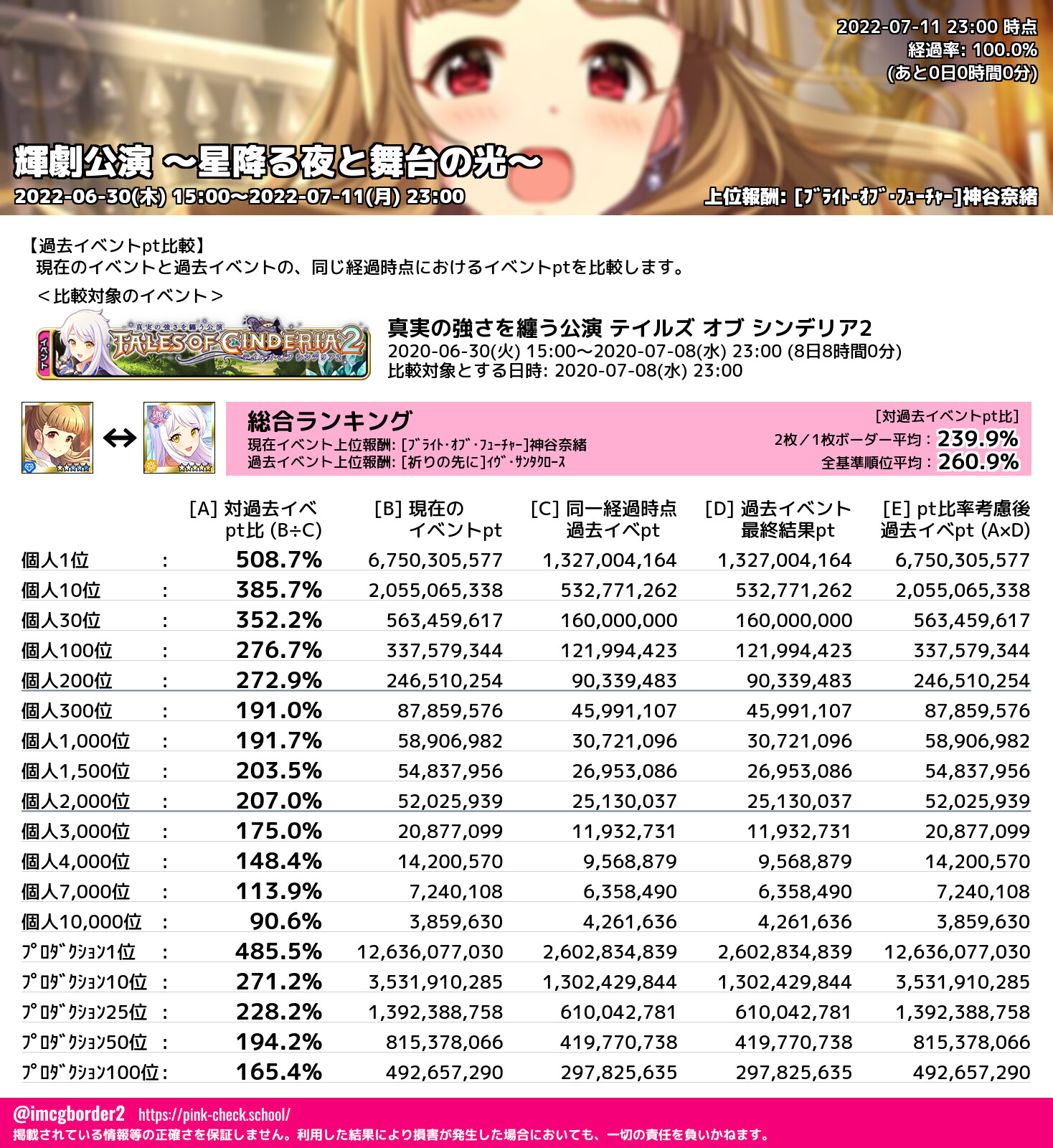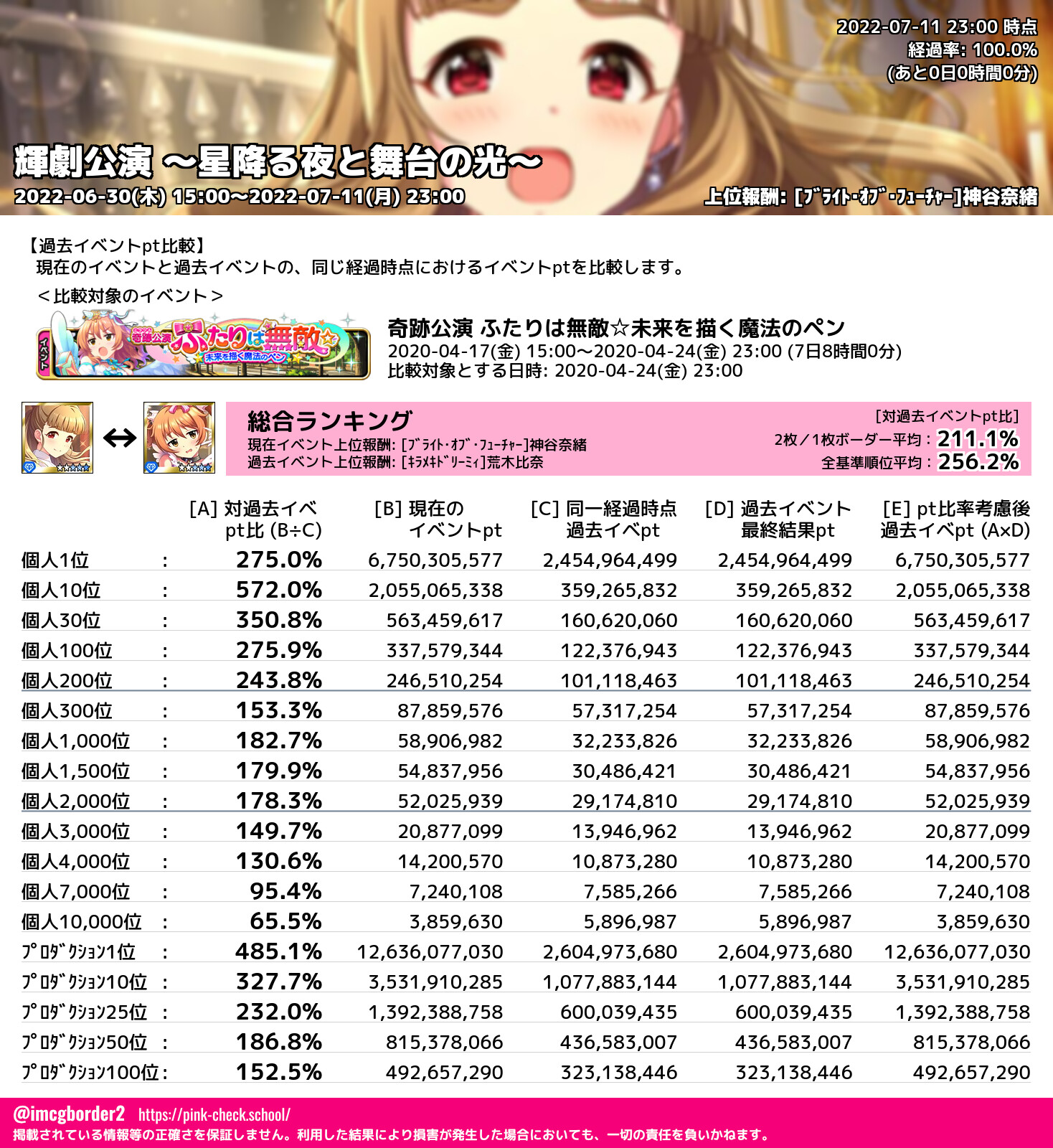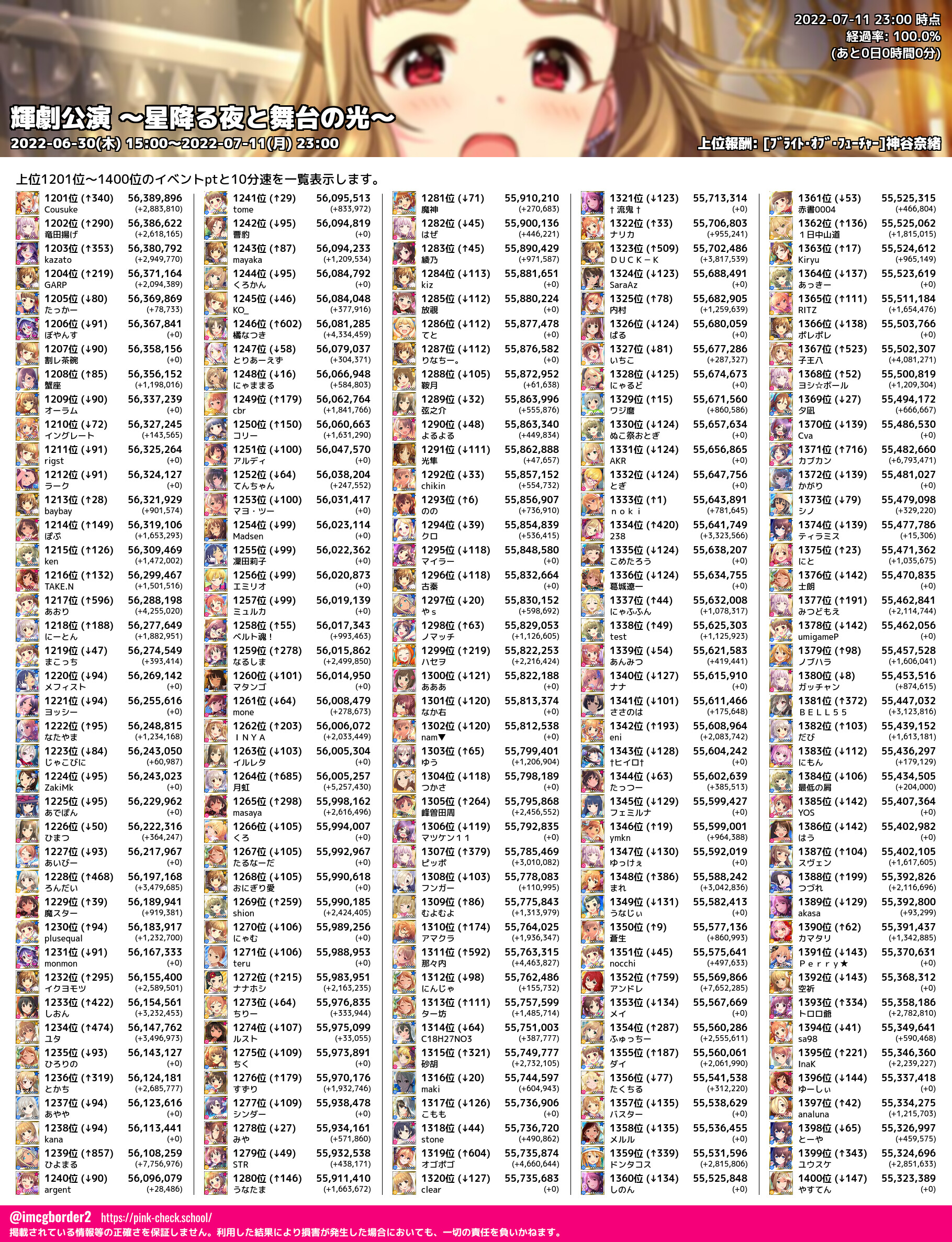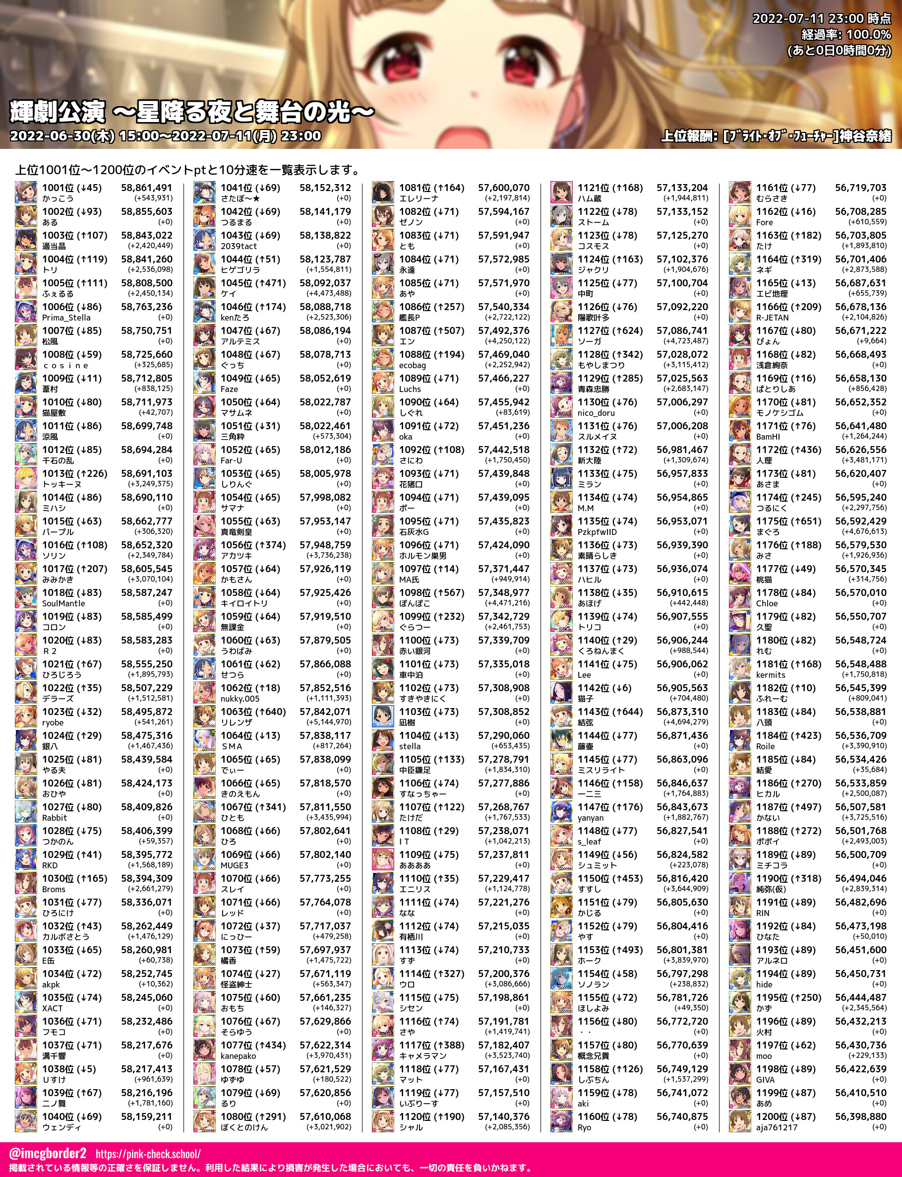 上位プロデューサースコア (2022-07-11 23:00 時点)