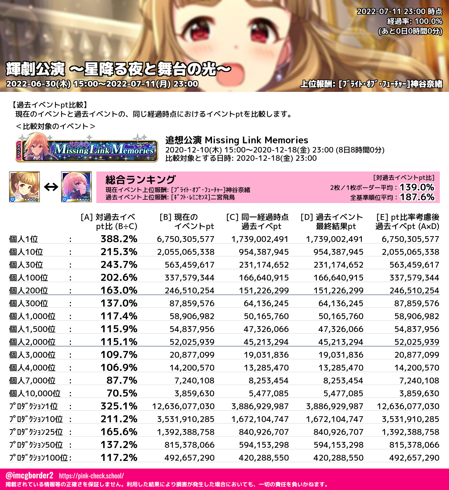輝劇公演 ~星降る夜と舞台の光~ 結果集計完了