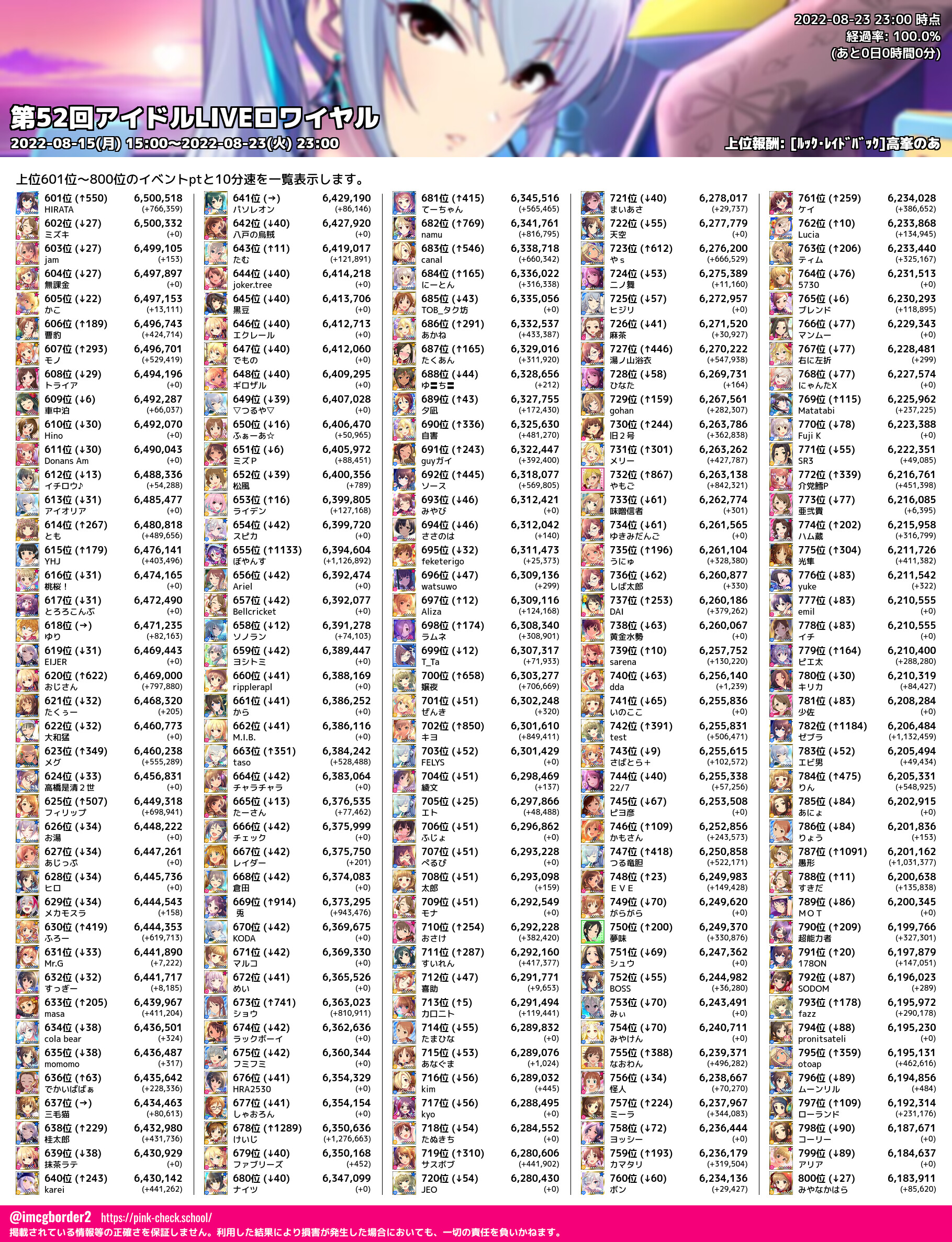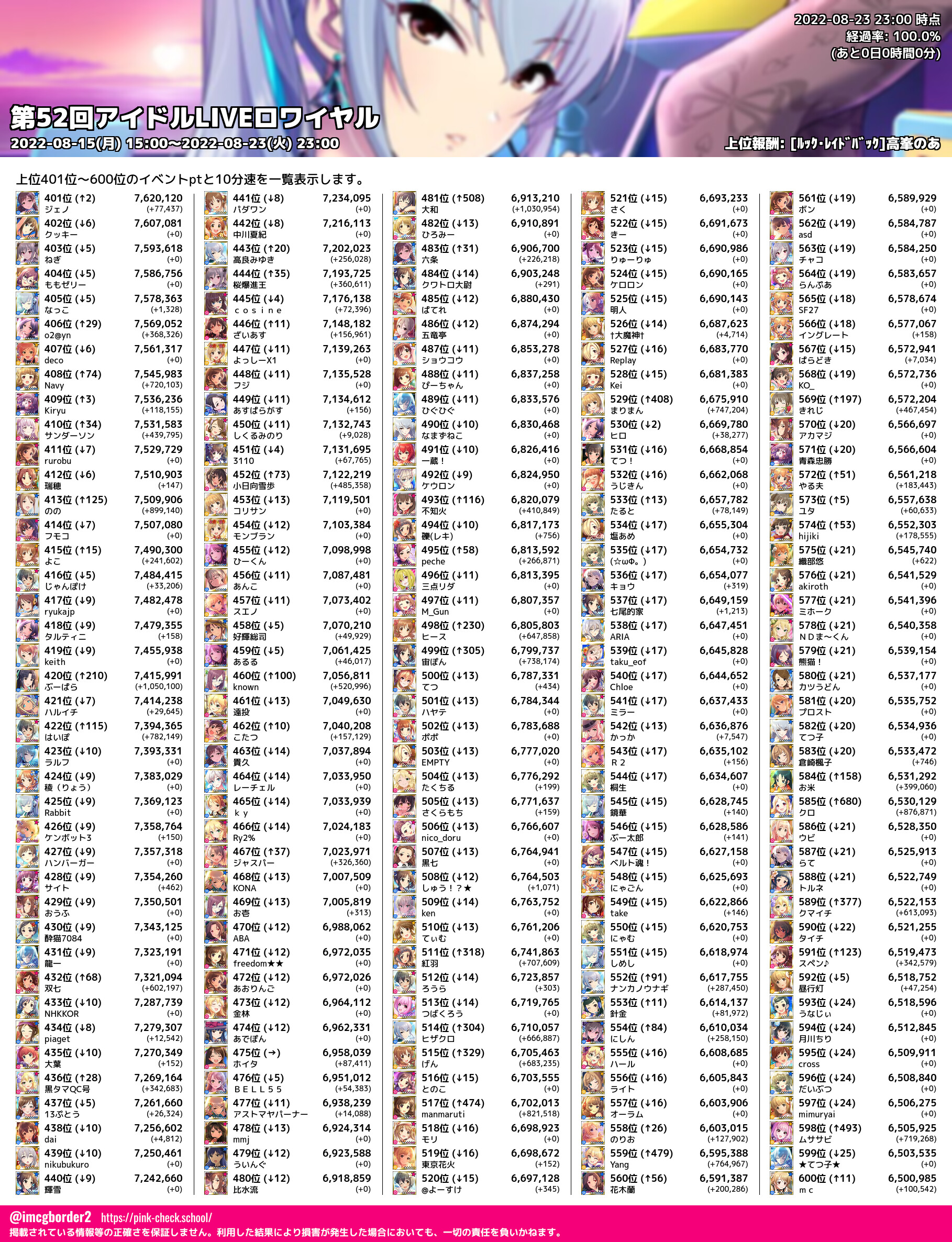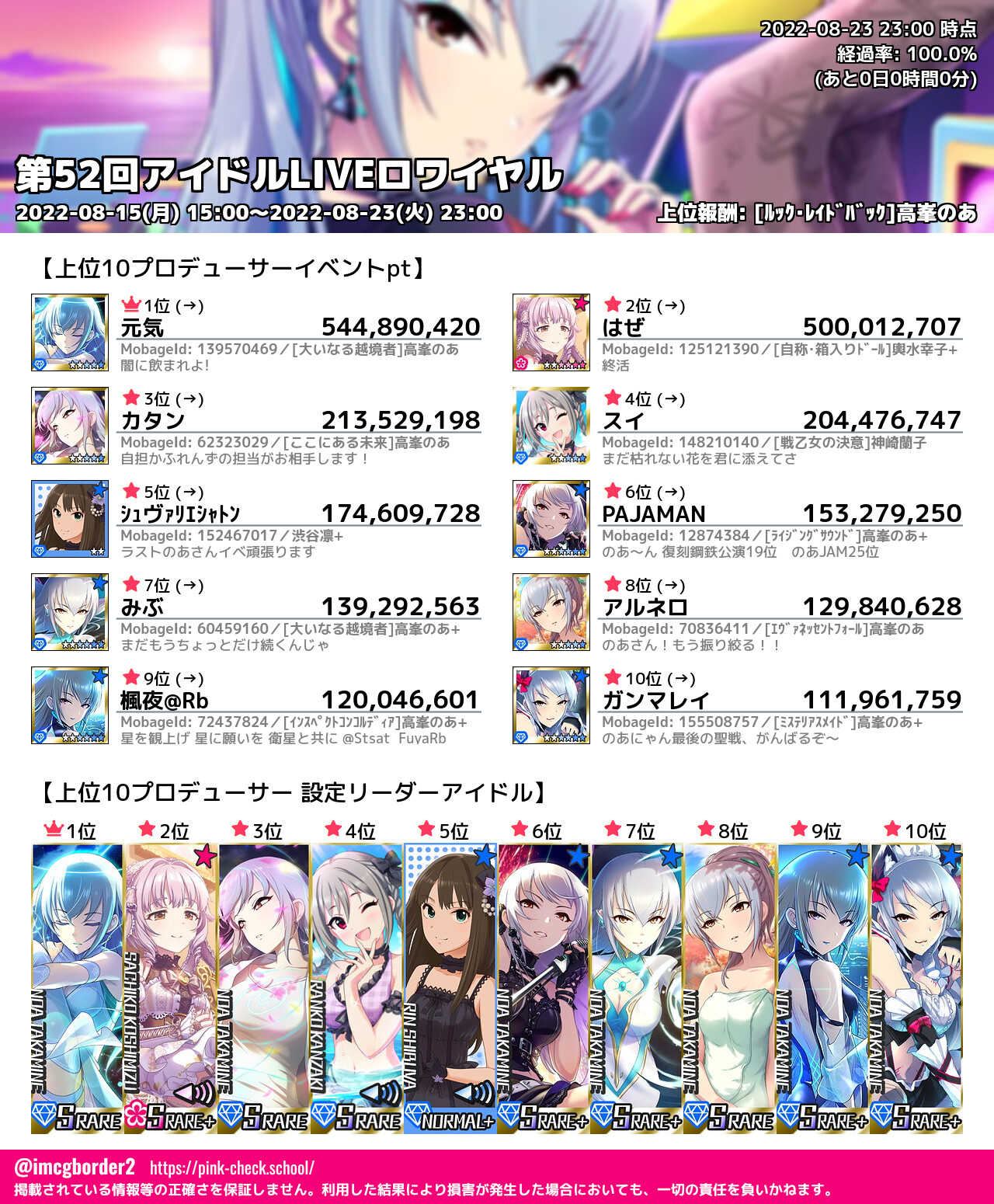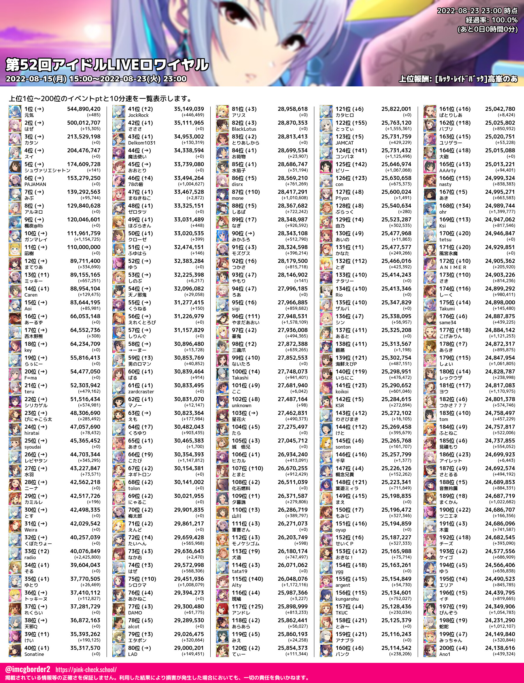 上位プロデューサースコア (2022-08-23 23:00 時点)