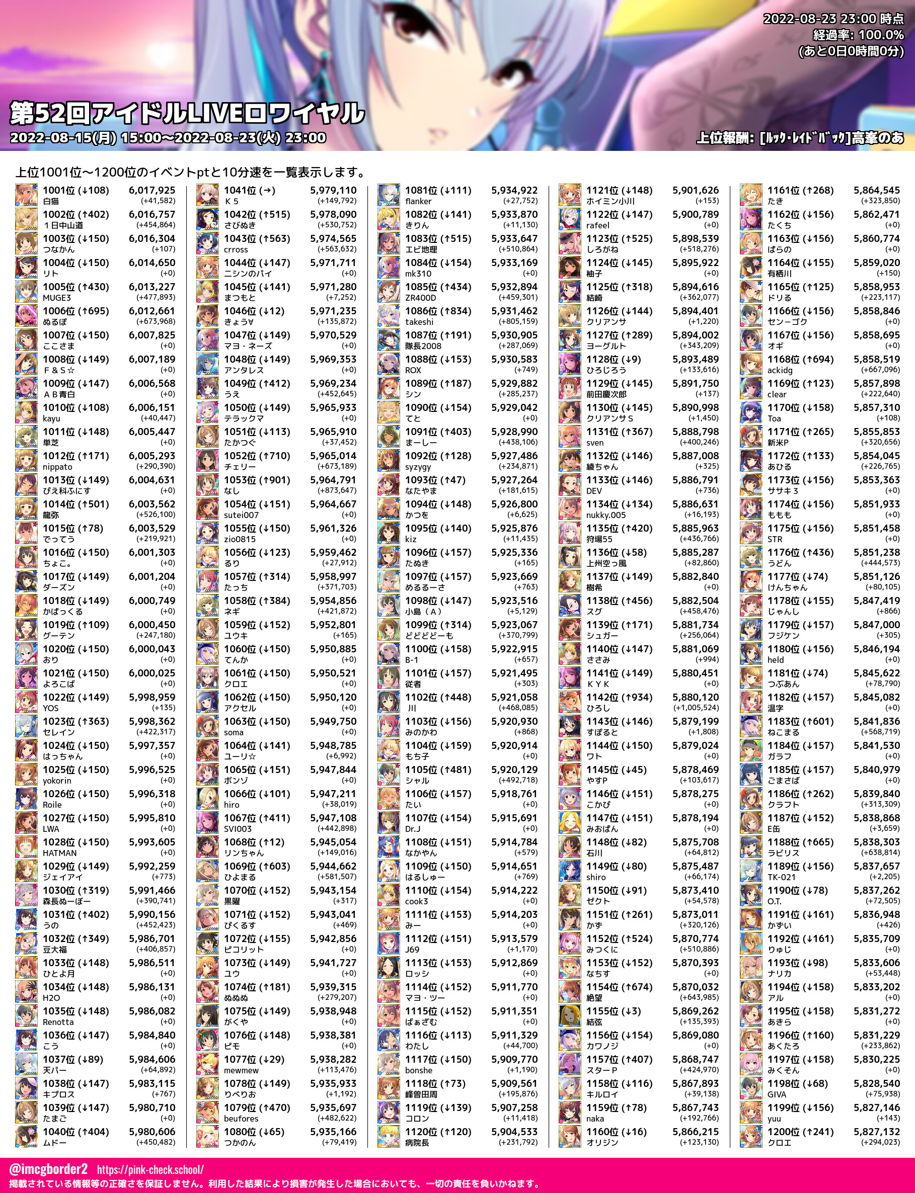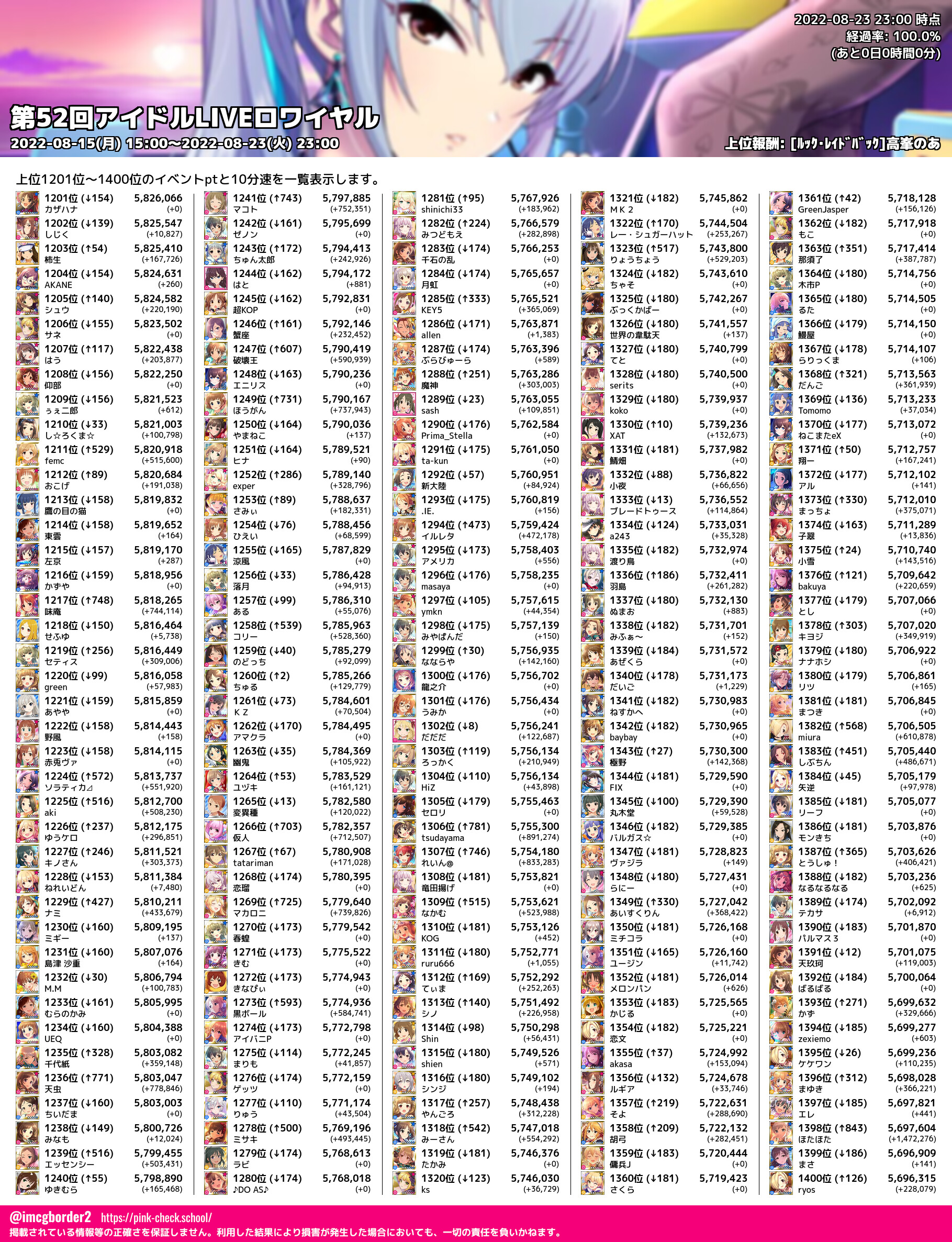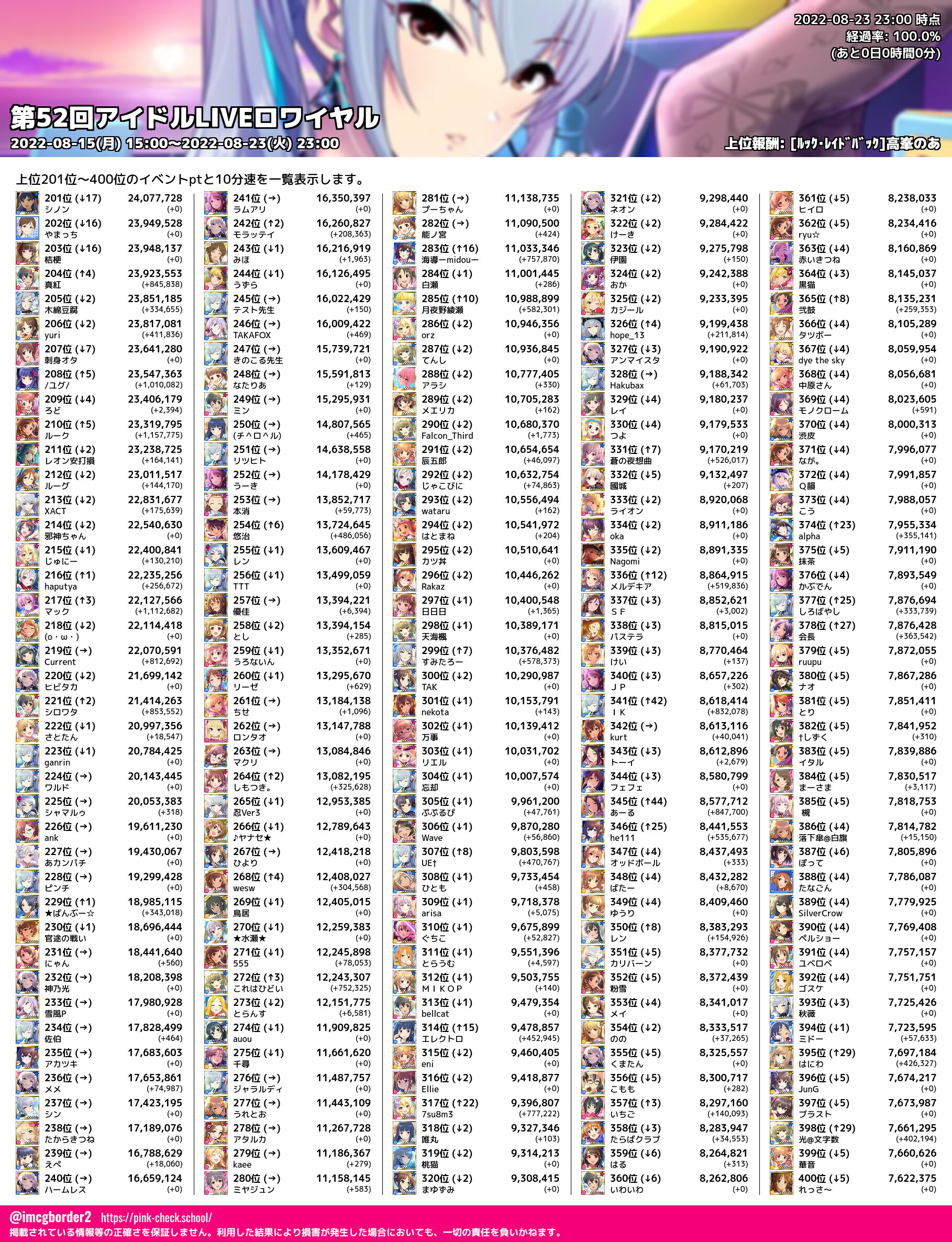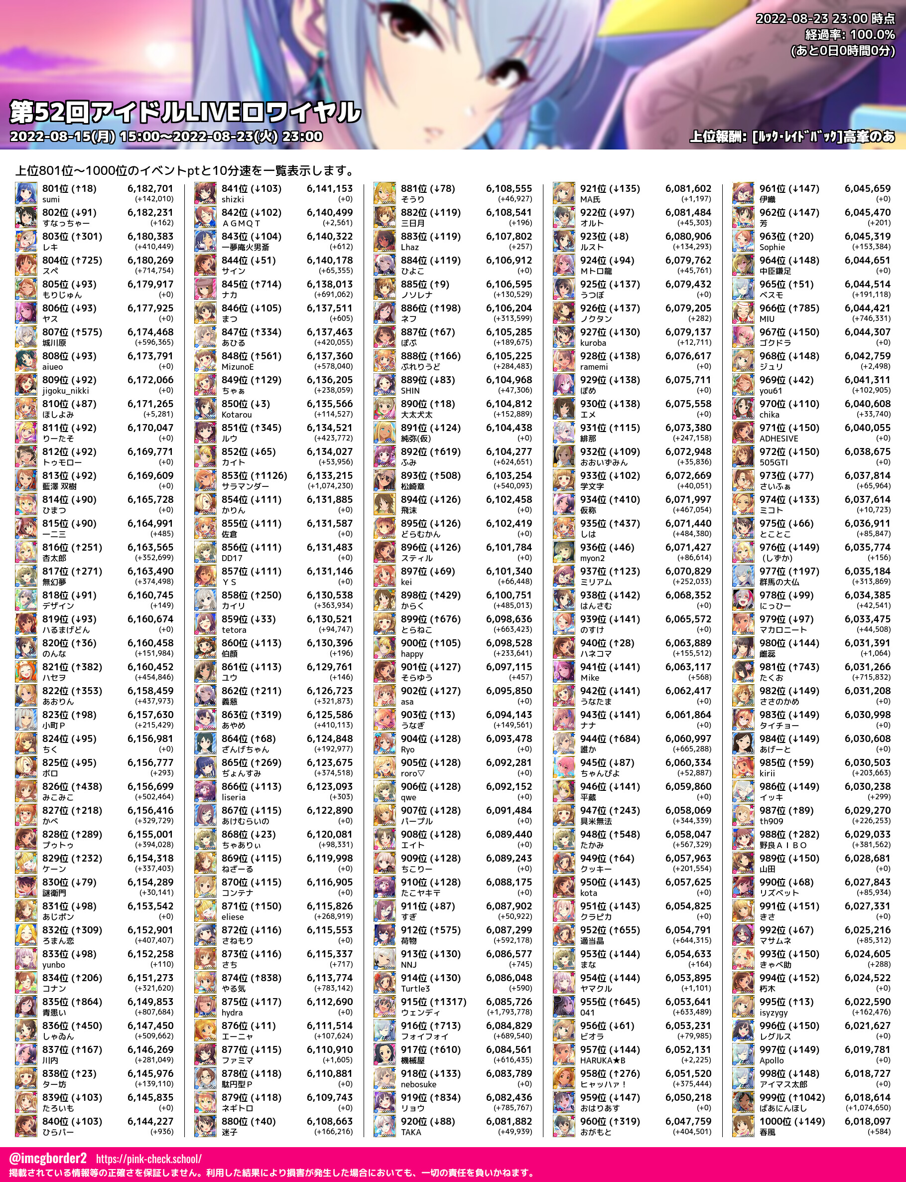 上位プロデューサースコア (2022-08-23 23:00 時点)