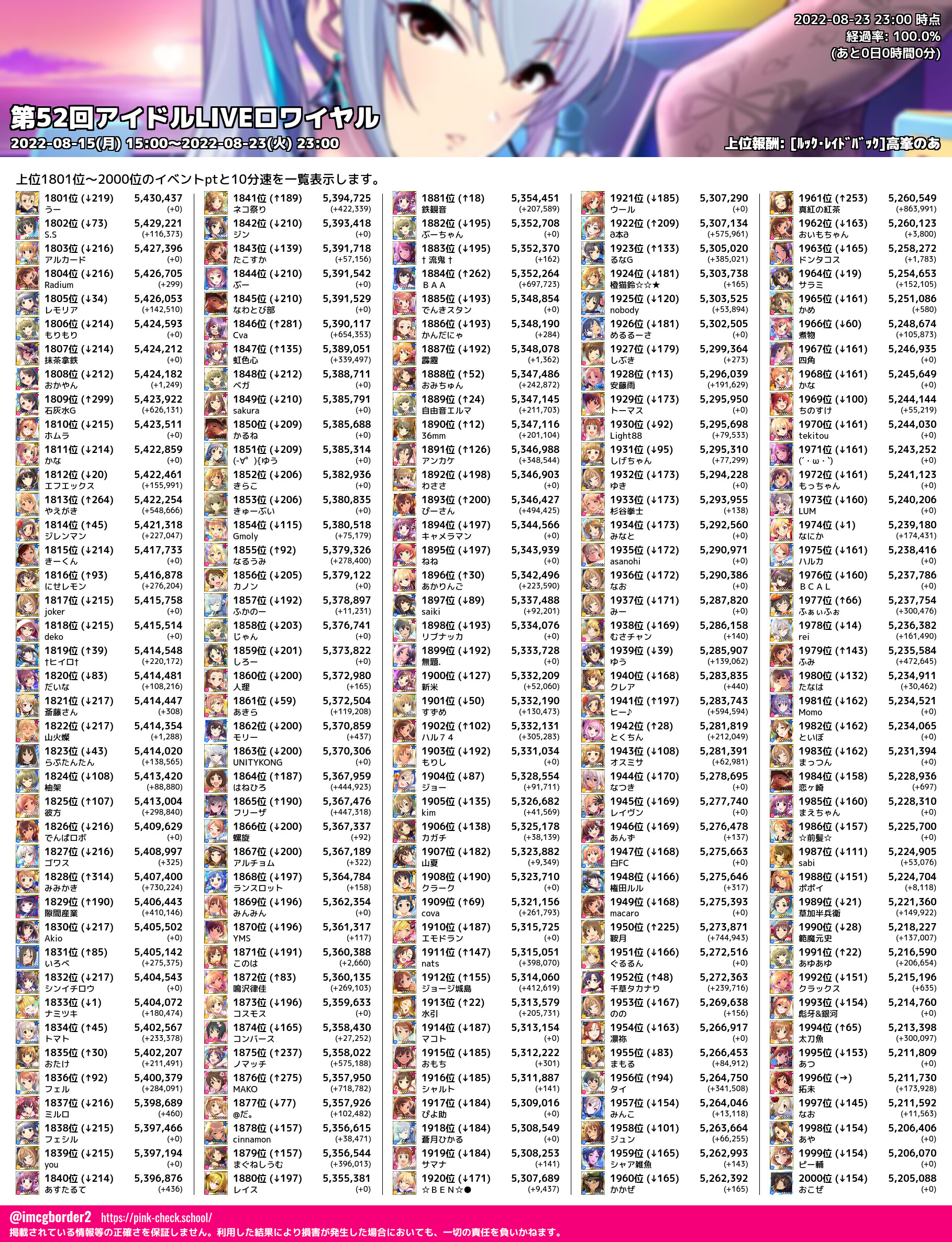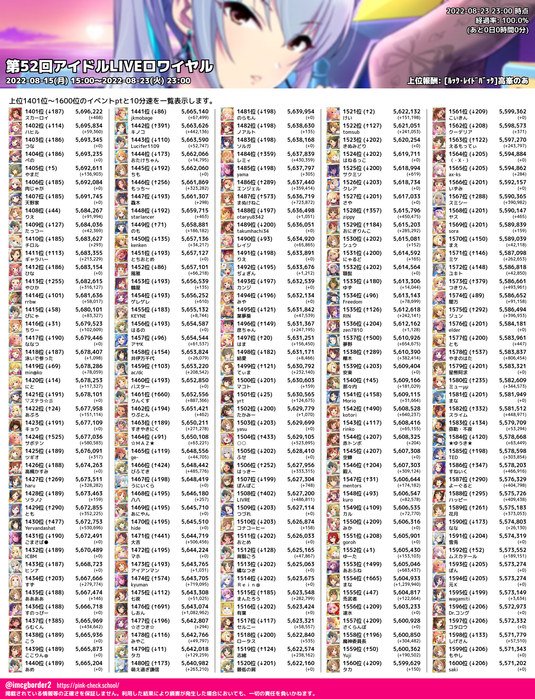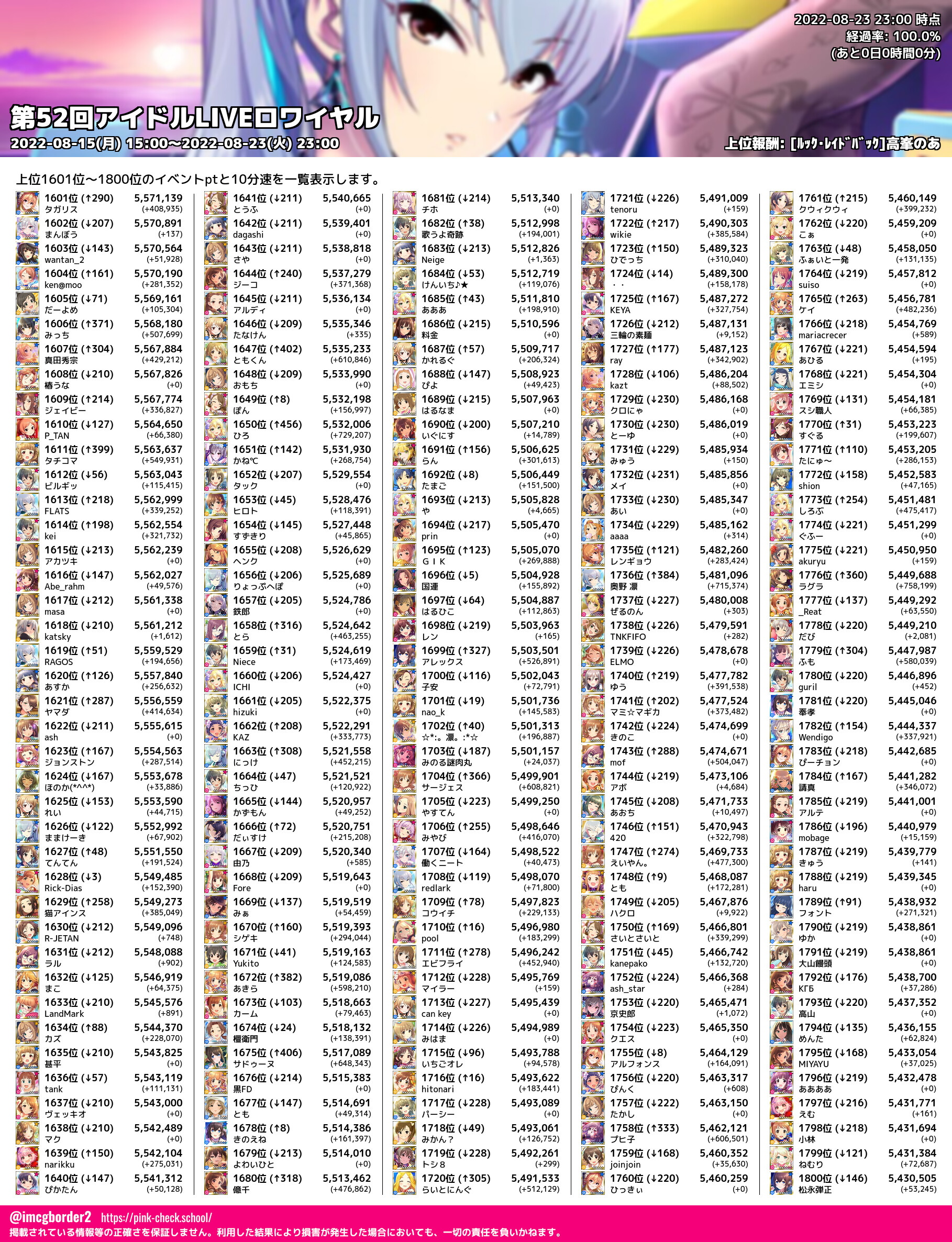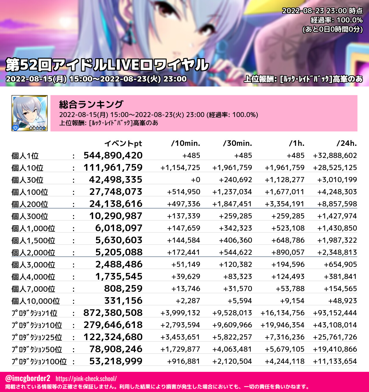 上位プロデューサースコア (2022-08-23 23:00 時点)