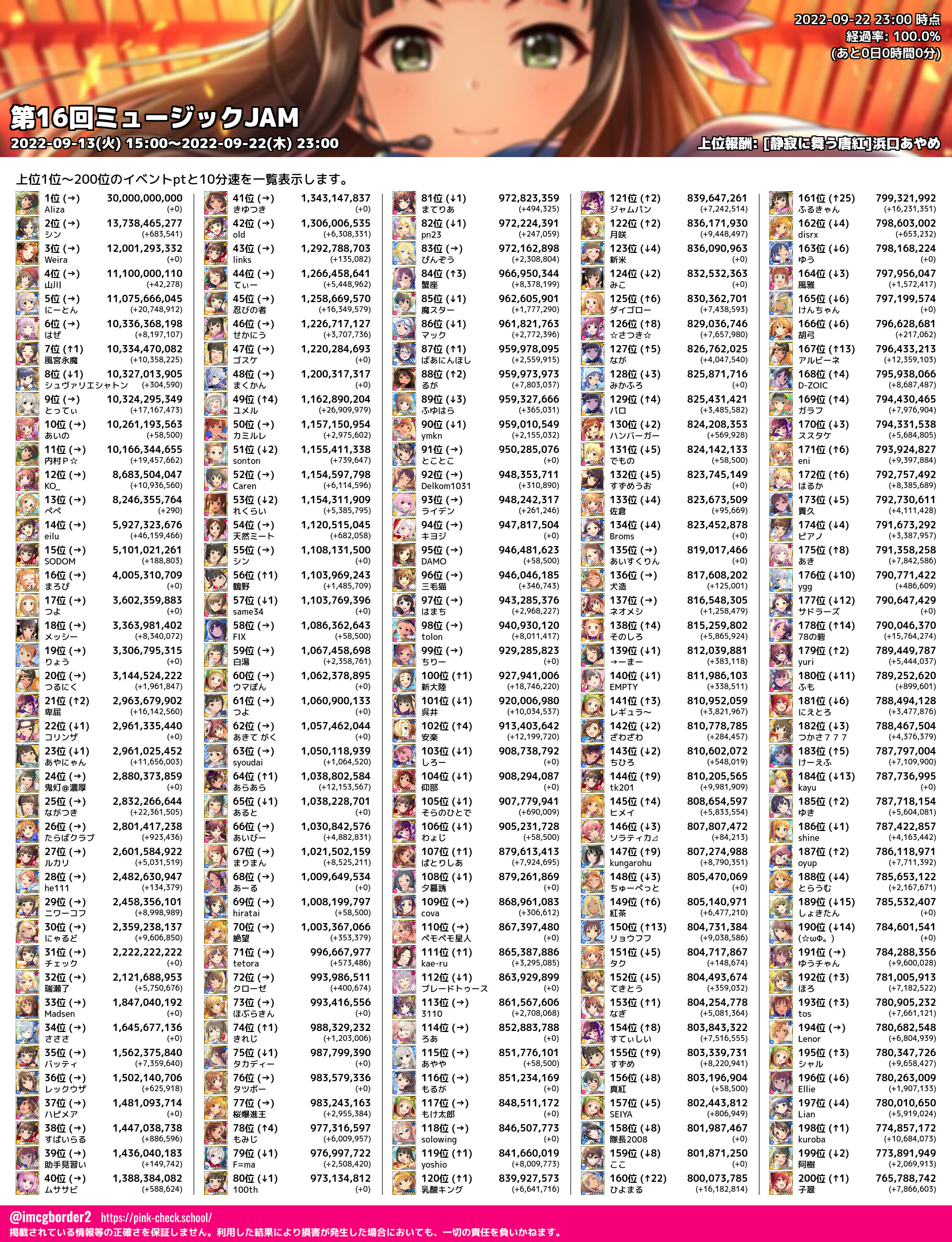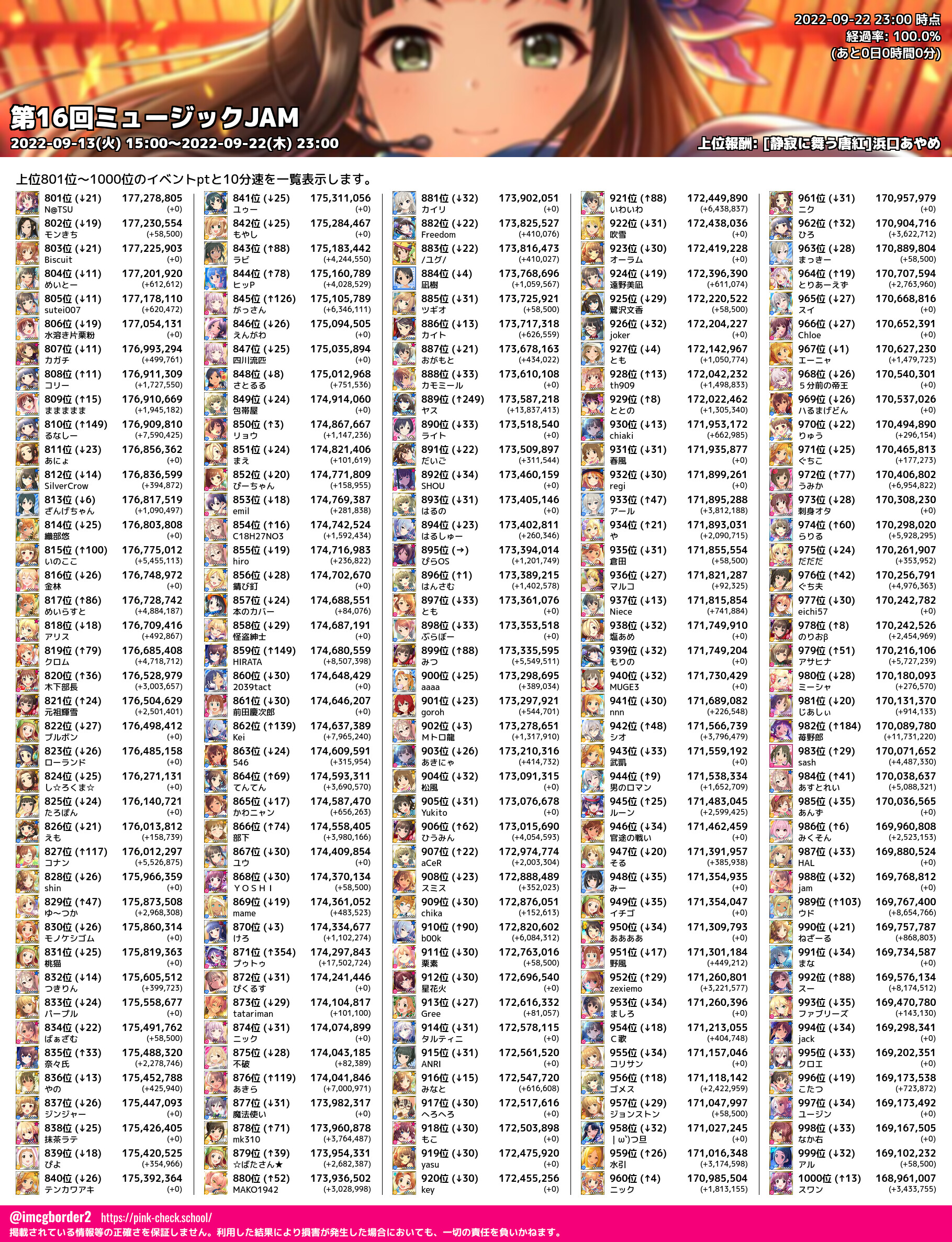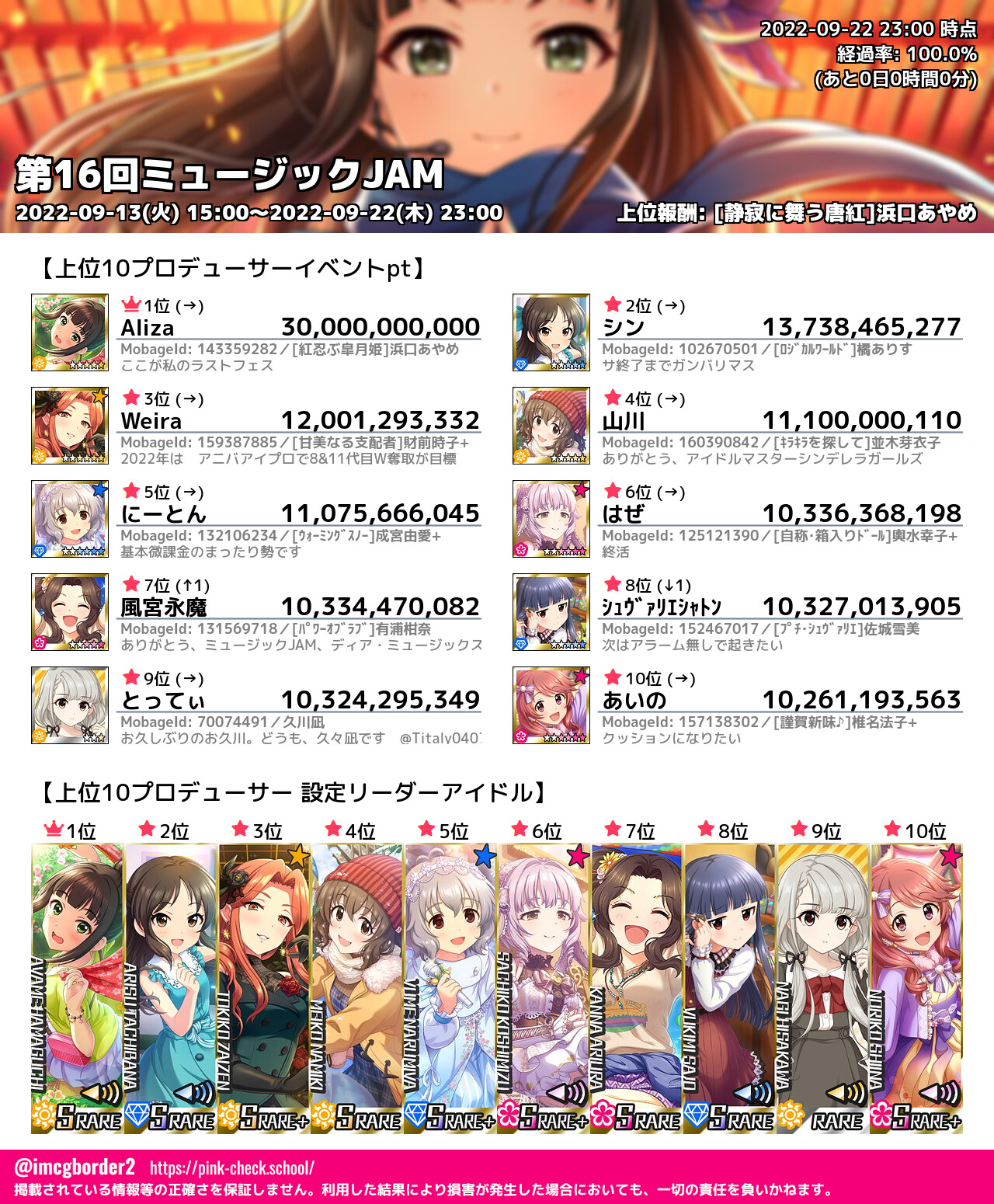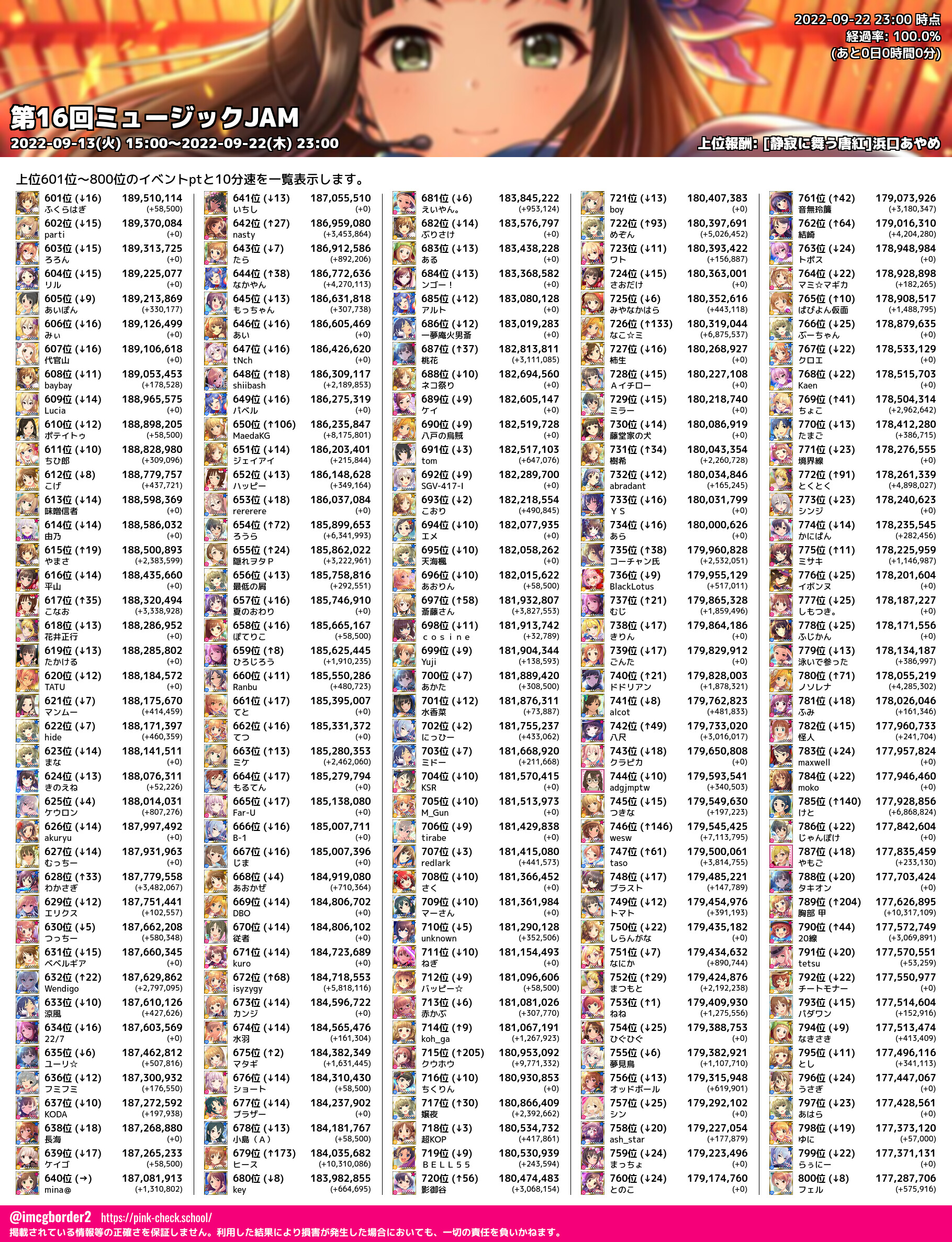 上位プロデューサースコア (2022-09-22 23:00 時点)