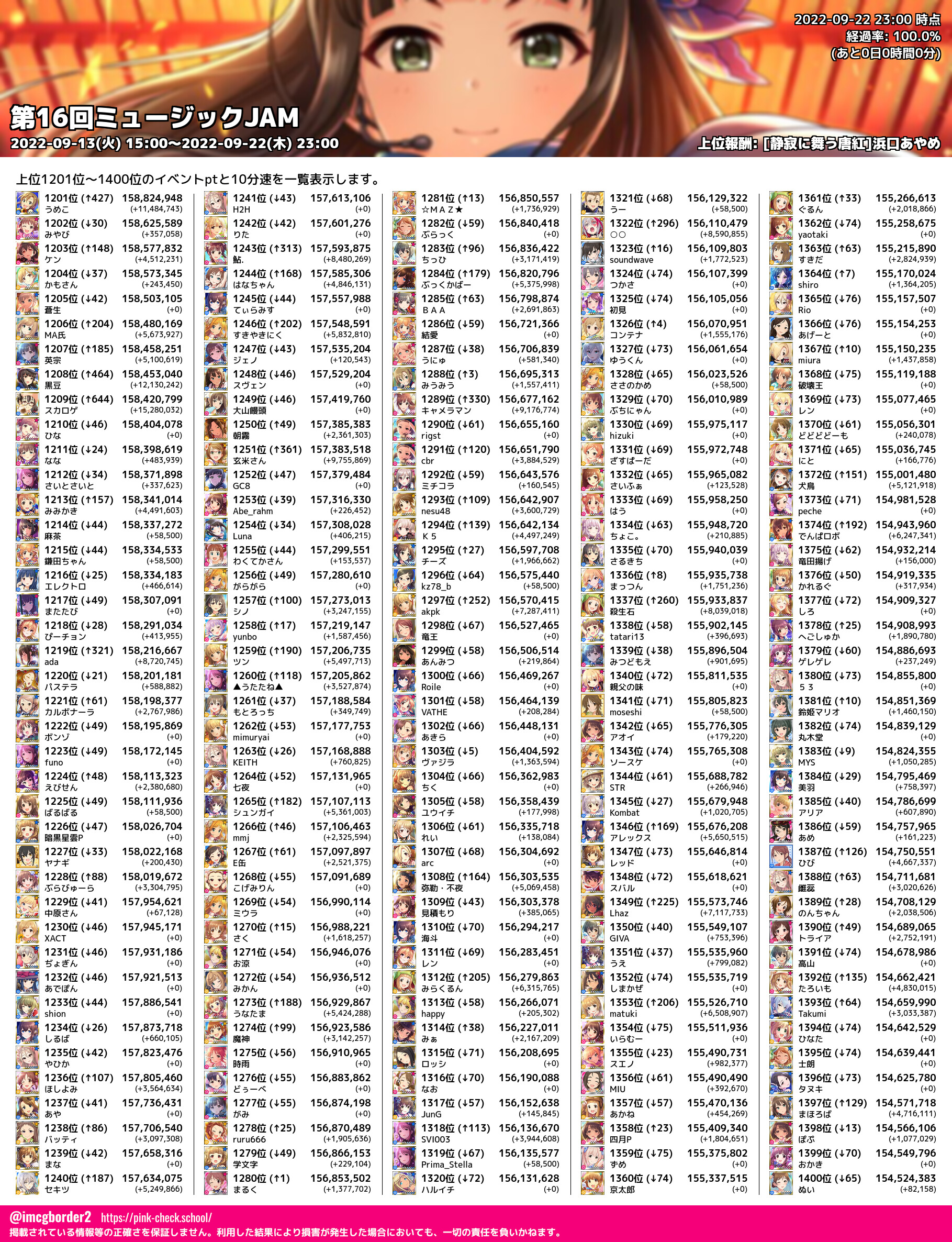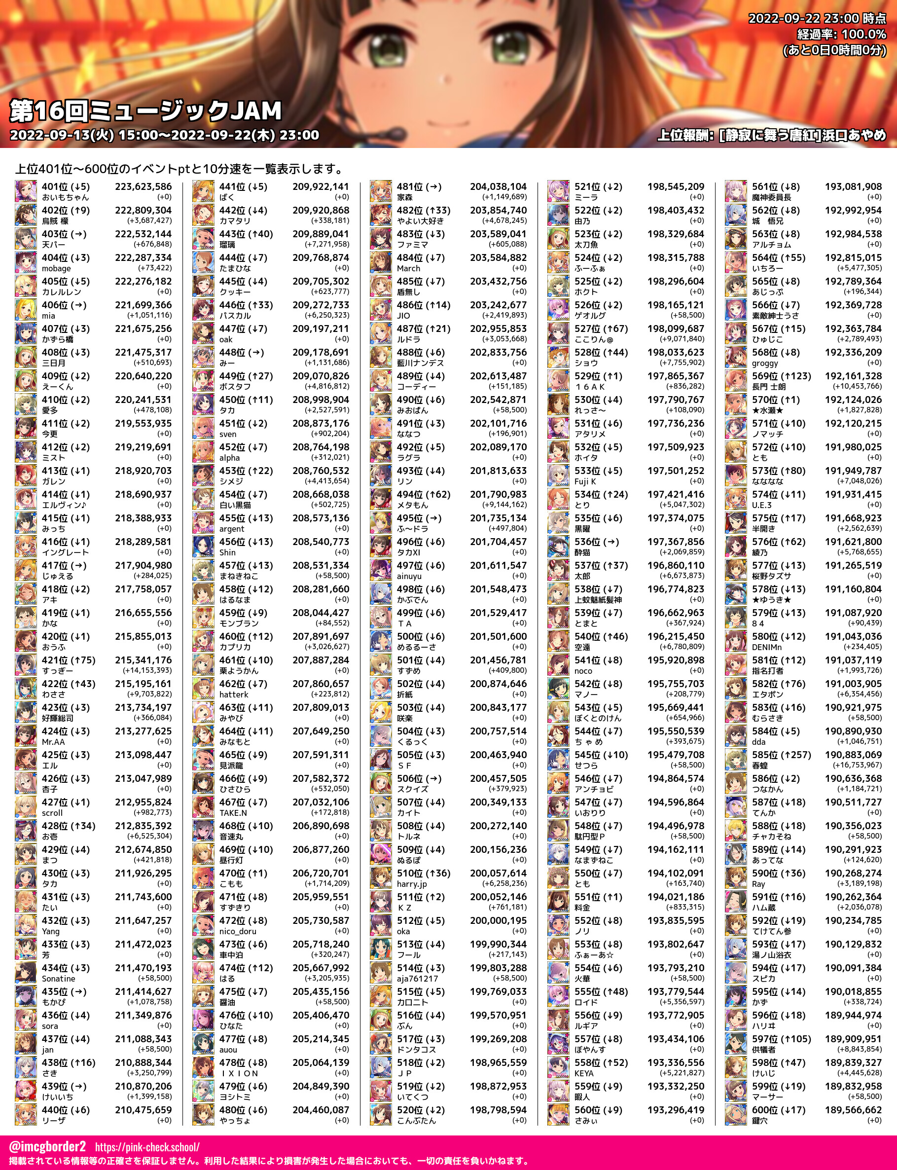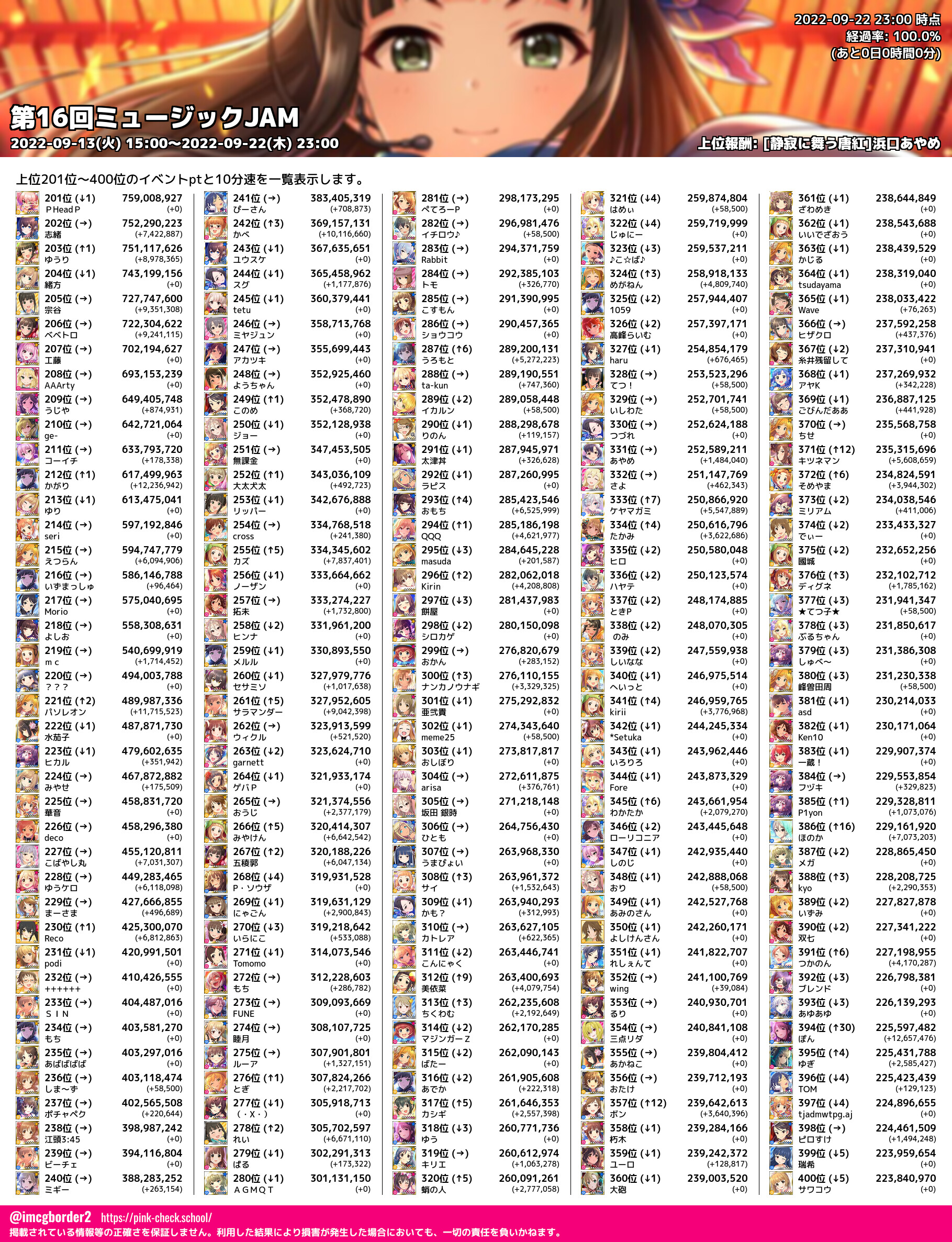 上位プロデューサースコア (2022-09-22 23:00 時点)
