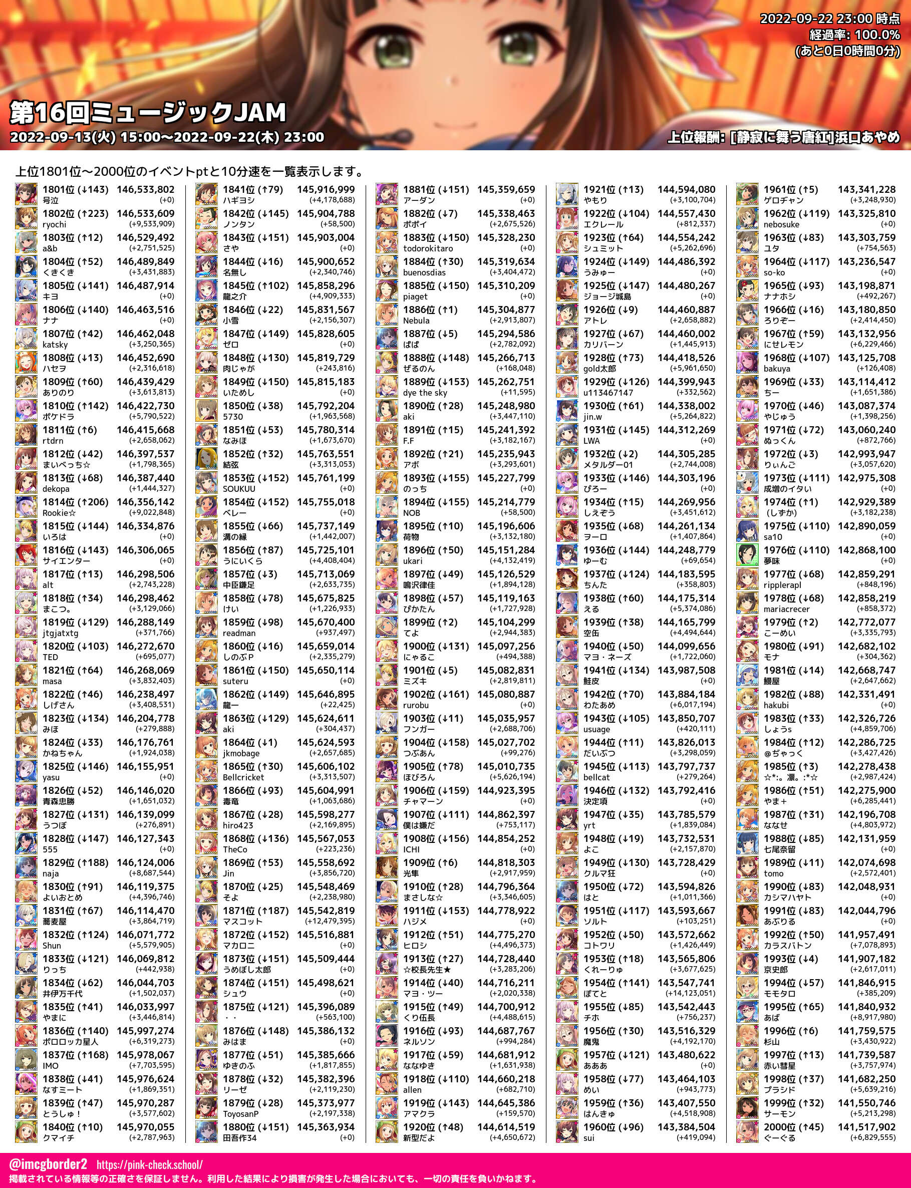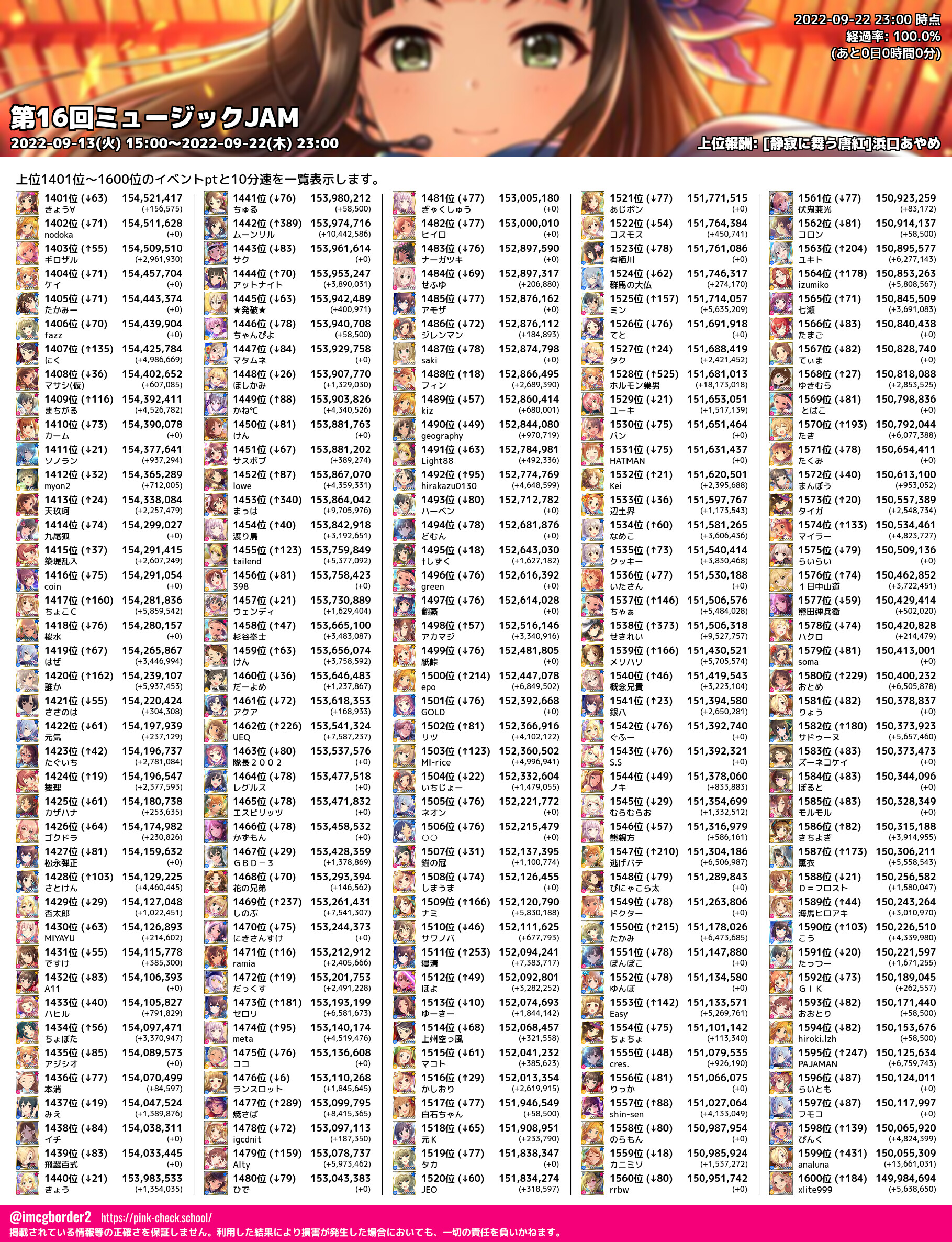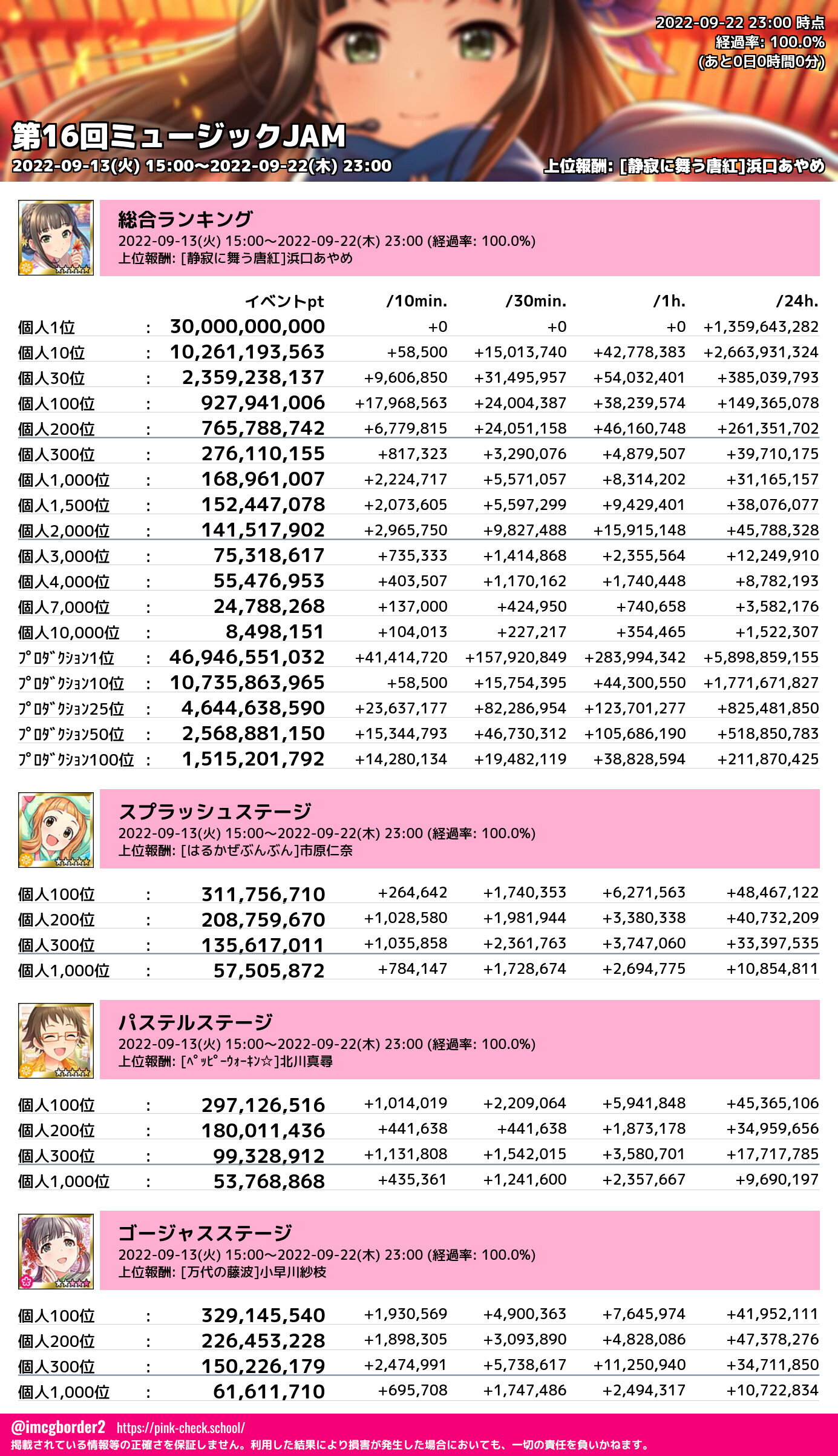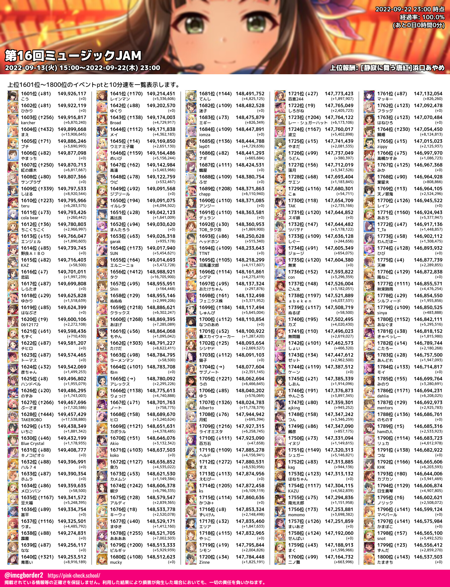 上位プロデューサースコア (2022-09-22 23:00 時点)
