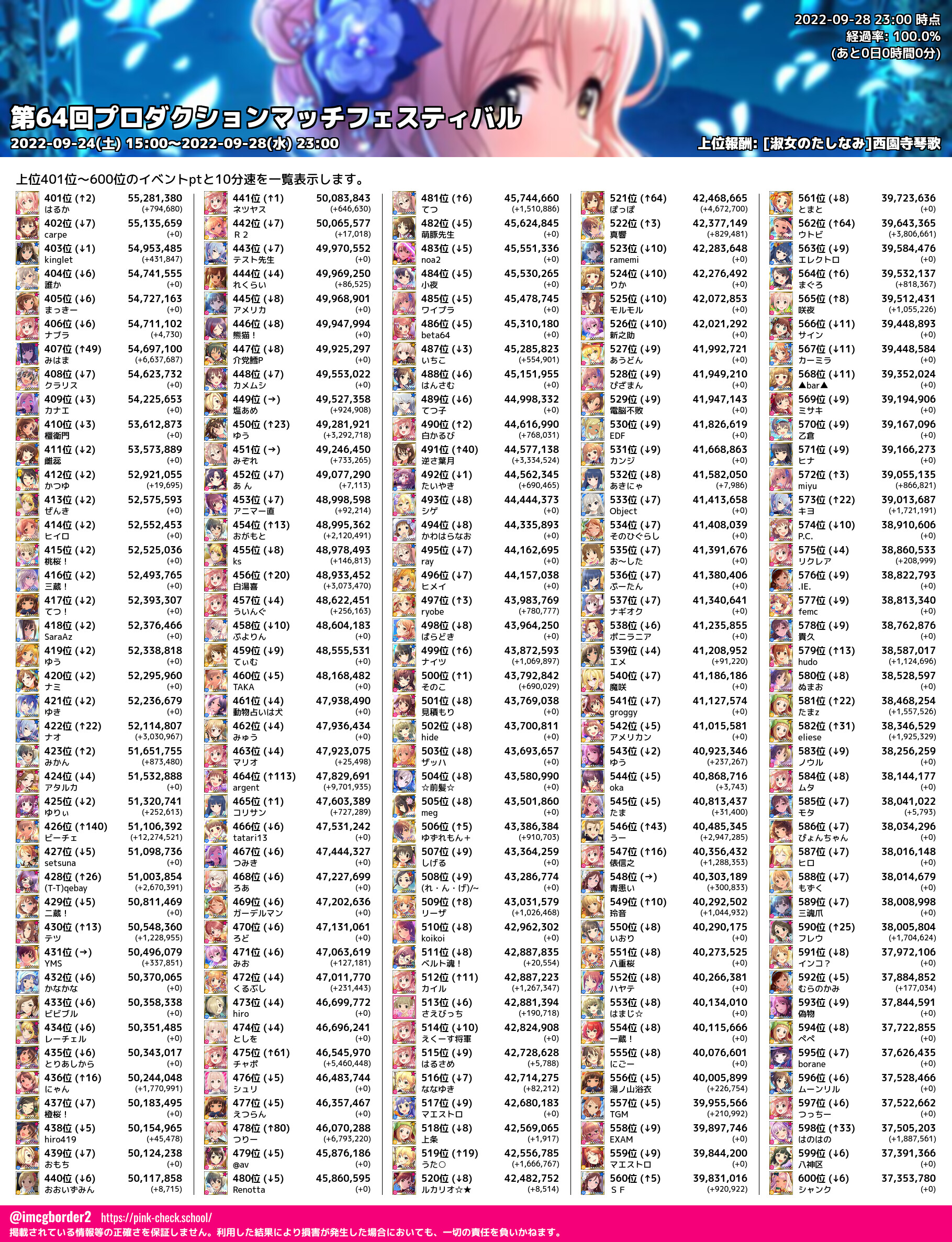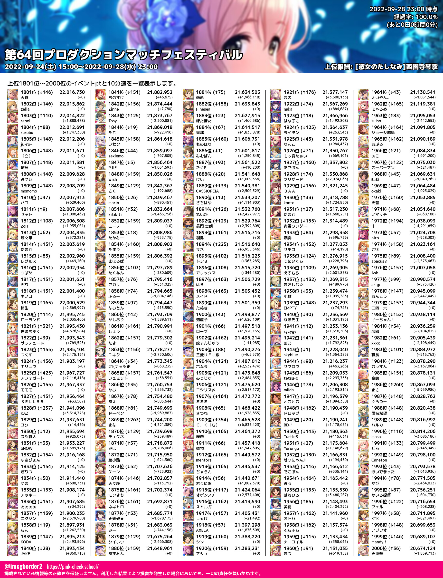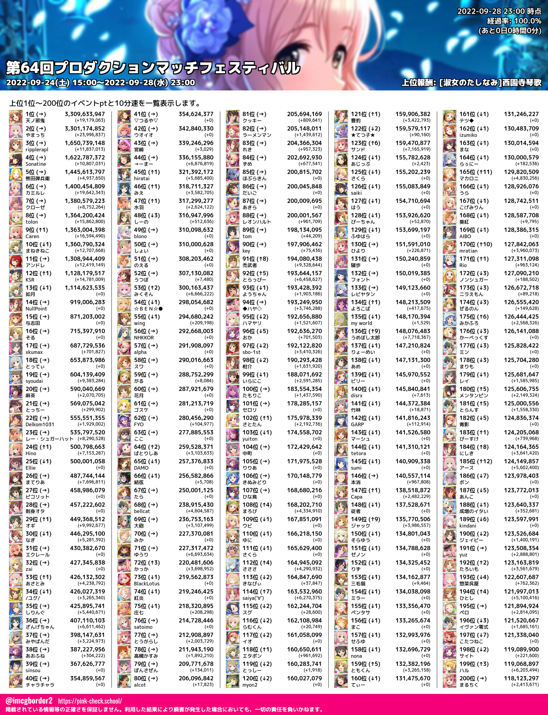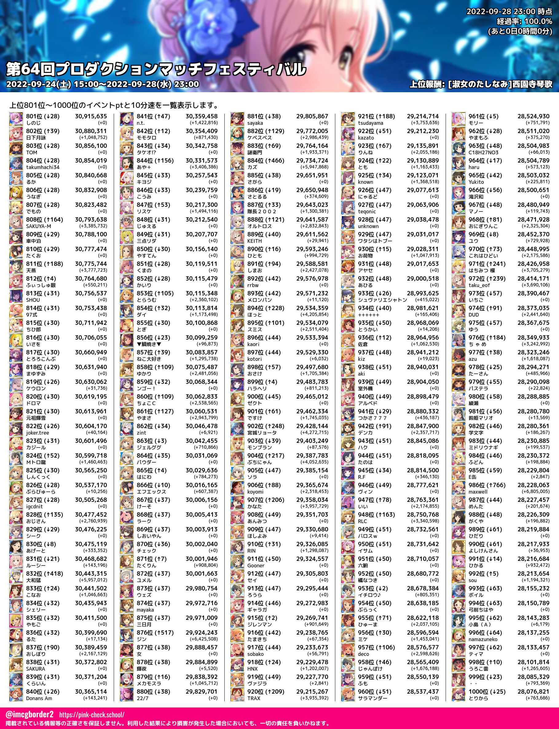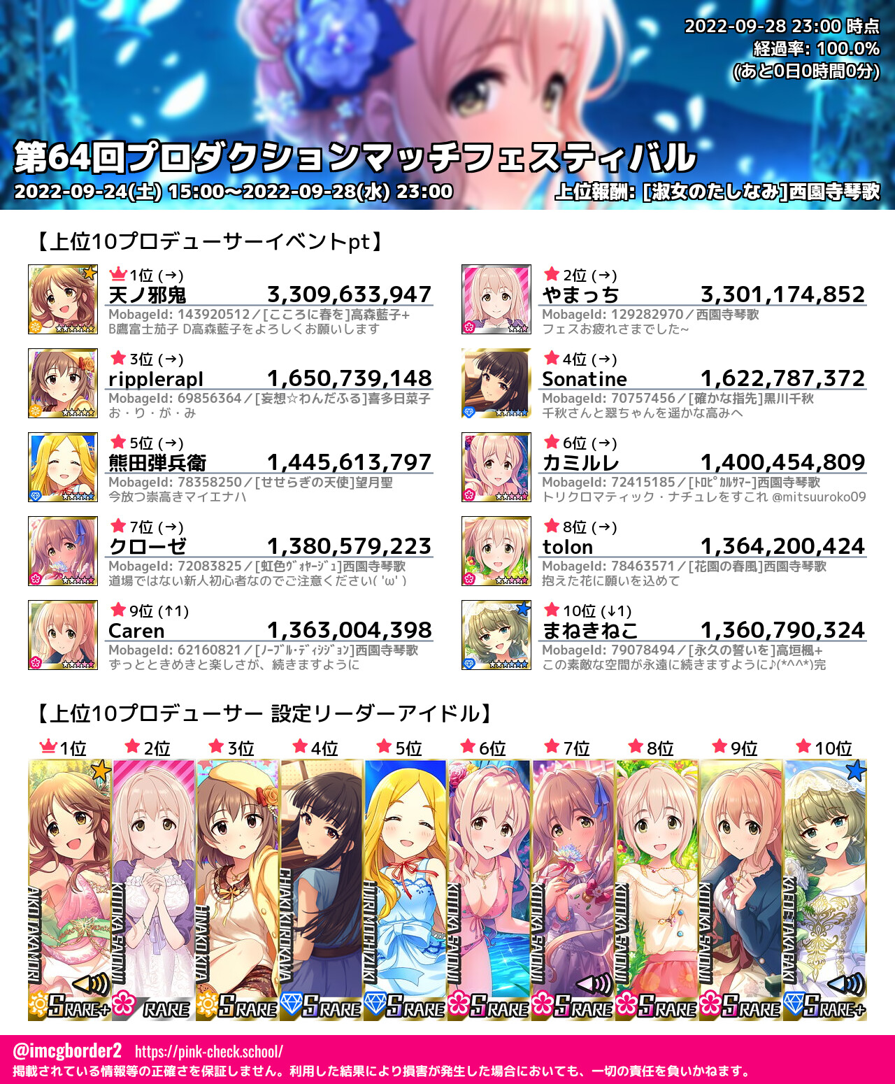 上位プロデューサースコア (2022-09-28 23:00 時点)