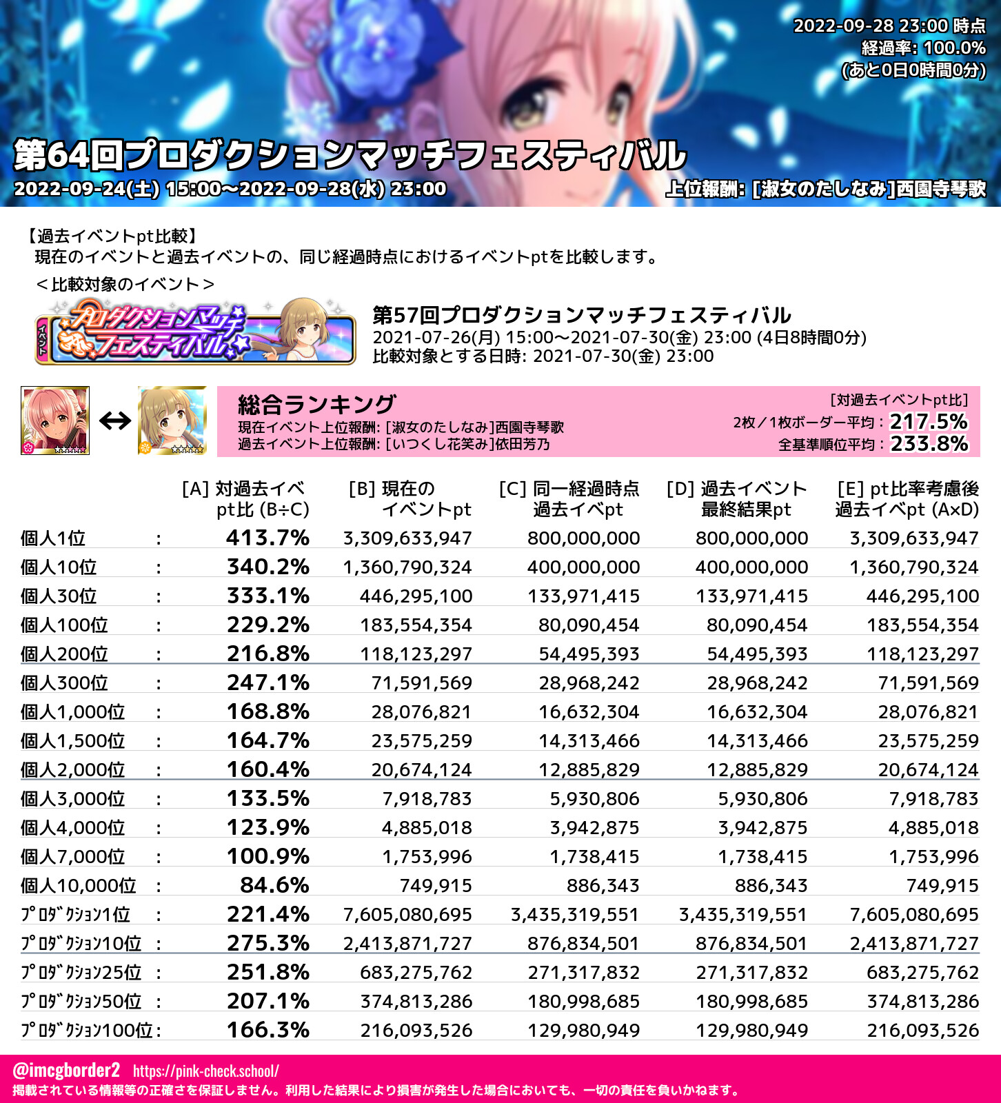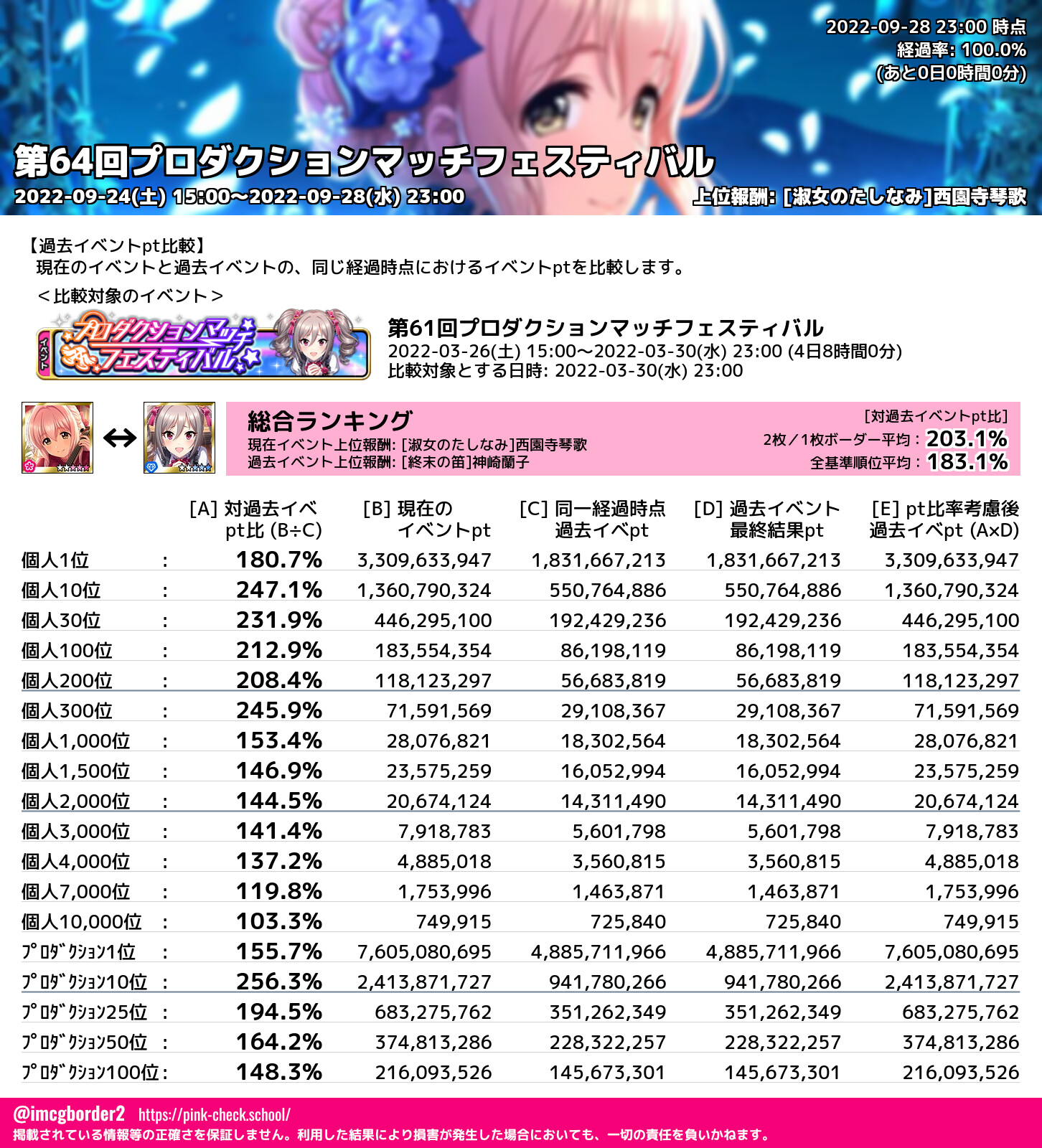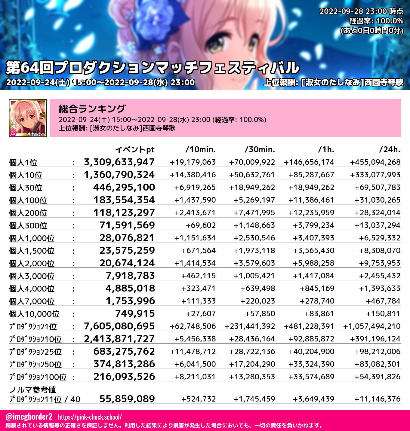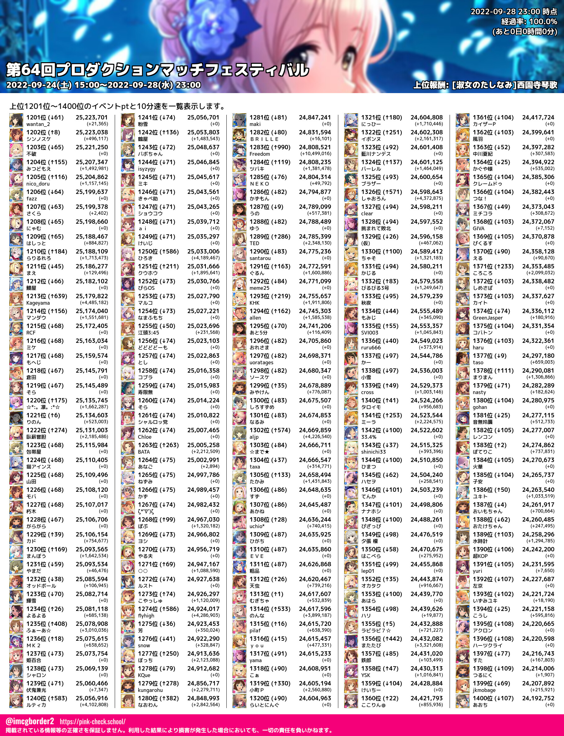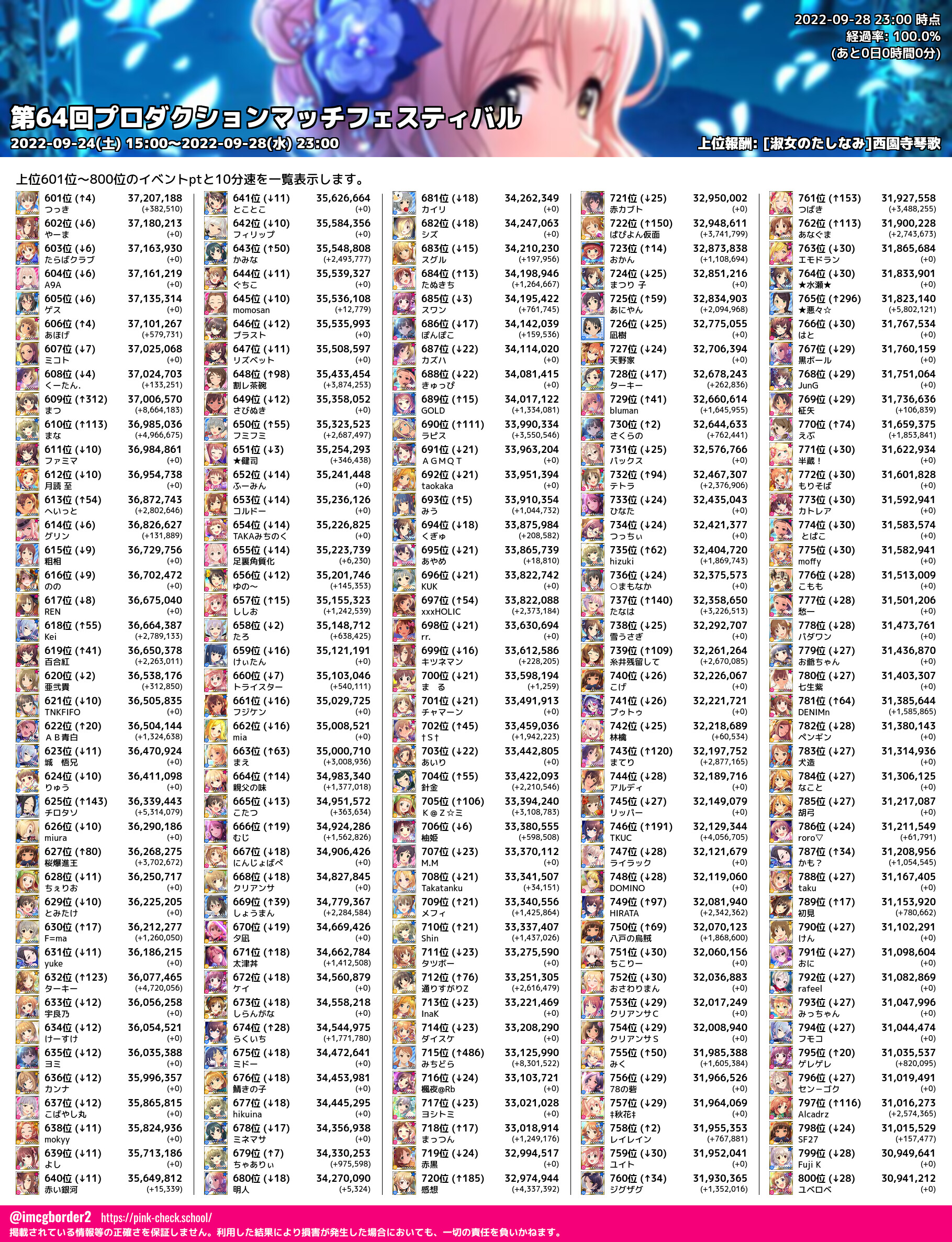 上位プロデューサースコア (2022-09-28 23:00 時点)
