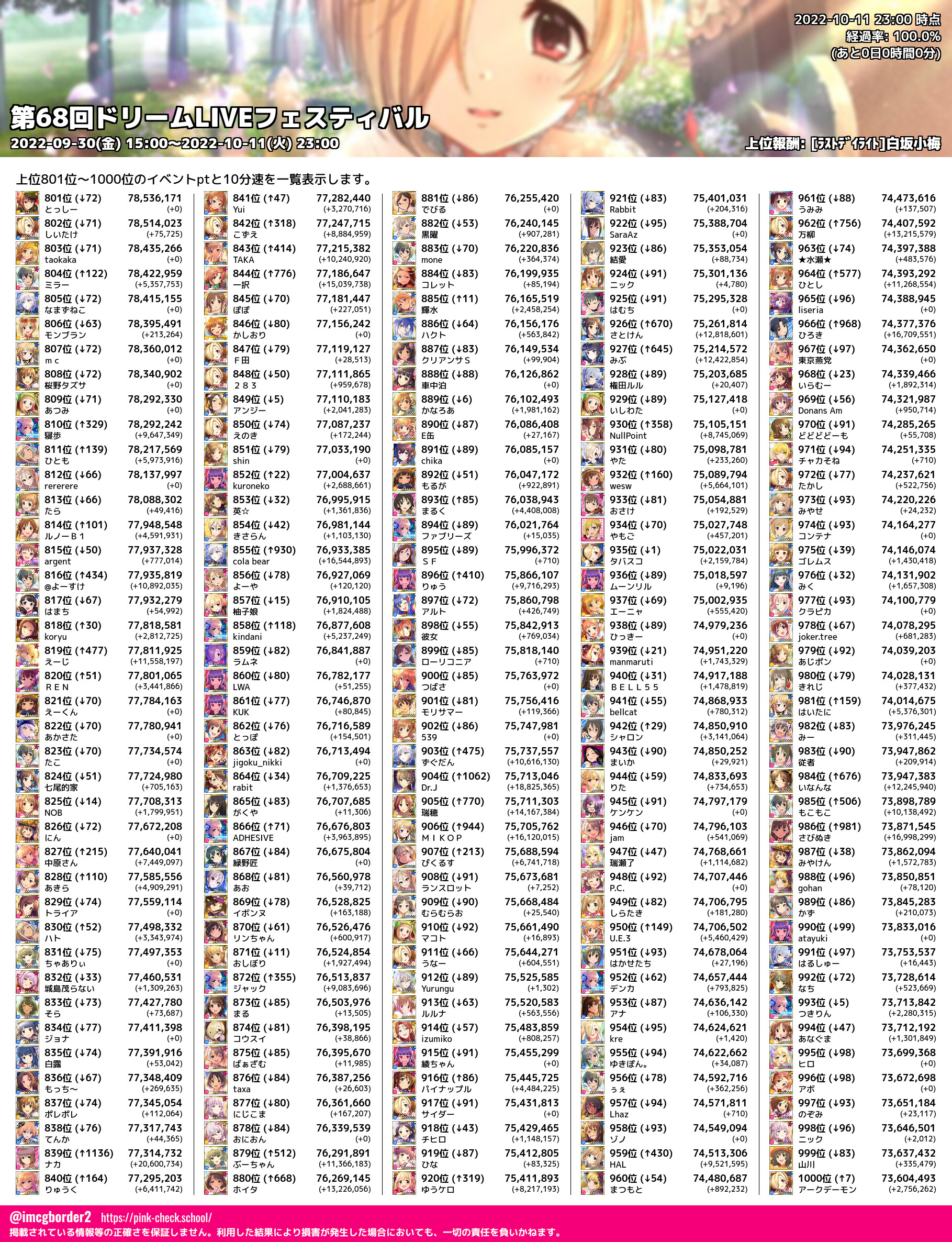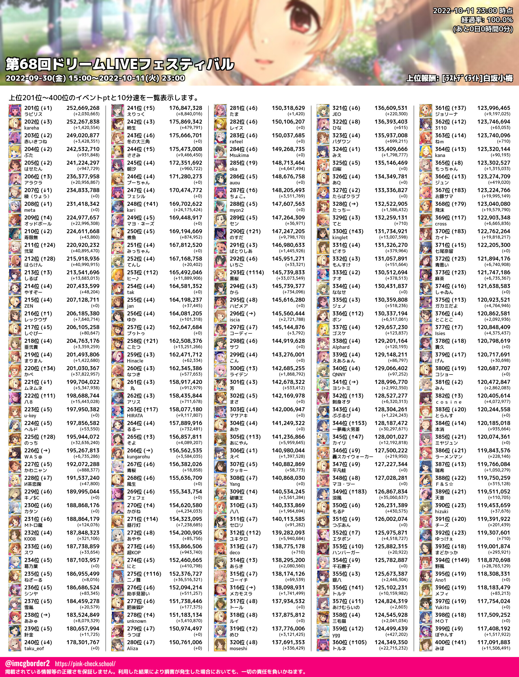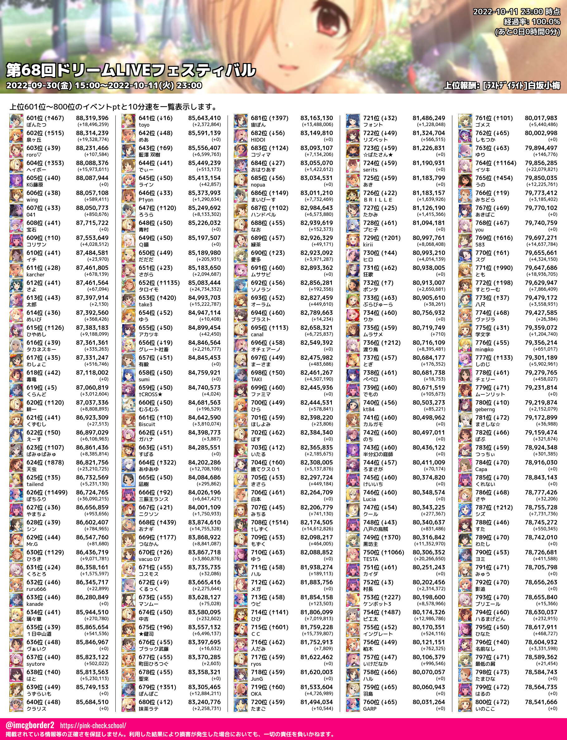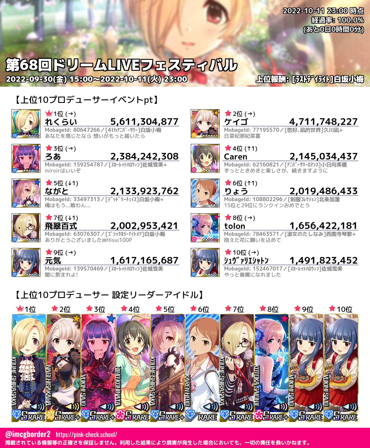 上位プロデューサースコア (2022-10-11 23:00 時点)