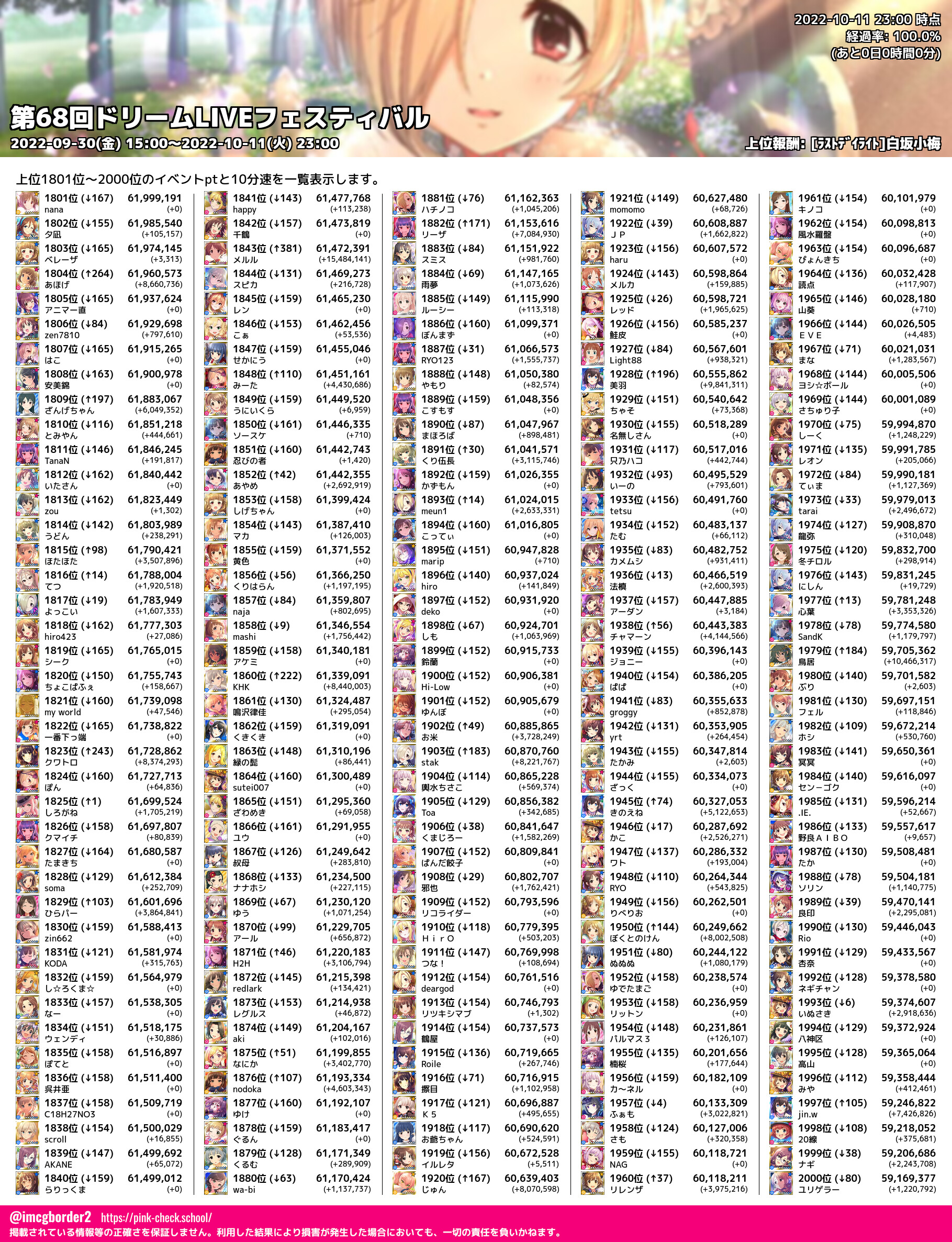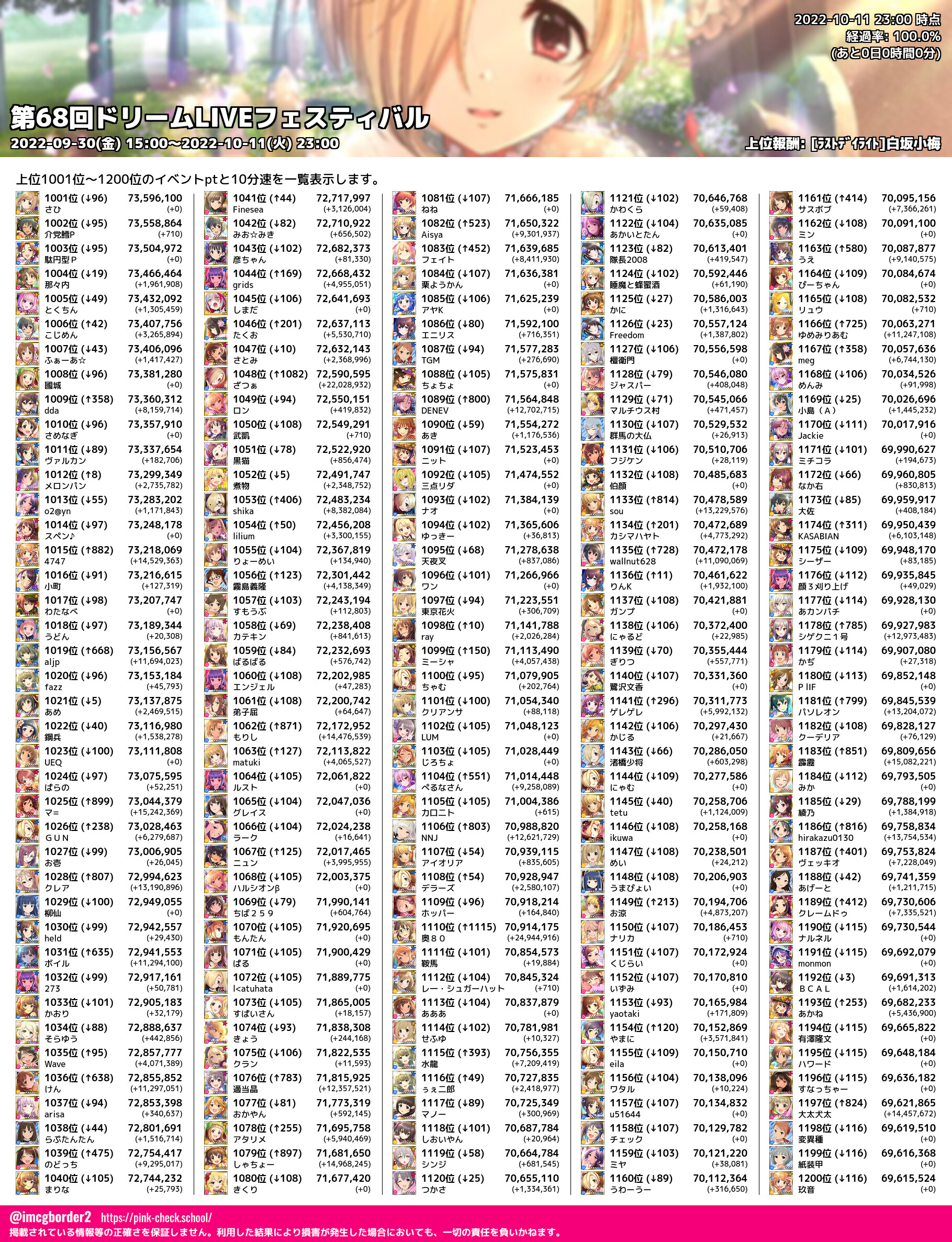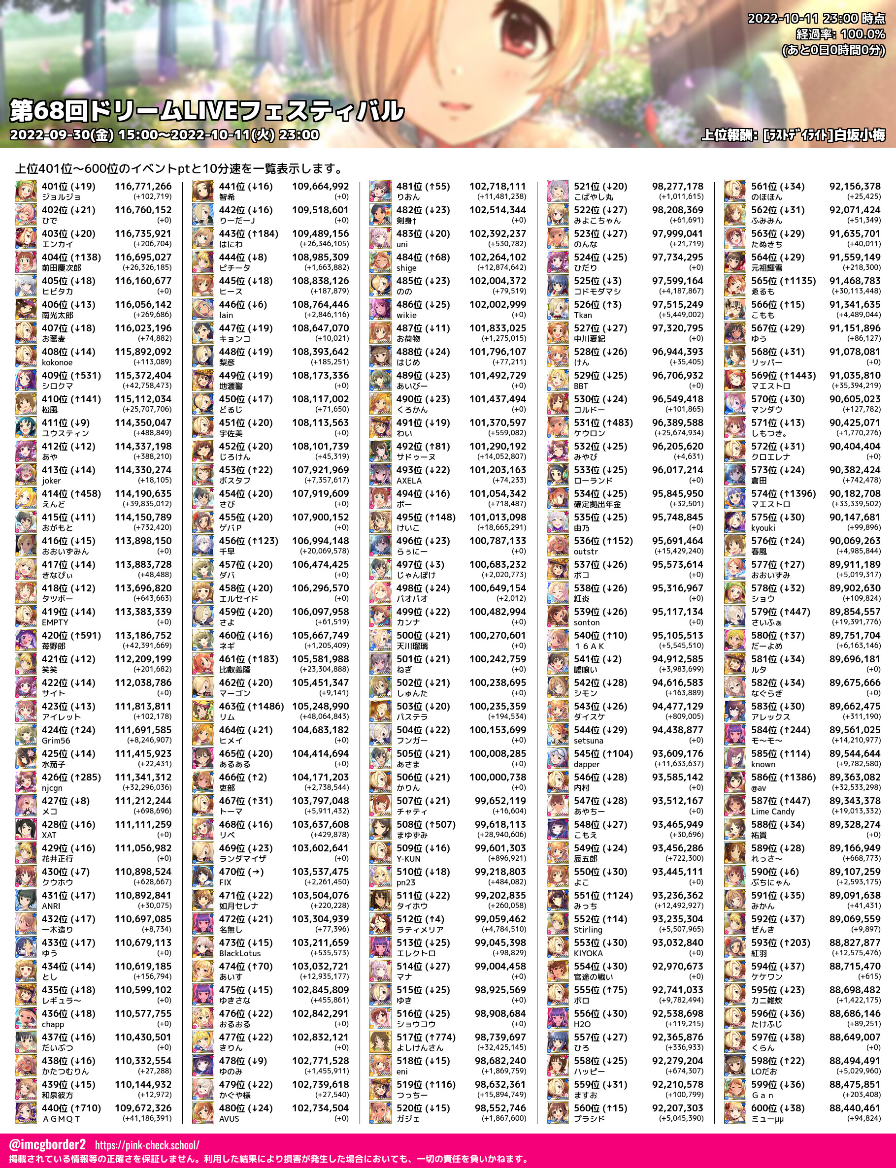 上位プロデューサースコア (2022-10-11 23:00 時点)