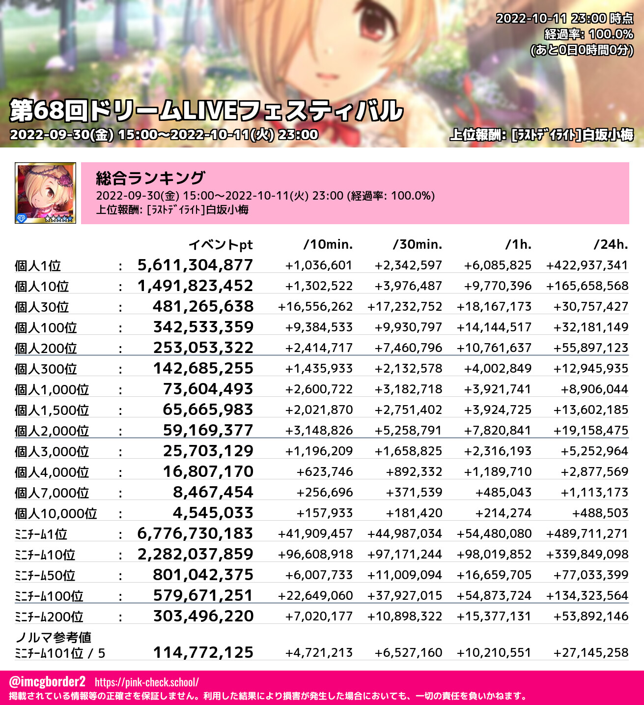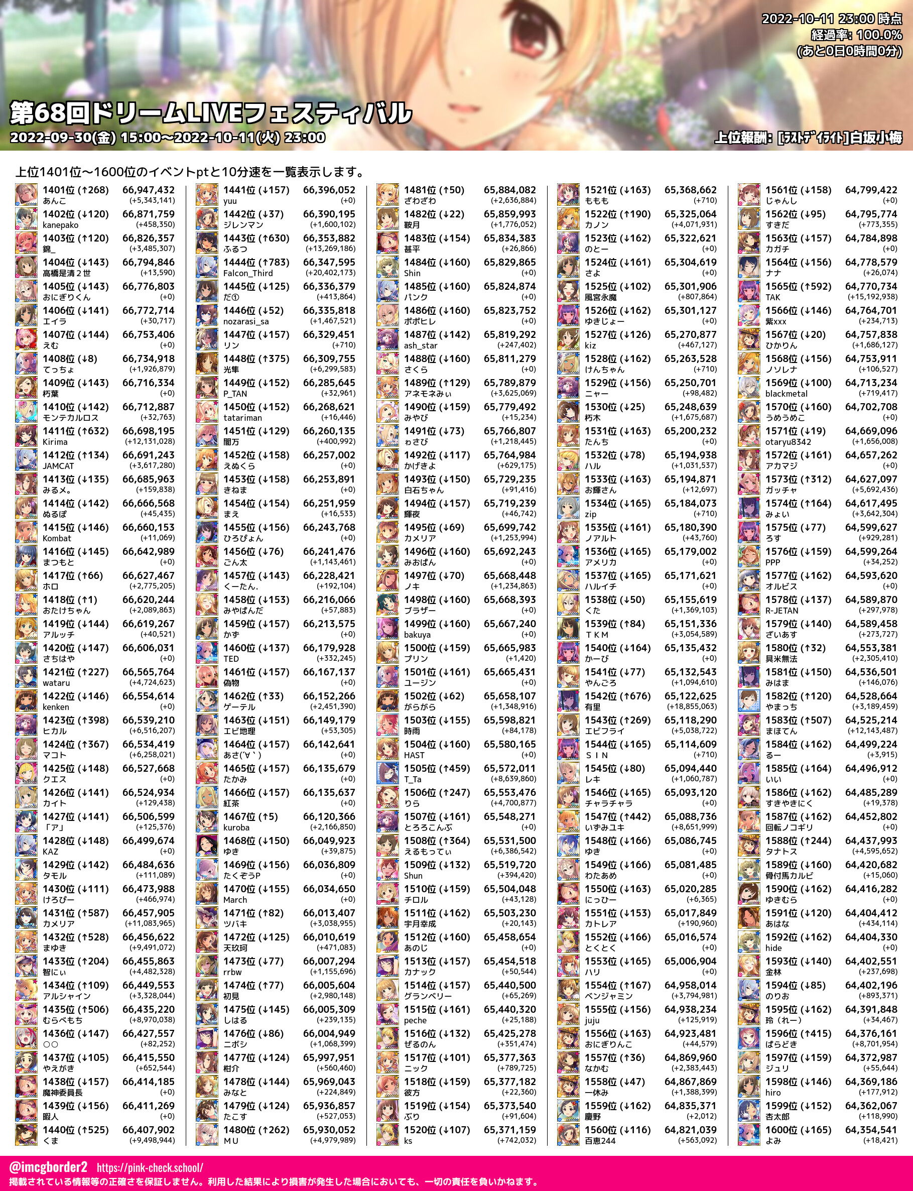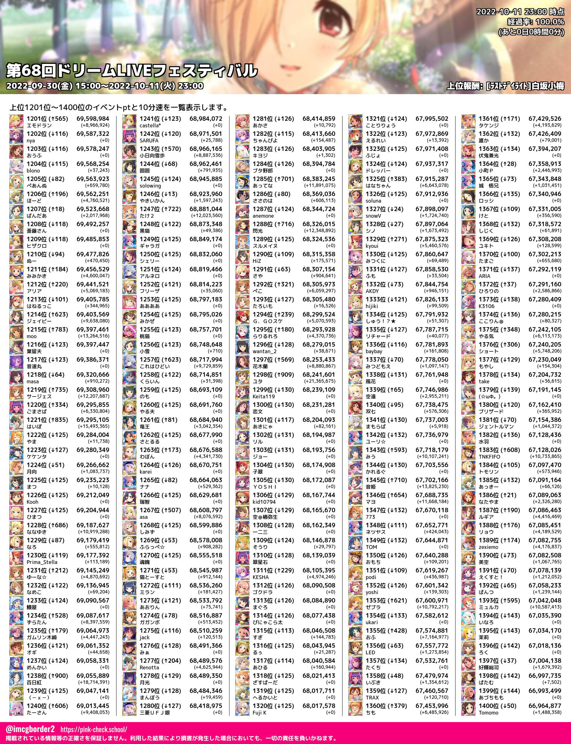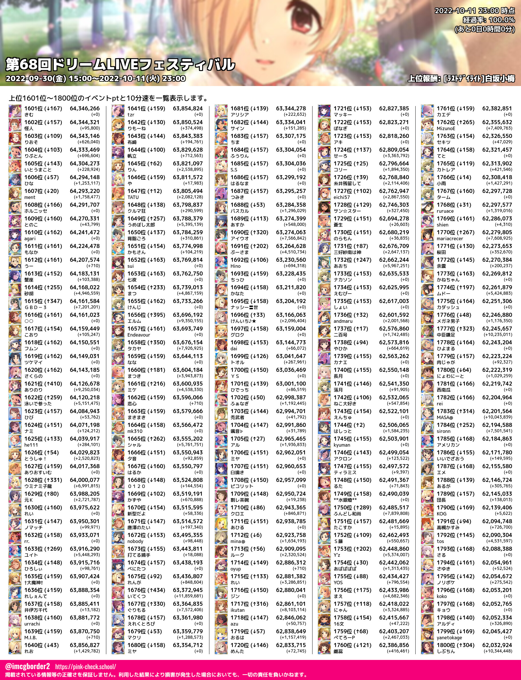 上位プロデューサースコア (2022-10-11 23:00 時点)