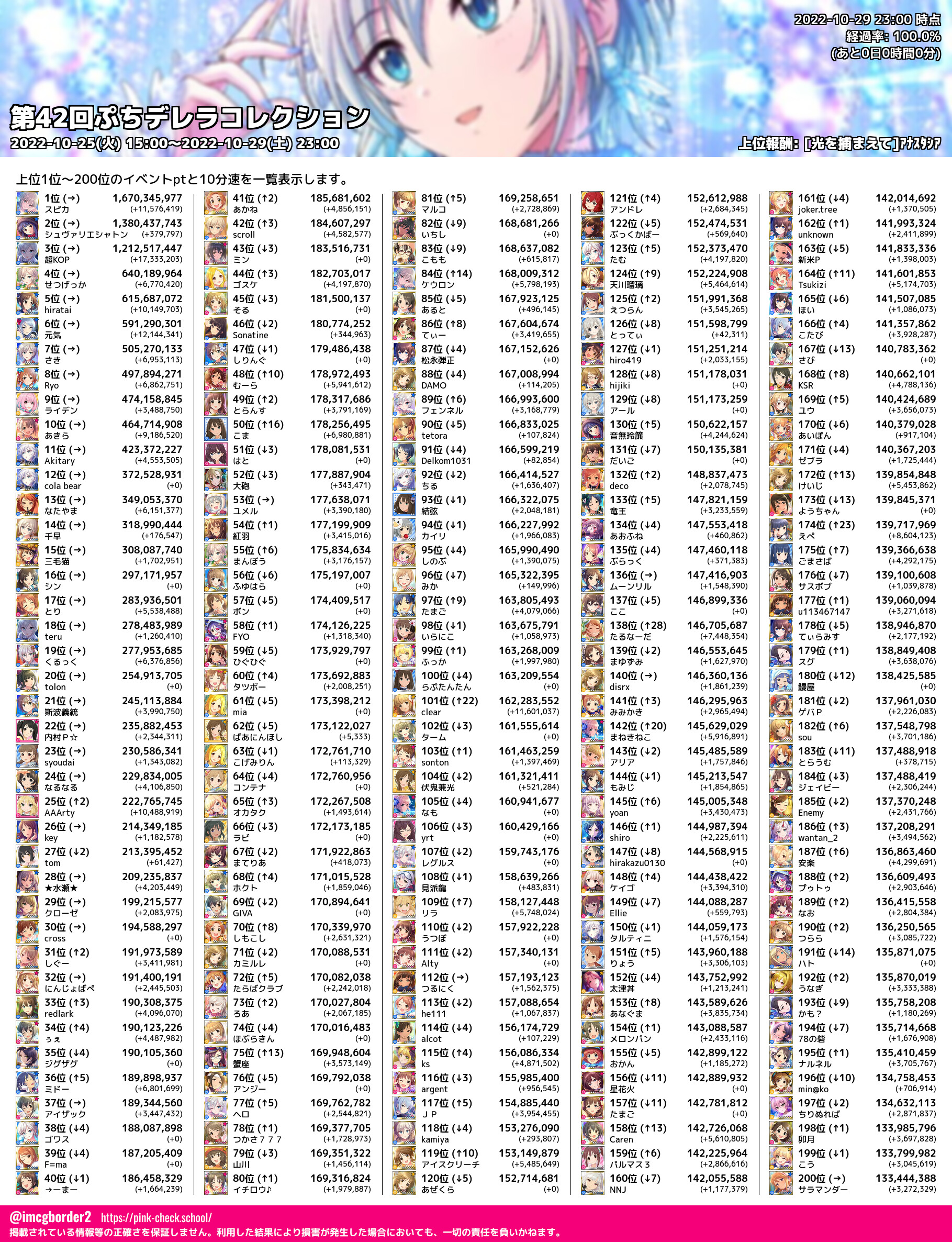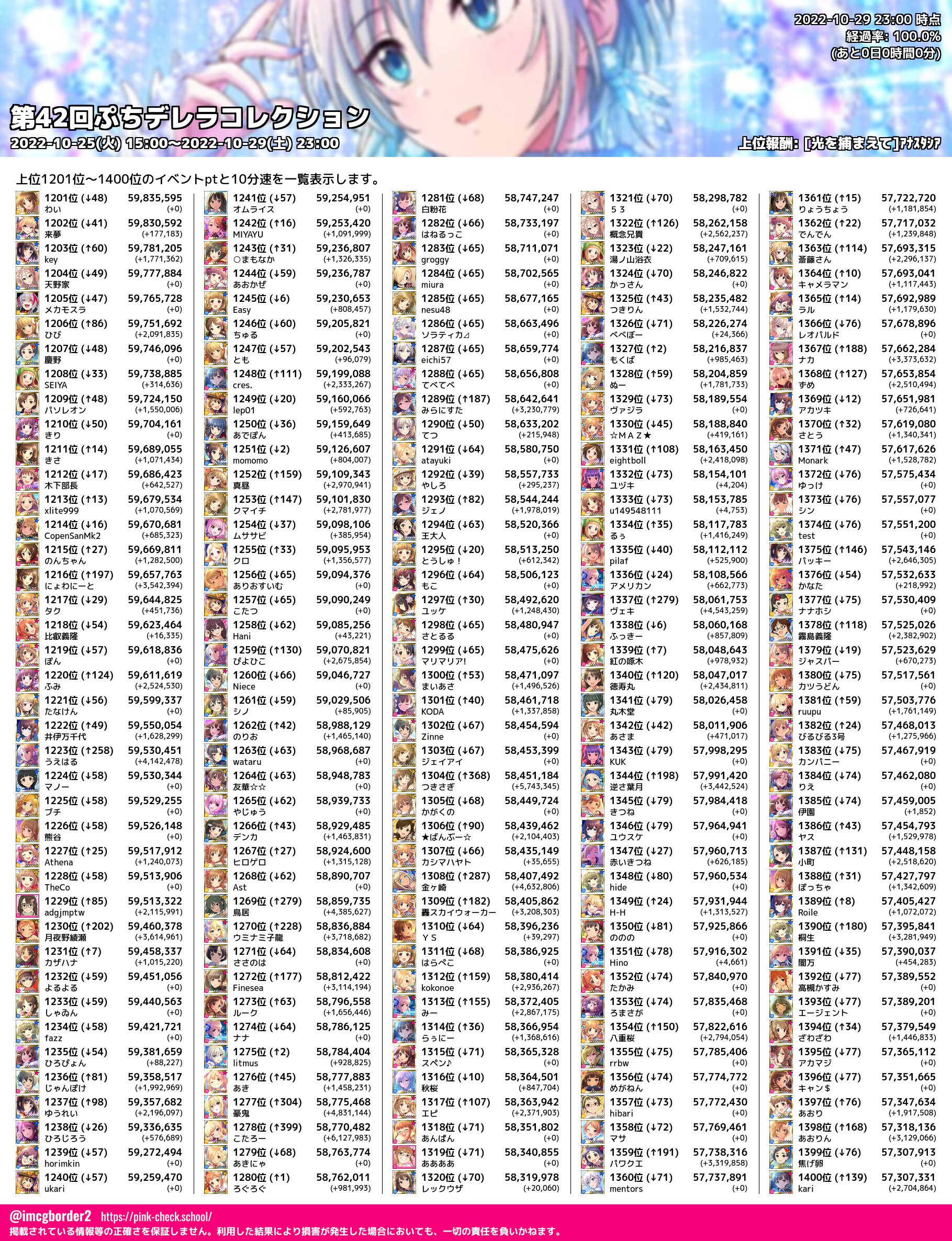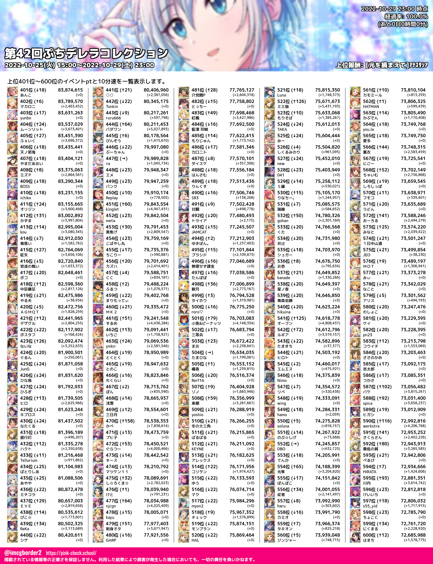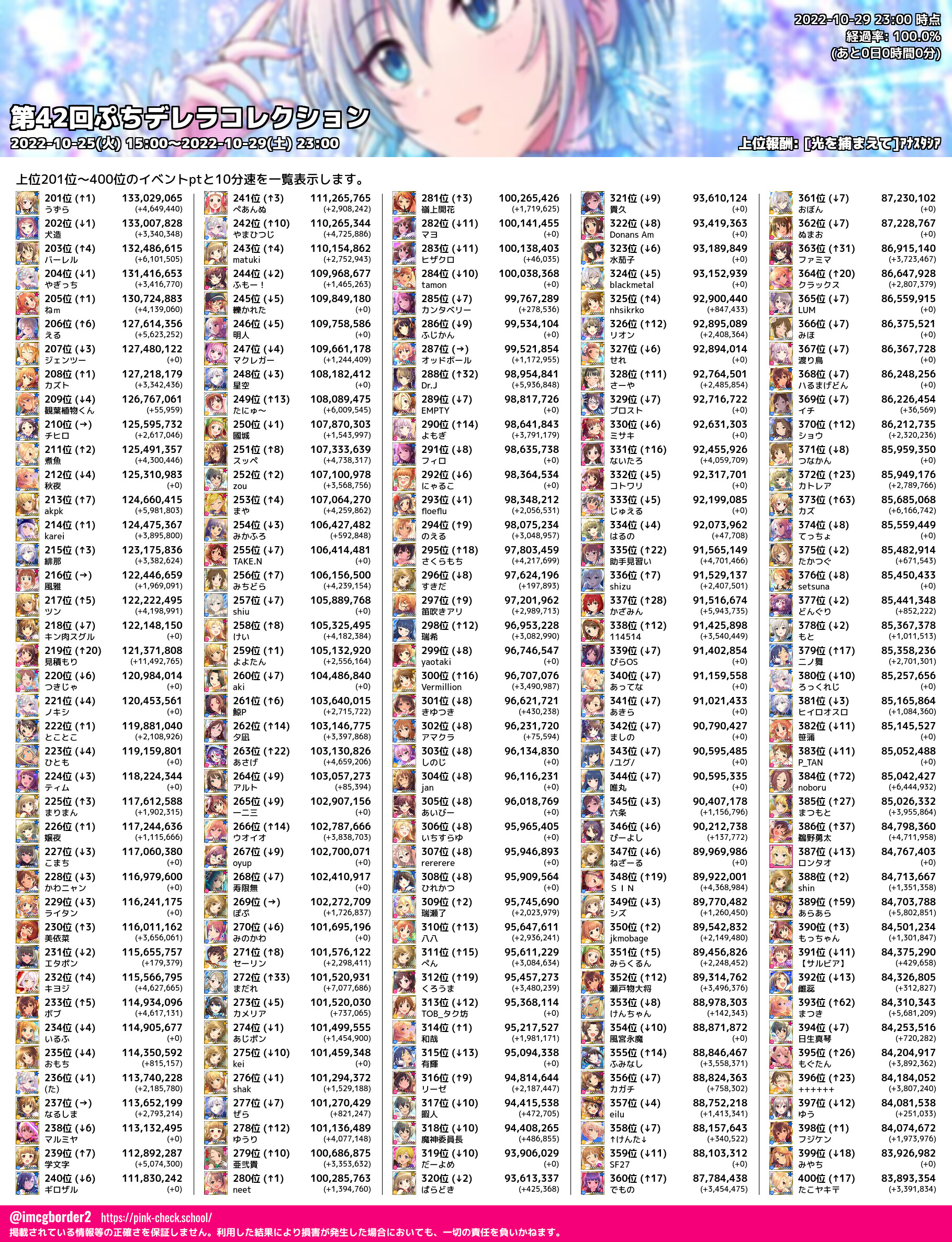 上位プロデューサースコア (2022-10-29 23:00 時点)