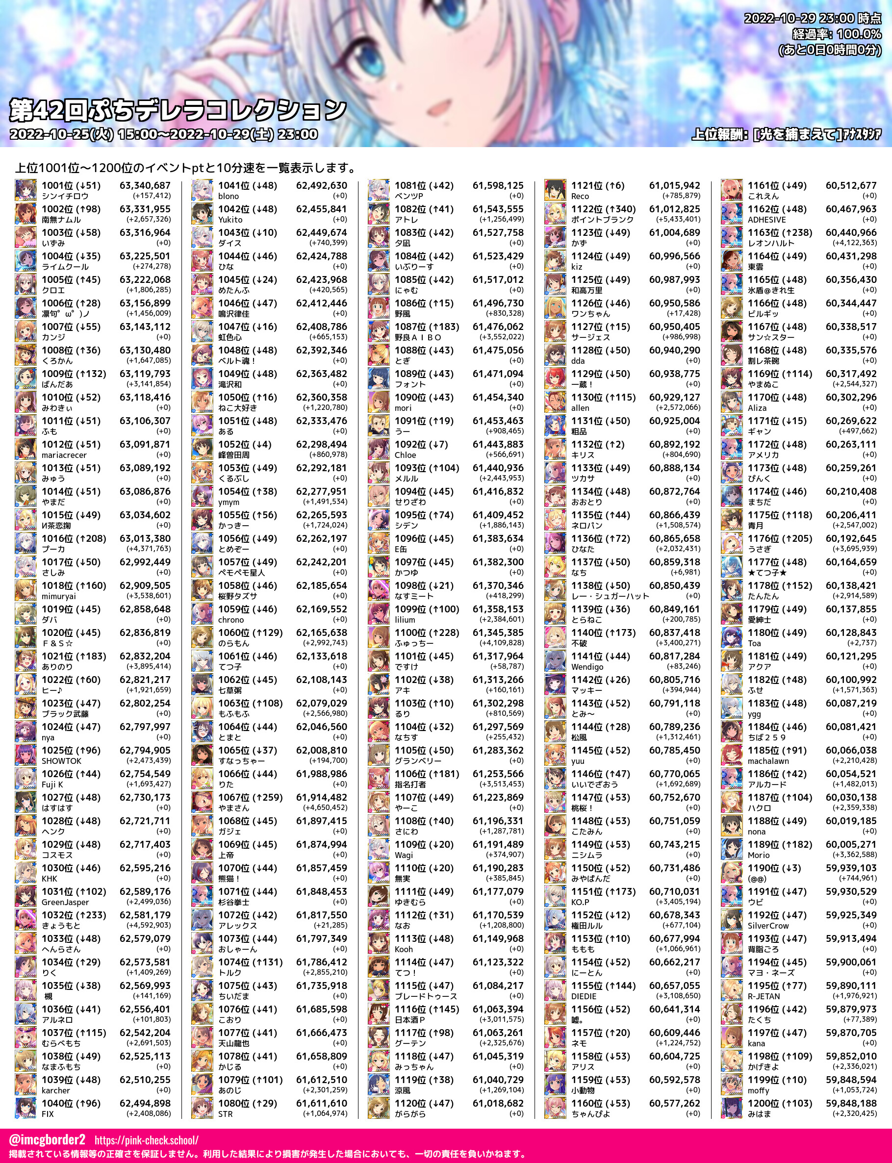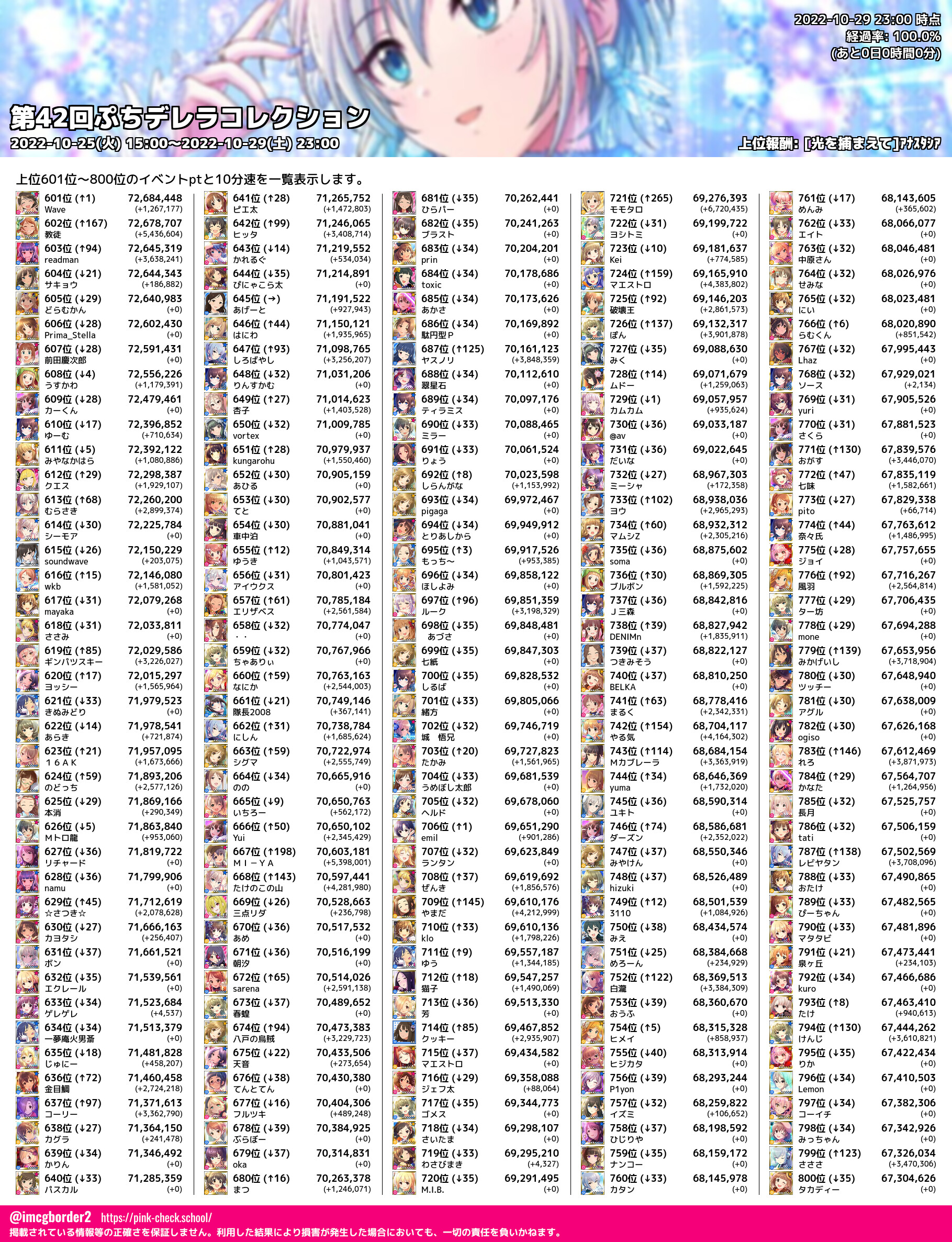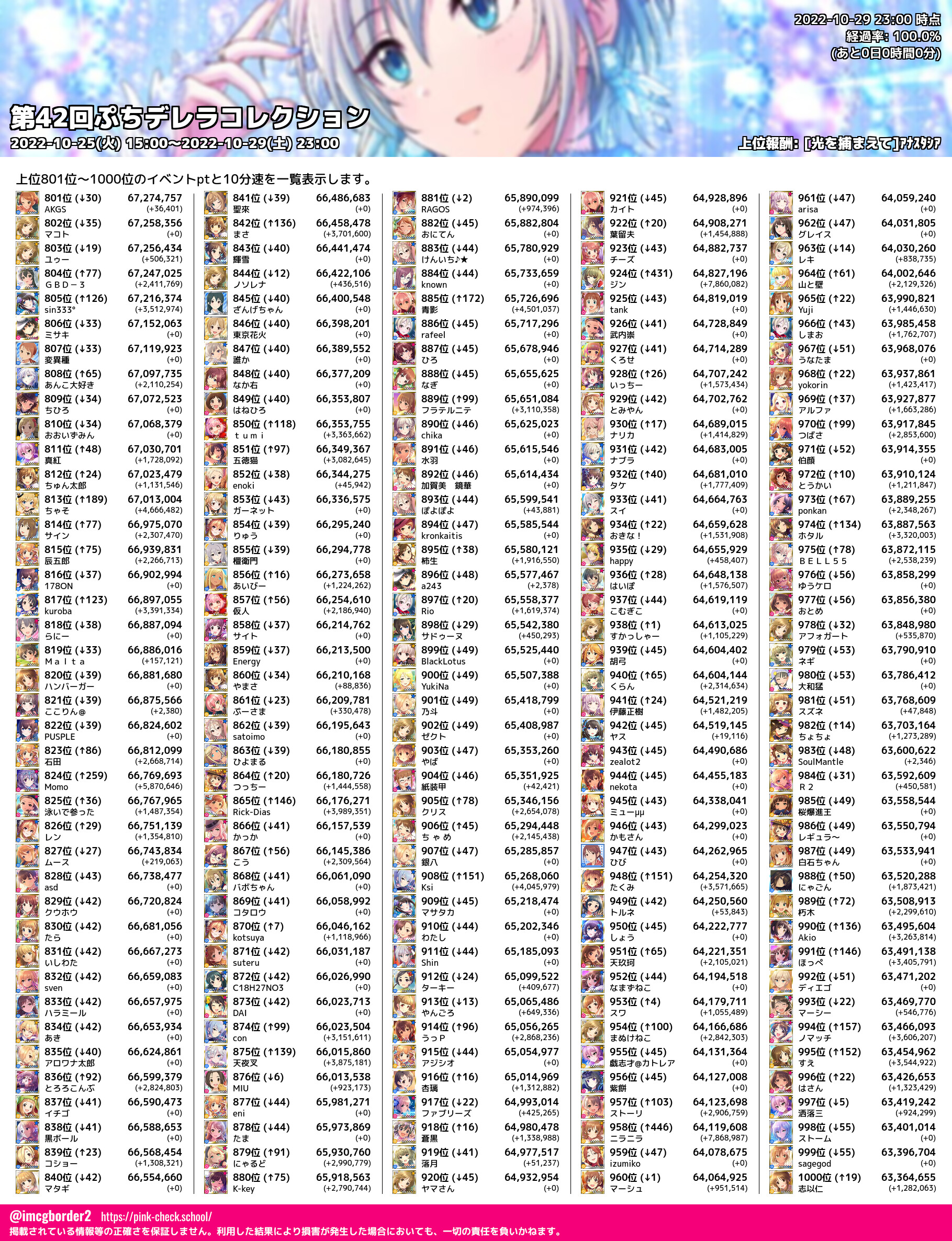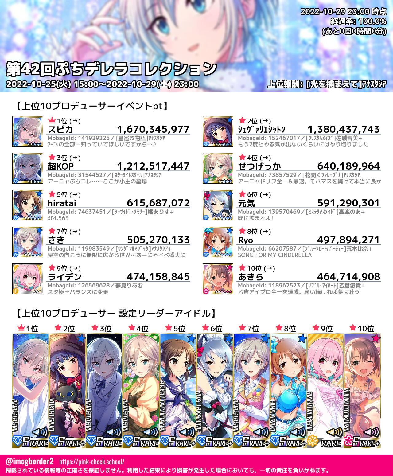 上位プロデューサースコア (2022-10-29 23:00 時点)