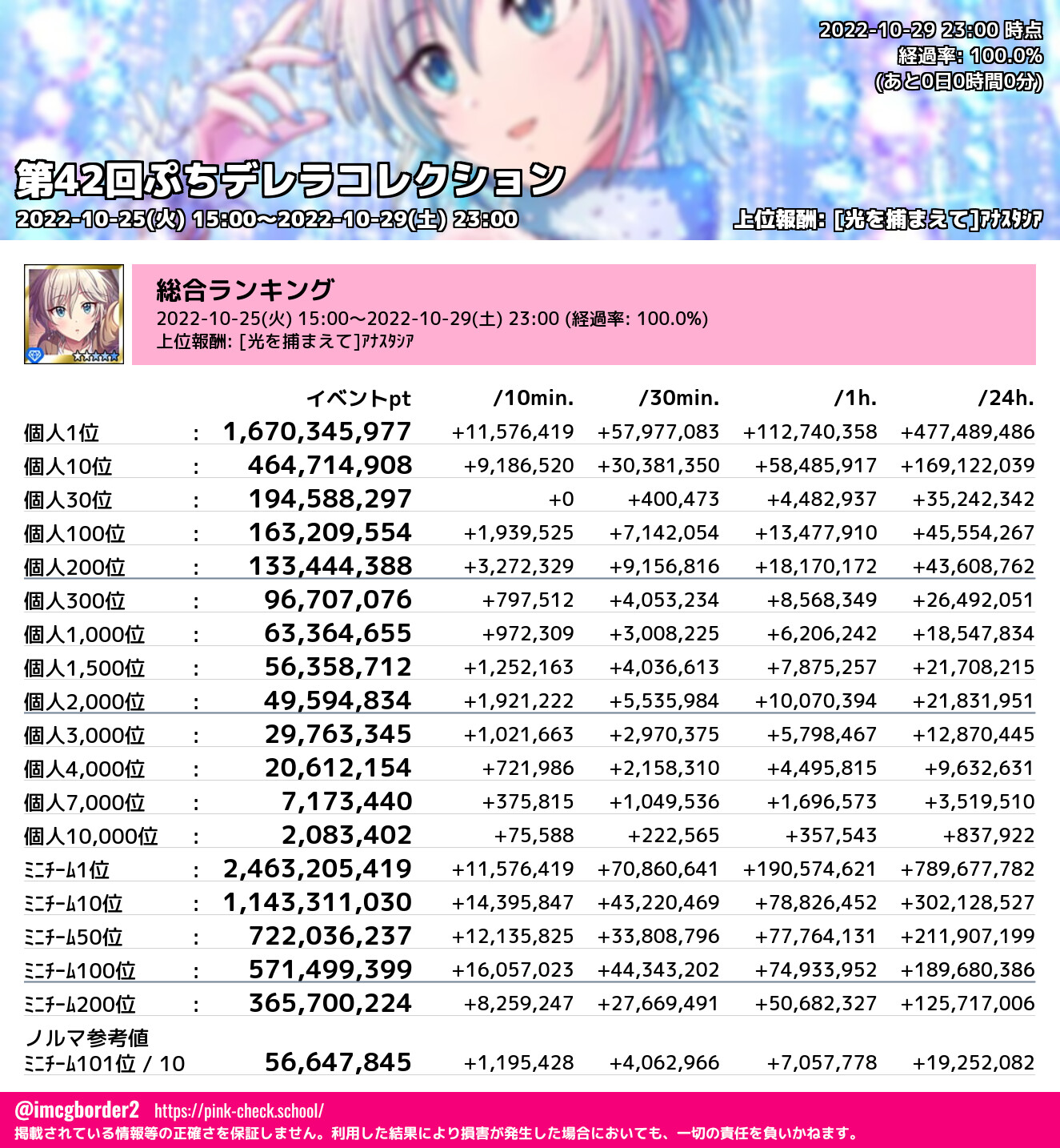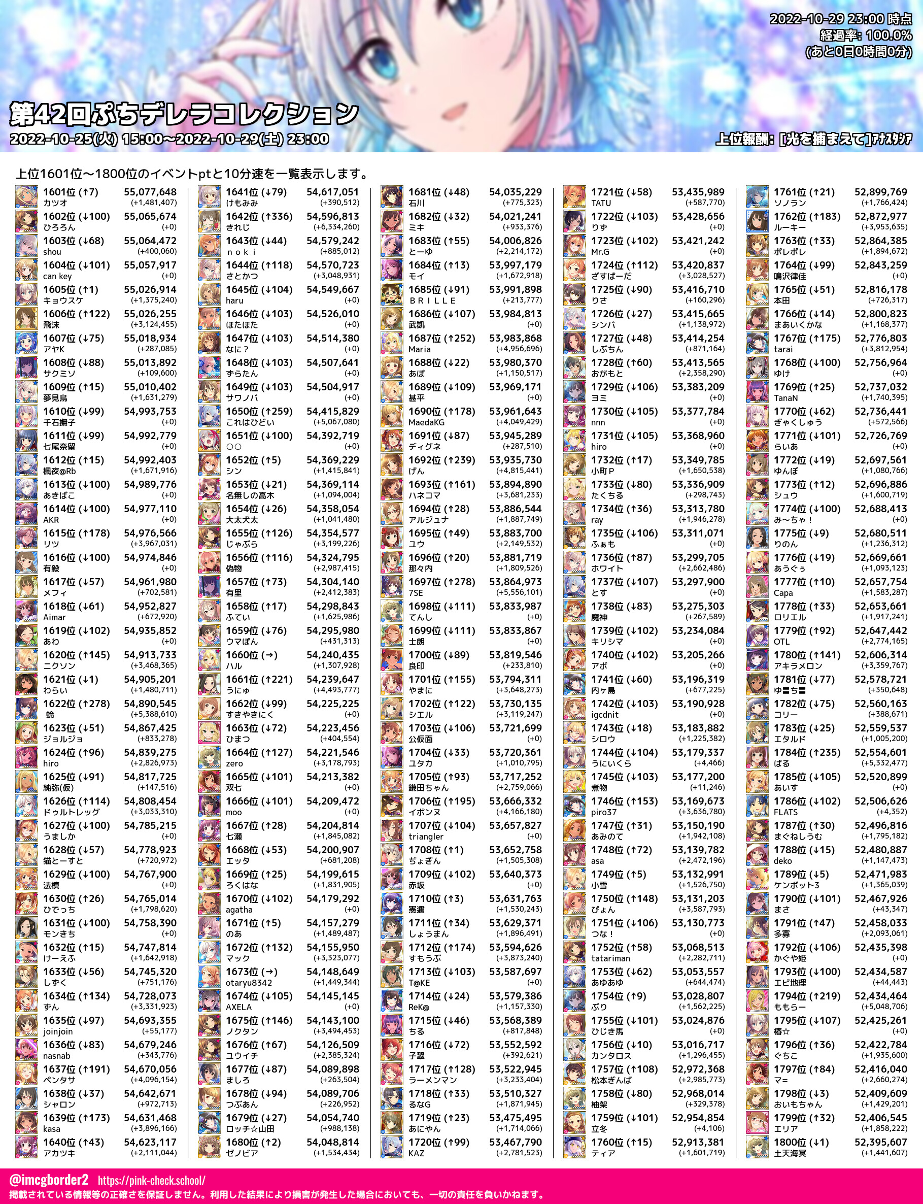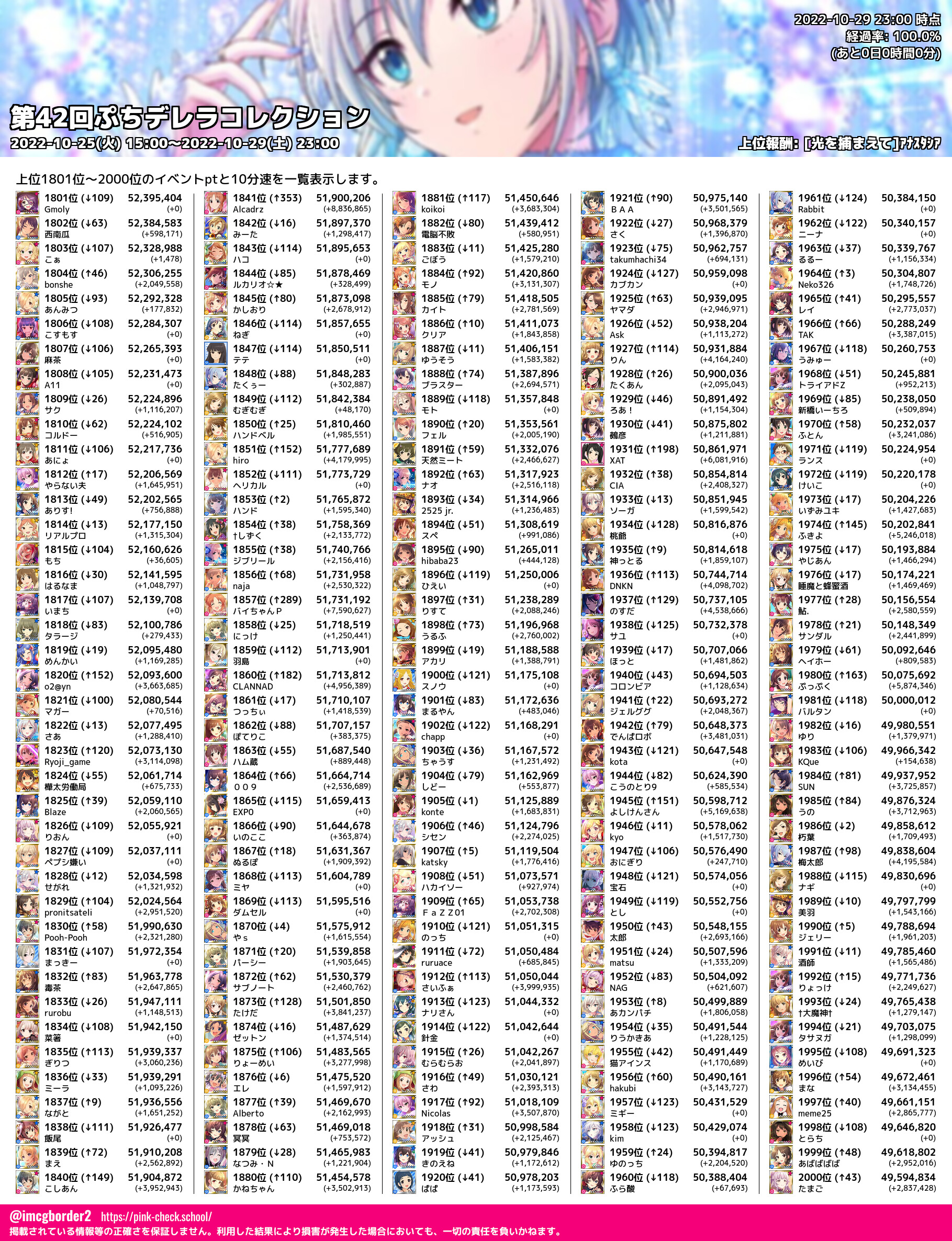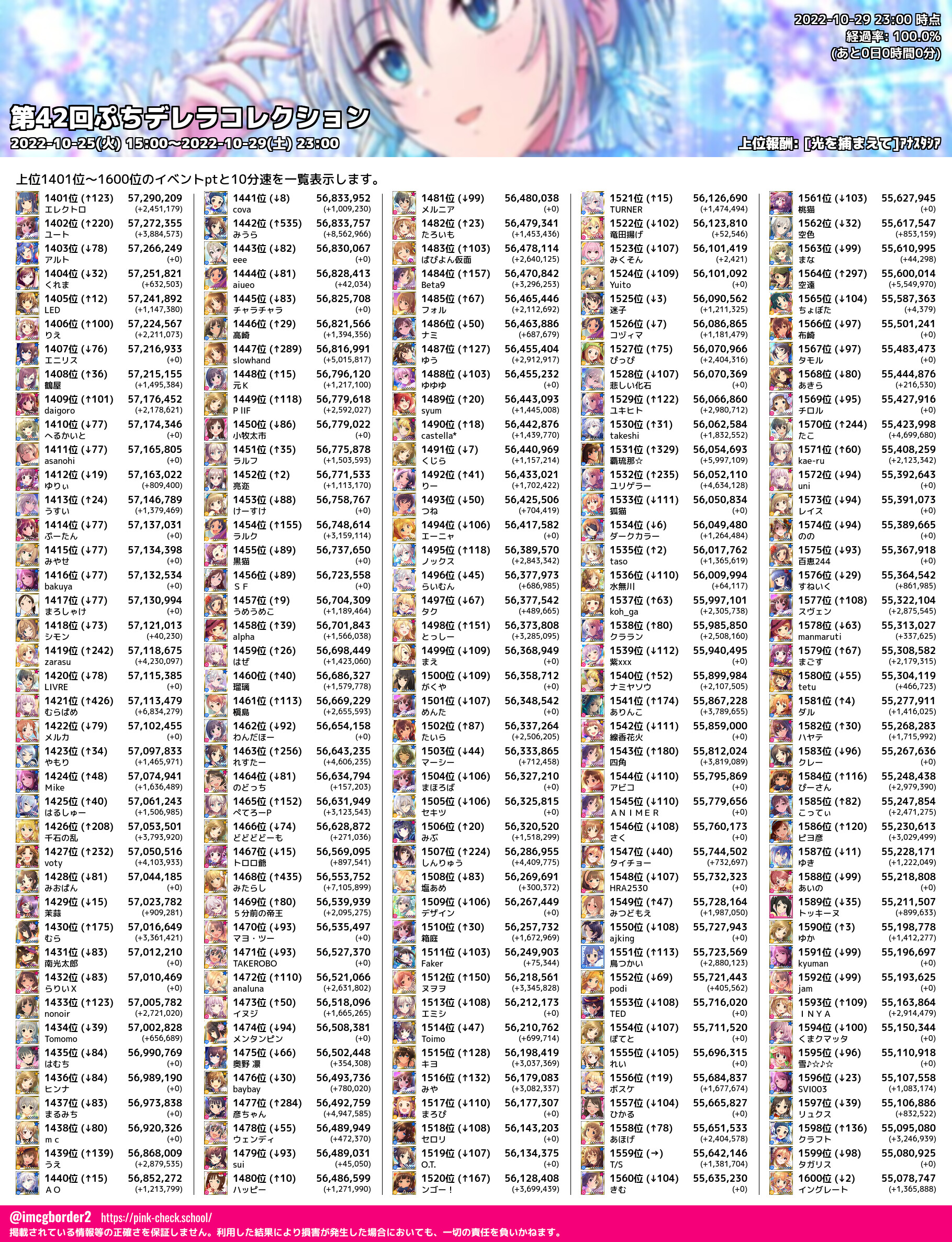 上位プロデューサースコア (2022-10-29 23:00 時点)