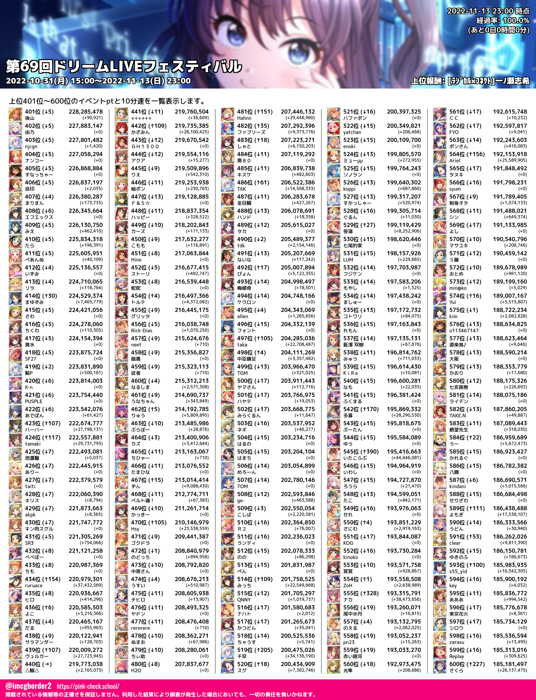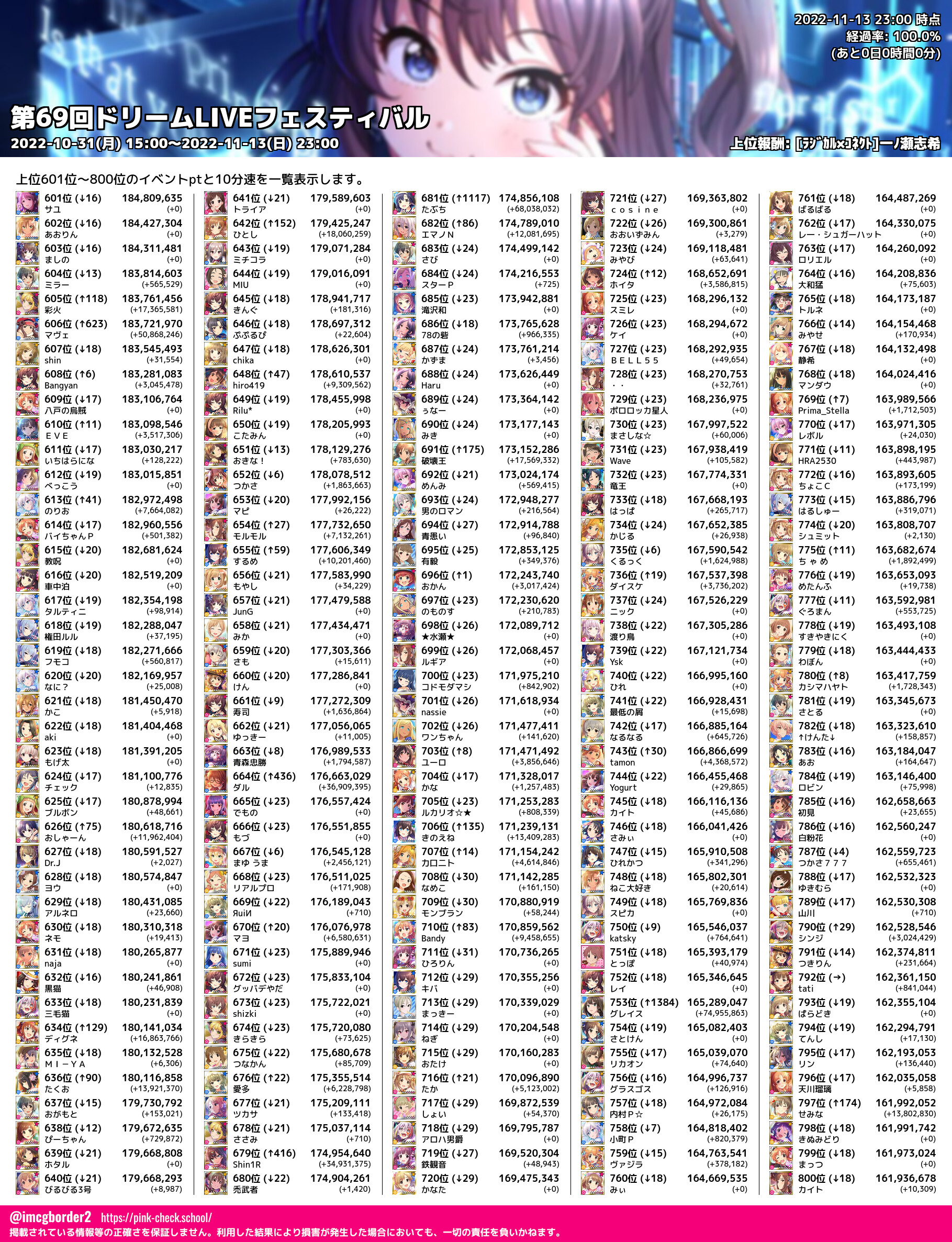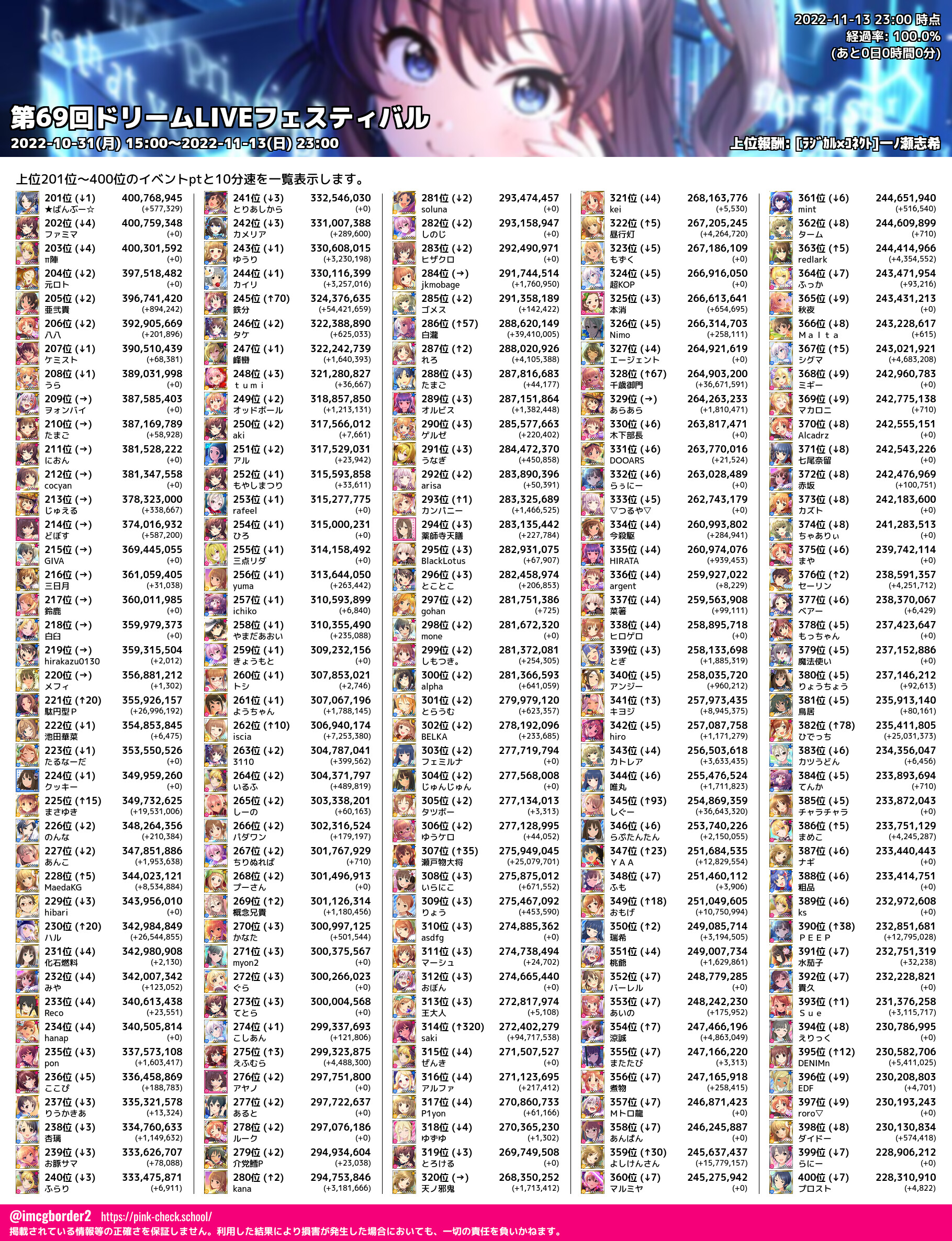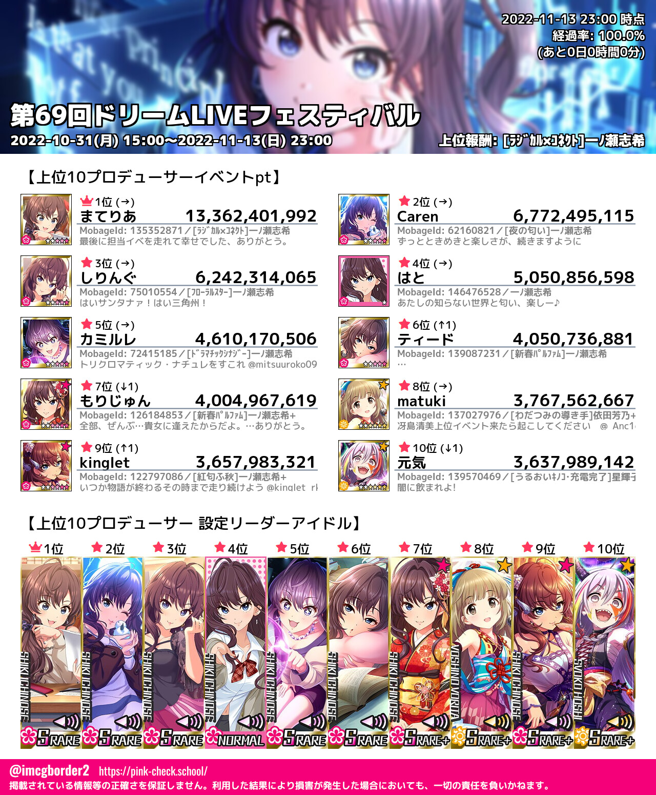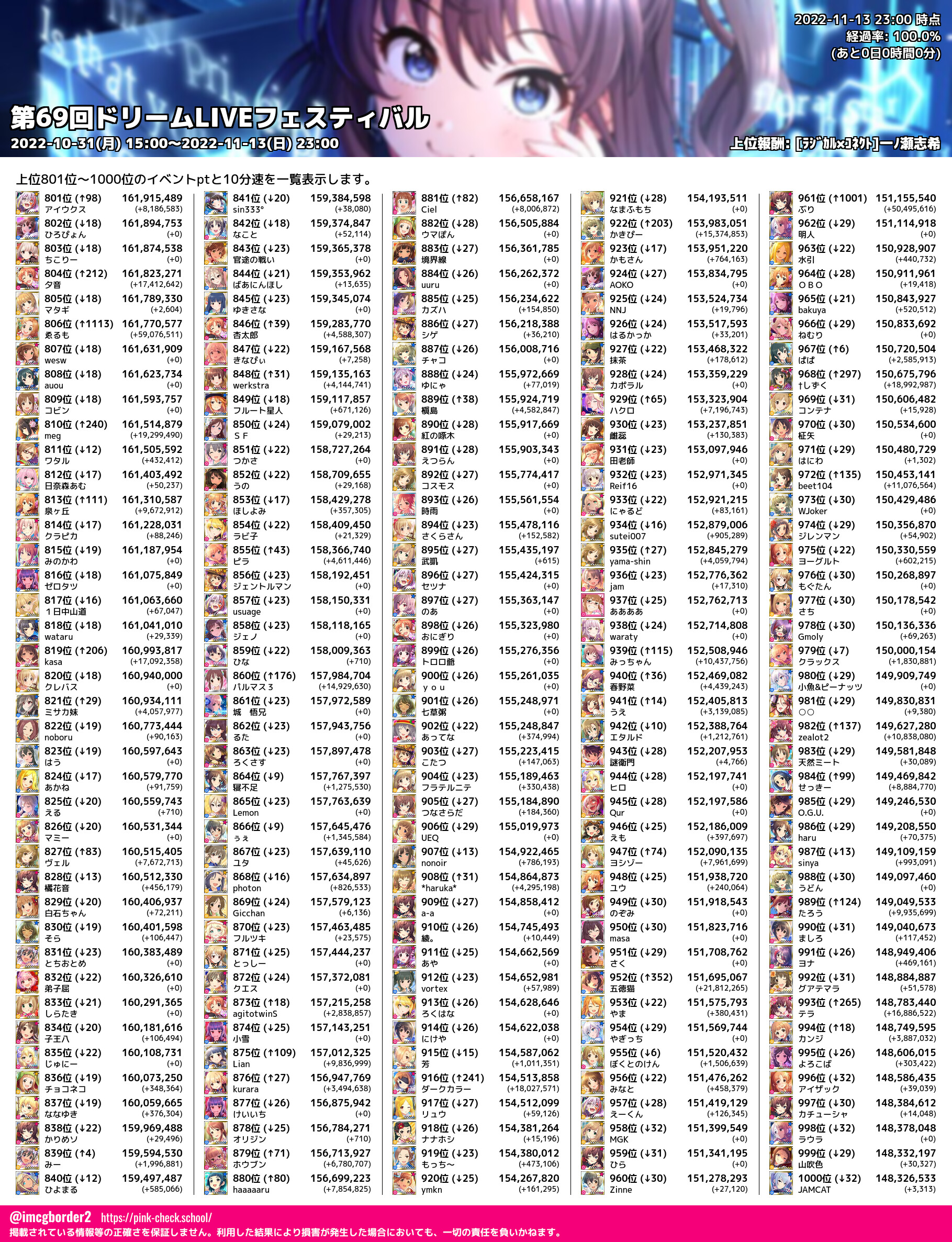 上位プロデューサースコア (2022-11-13 23:00 時点)