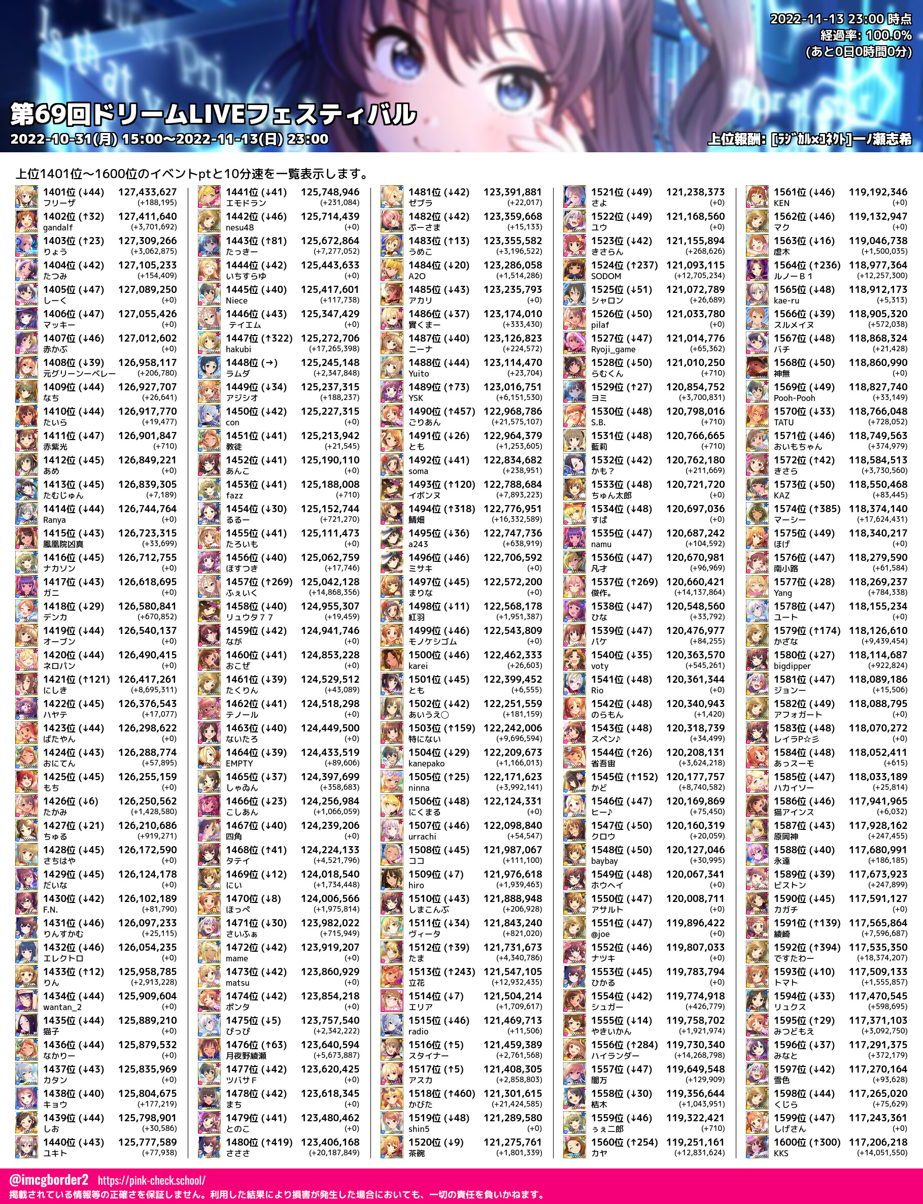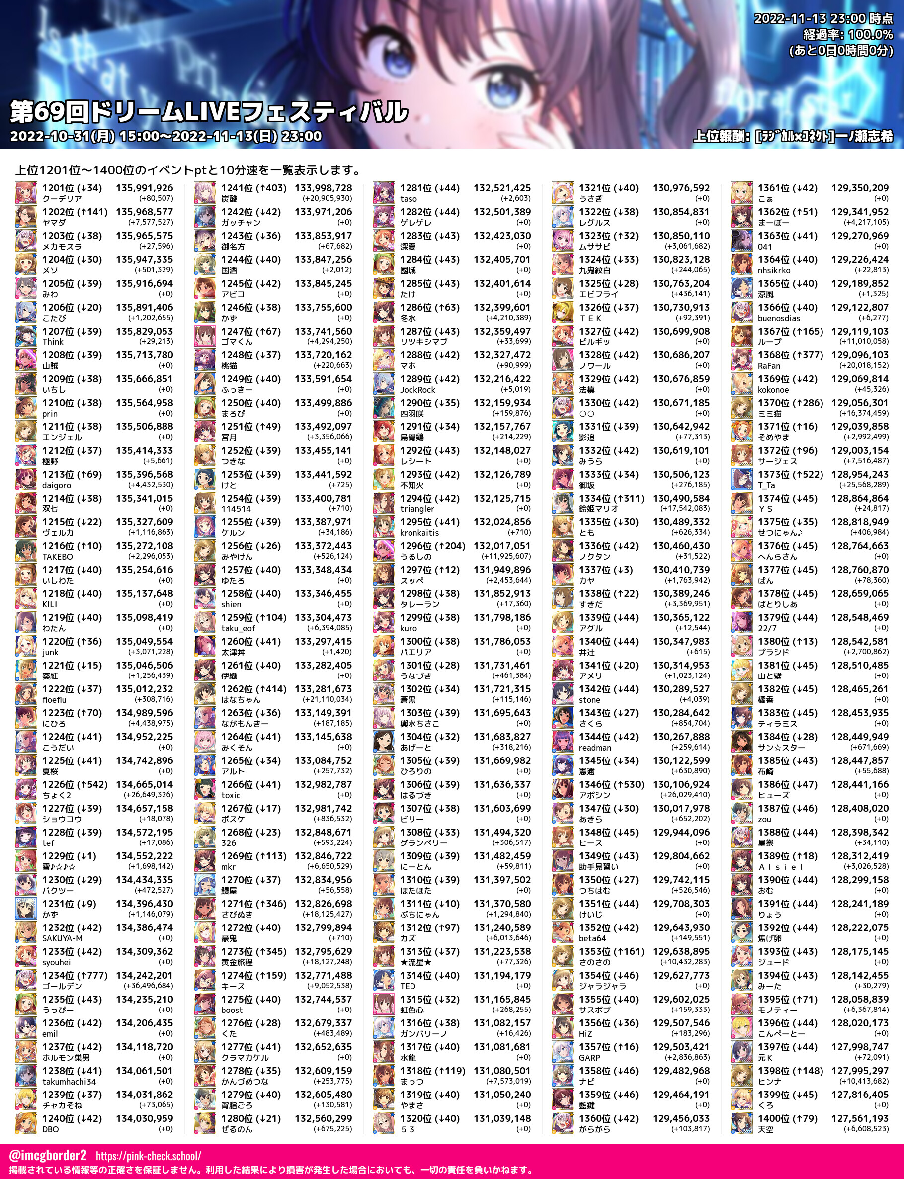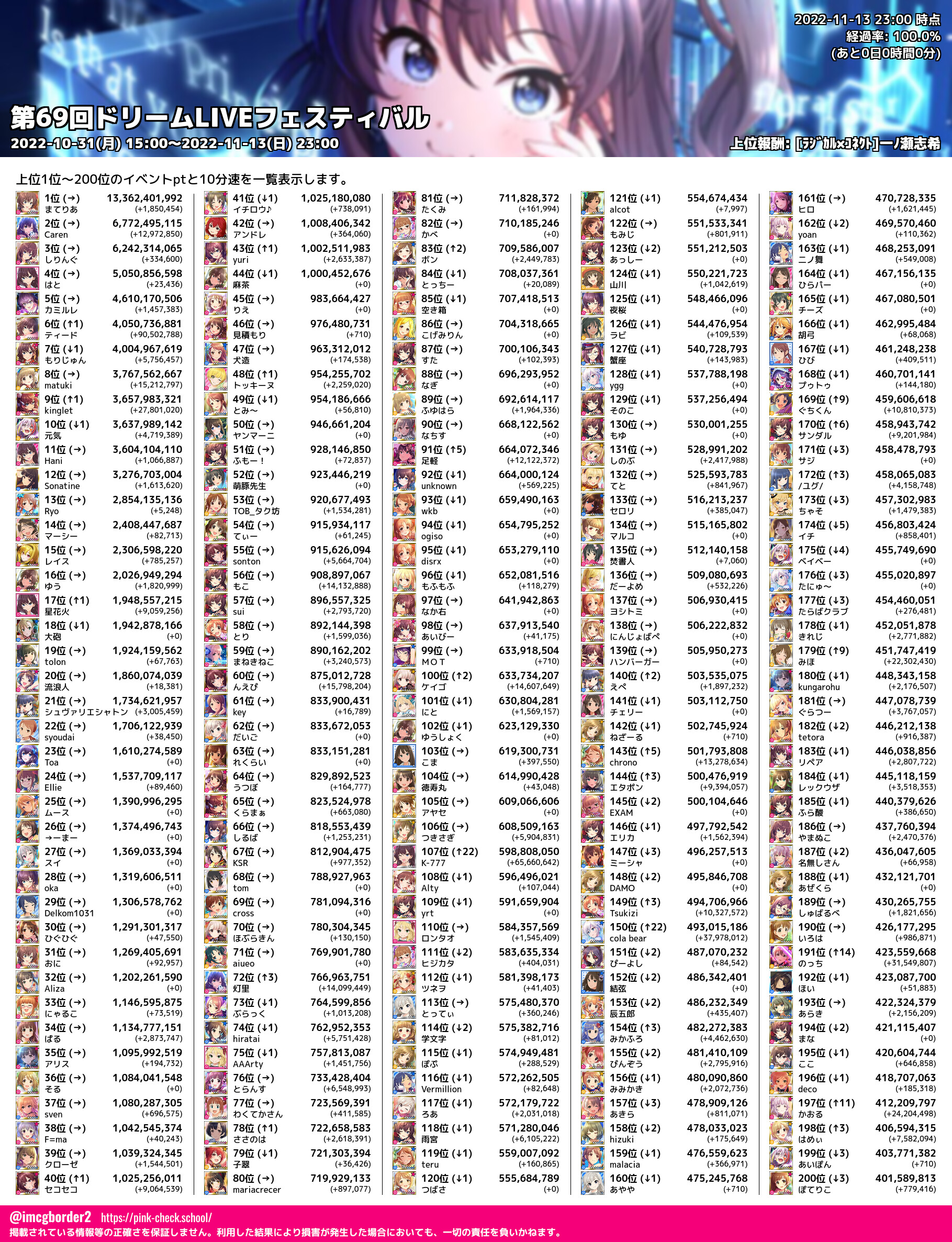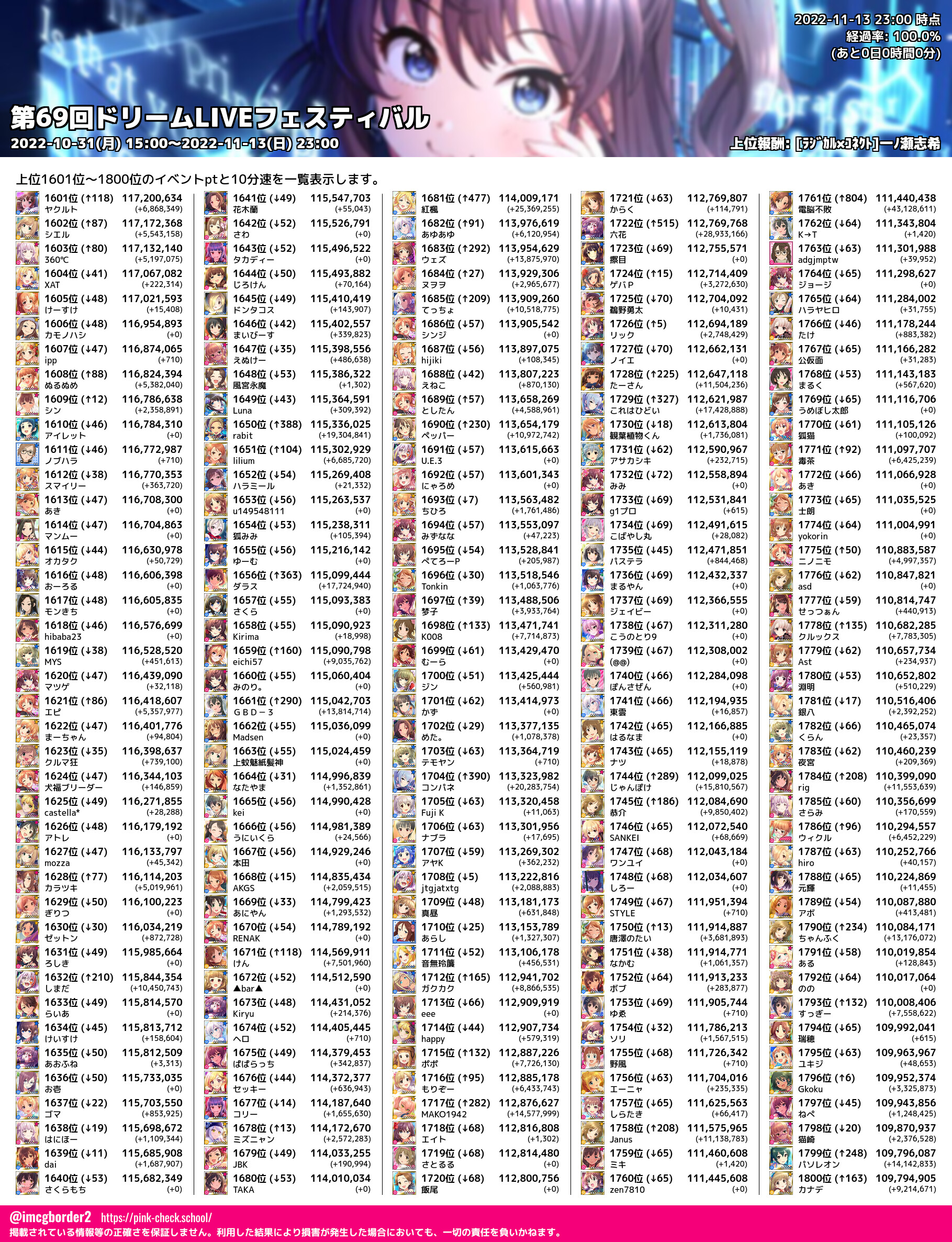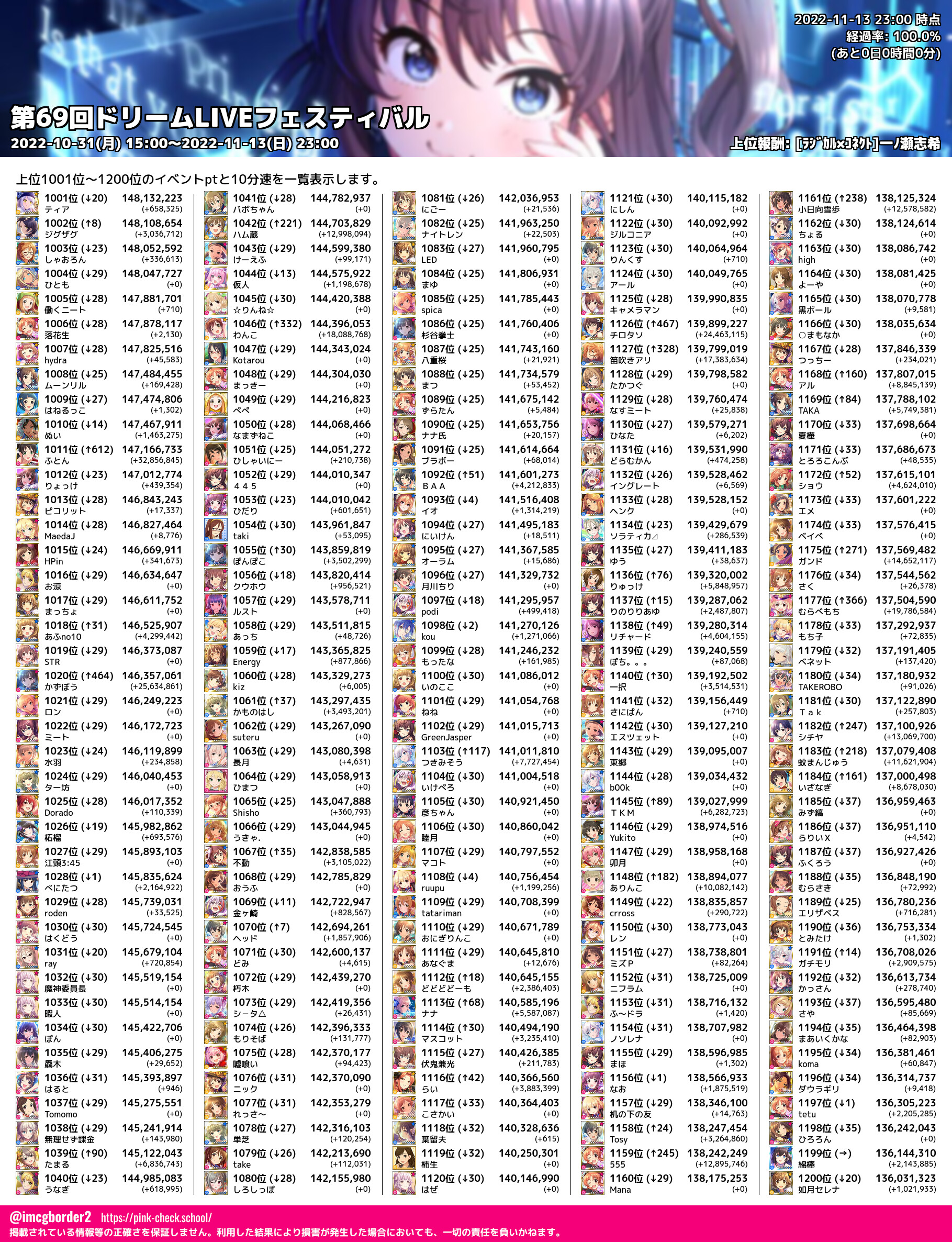 上位プロデューサースコア (2022-11-13 23:00 時点)