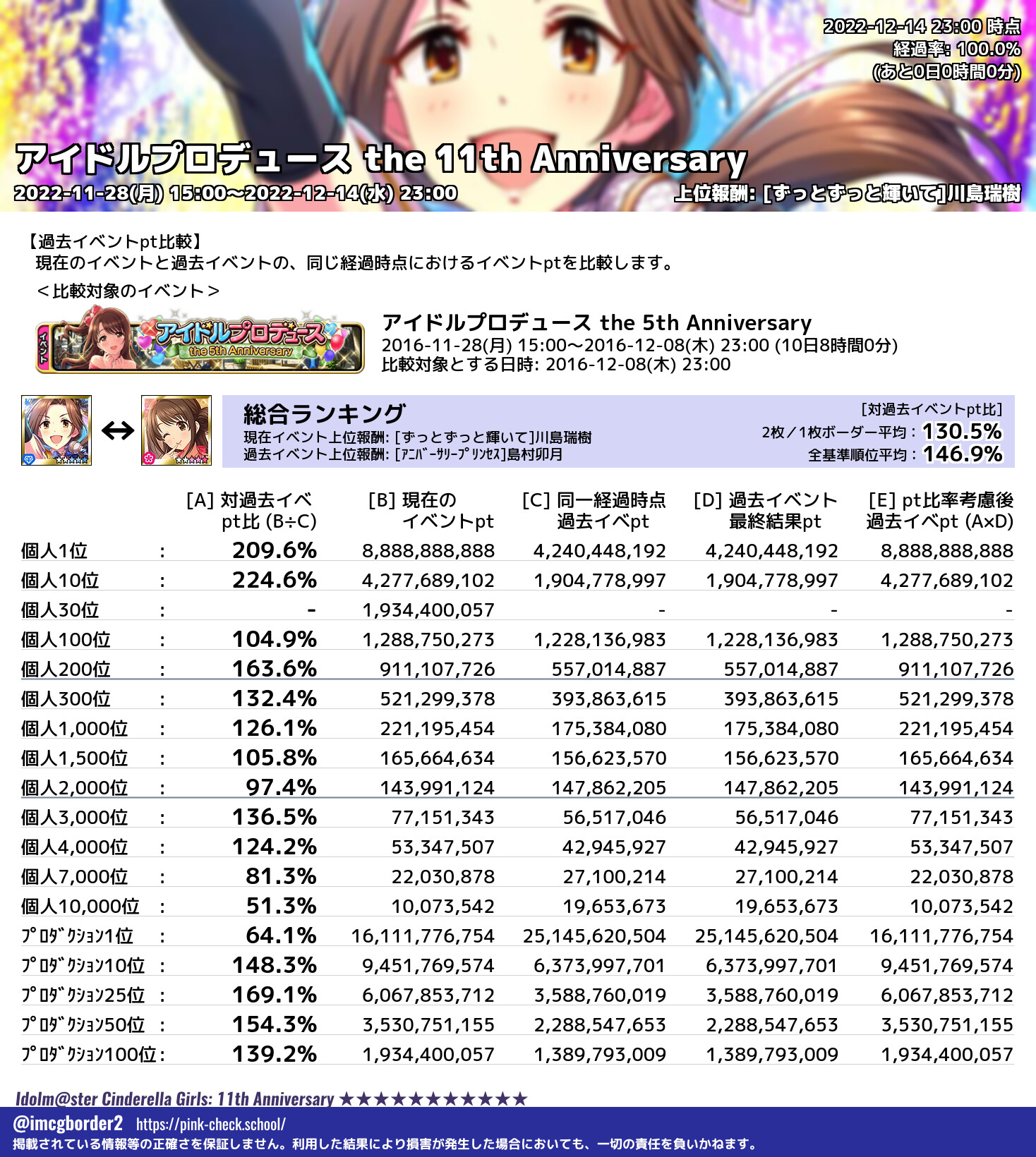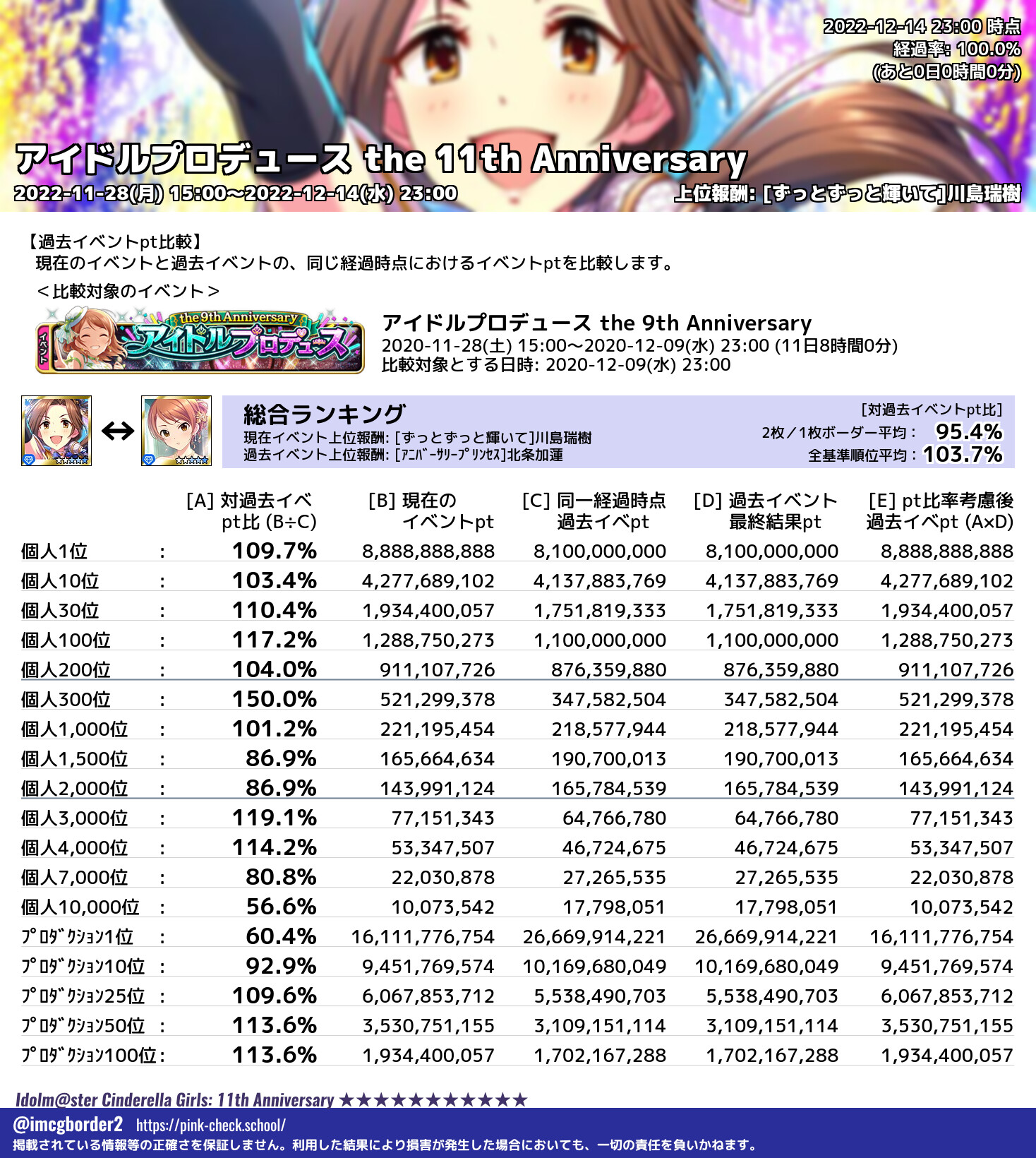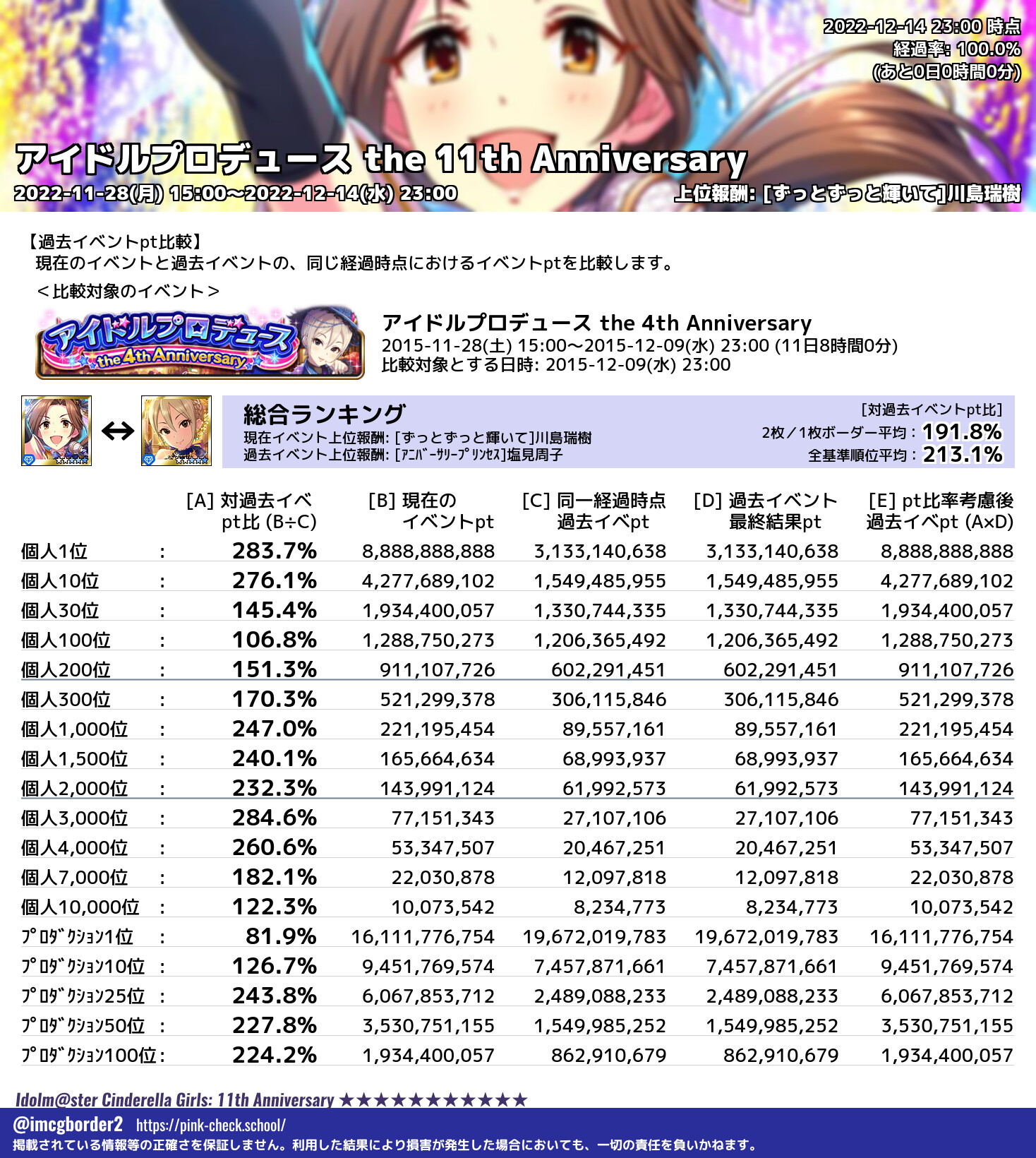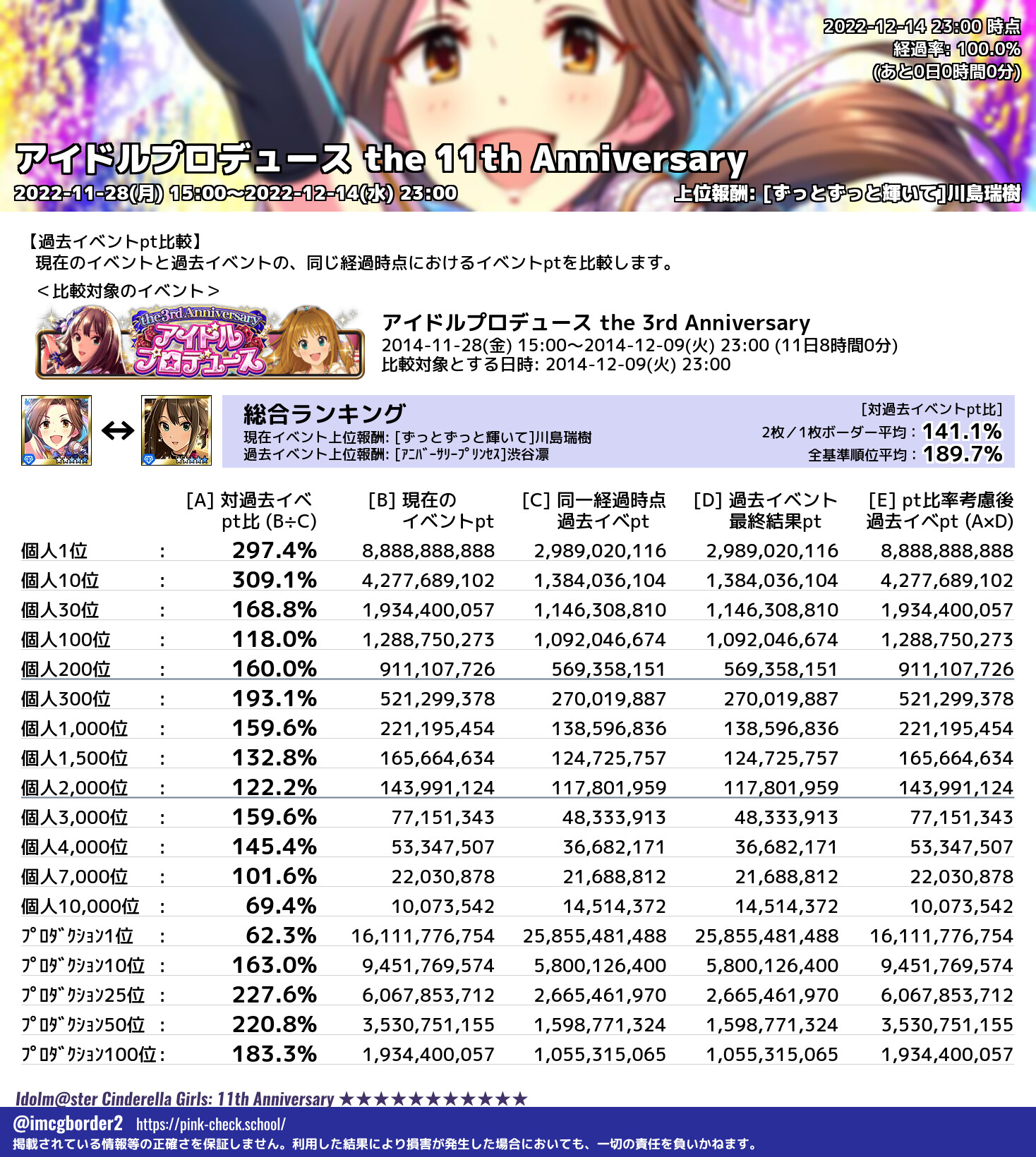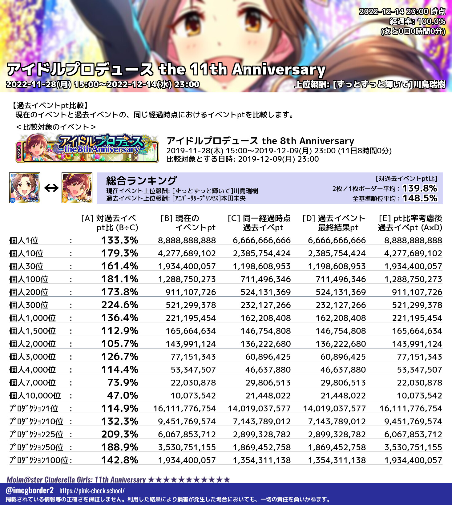 アイドルプロデュース the 11th Anniversary 結果集計完了