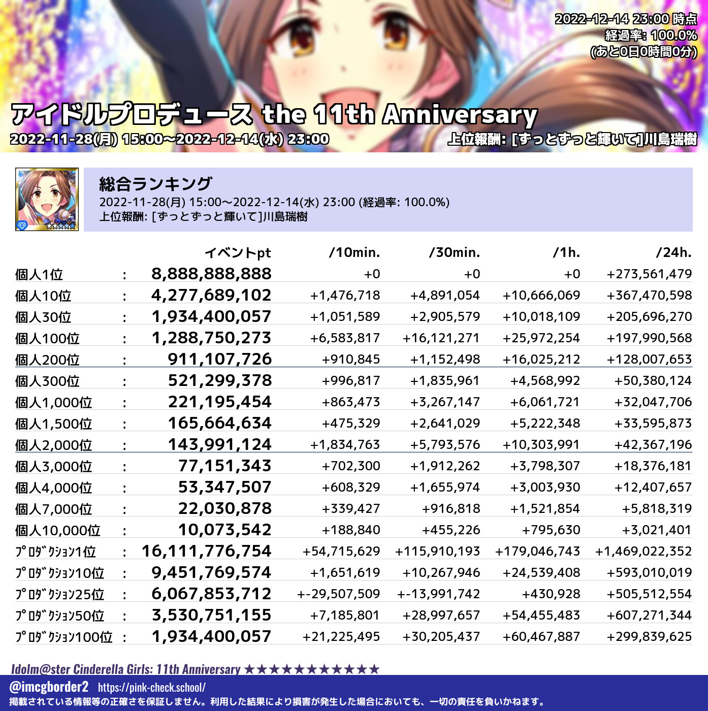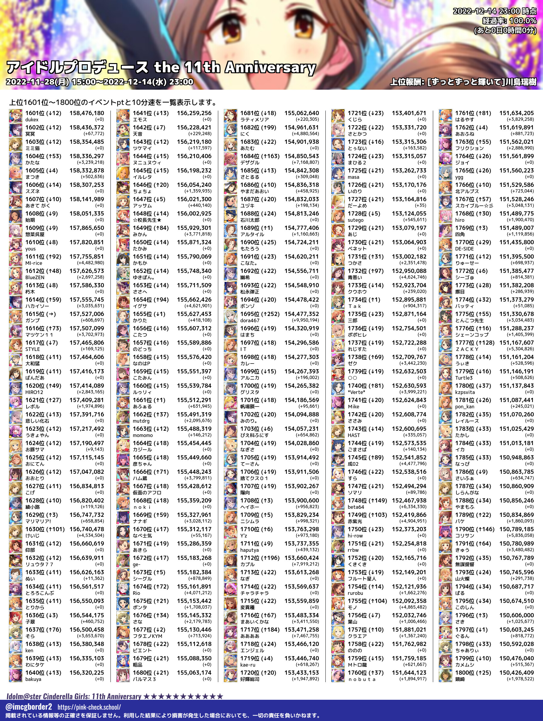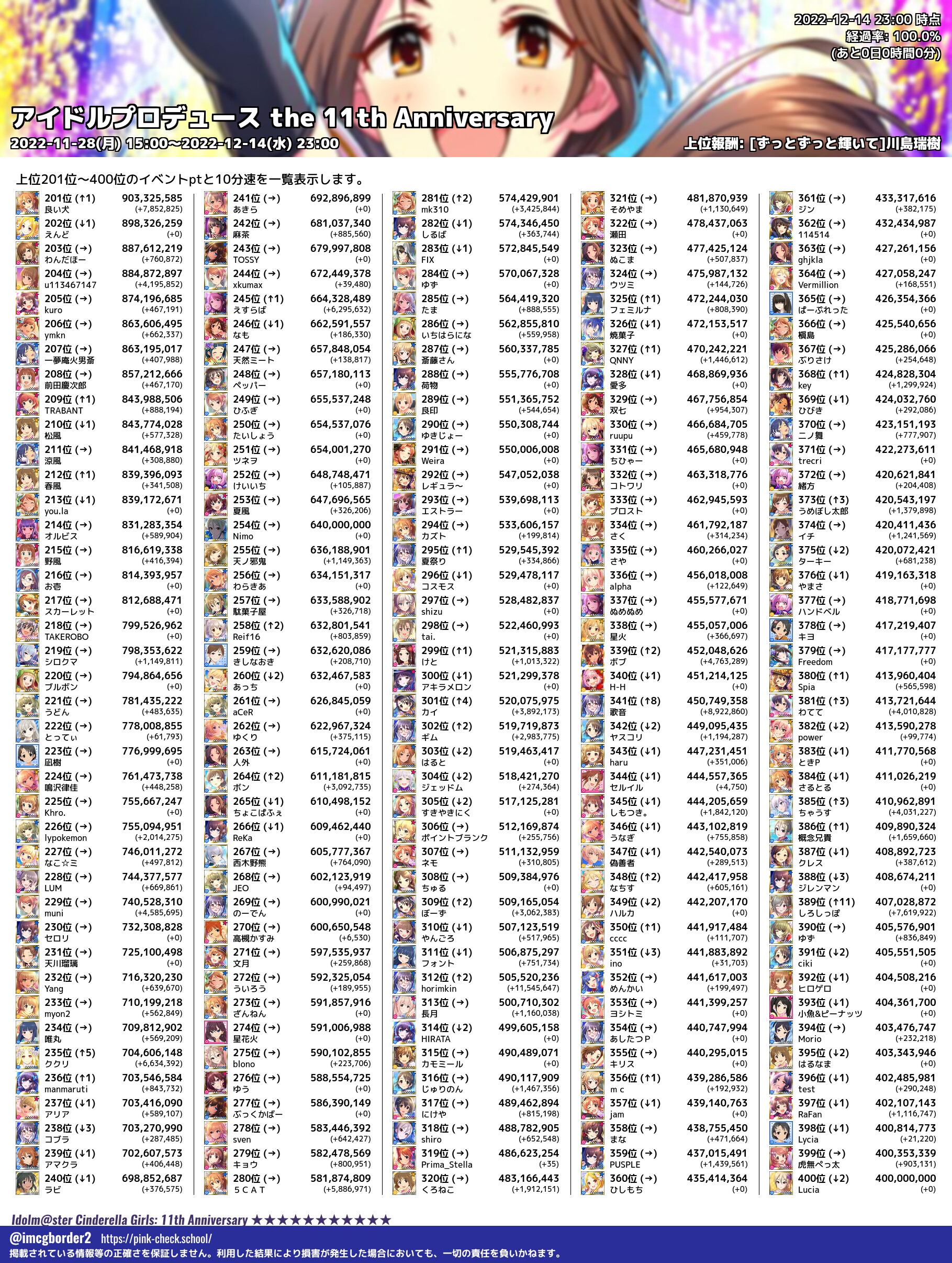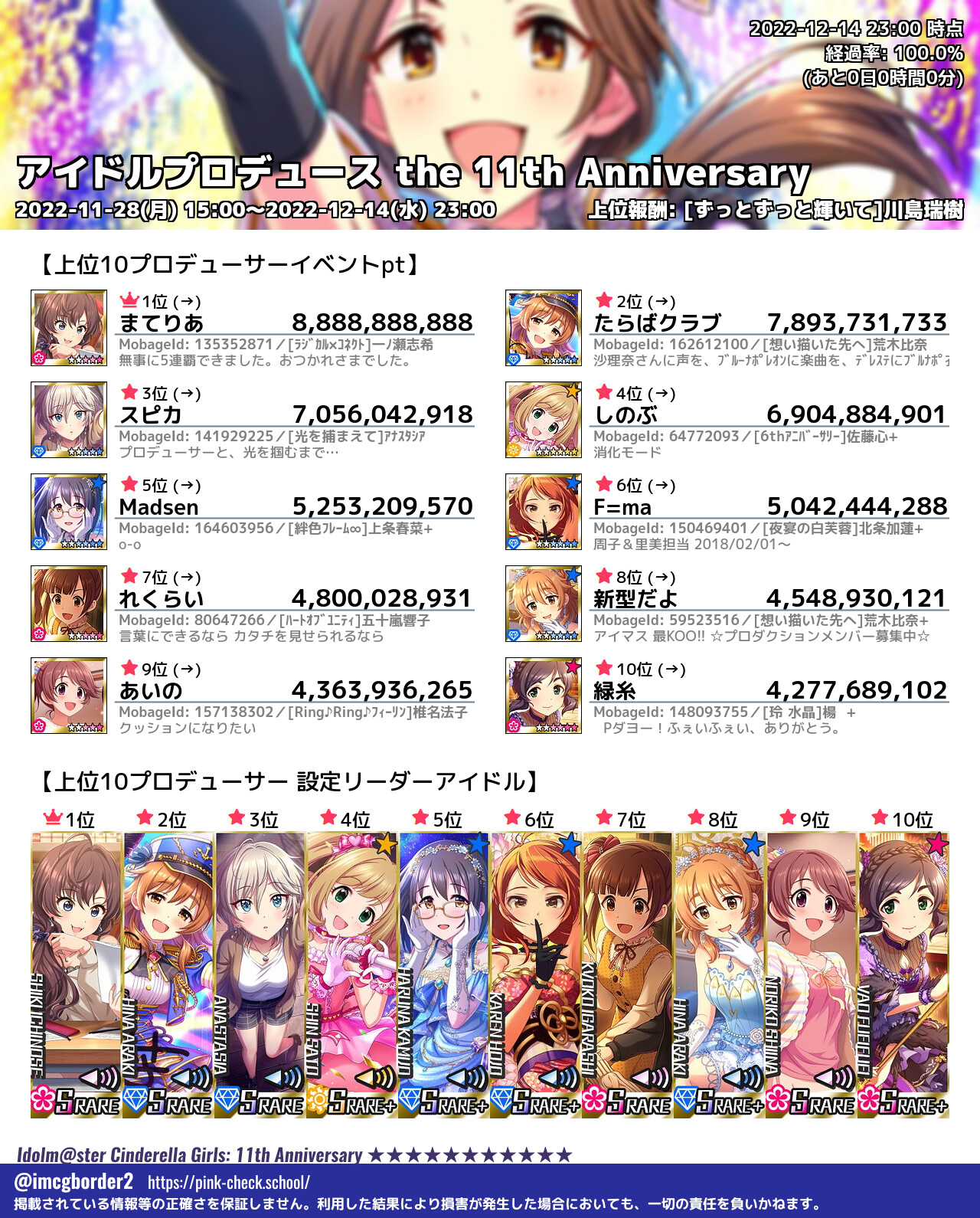 上位プロデューサースコア (2022-12-14 23:00 時点)