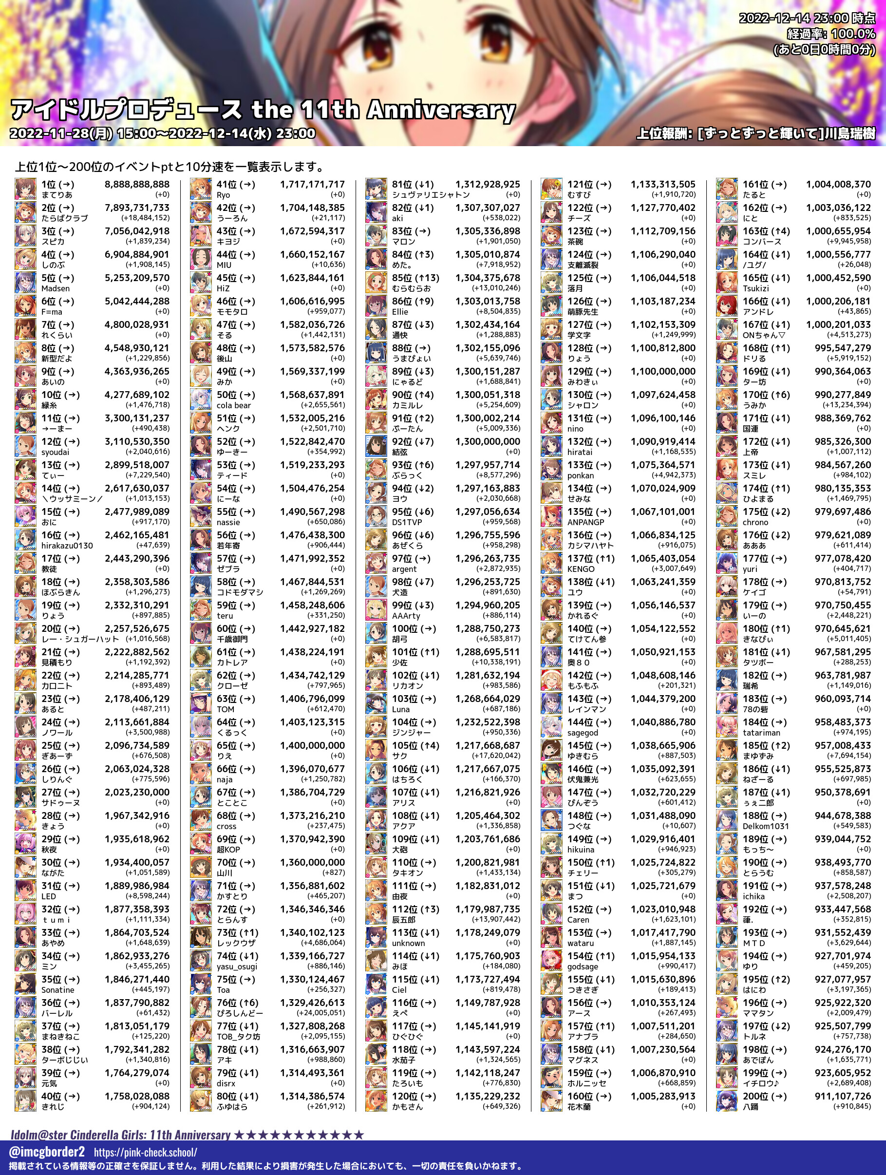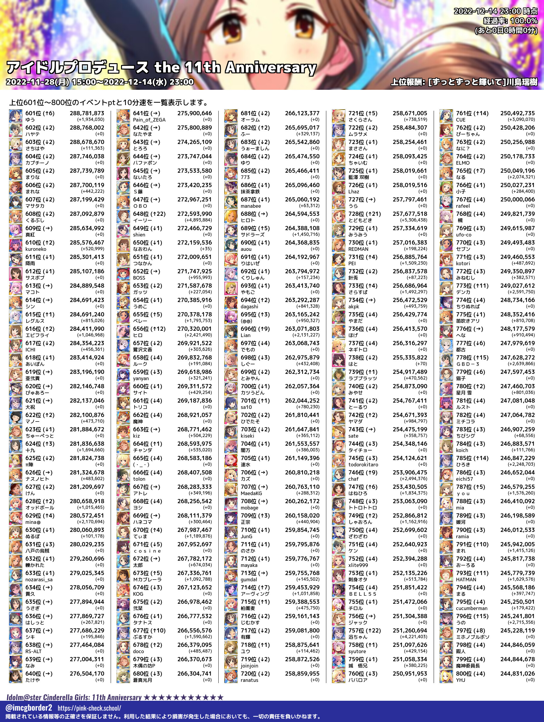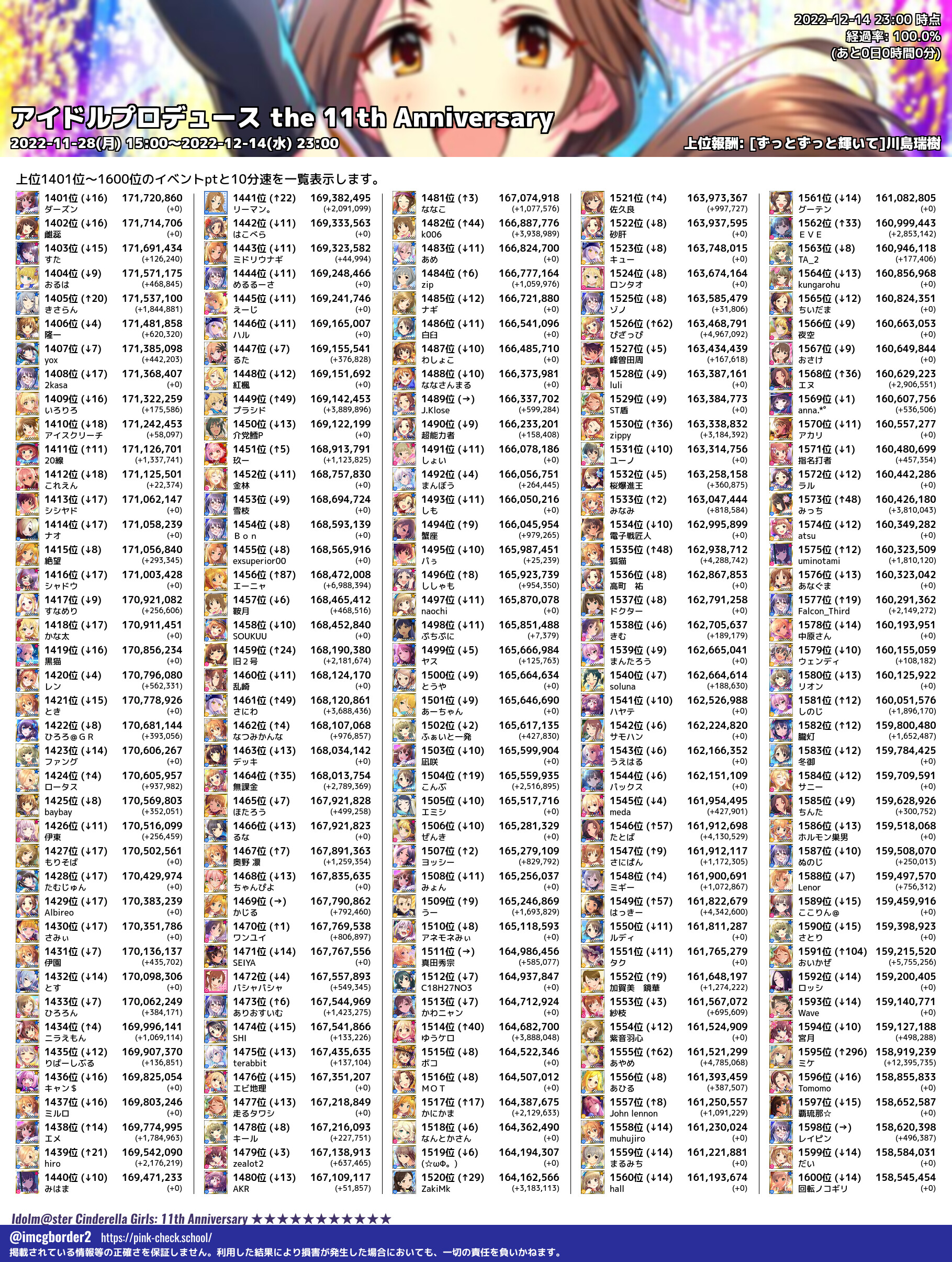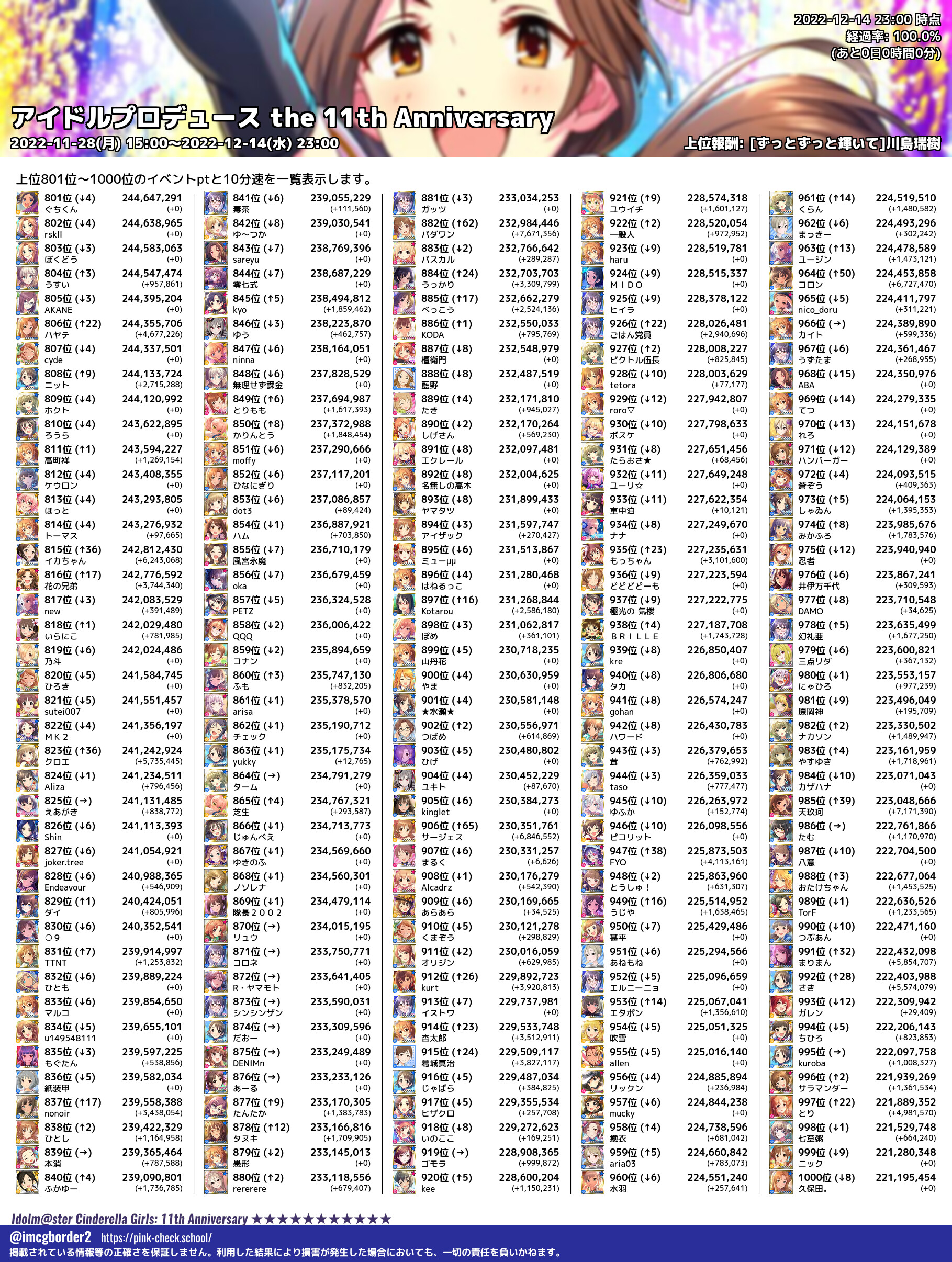 上位プロデューサースコア (2022-12-14 23:00 時点)