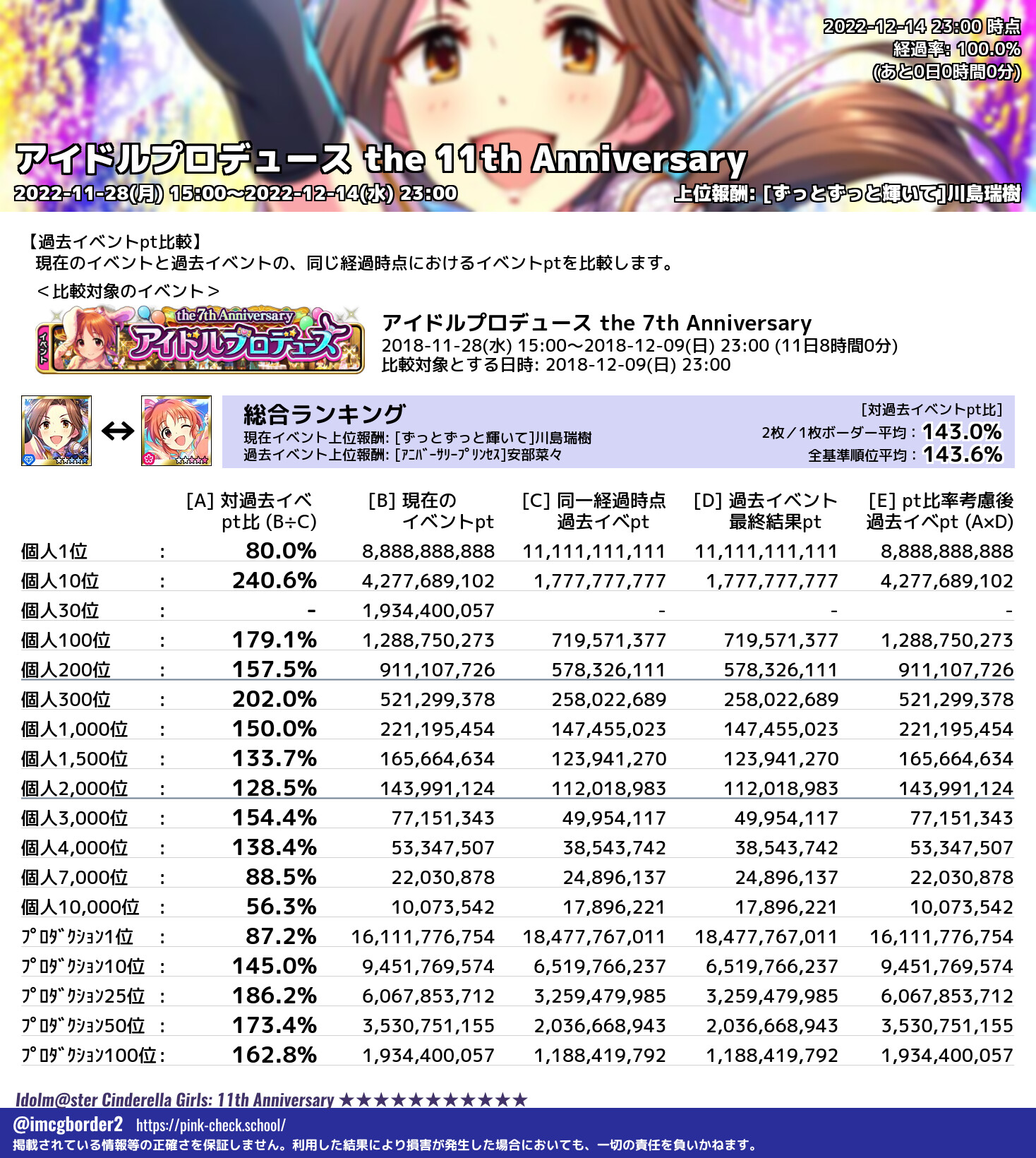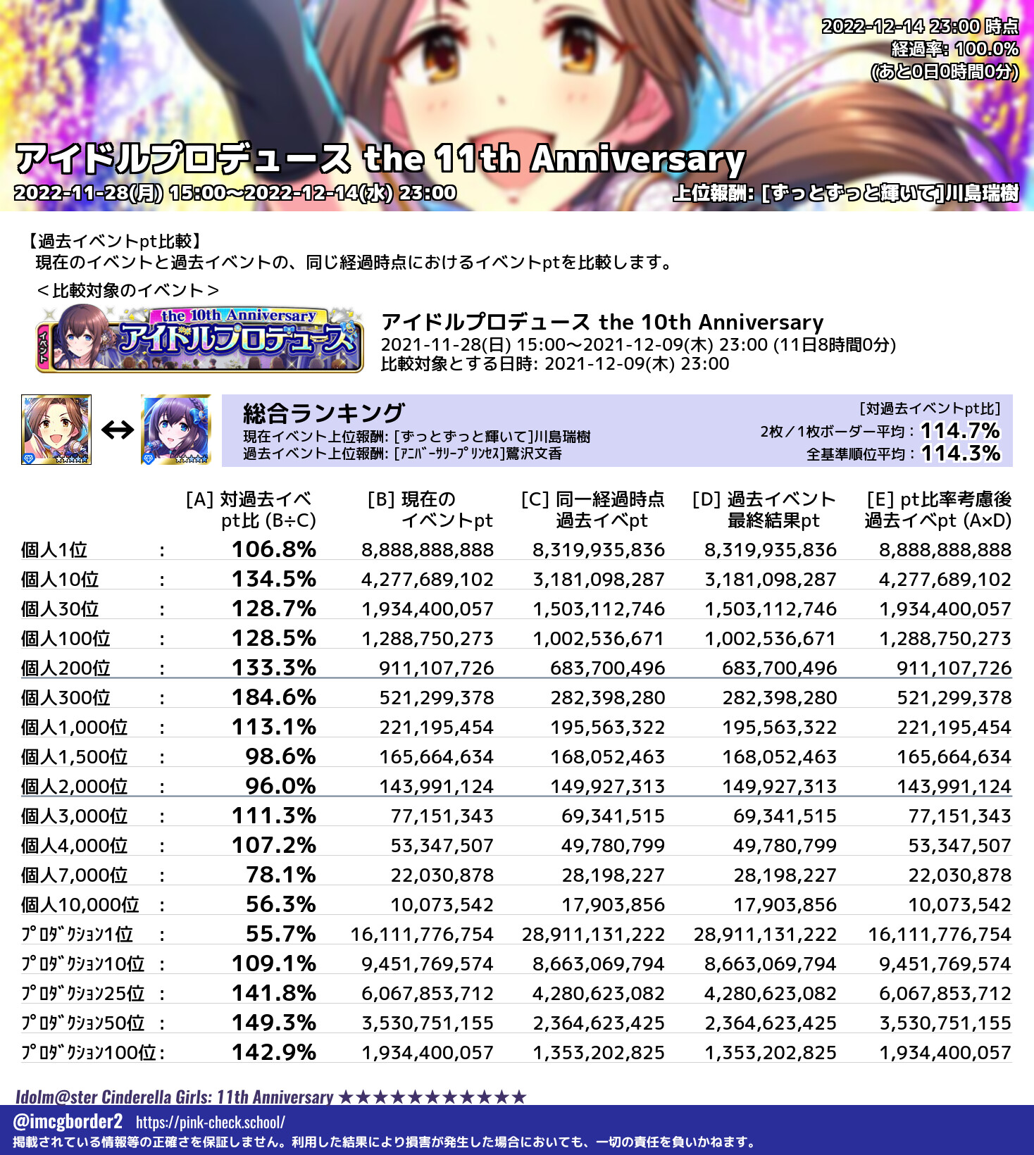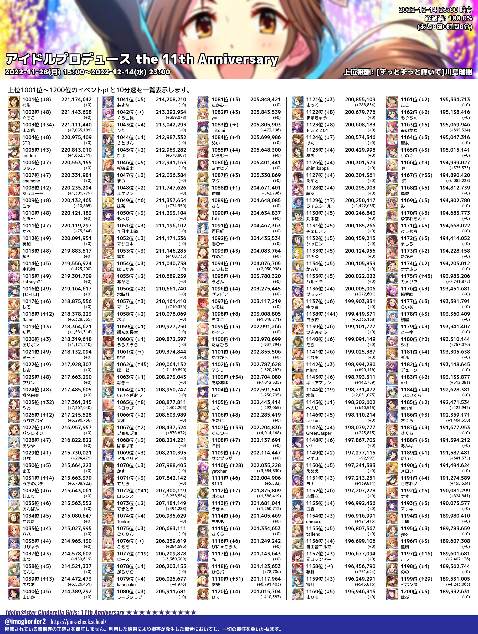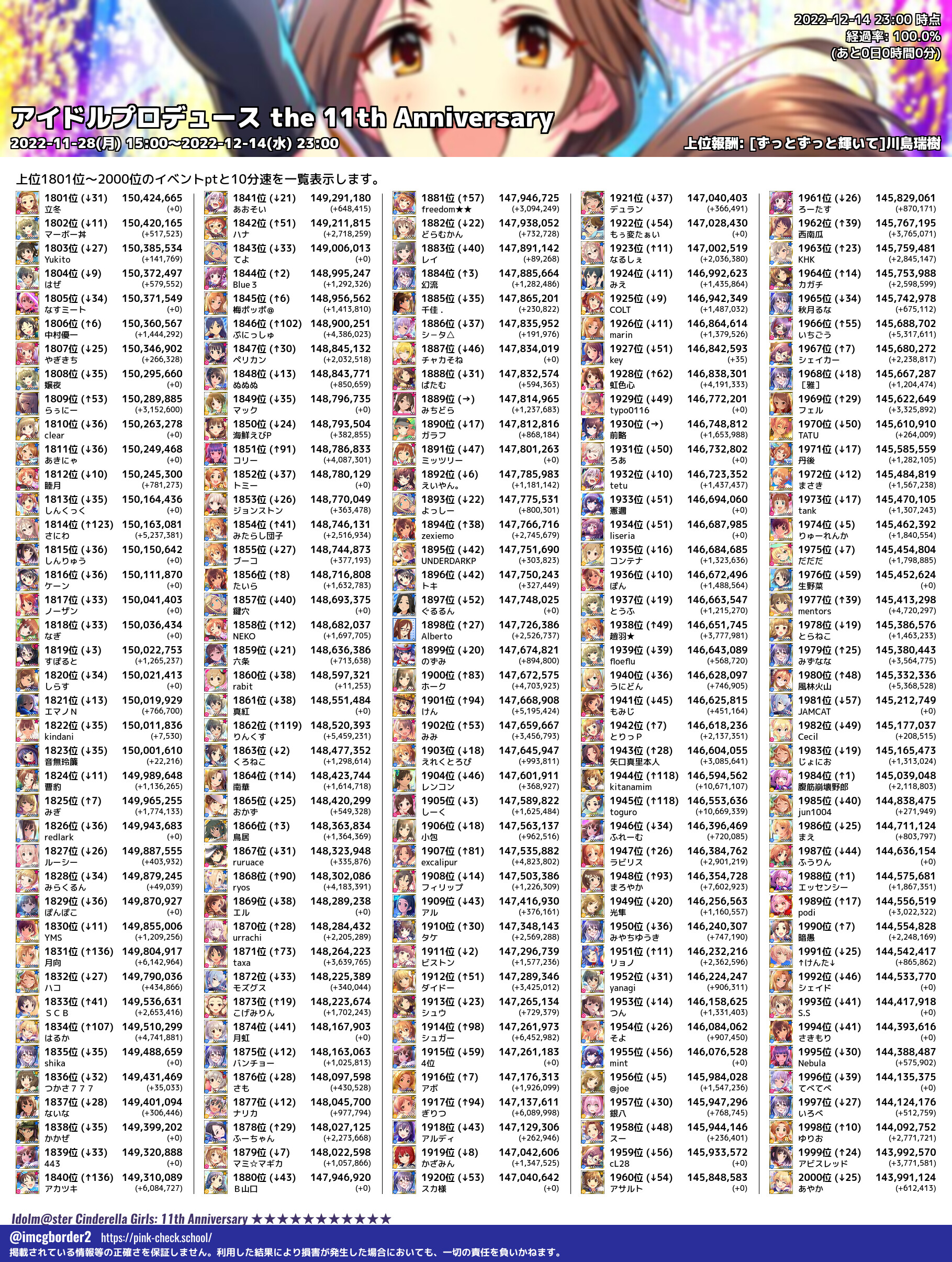 上位プロデューサースコア (2022-12-14 23:00 時点)