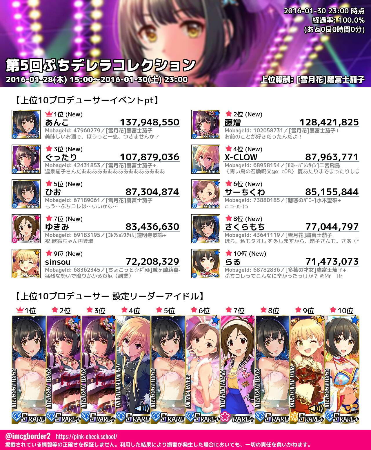第5回ぷちデレラコレクション 結果集計完了