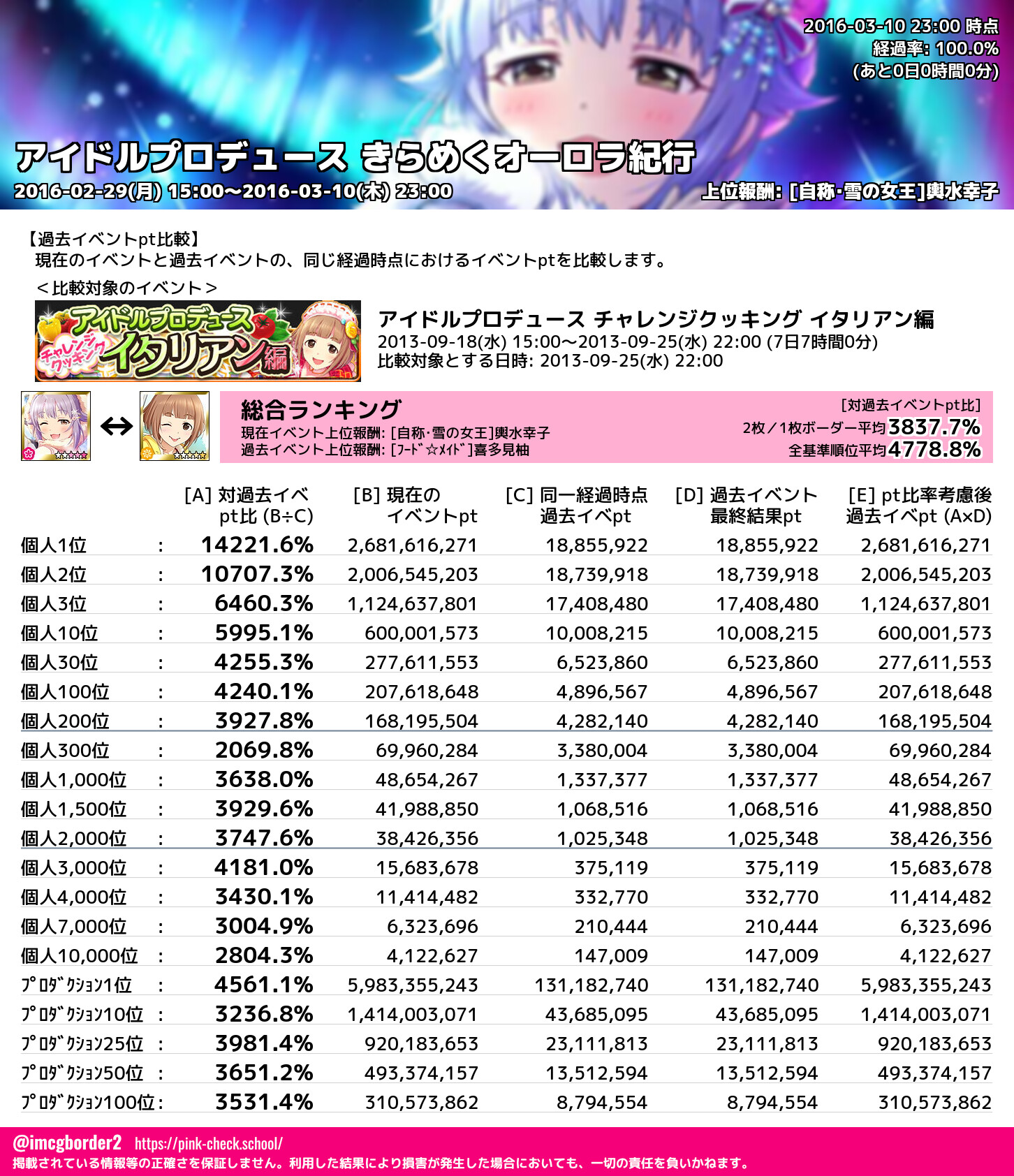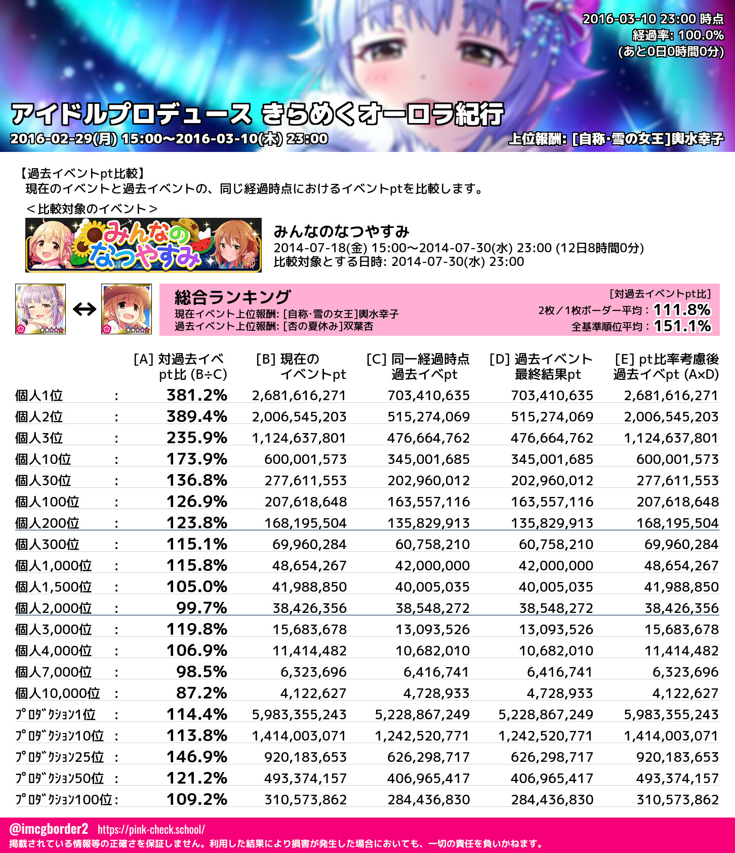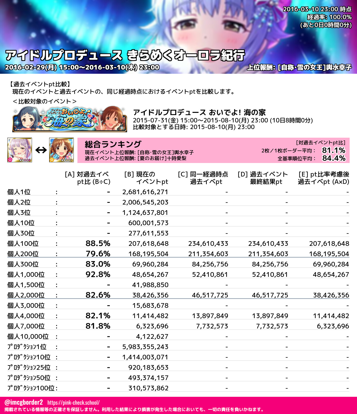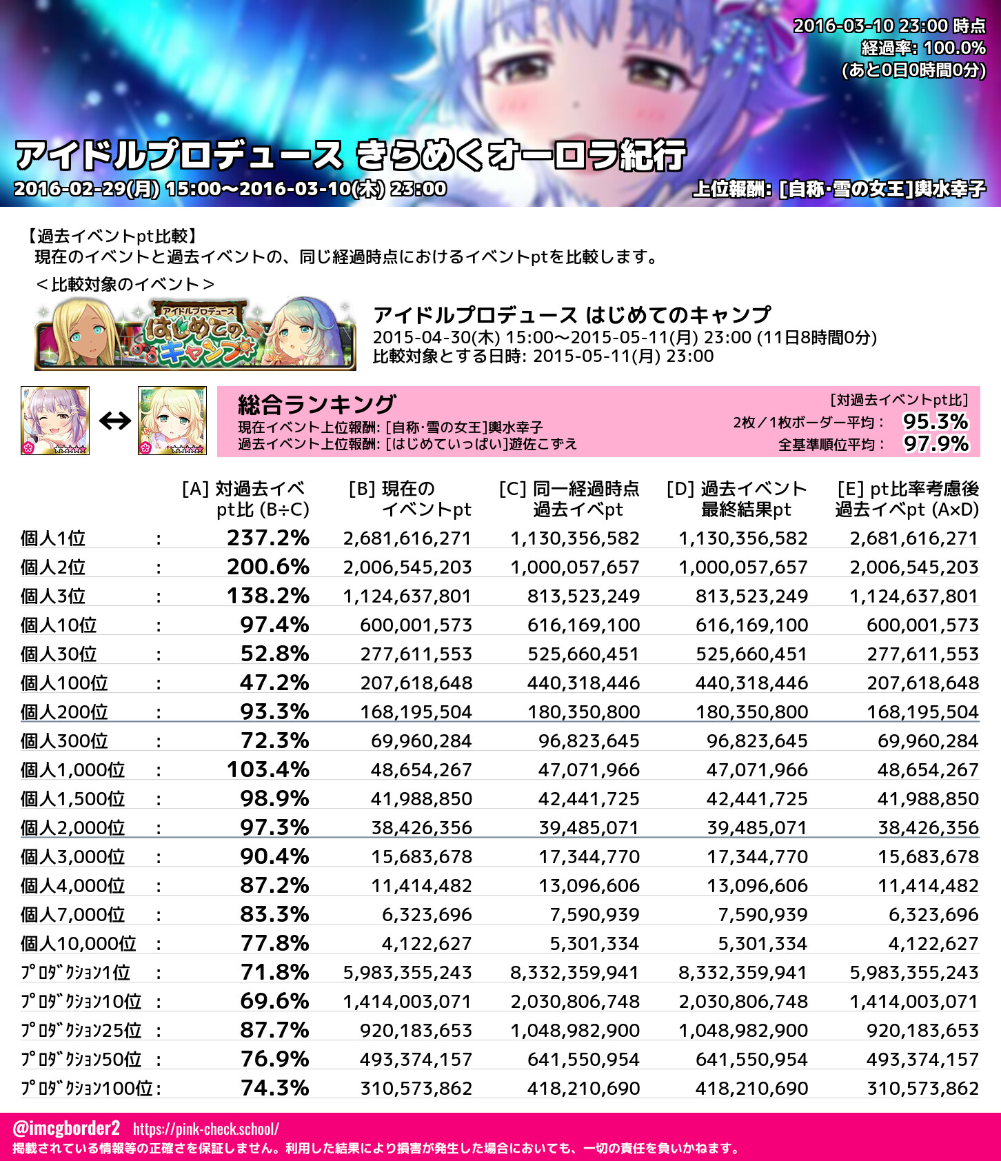 アイドルプロデュース きらめくオーロラ紀行 結果集計完了