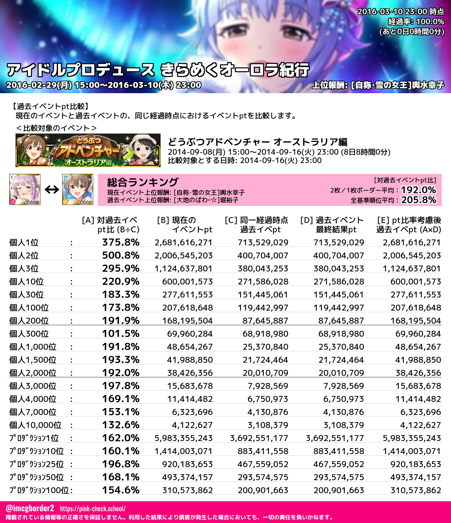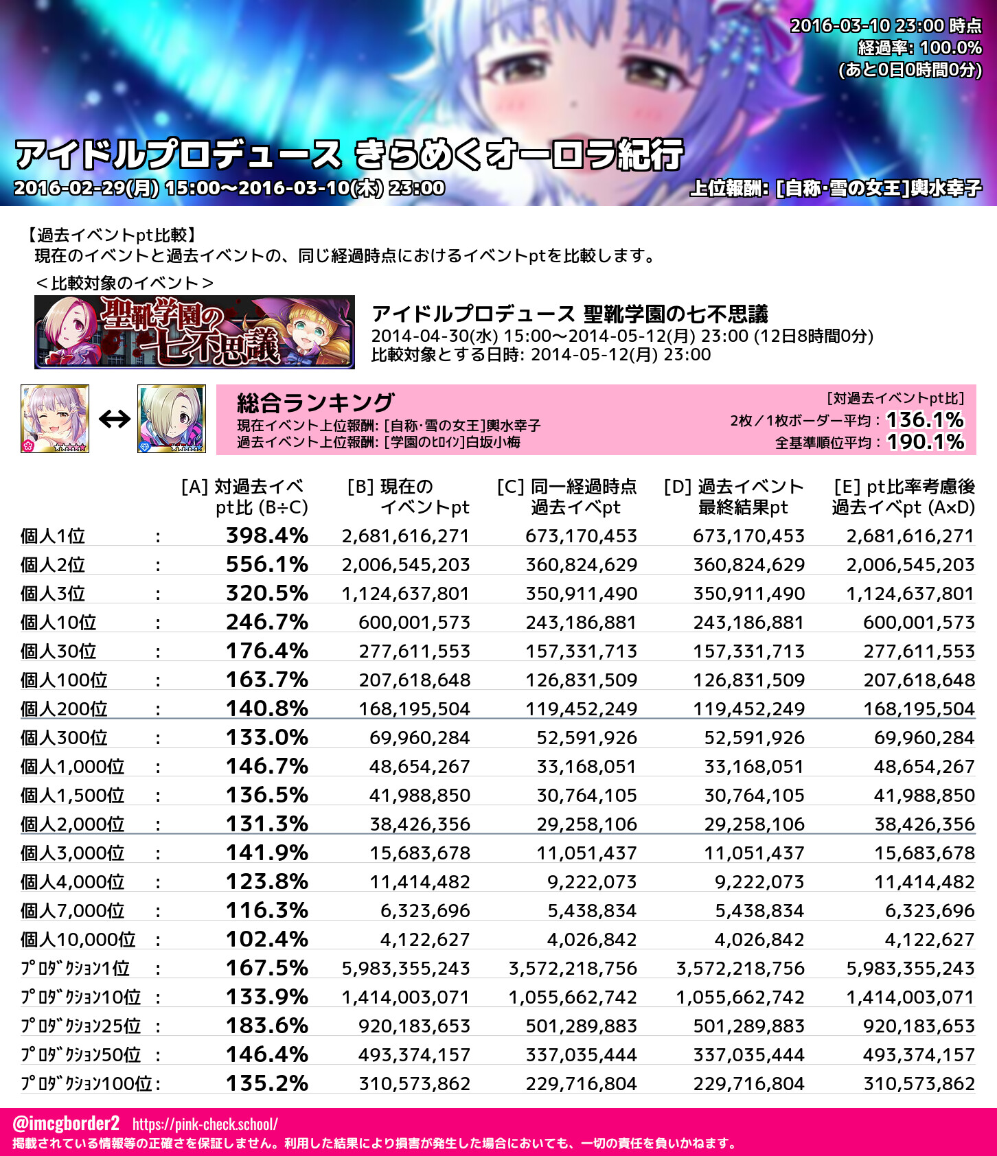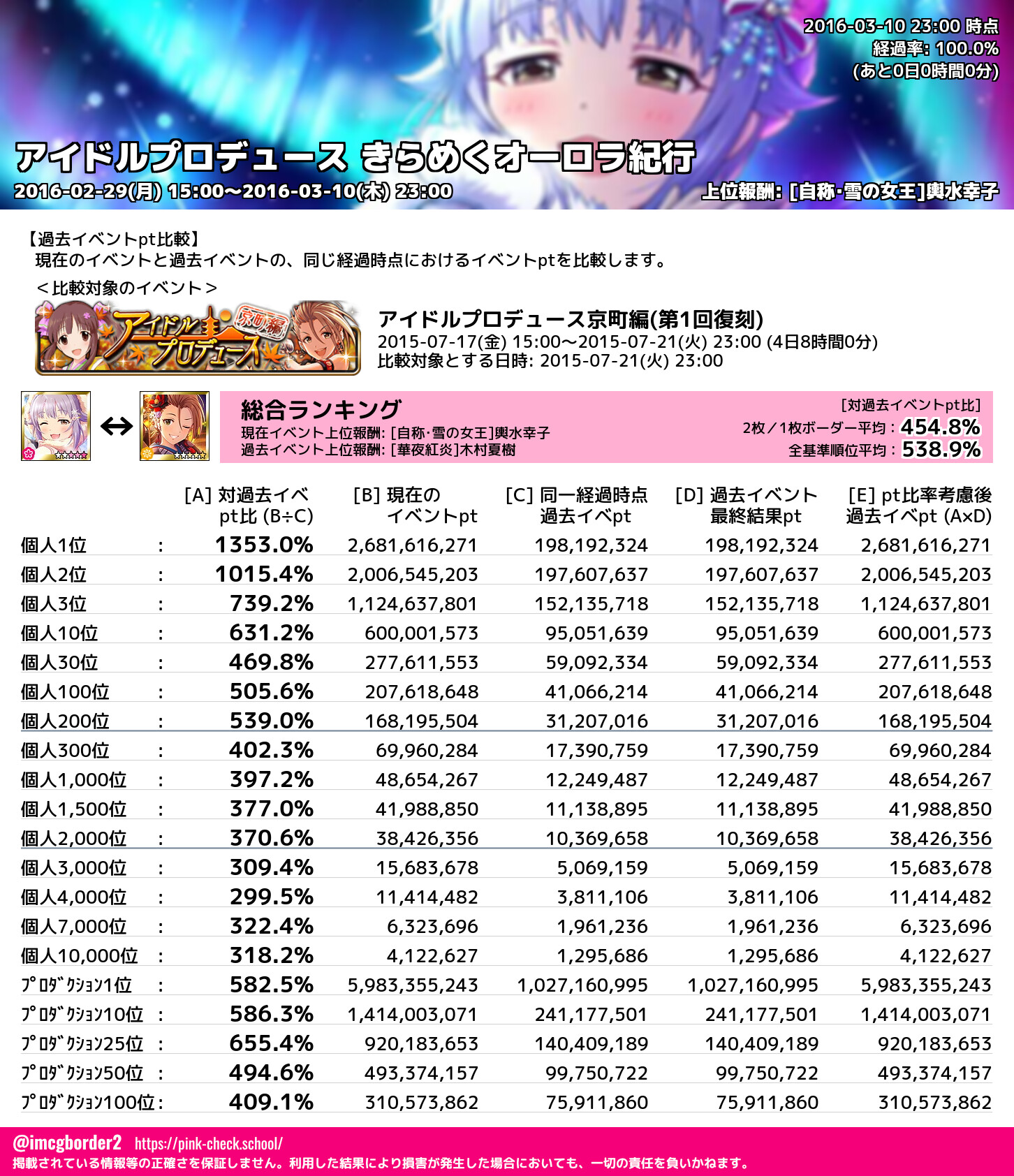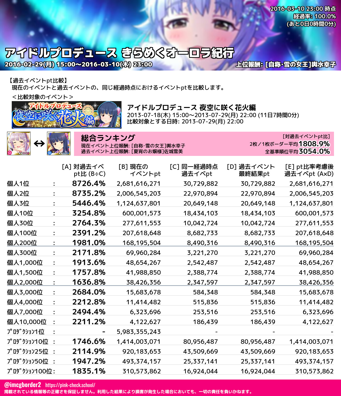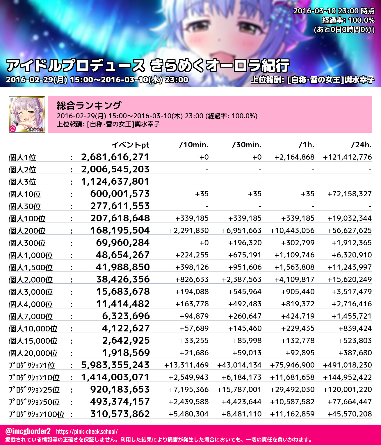 上位プロデューサースコア (2016-03-10 23:00 時点)