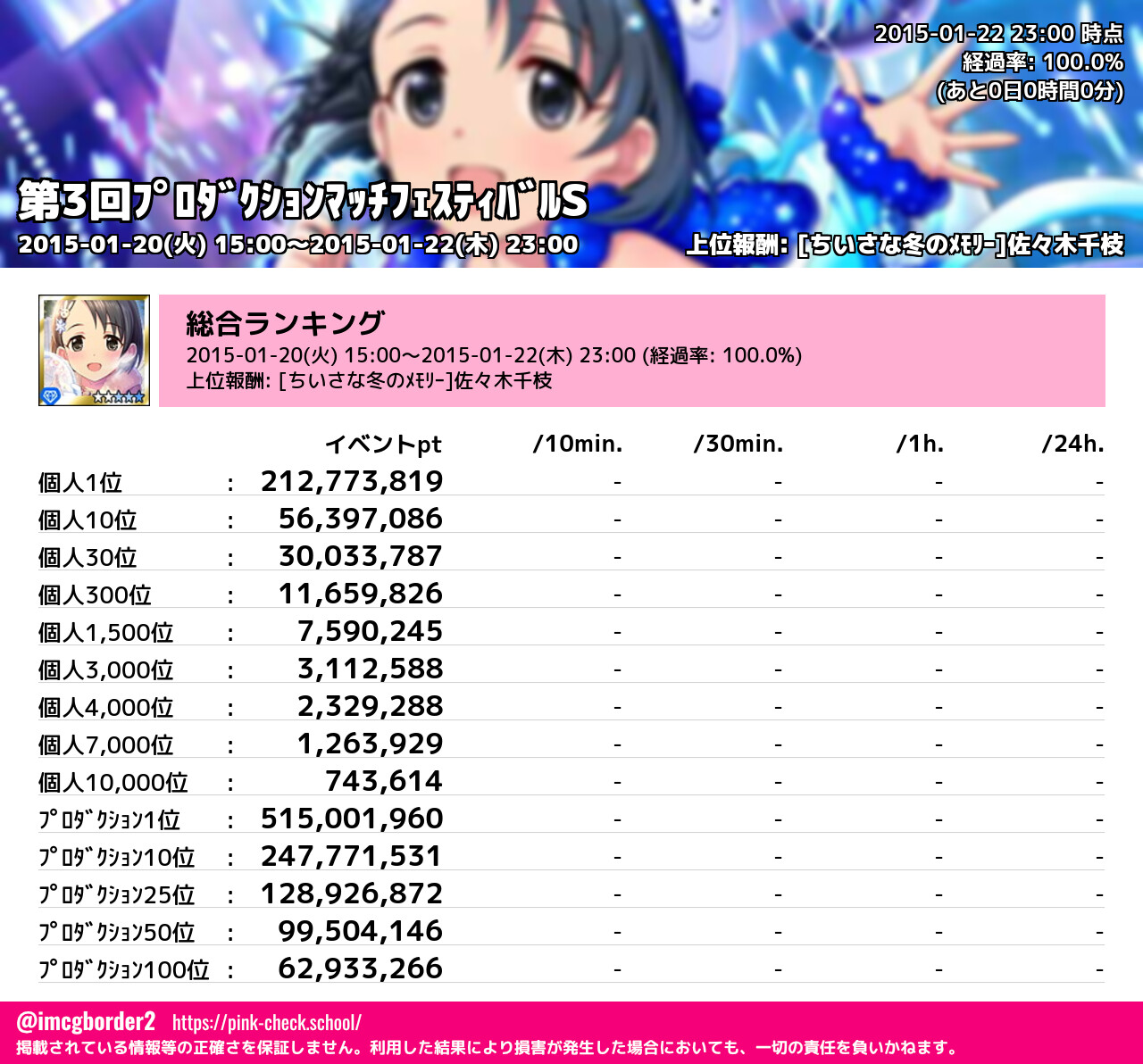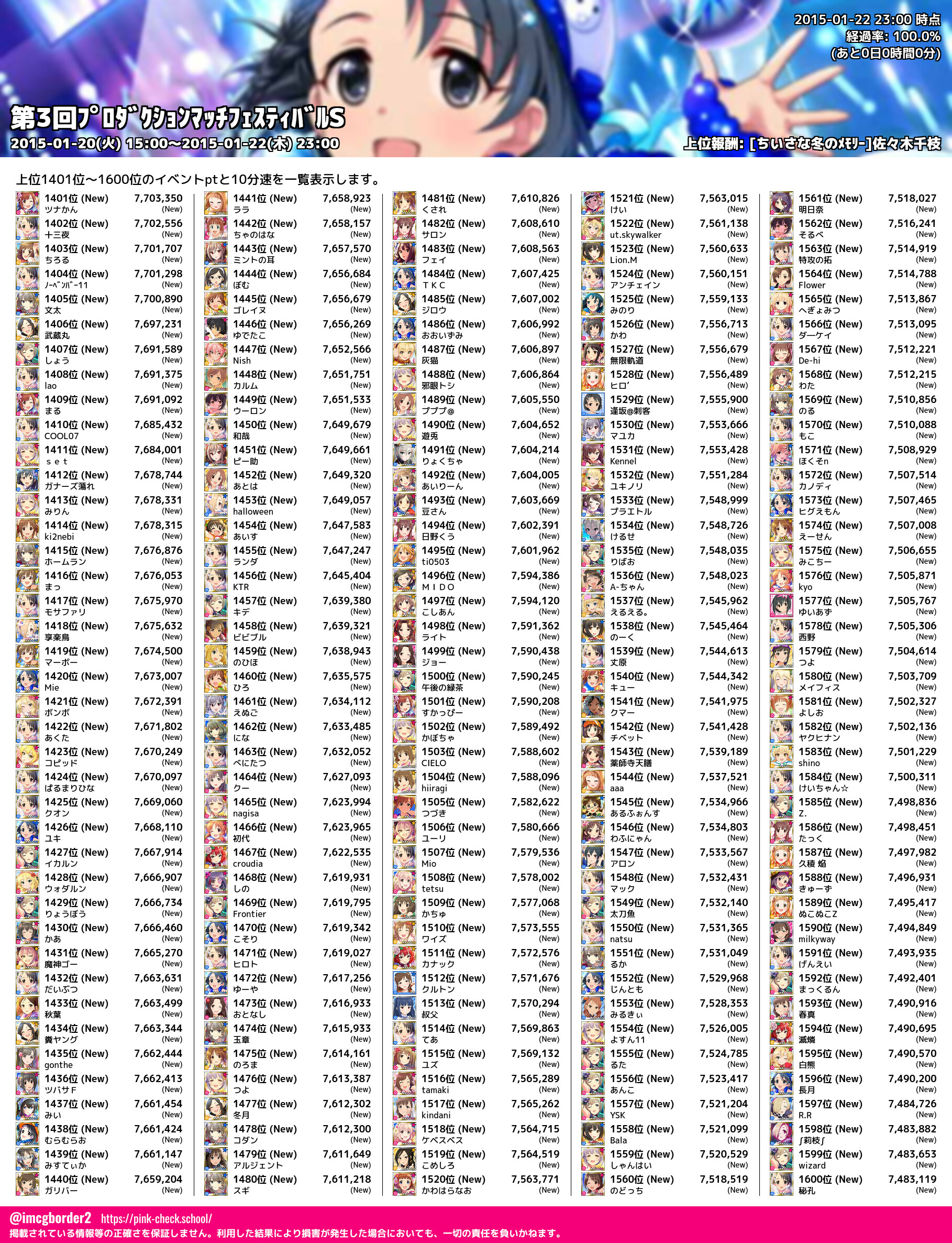 | 開催期間 | 2015-01-20(火) 15:00~2015-01-22(木) 23:00 |