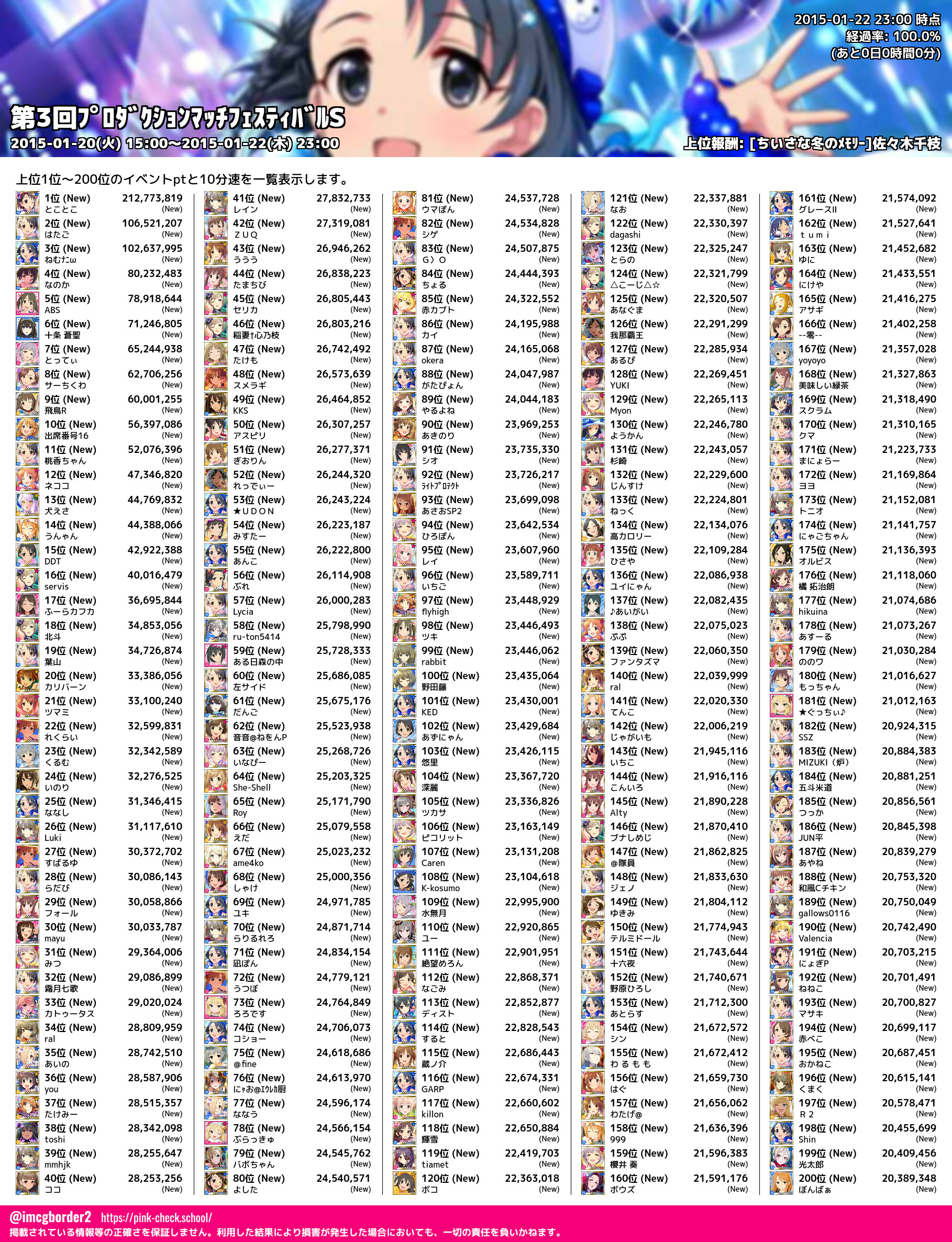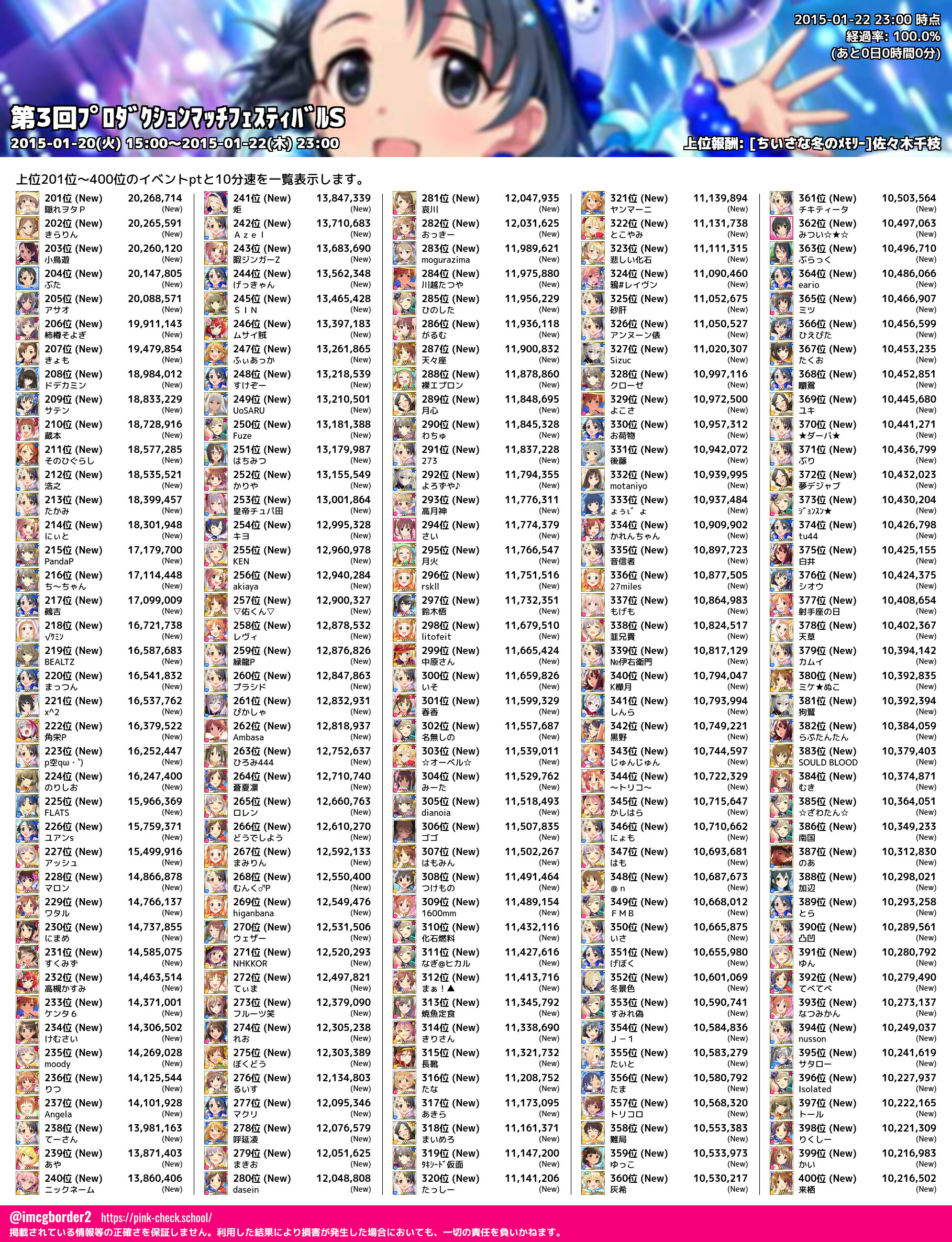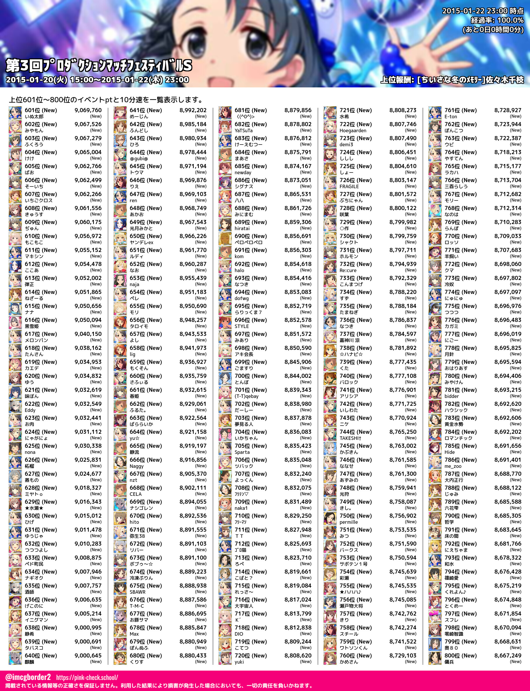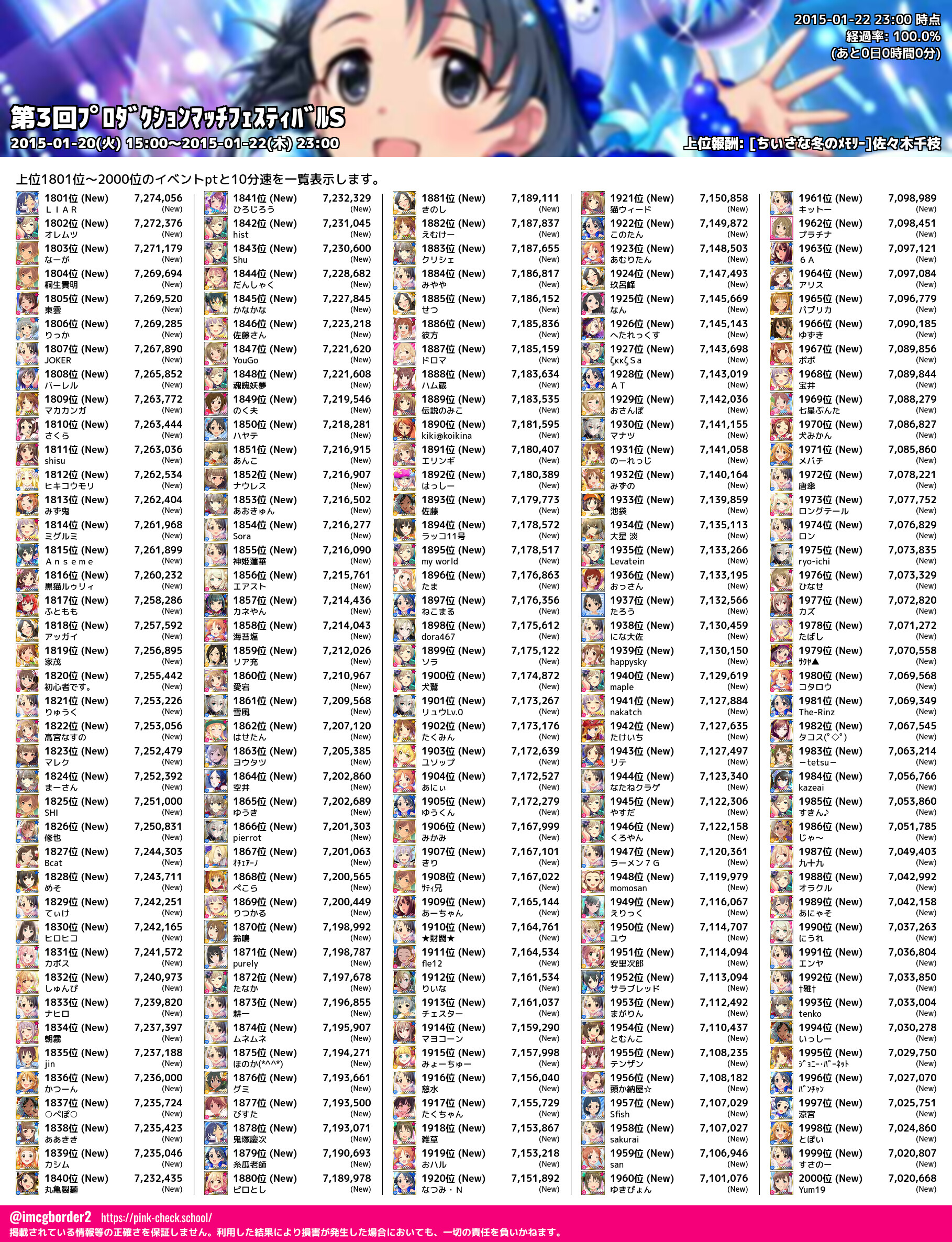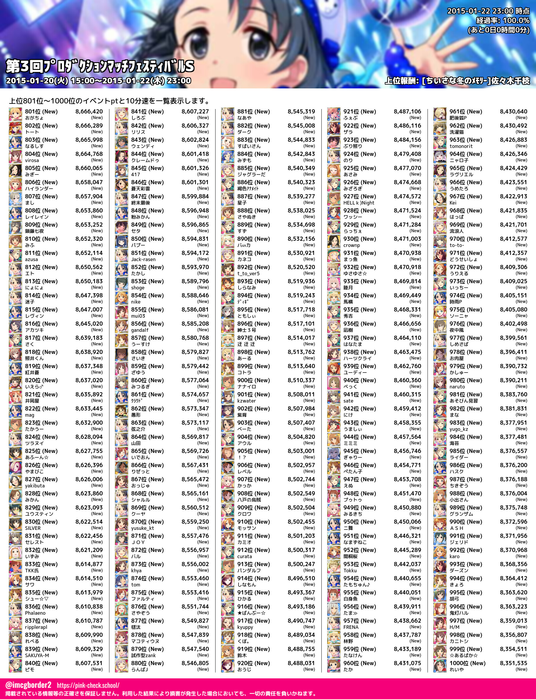 上位プロデューサースコア (2015-01-22 23:00 時点)