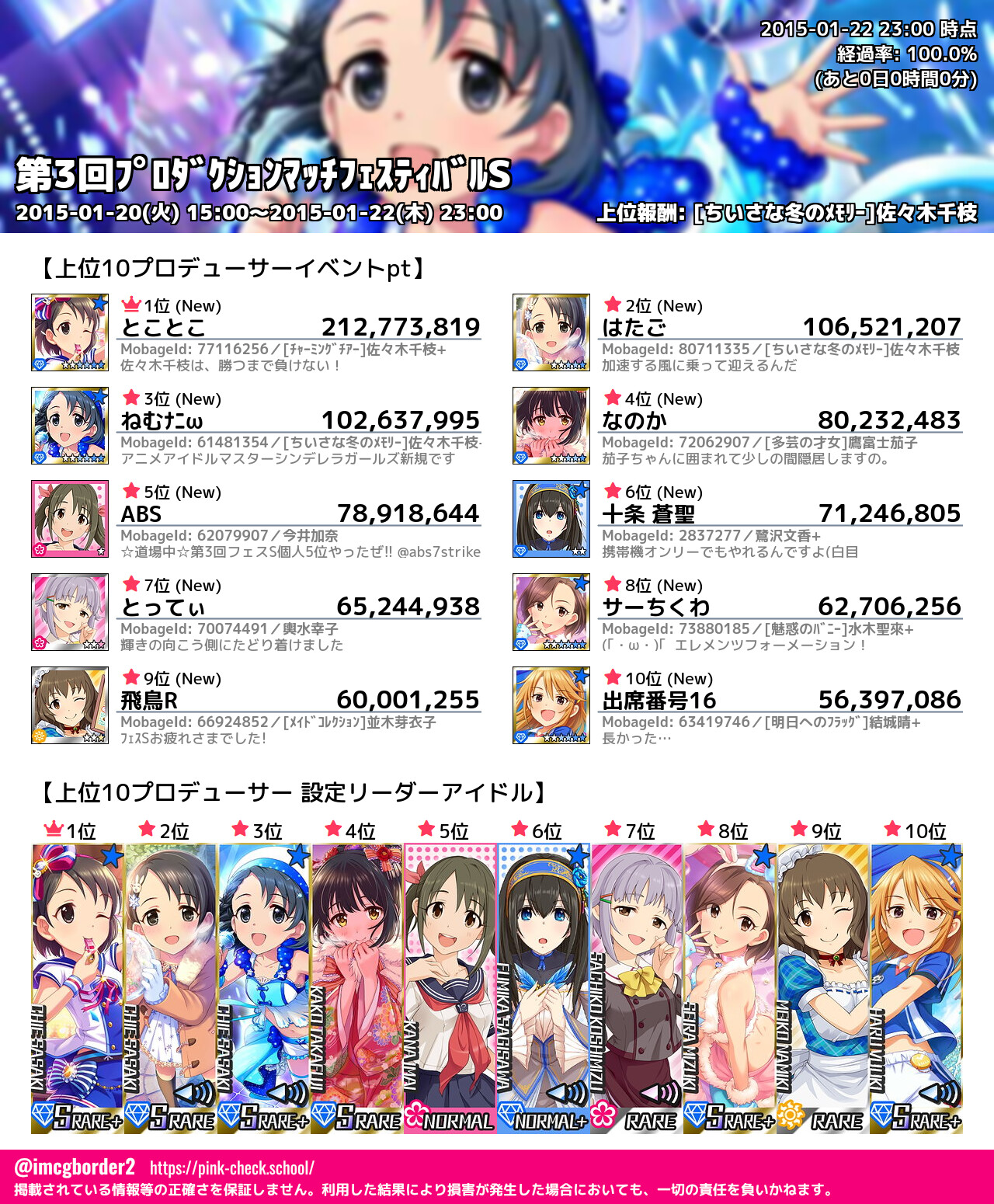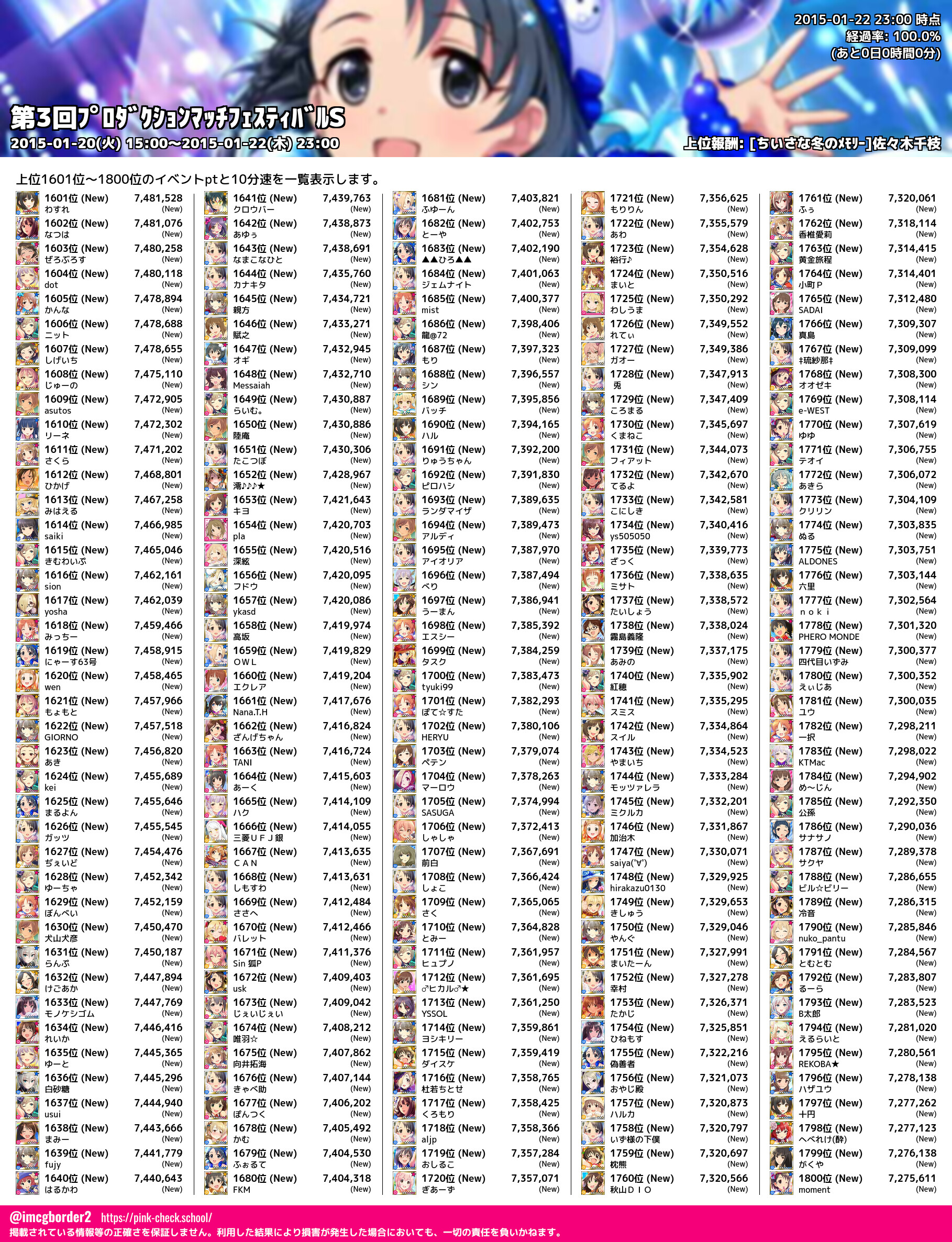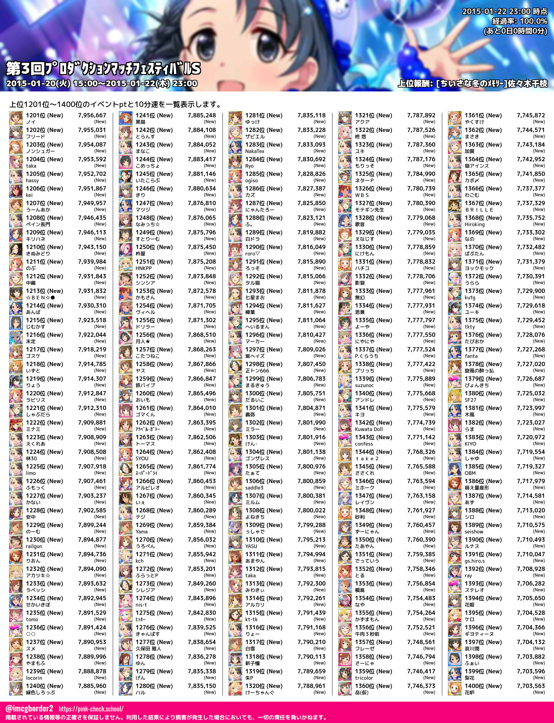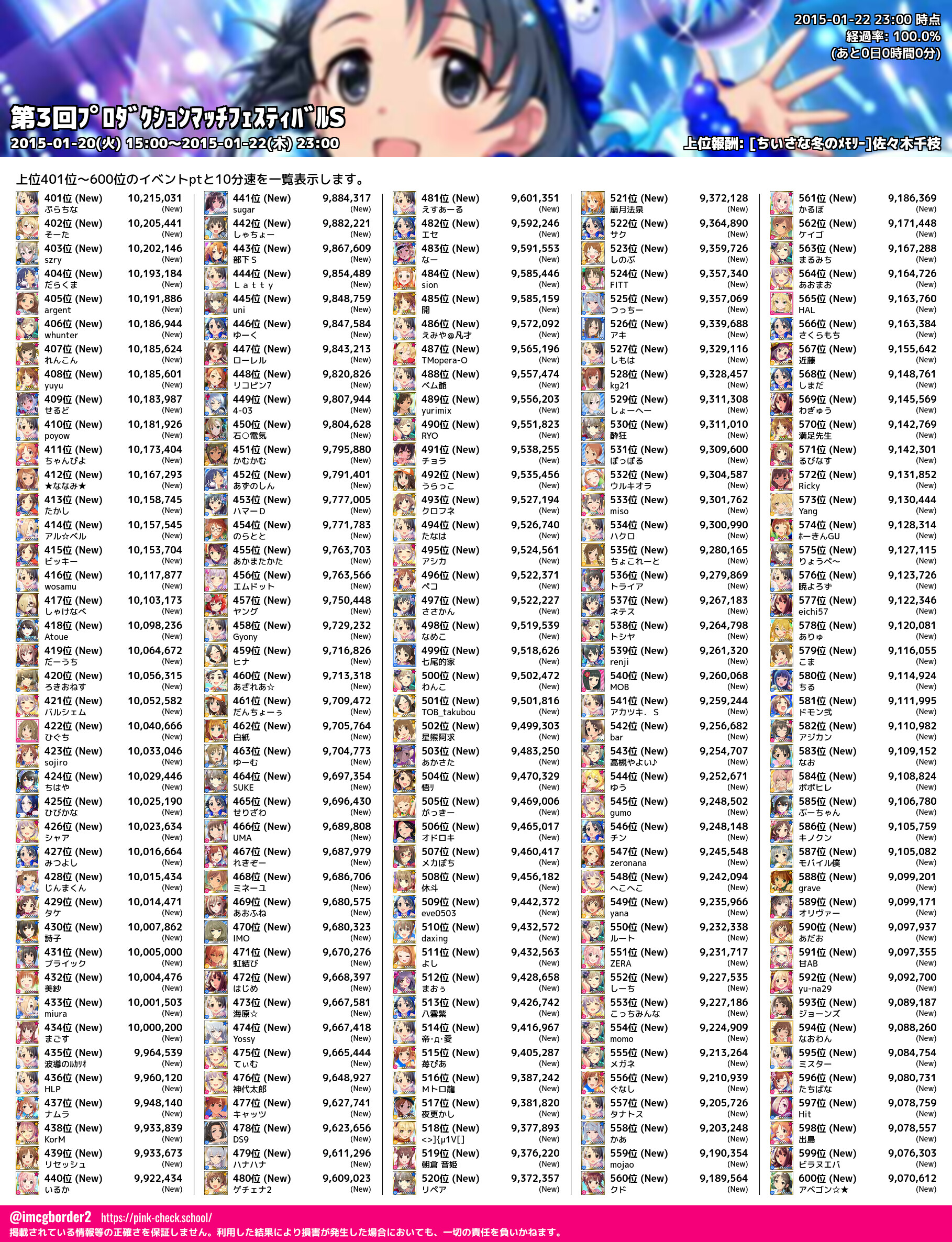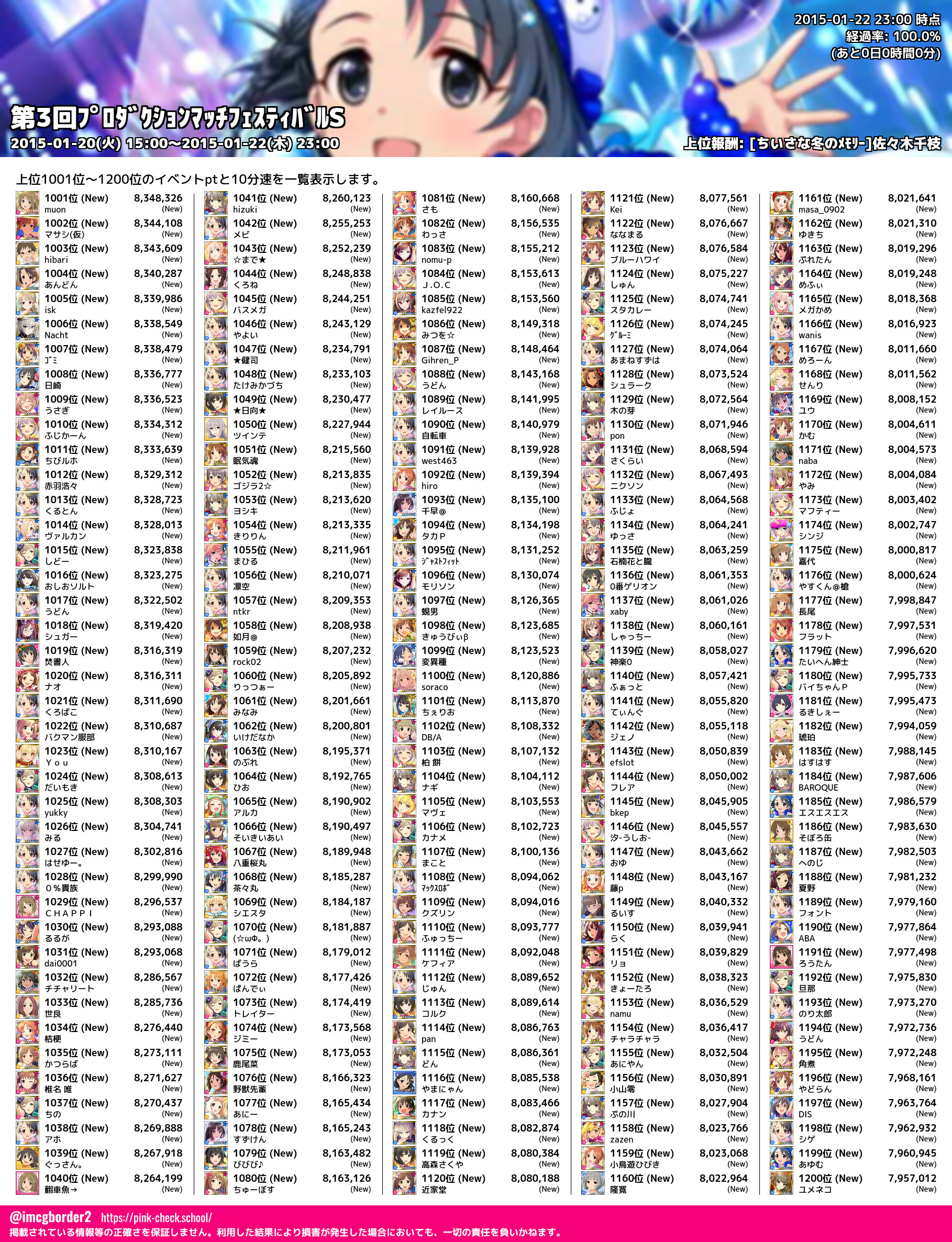上位プロデューサースコア (2015-01-22 23:00 時点)
