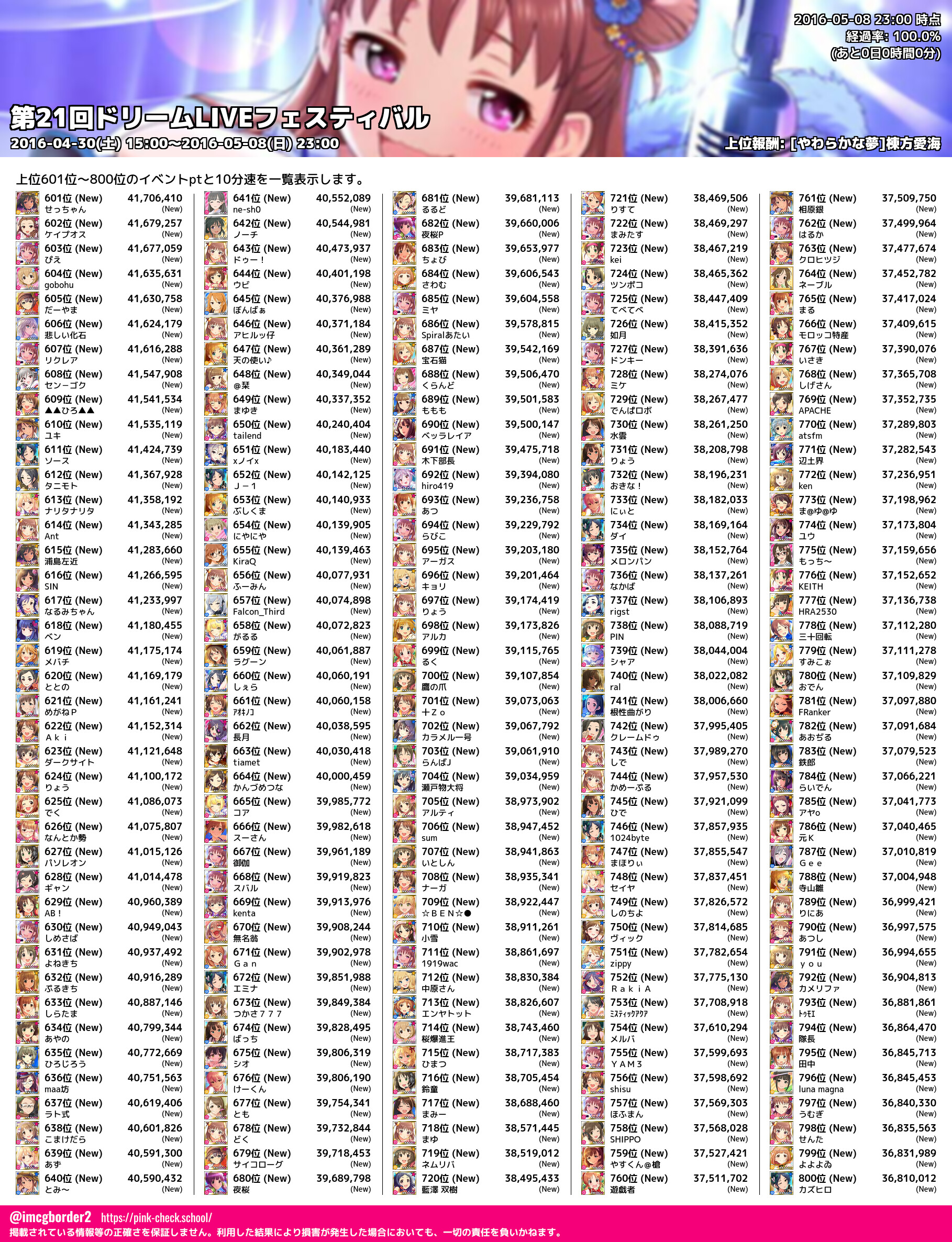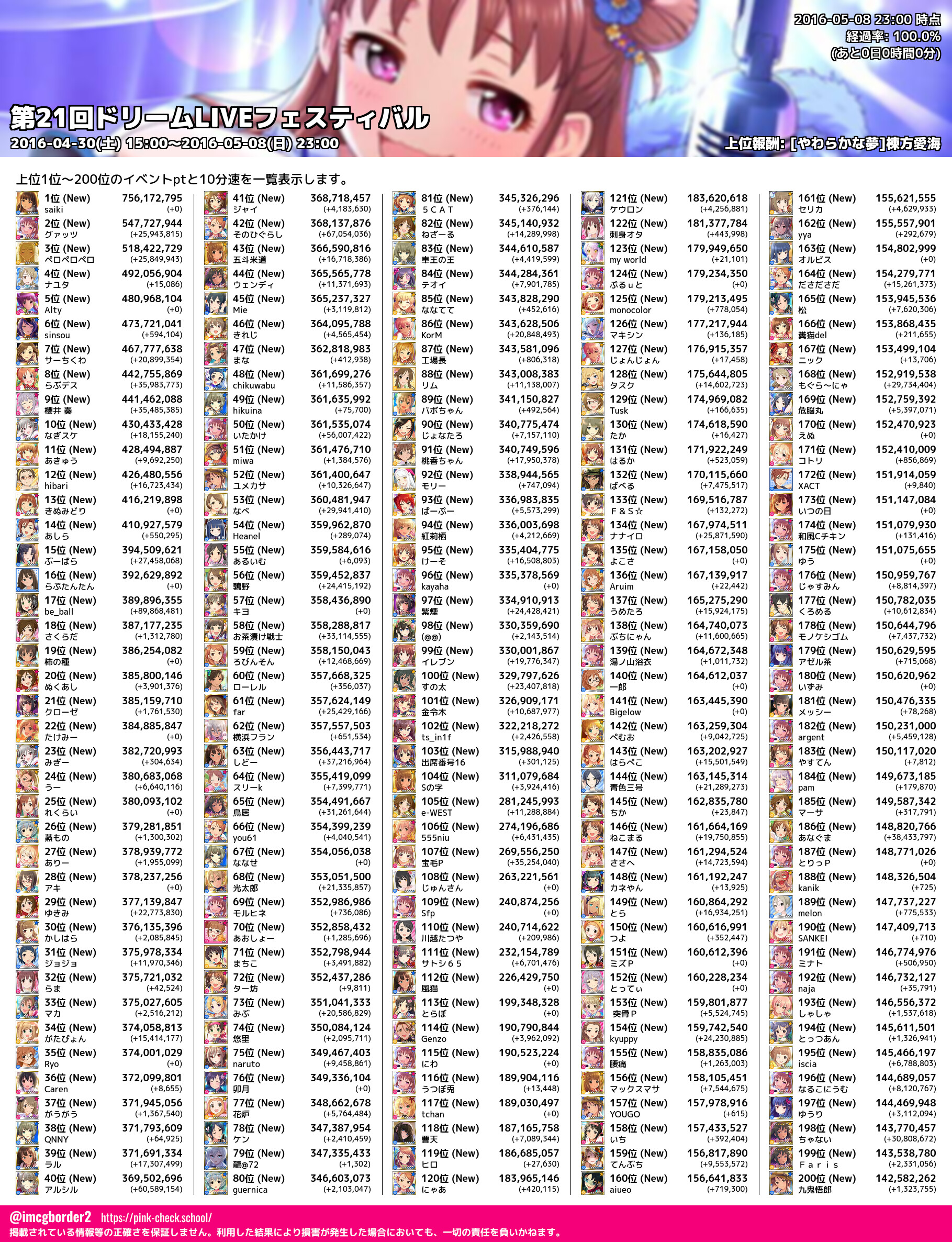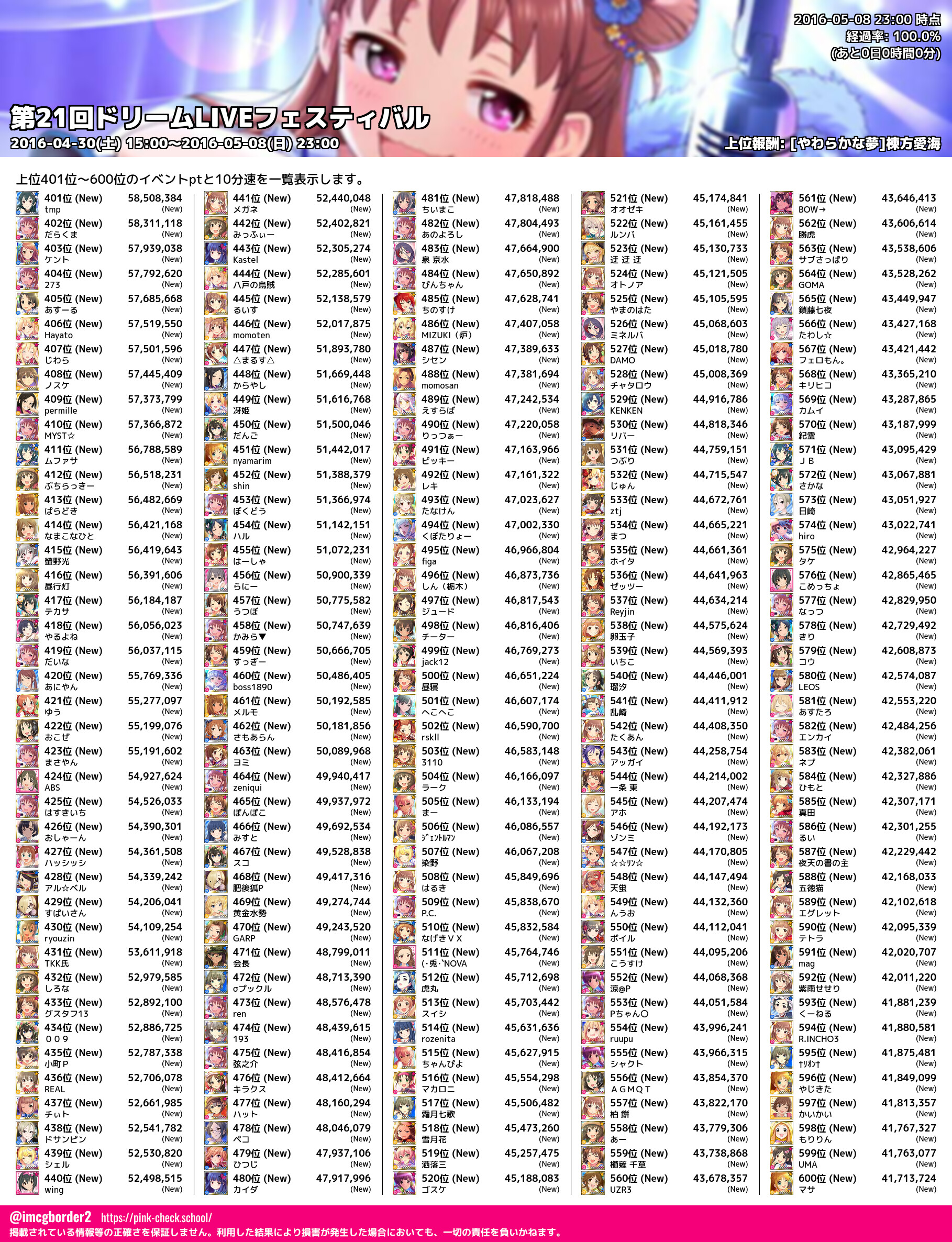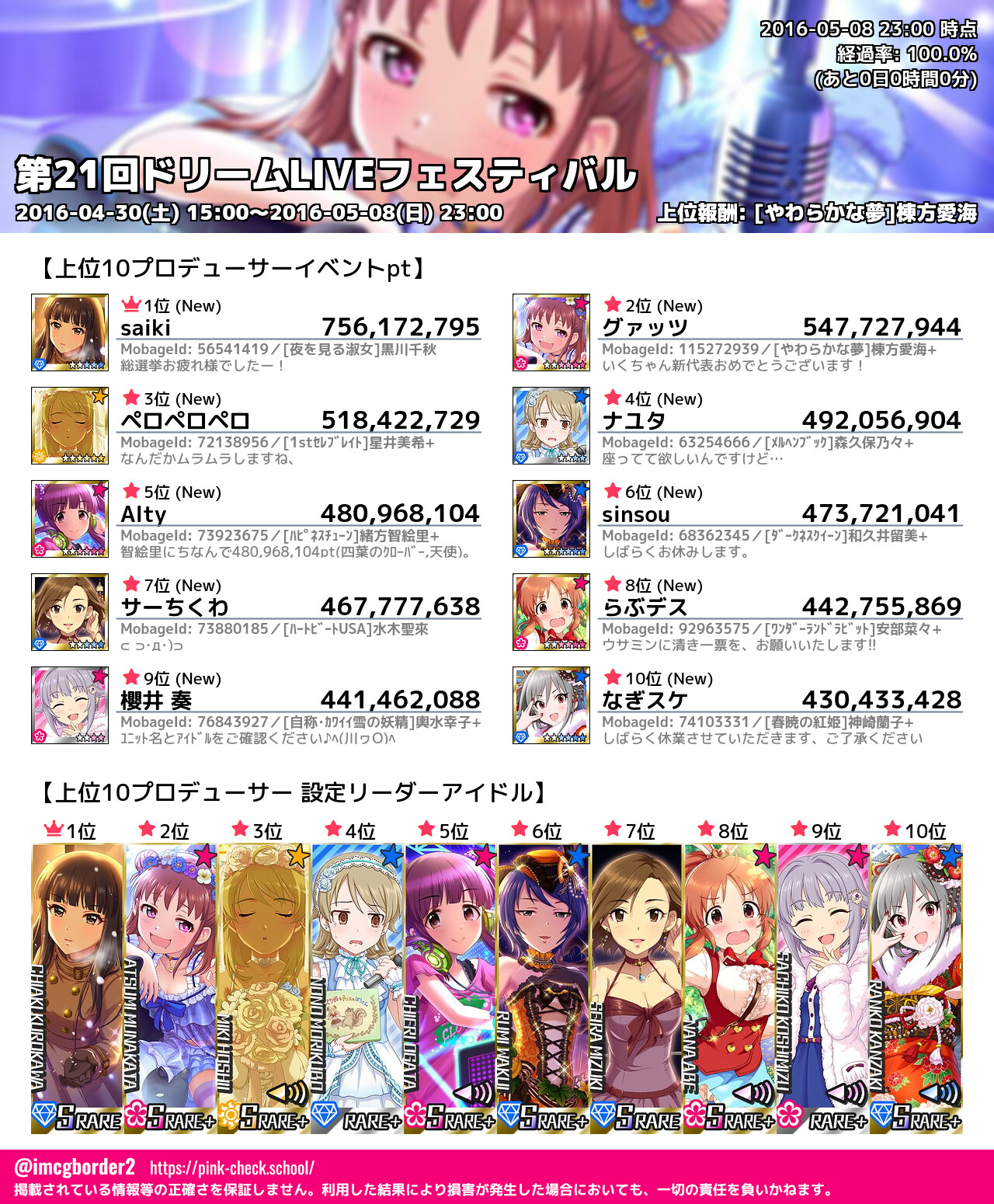 上位プロデューサースコア (2016-05-08 23:00 時点)