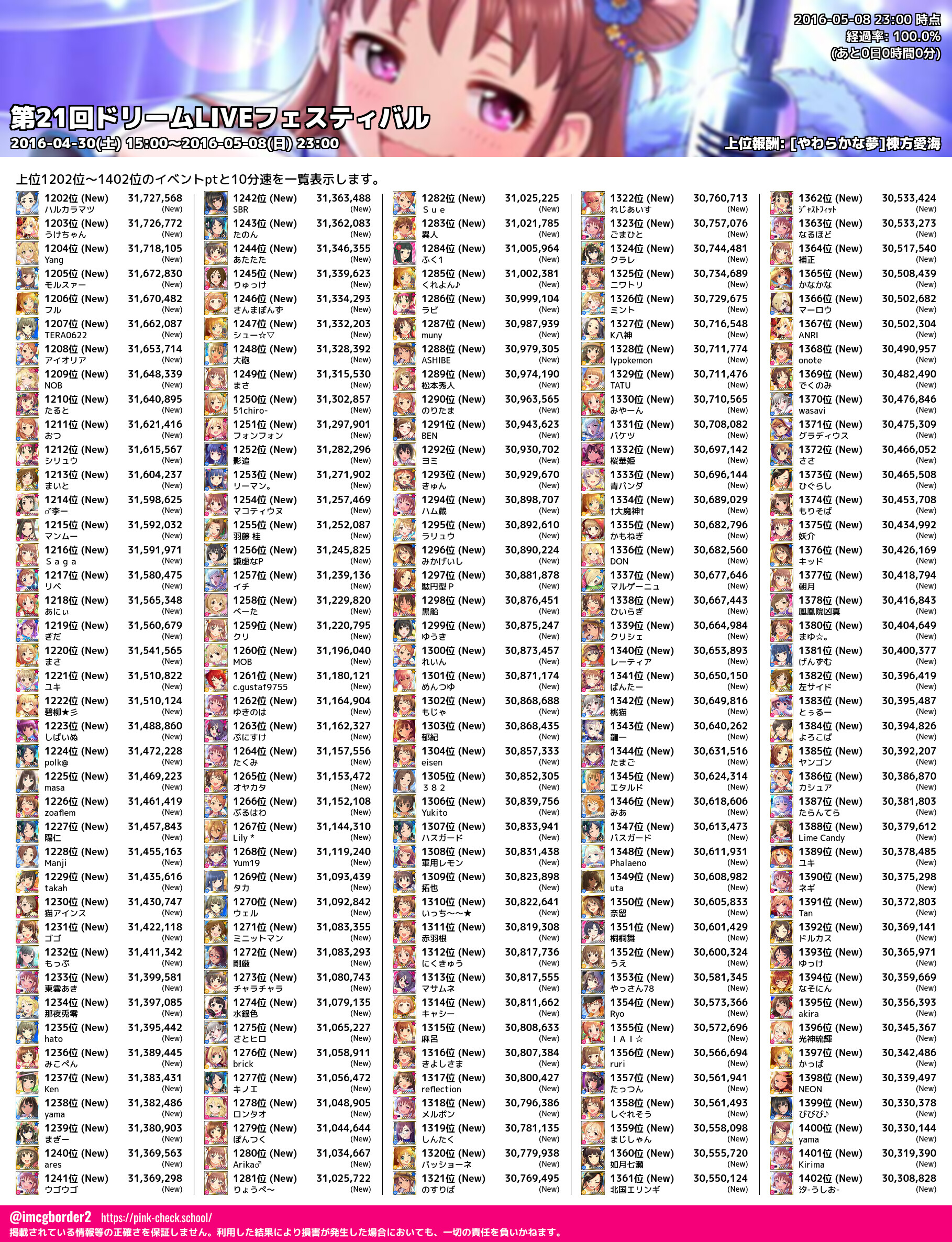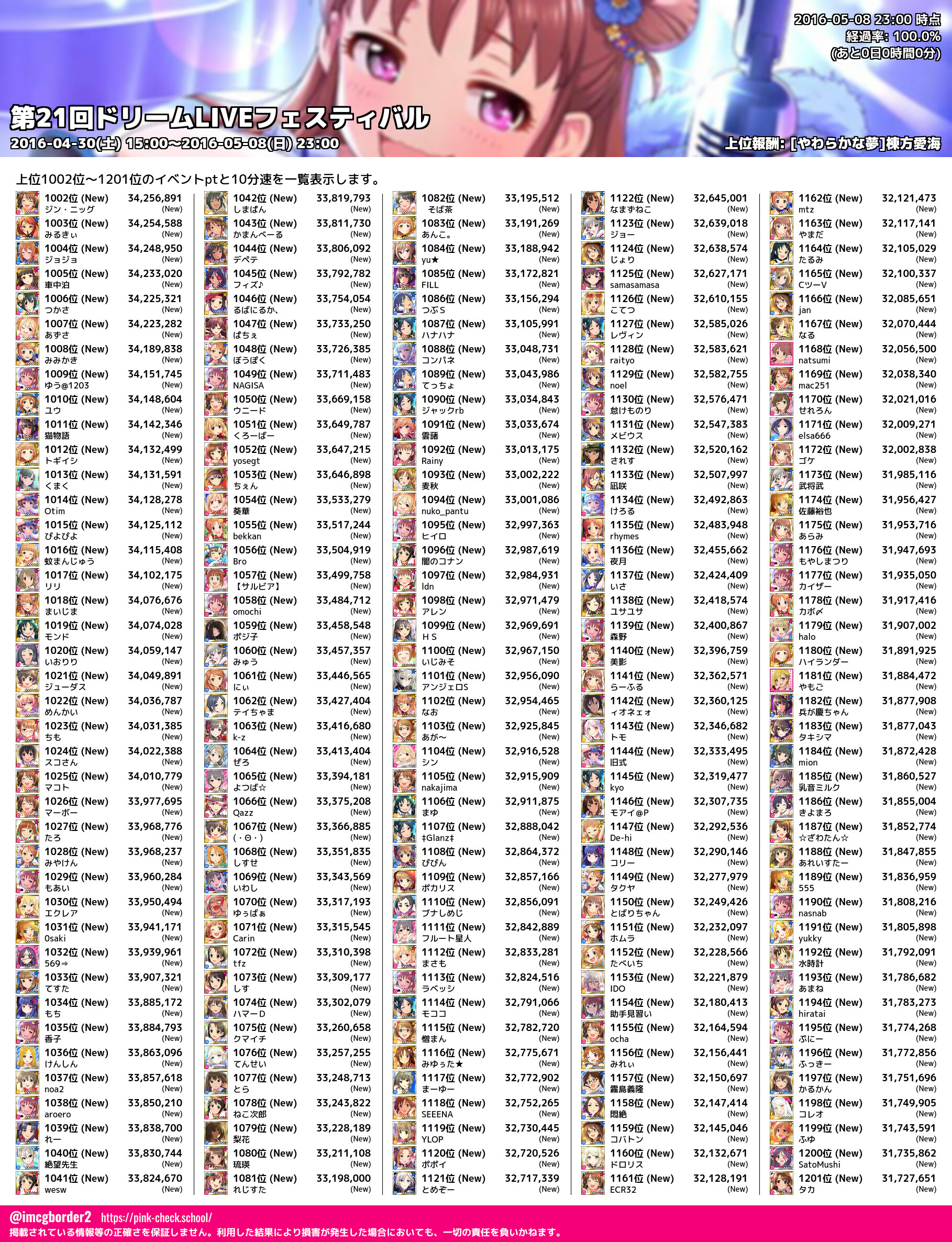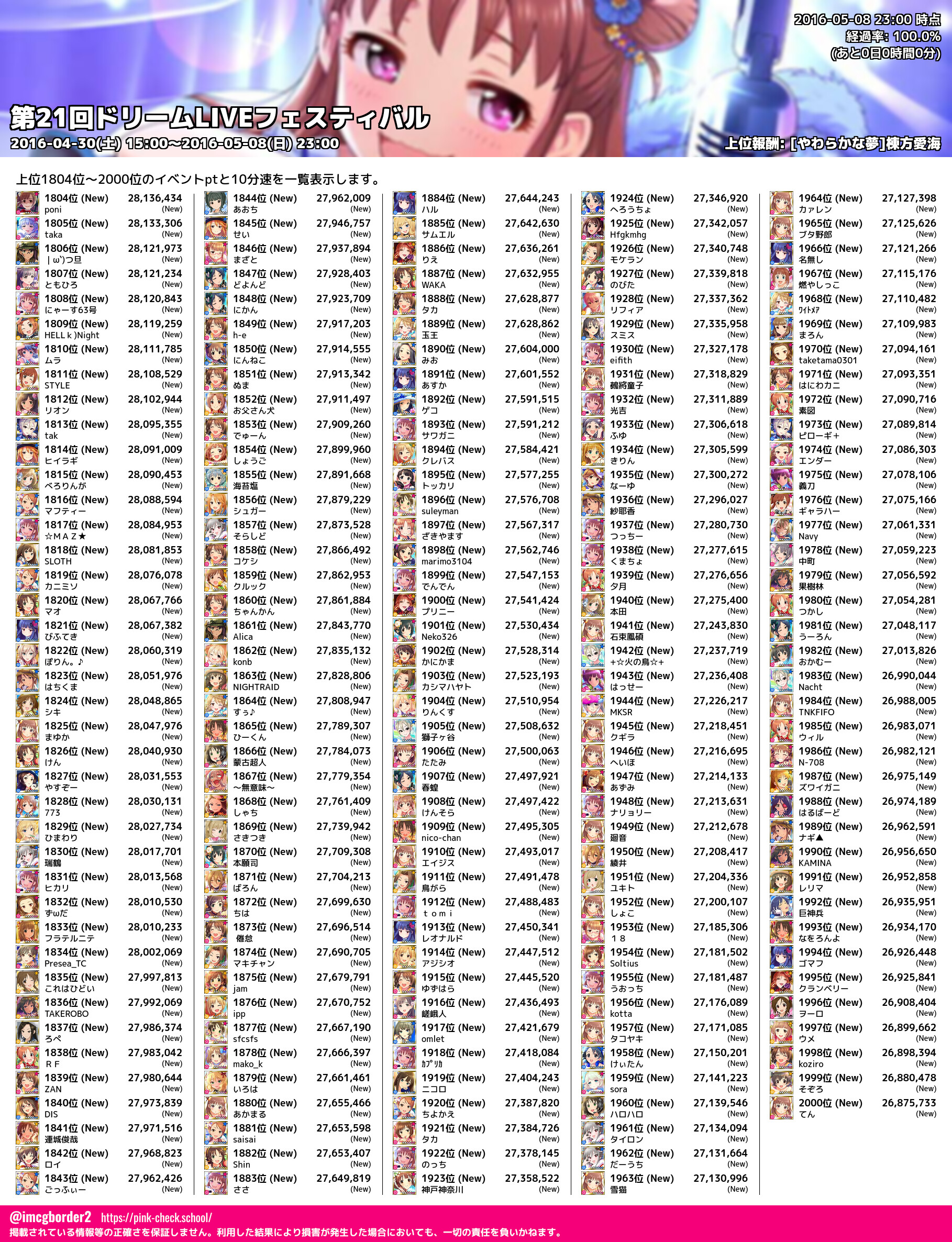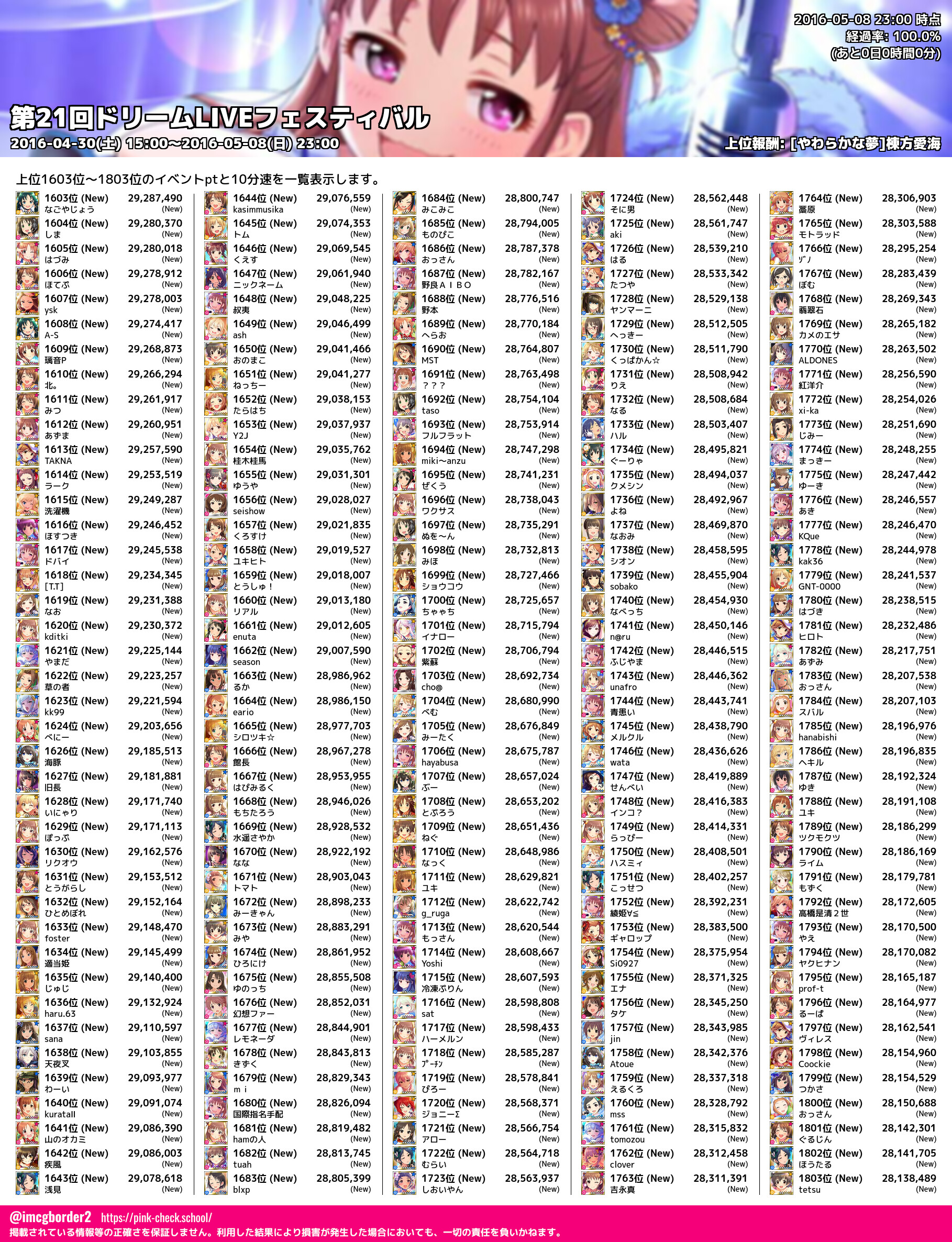 上位プロデューサースコア (2016-05-08 23:00 時点)