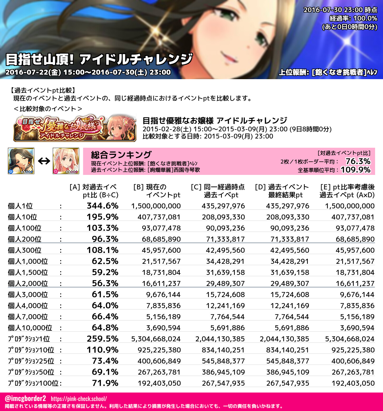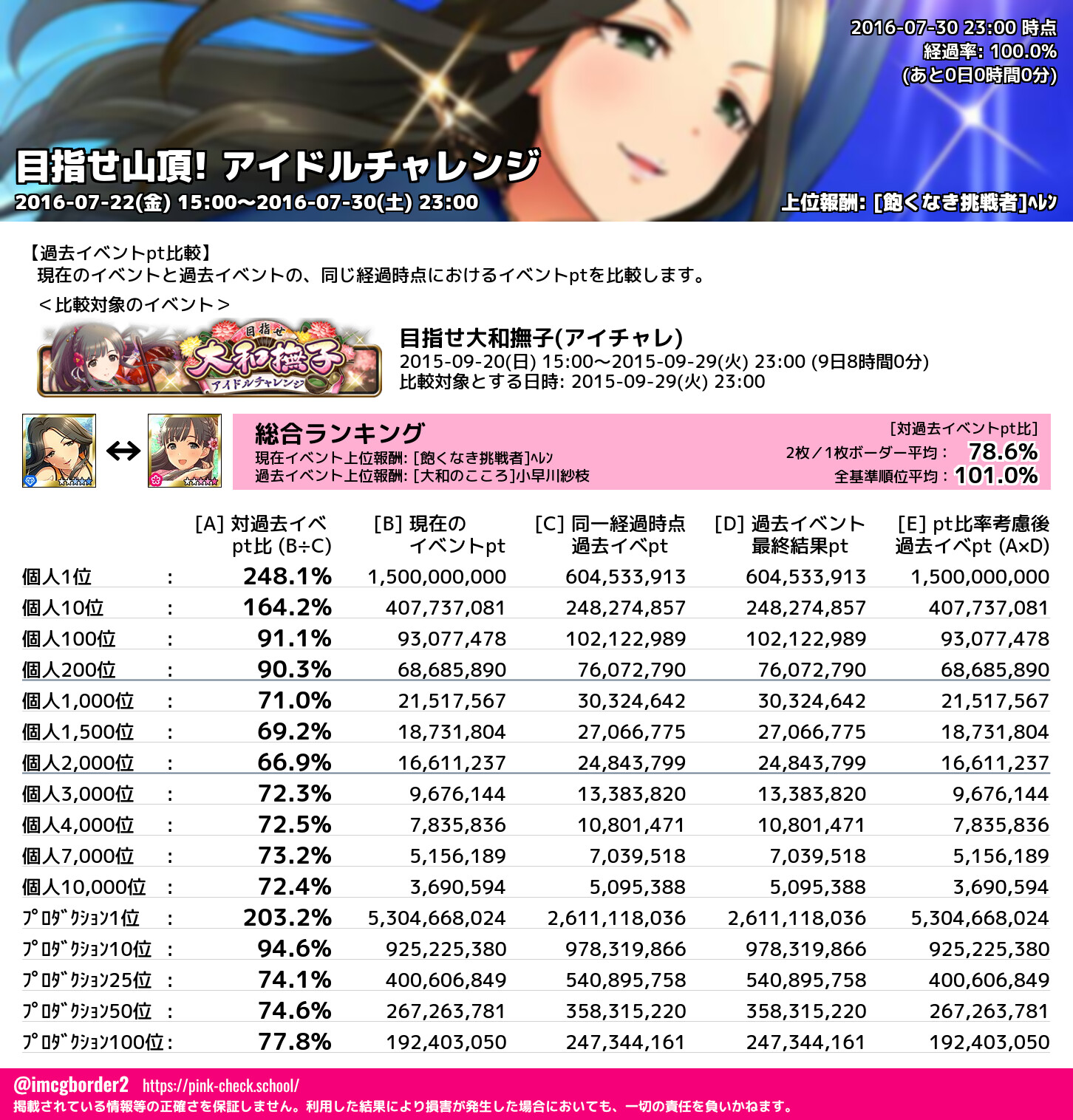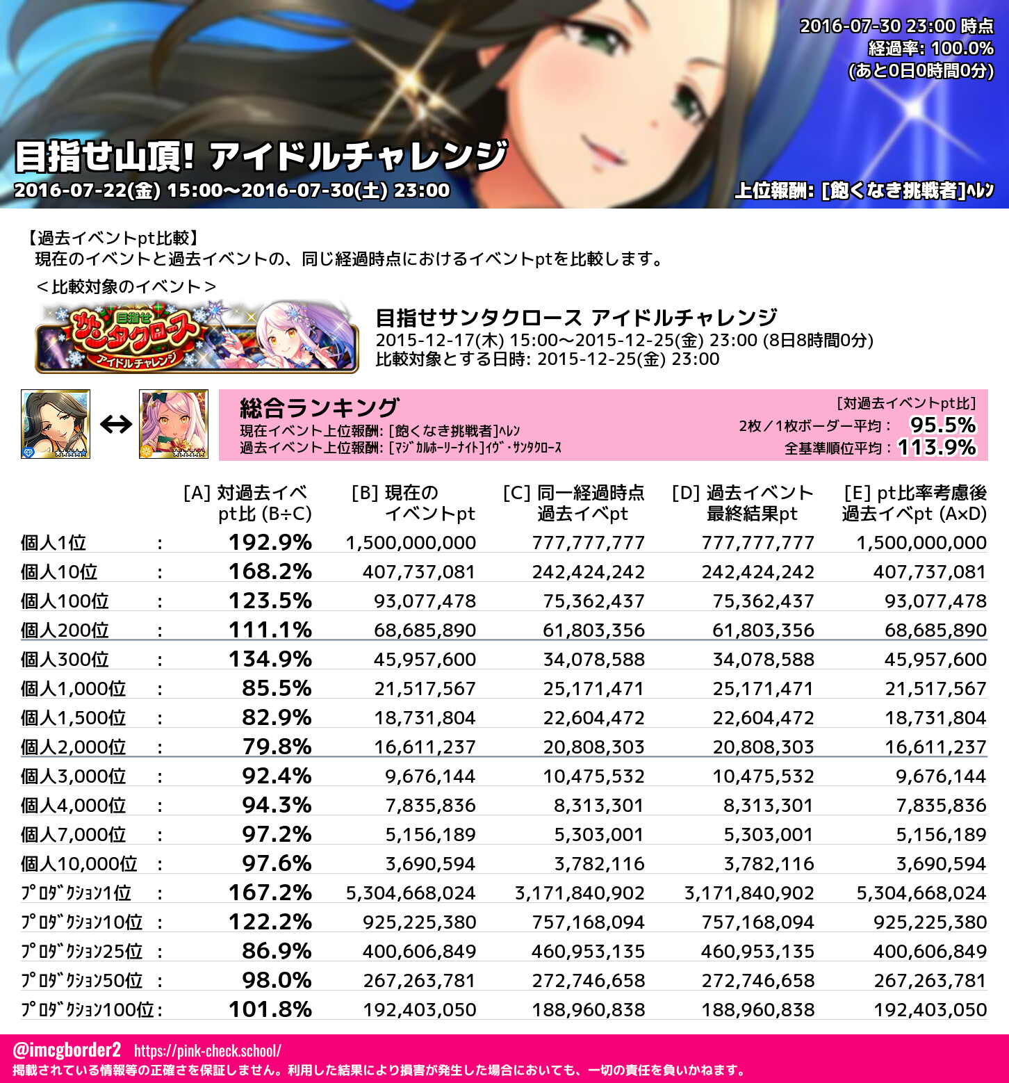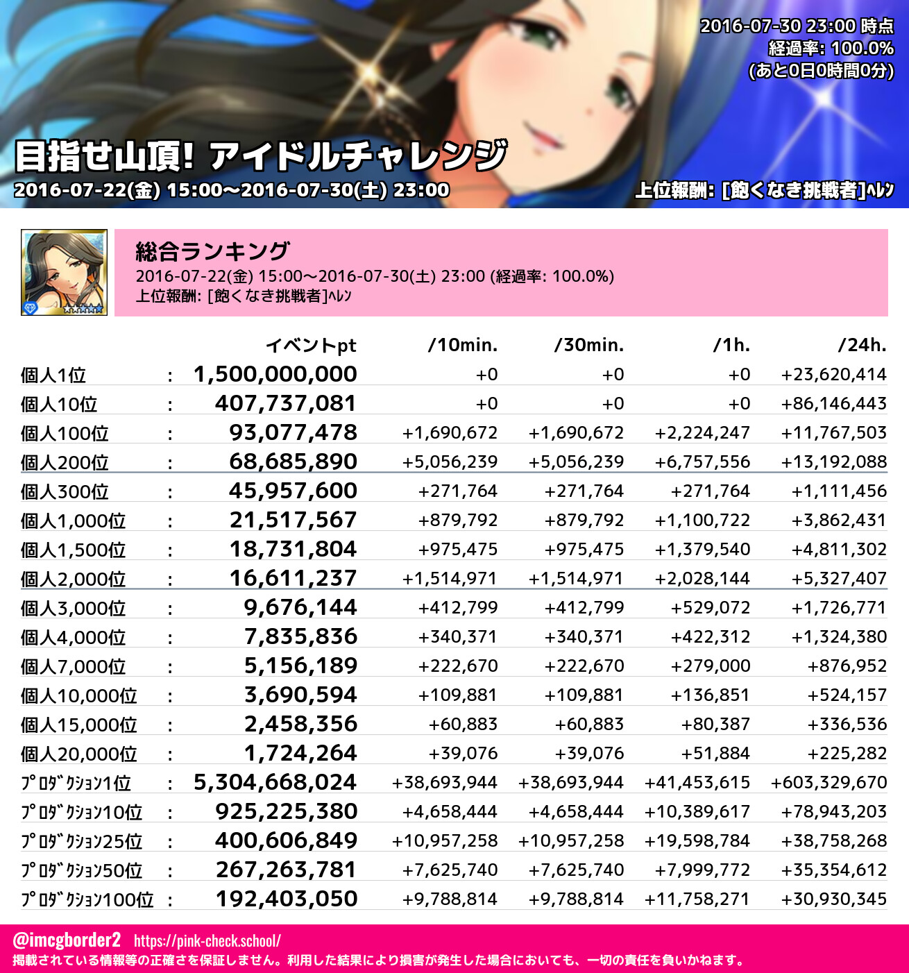 上位プロデューサースコア (2016-07-30 23:00 時点)