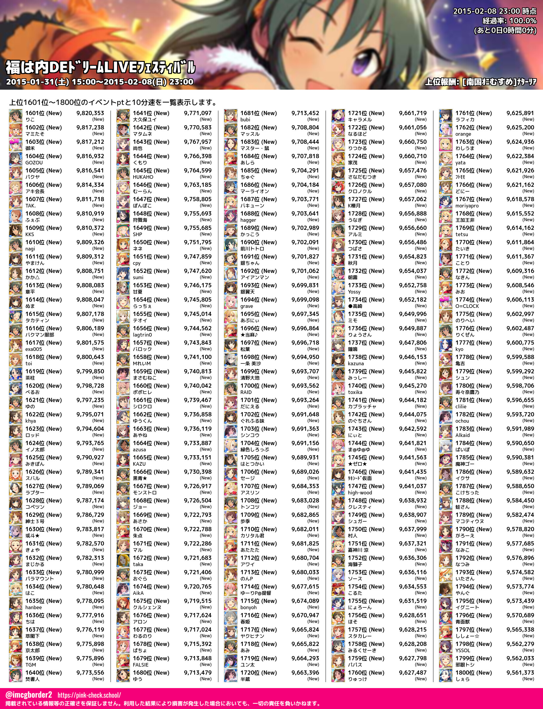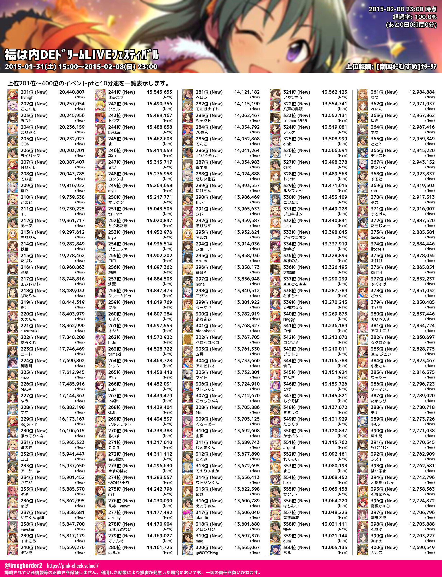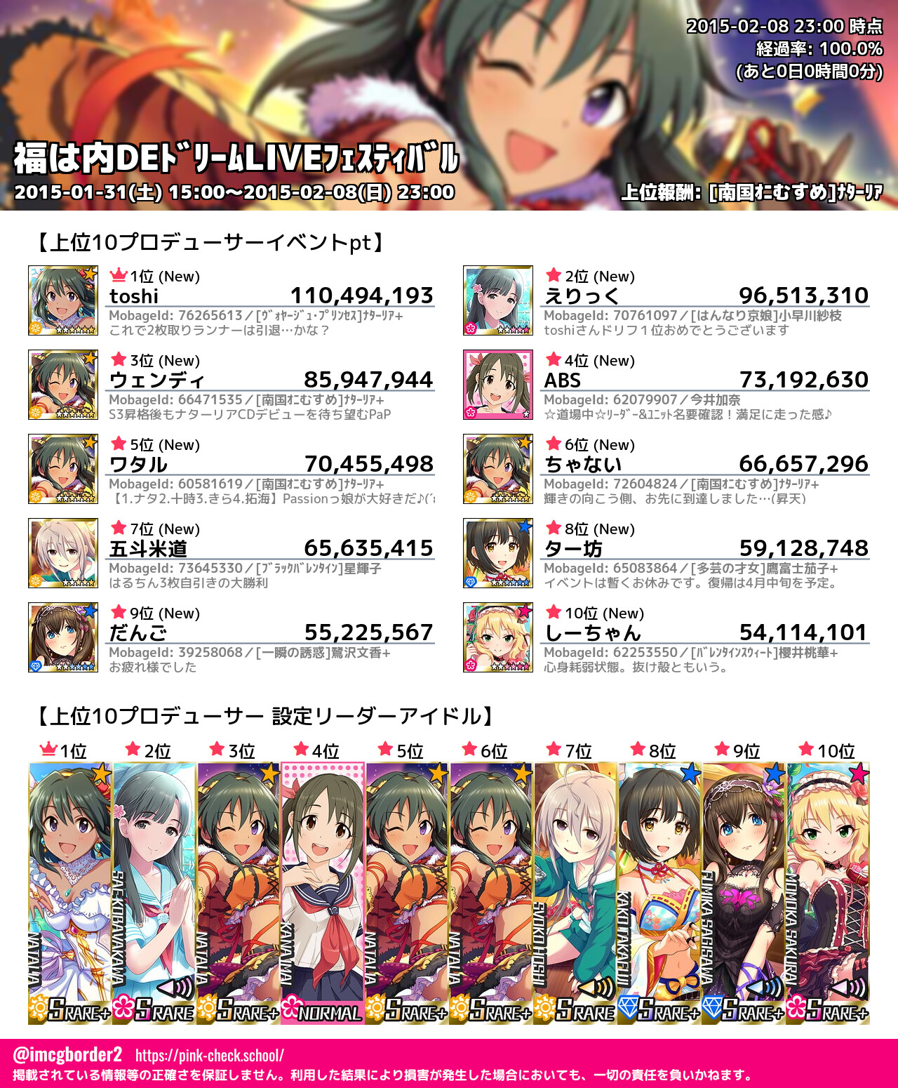 上位プロデューサースコア (2015-02-08 23:00 時点)