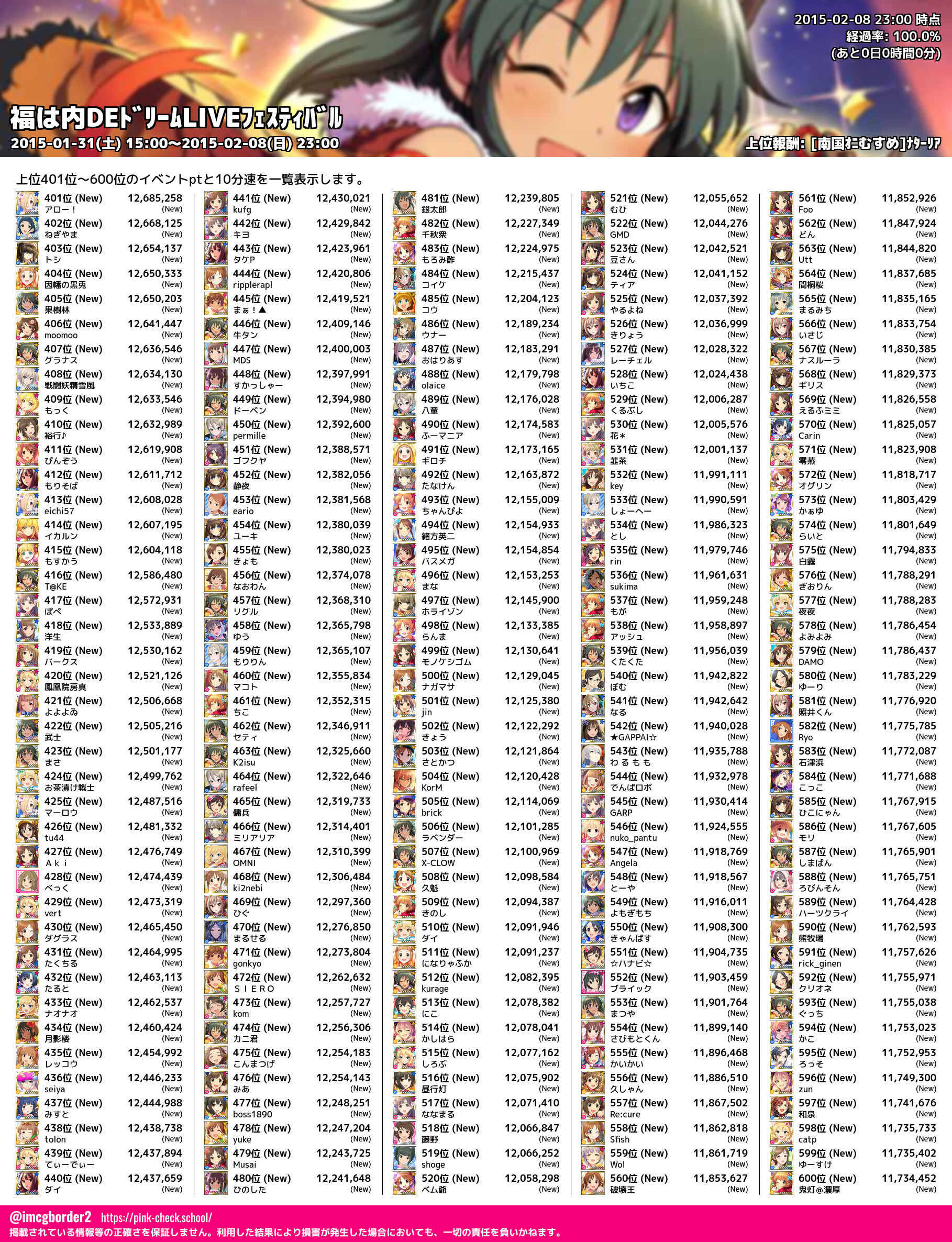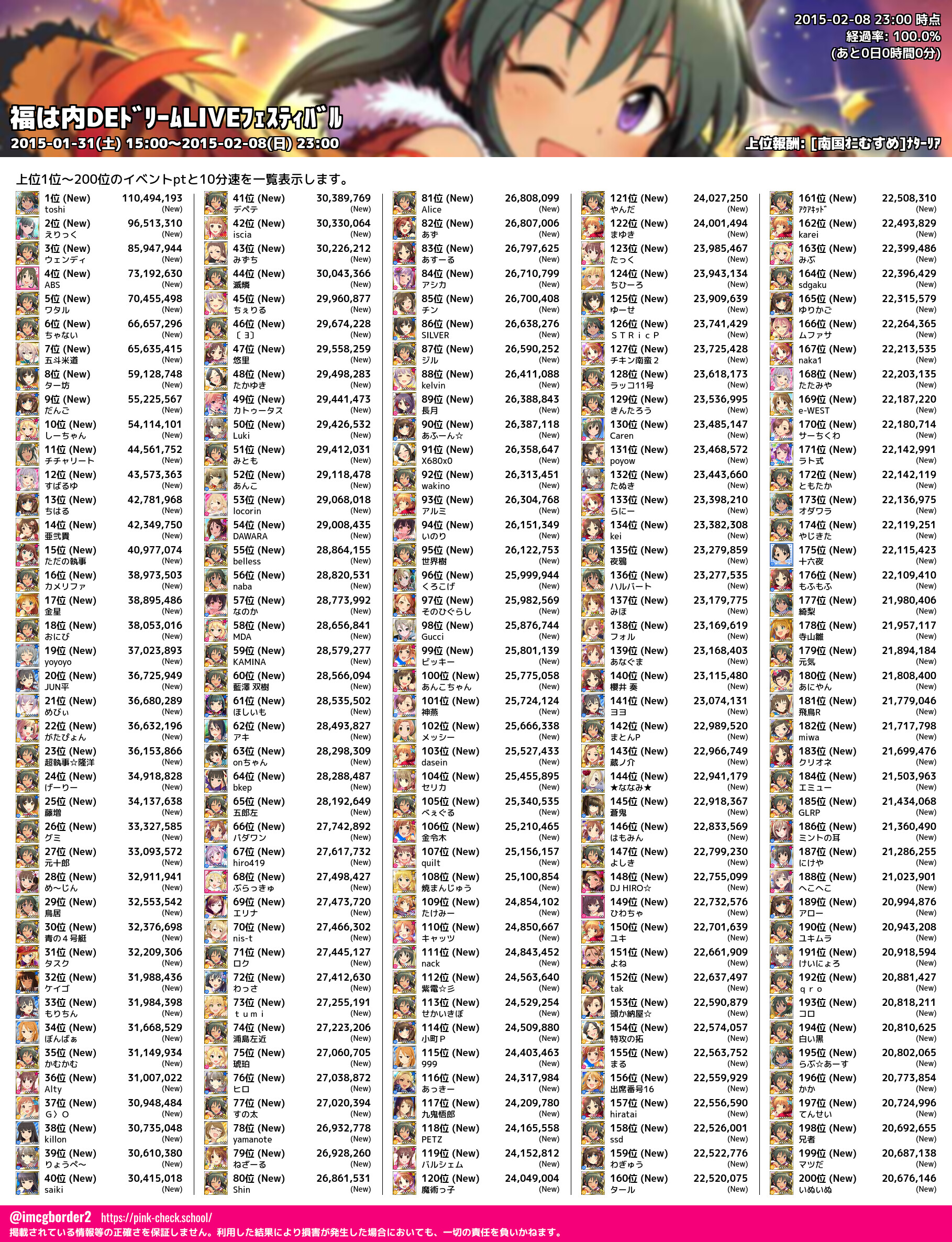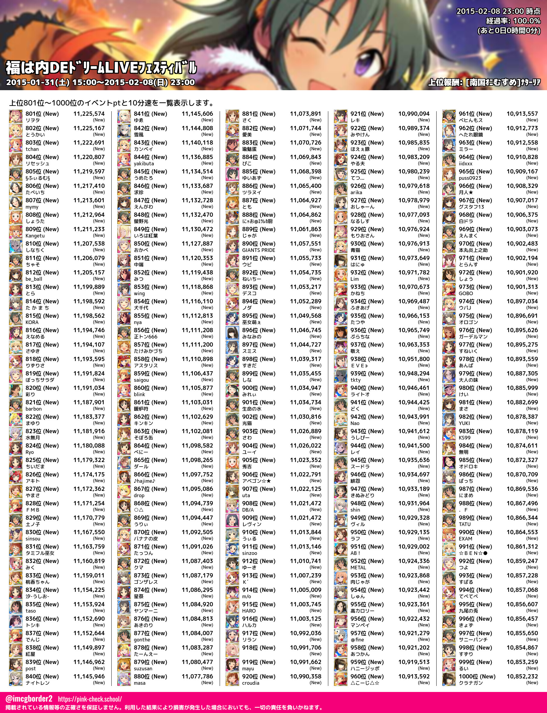 上位プロデューサースコア (2015-02-08 23:00 時点)