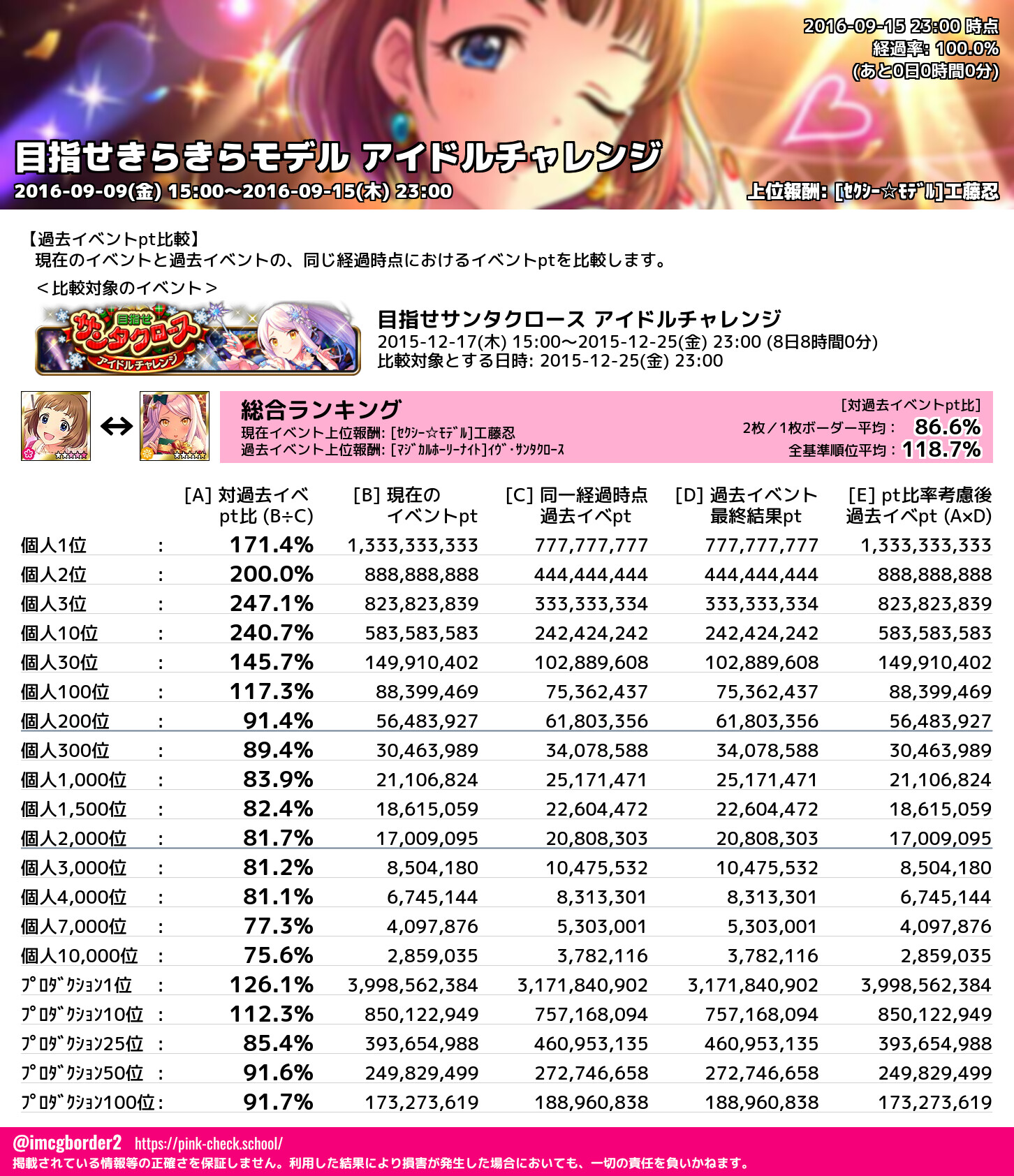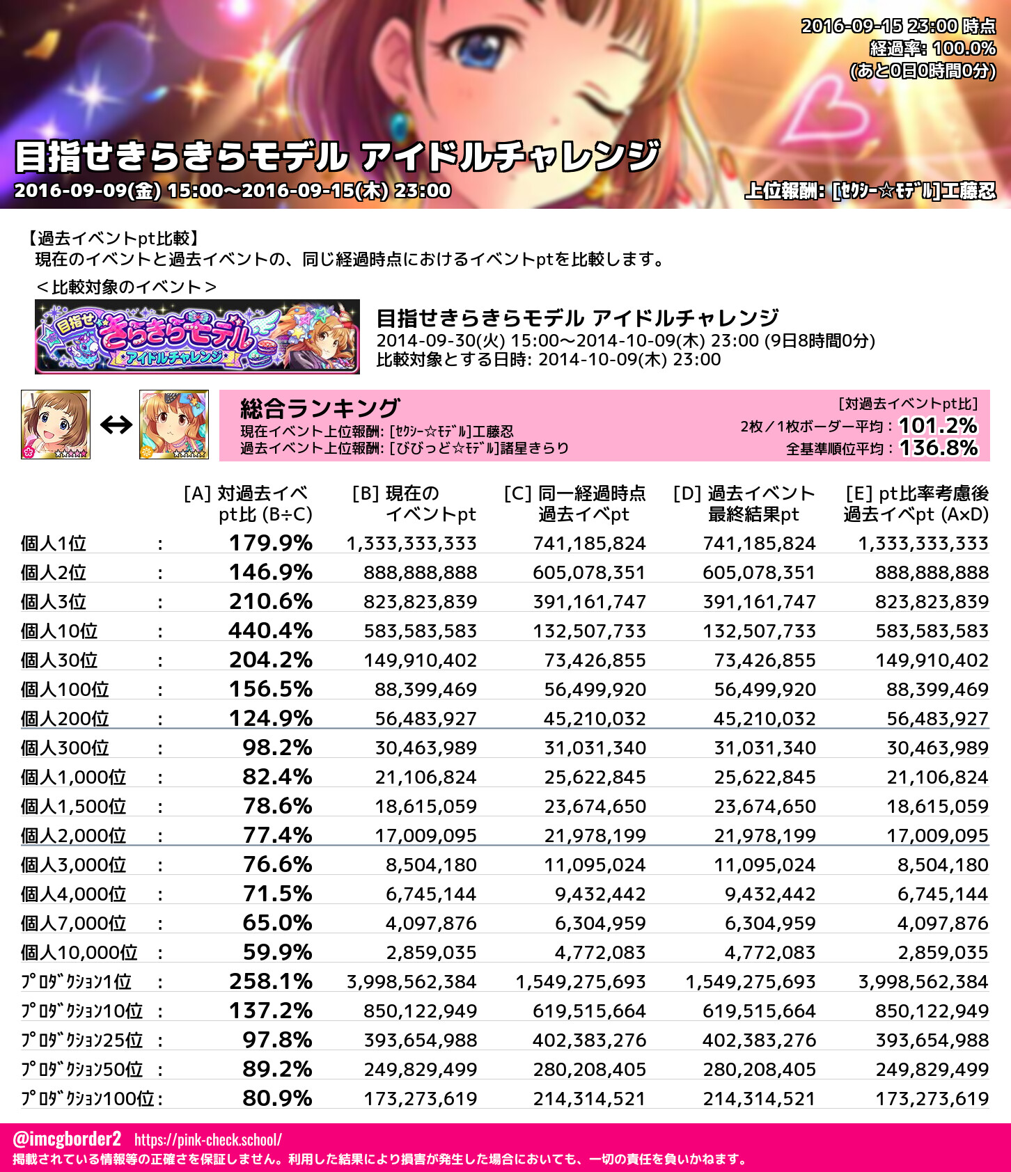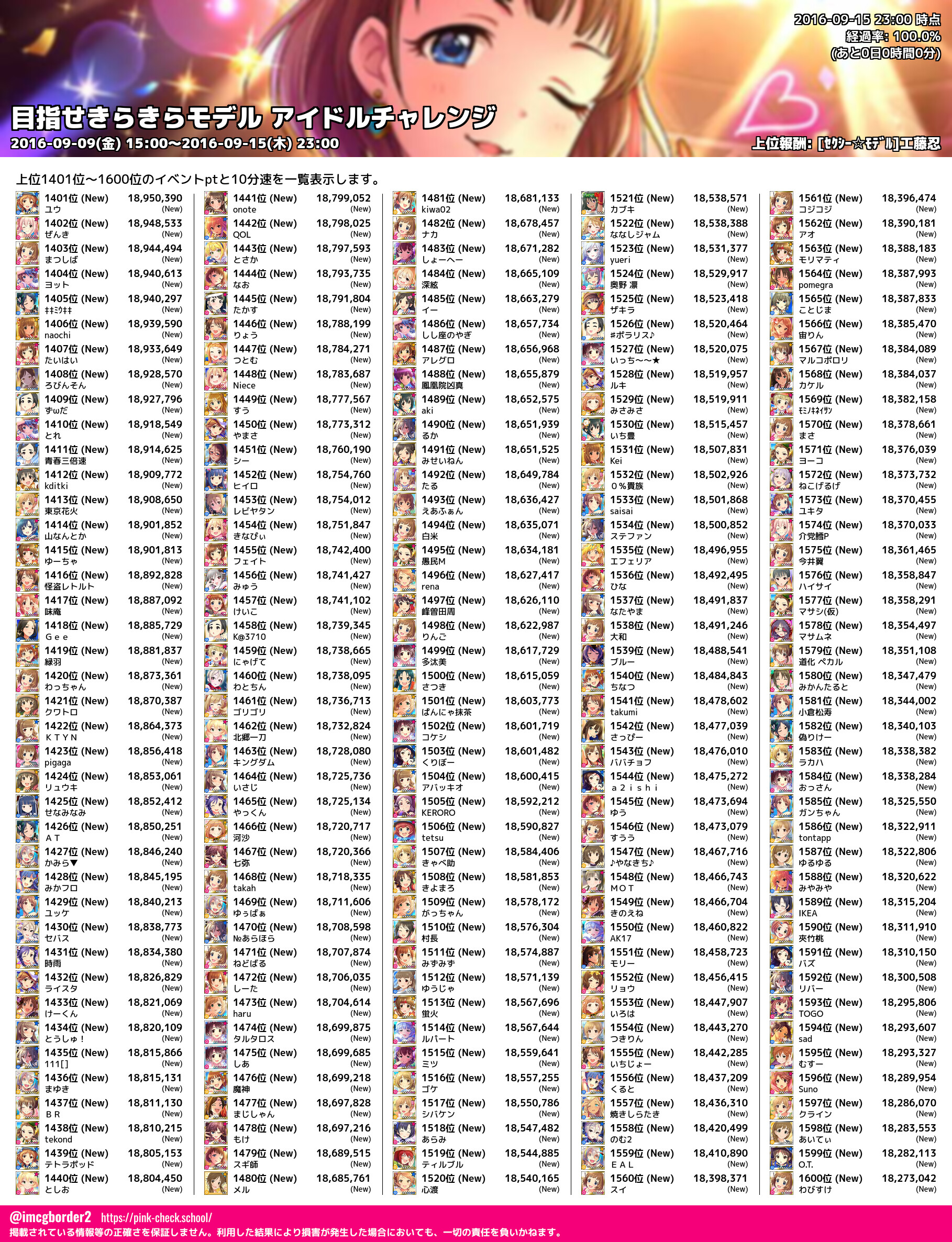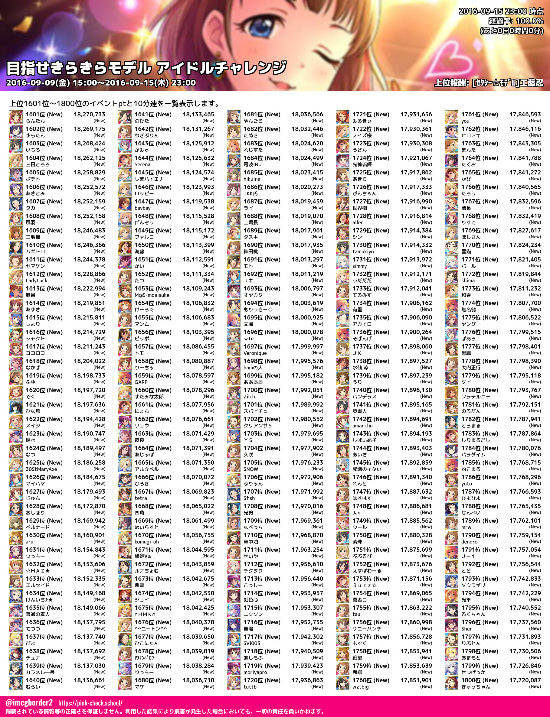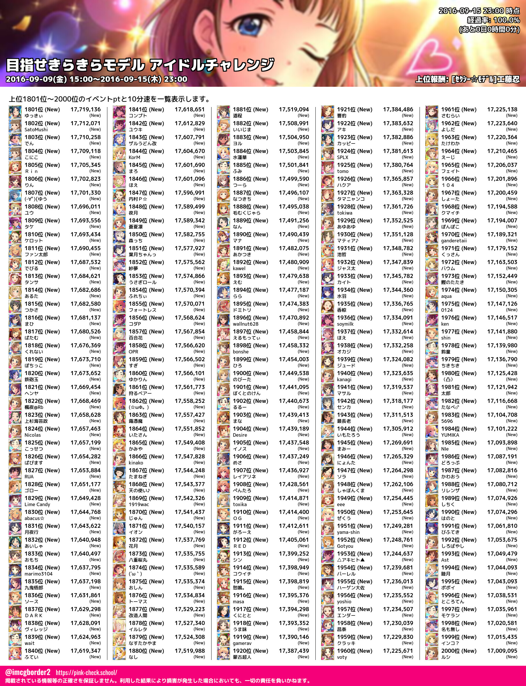 上位プロデューサースコア (2016-09-15 23:00 時点)