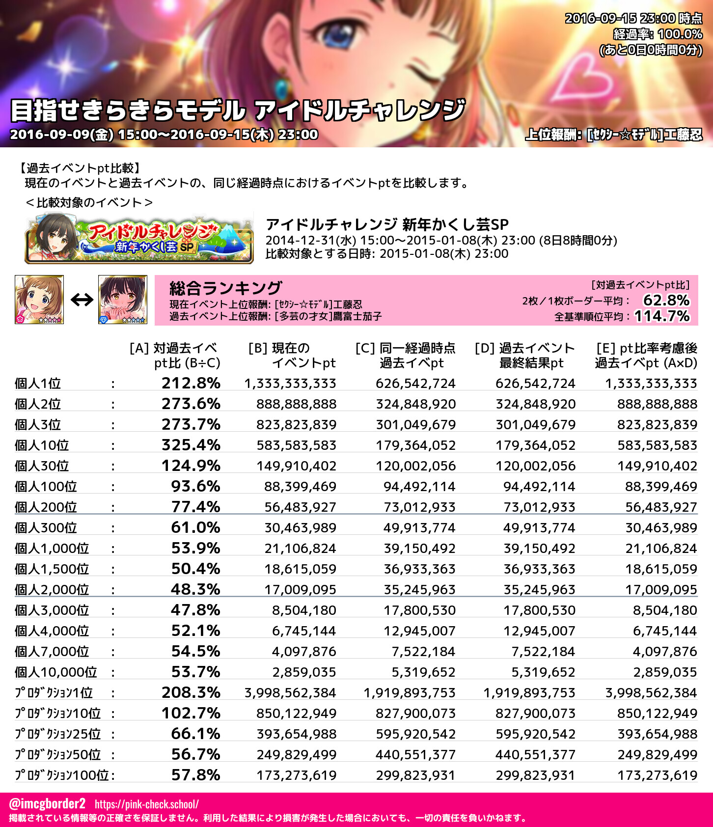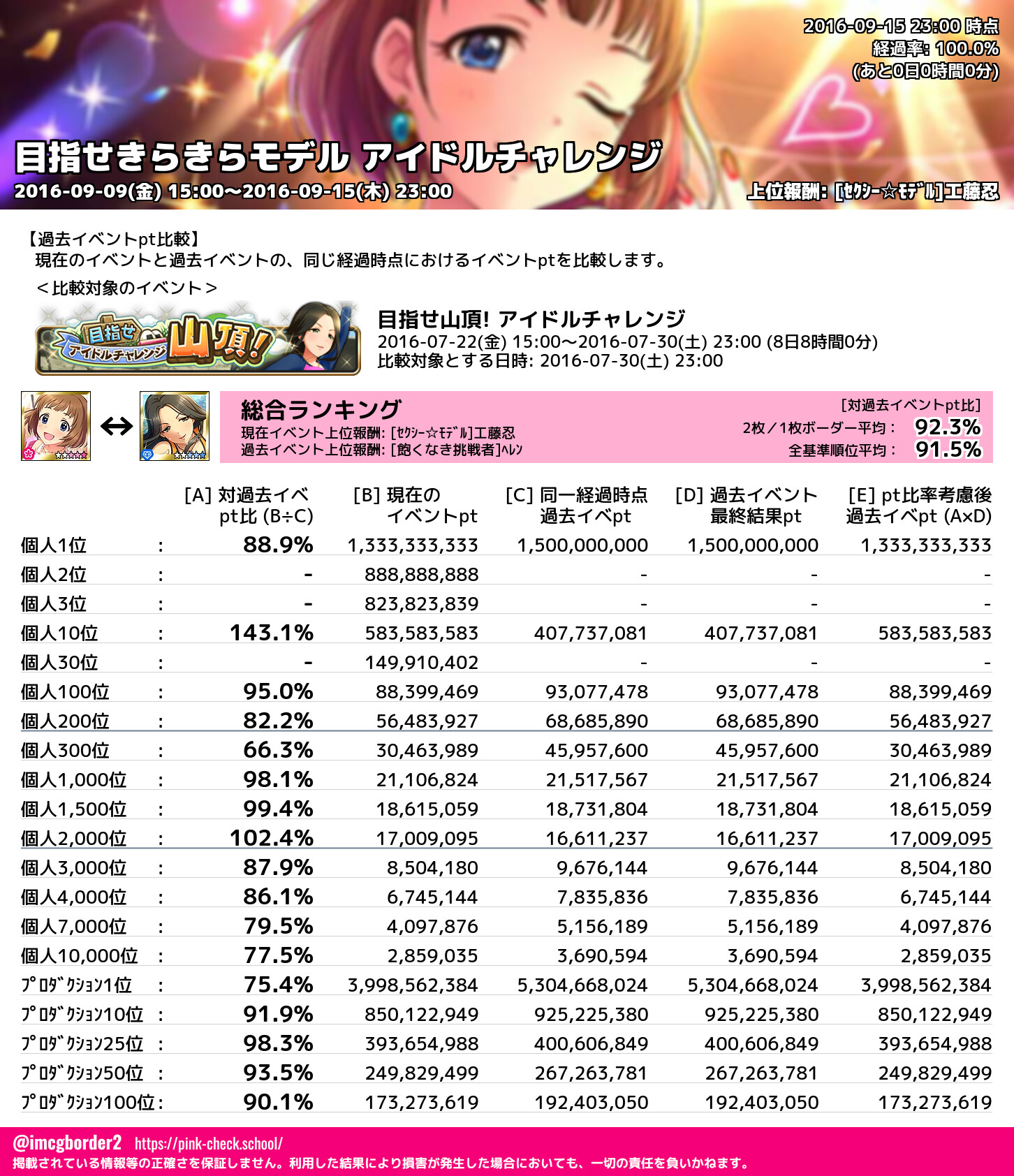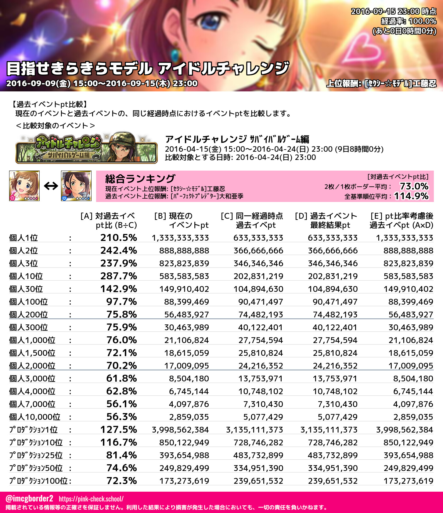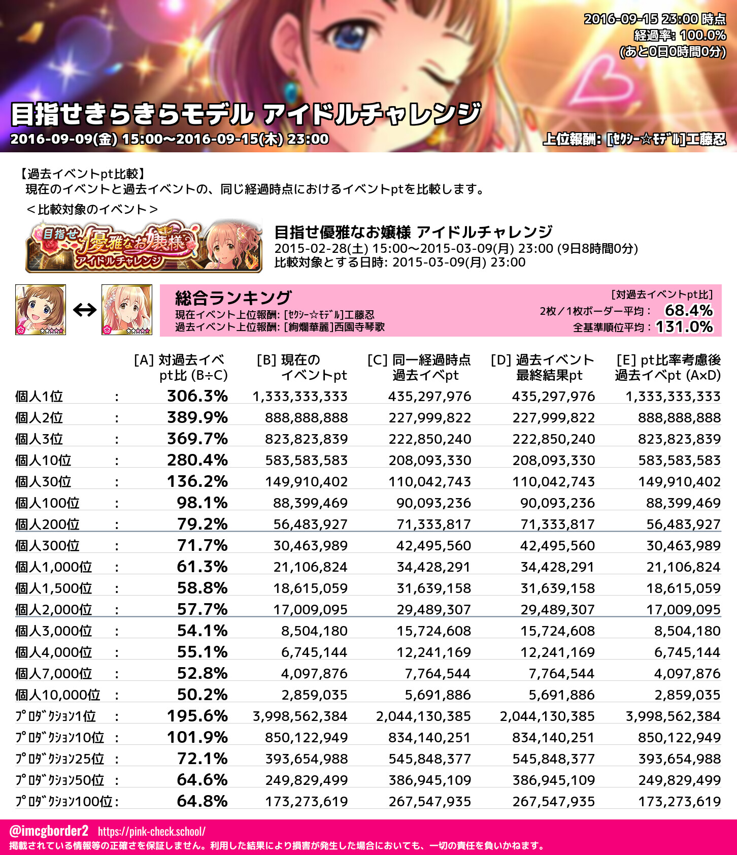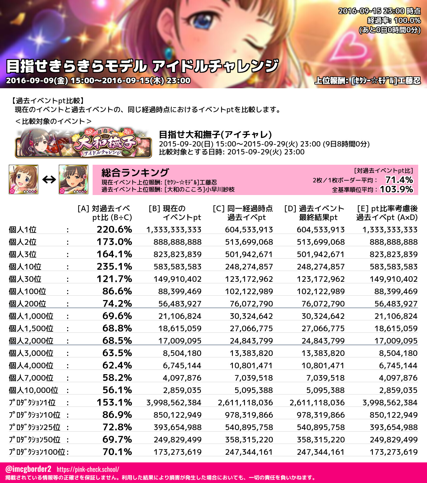 上位プロデューサースコア (2016-09-15 23:00 時点)
